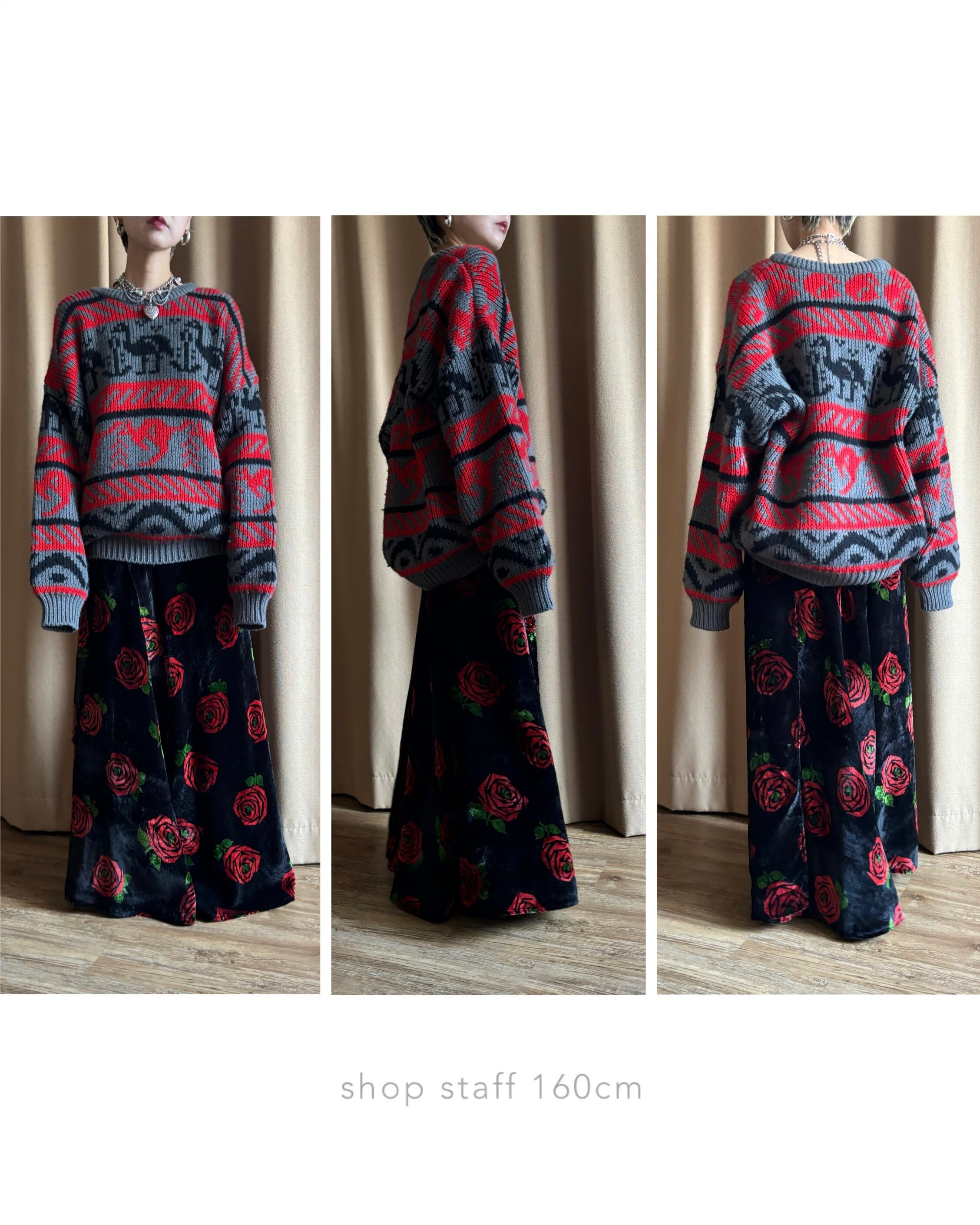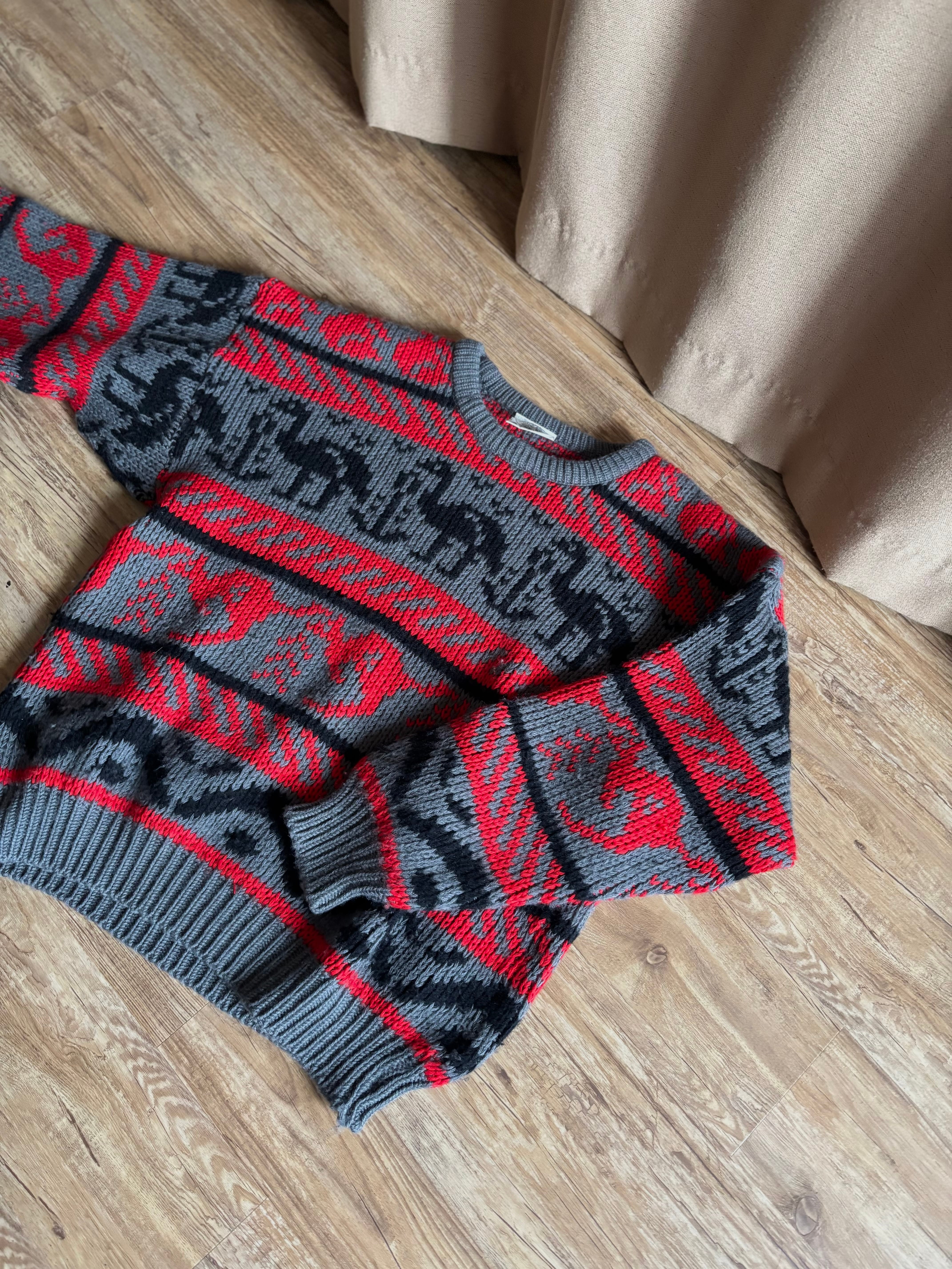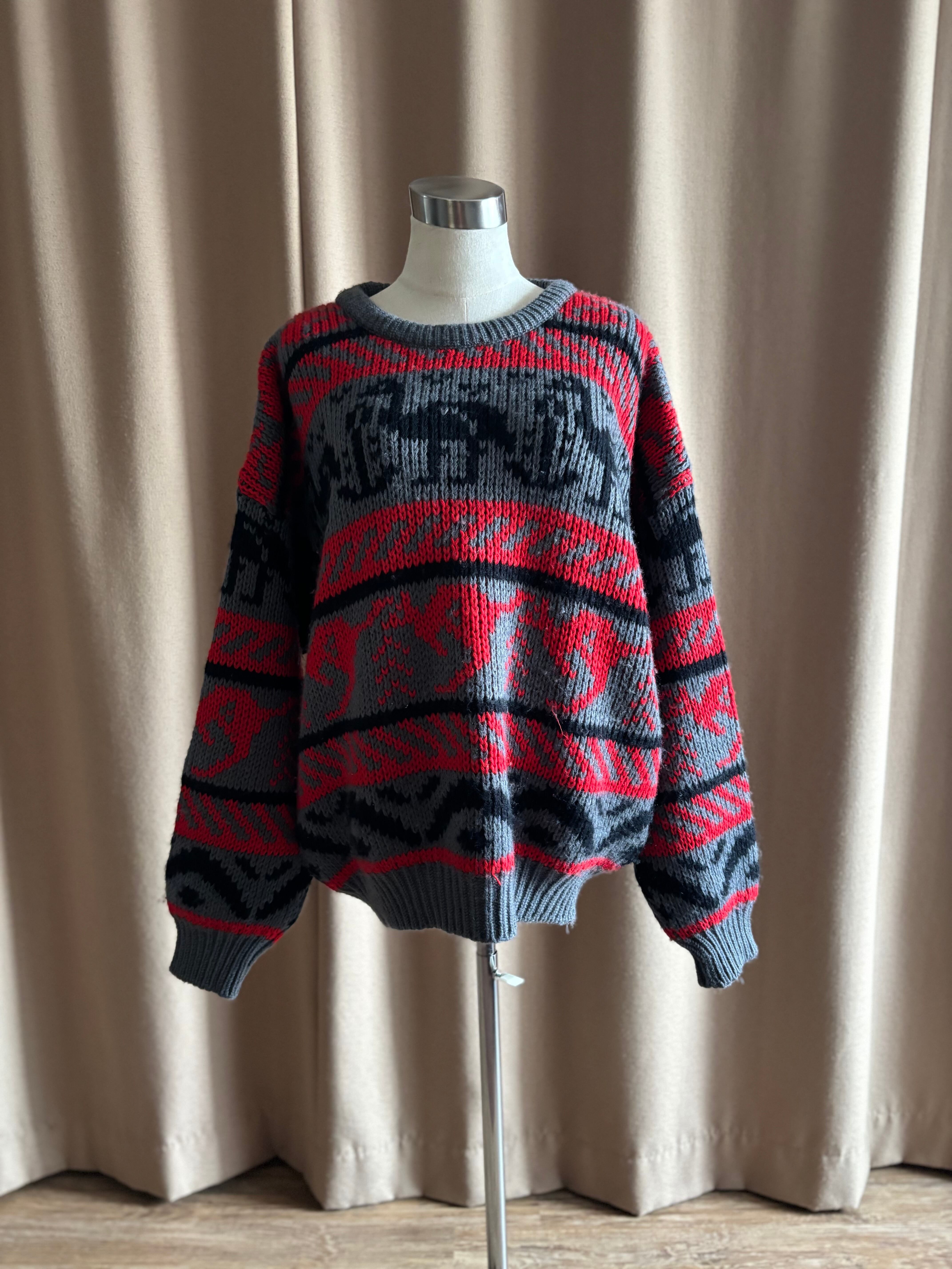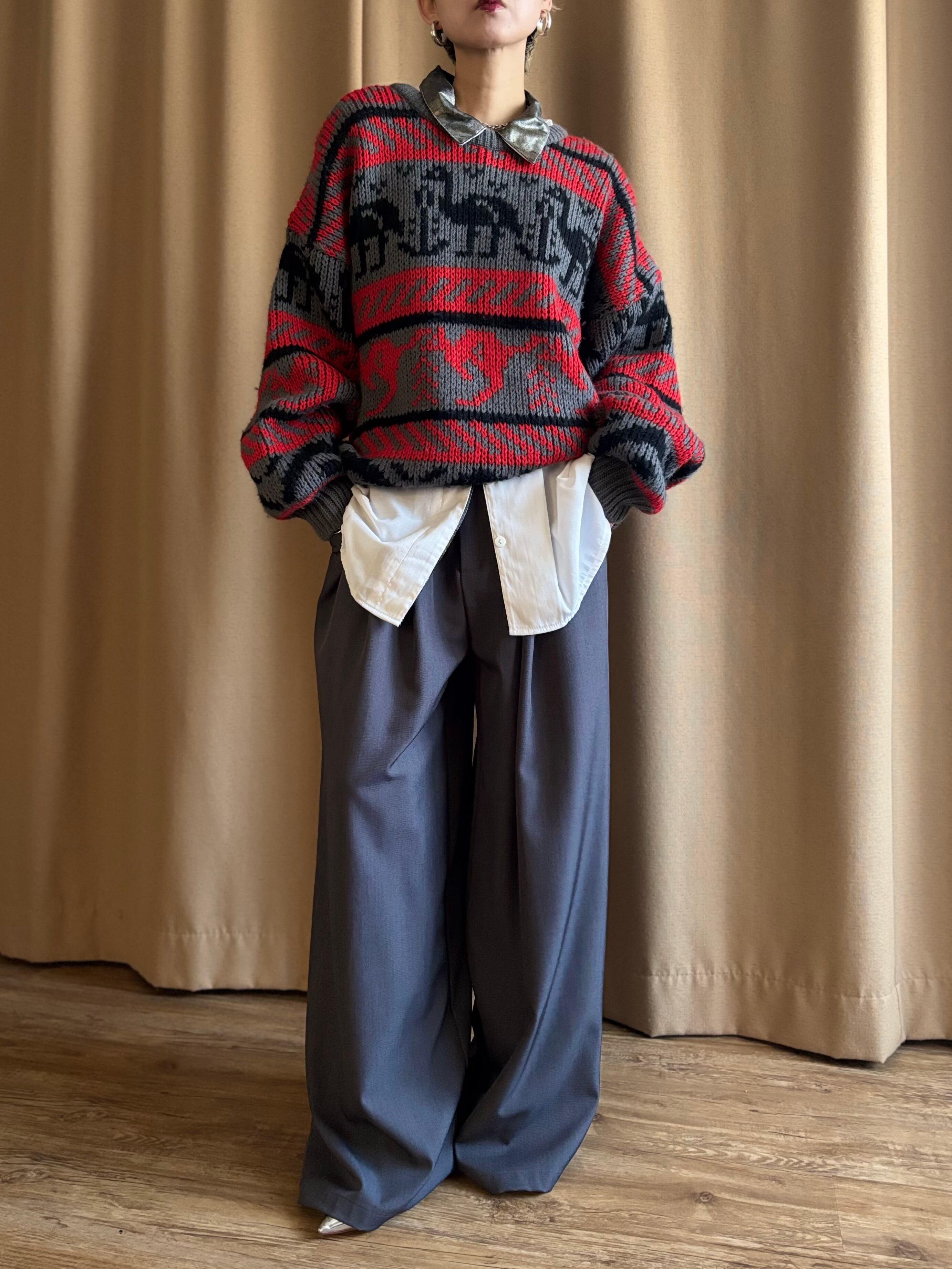 大胆なレッド×グレーのコントラストが視線を奪う、オーストラリア製ニット。