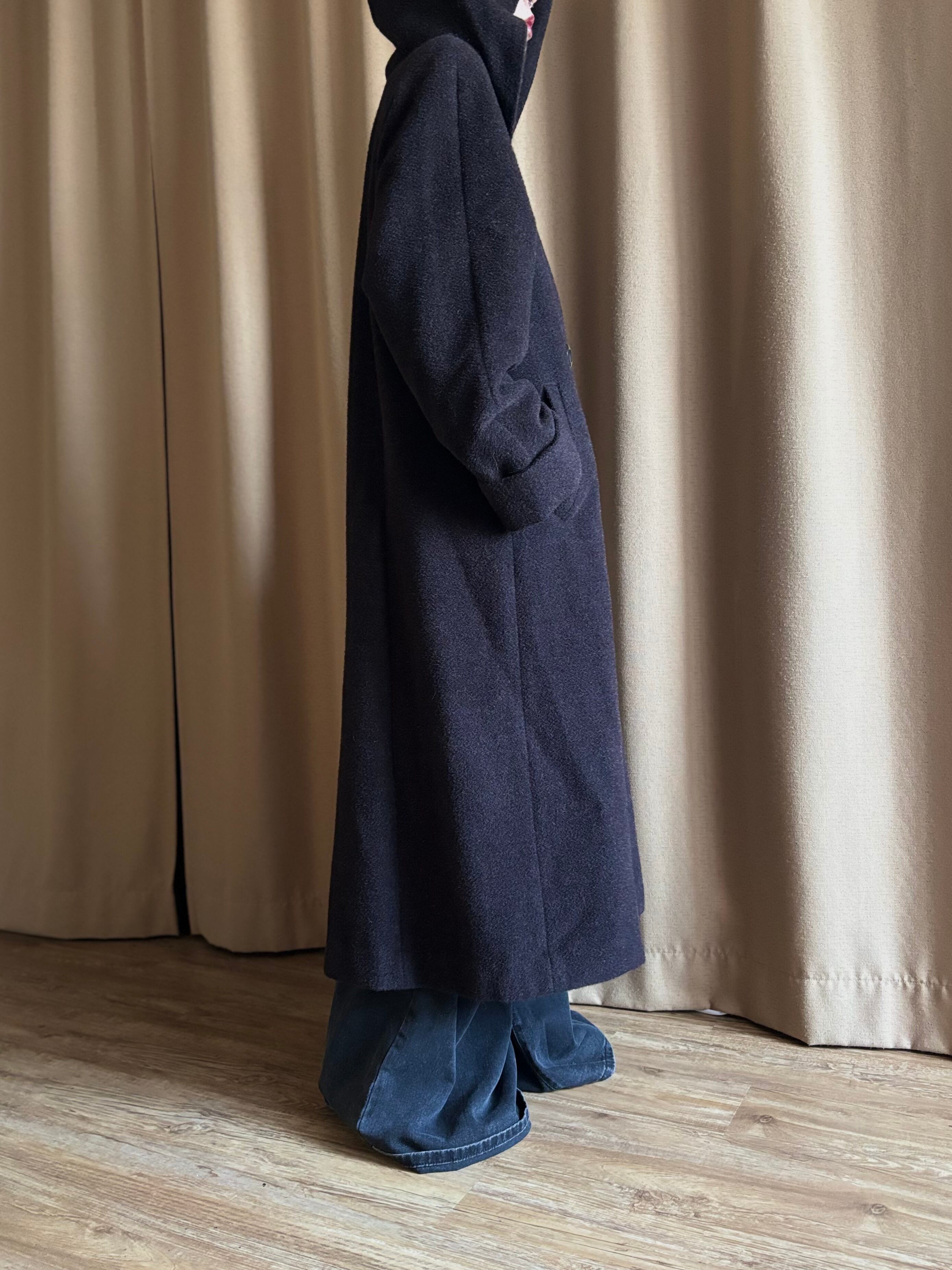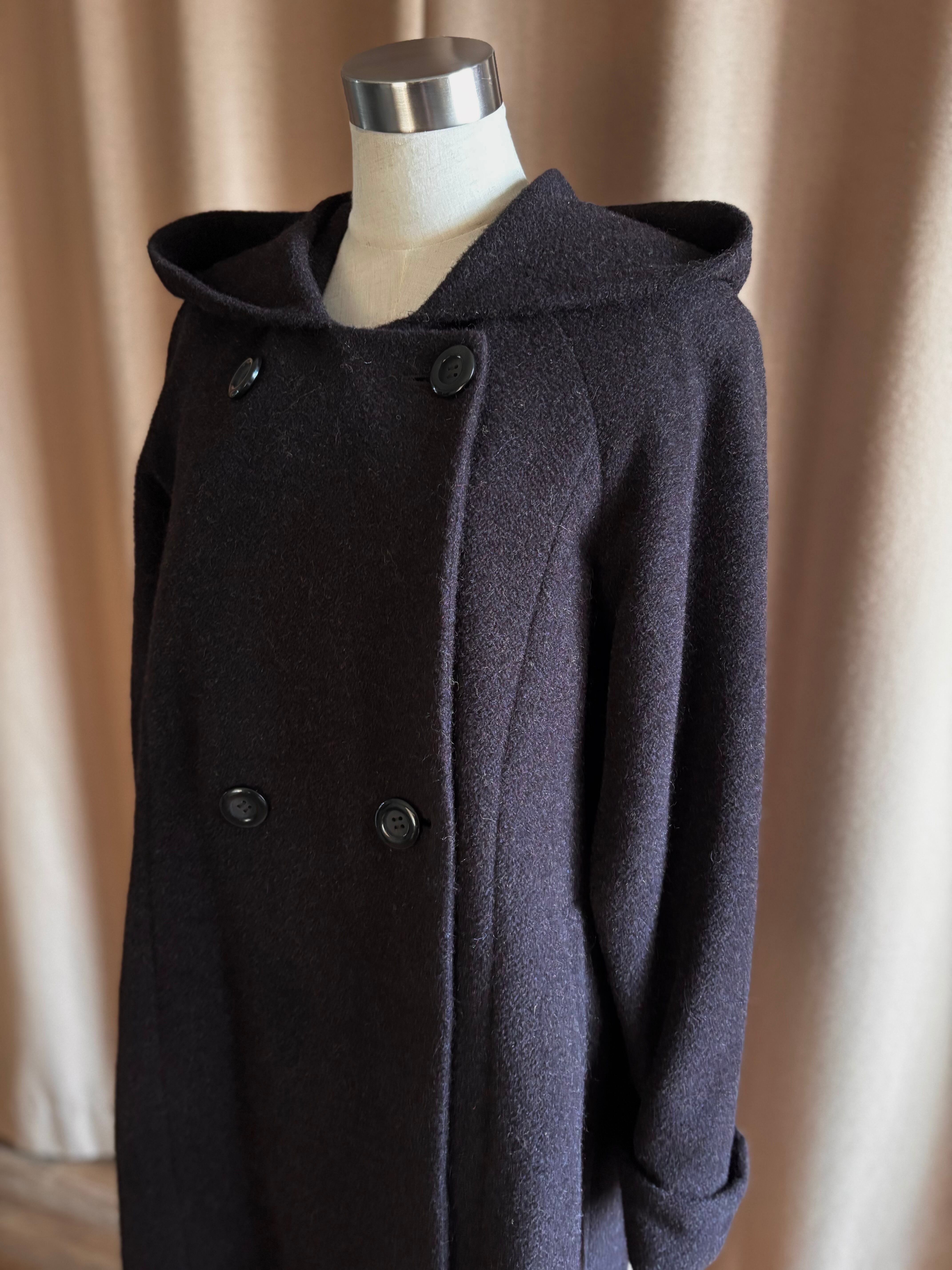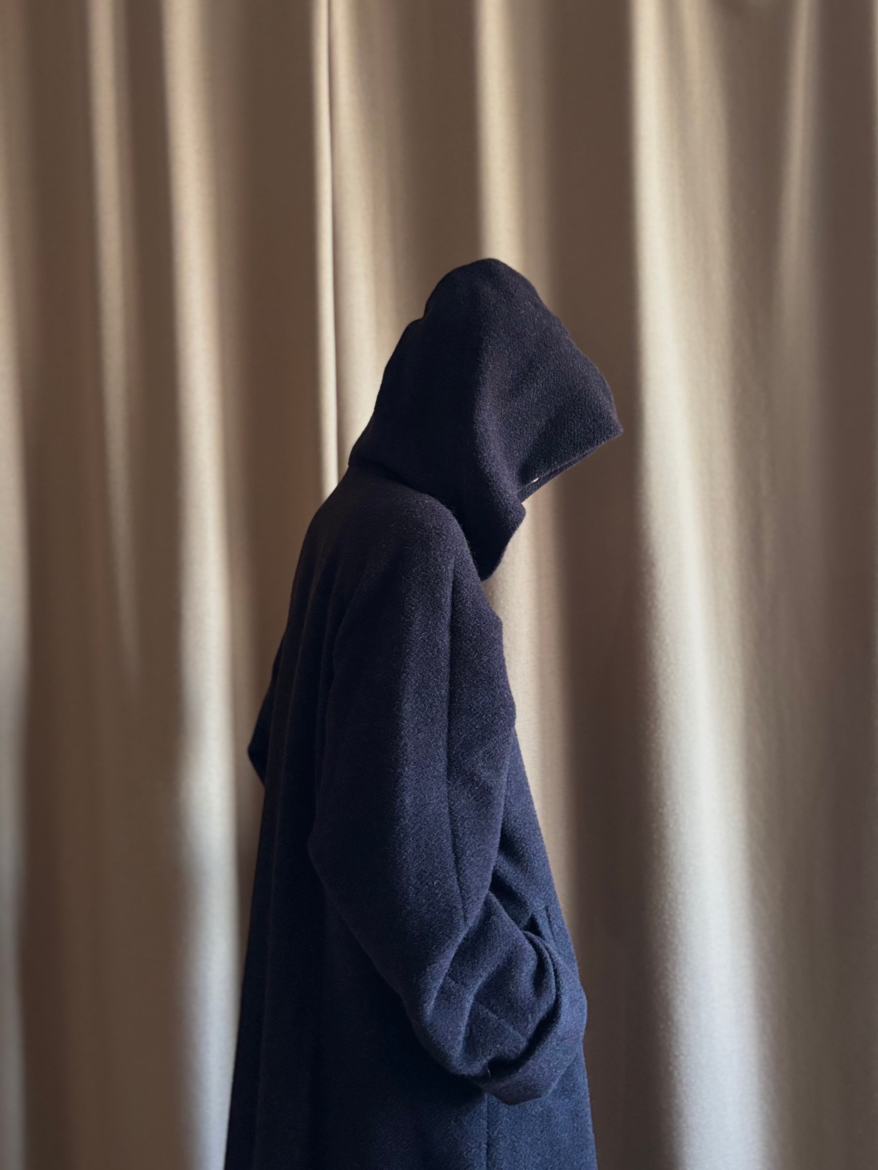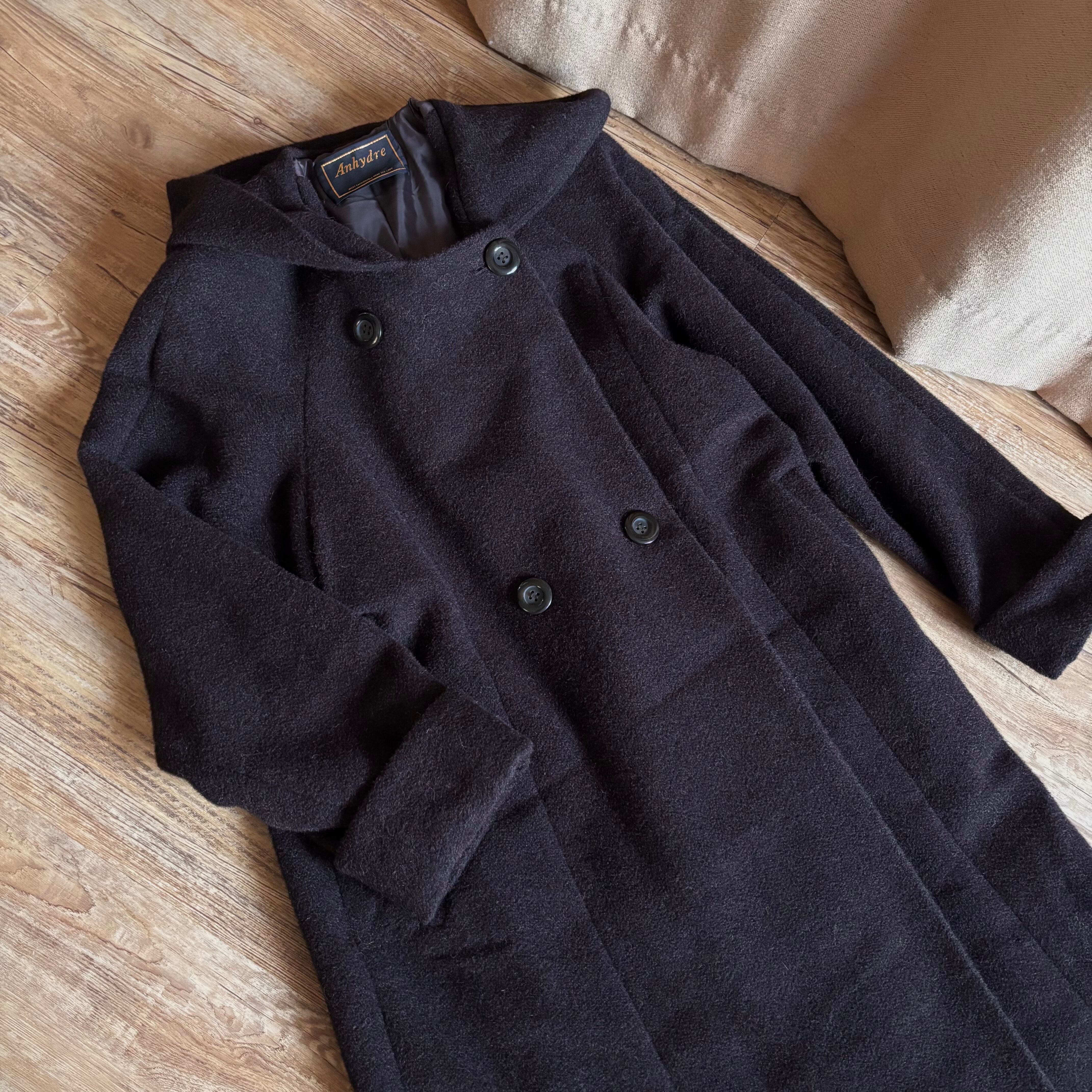 深みのあるダークブラウンにフーディーが旬な日本製ロングコート。