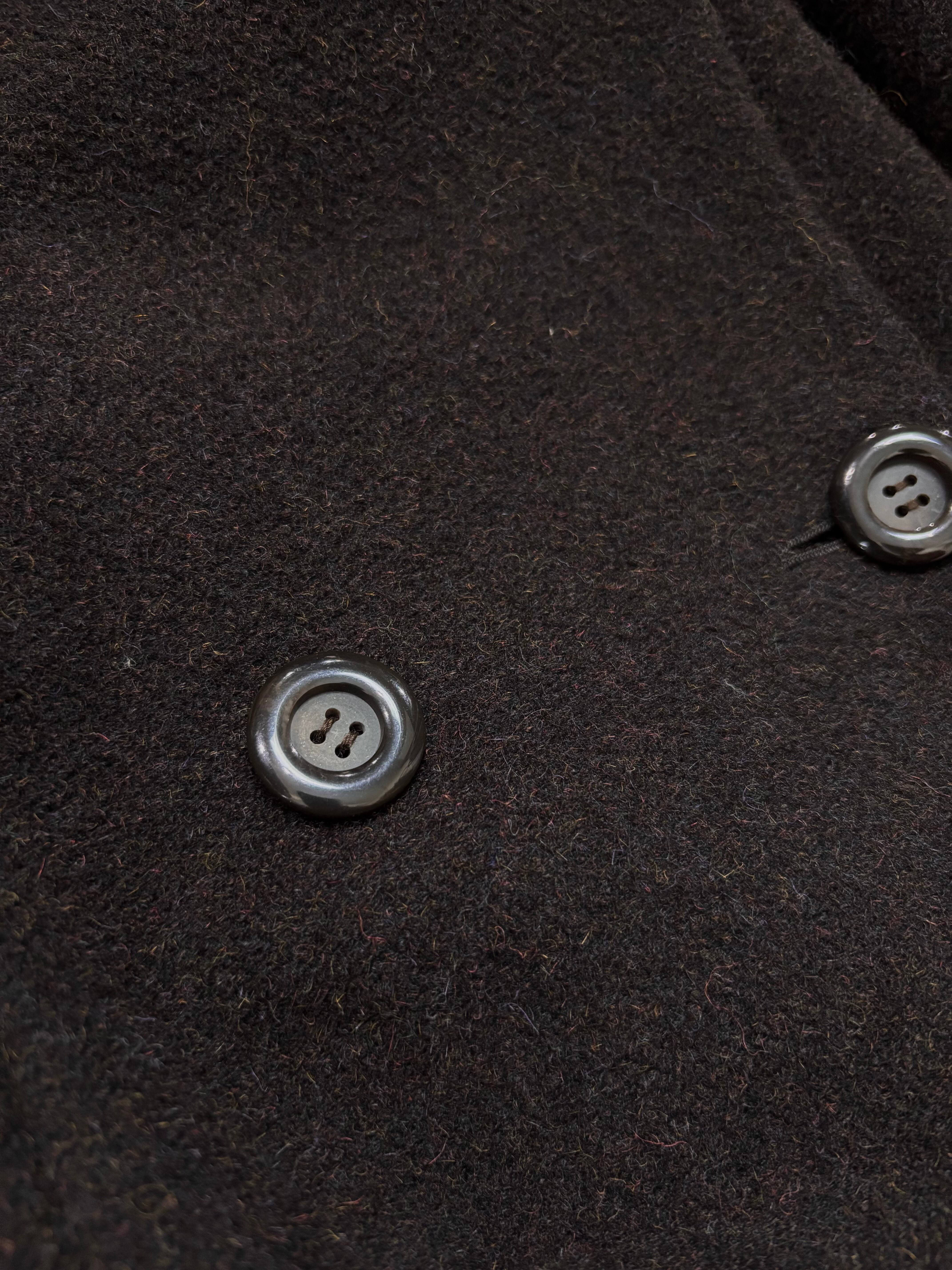クラシックなダブルボタンは一番上を開けるとチェスター風にもなる2way仕様。