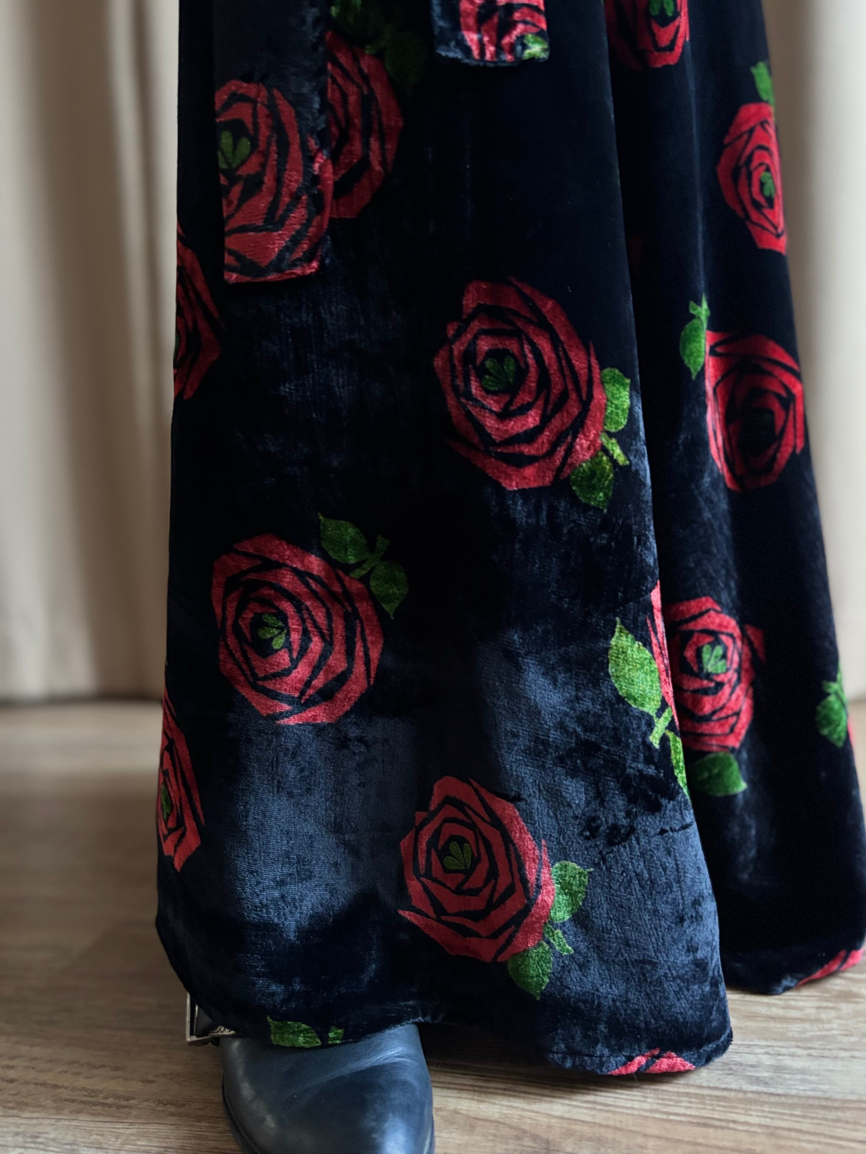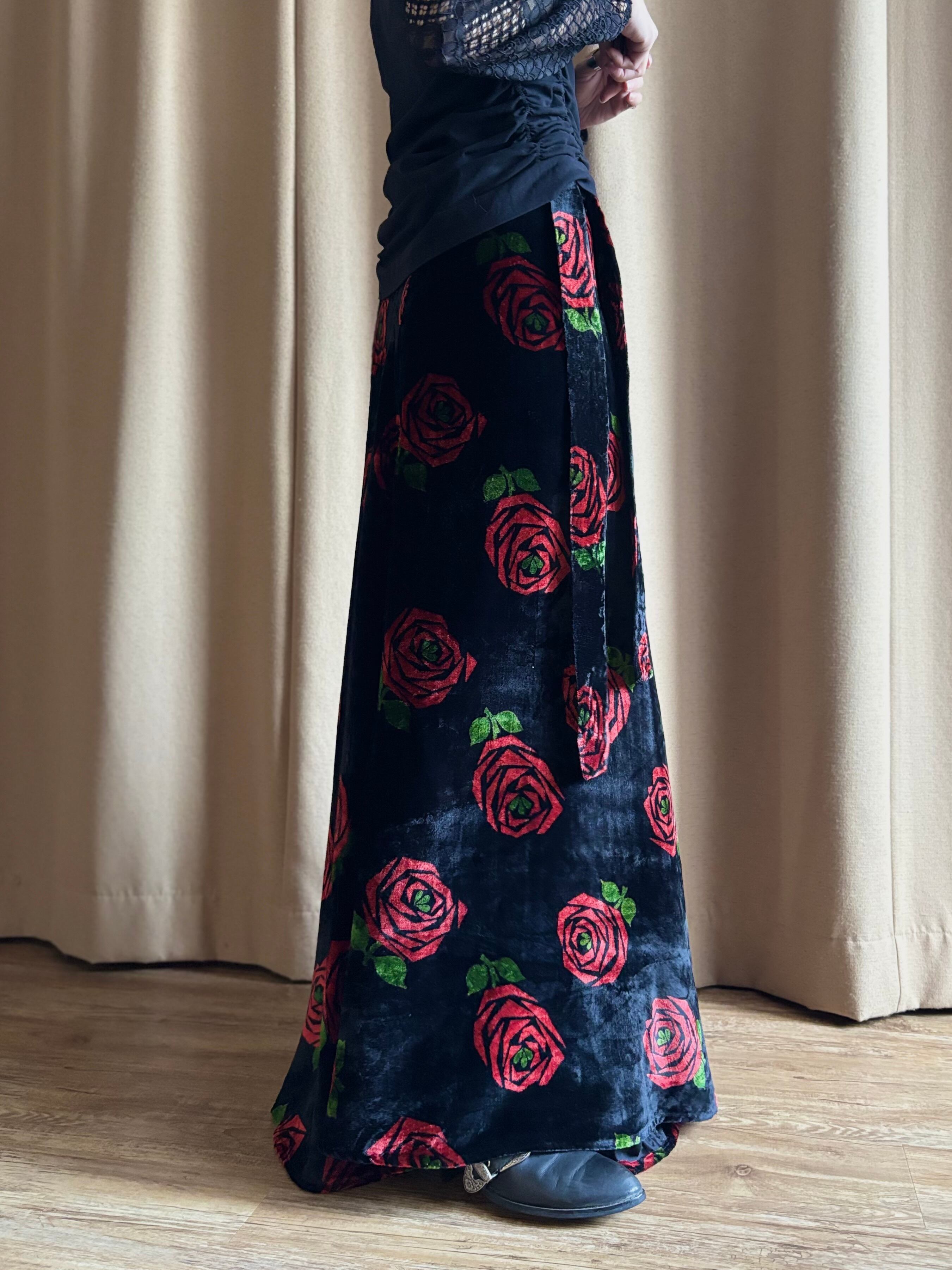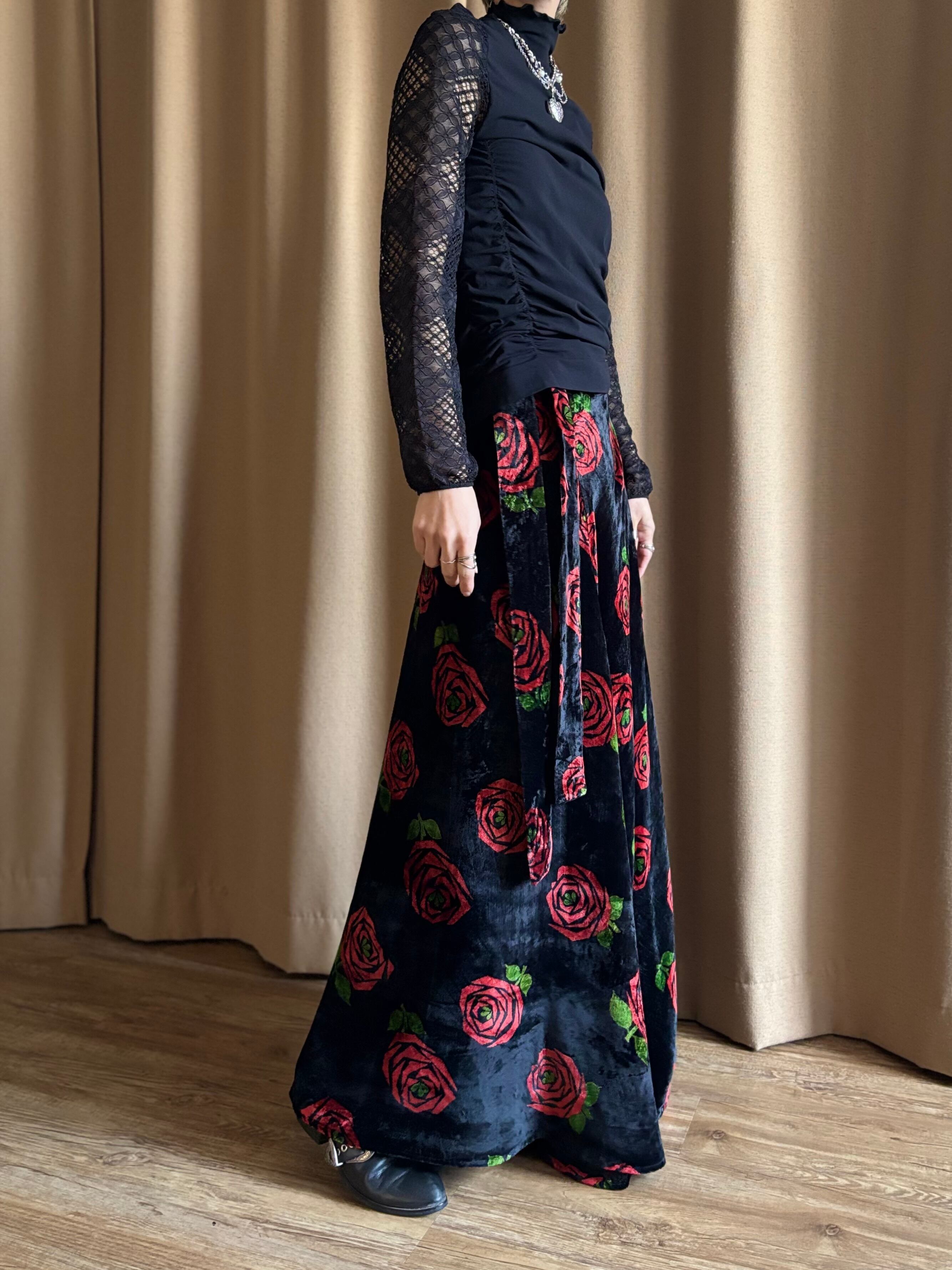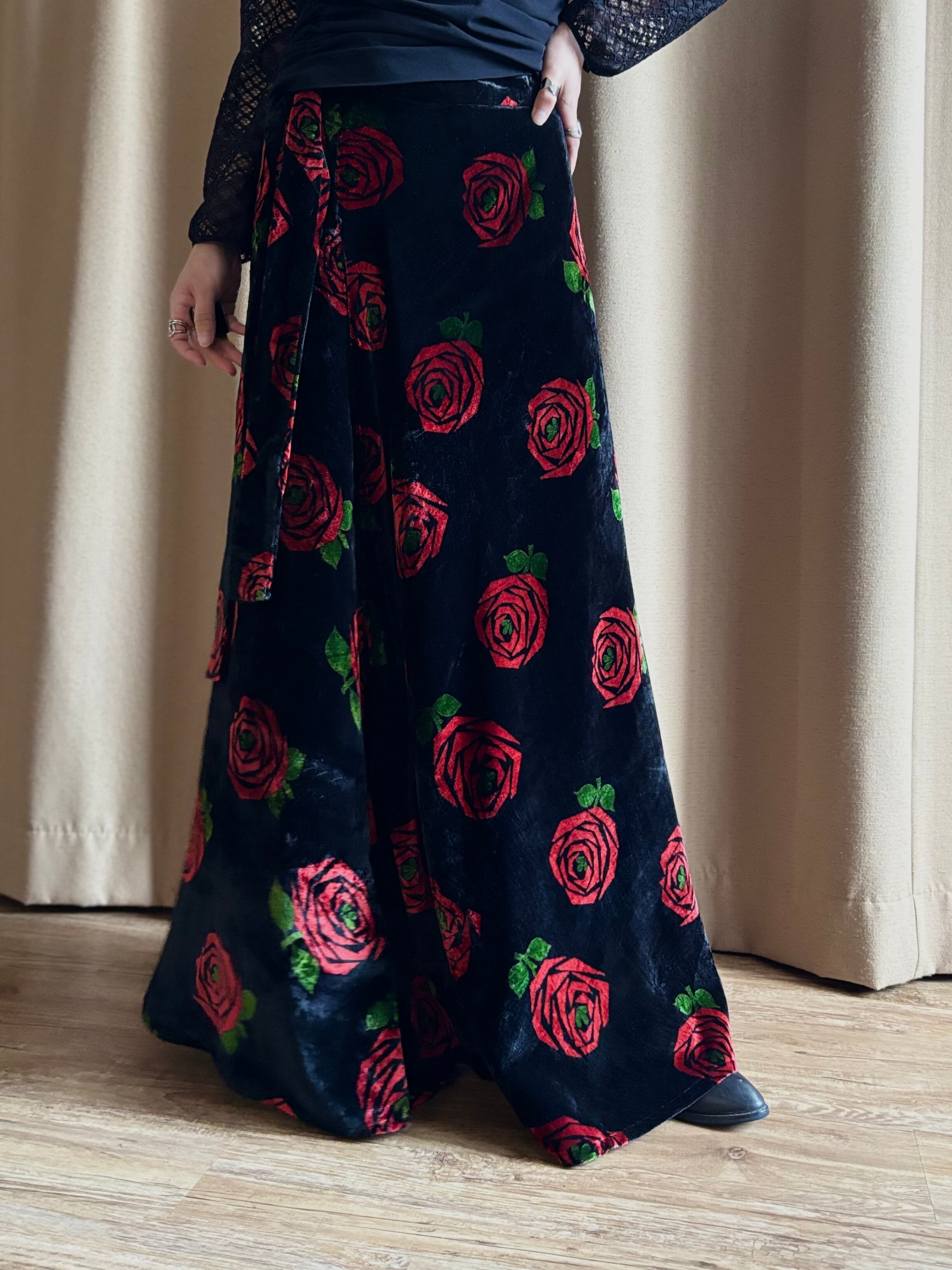 red rose pattern velour maxi skirt-5096-12