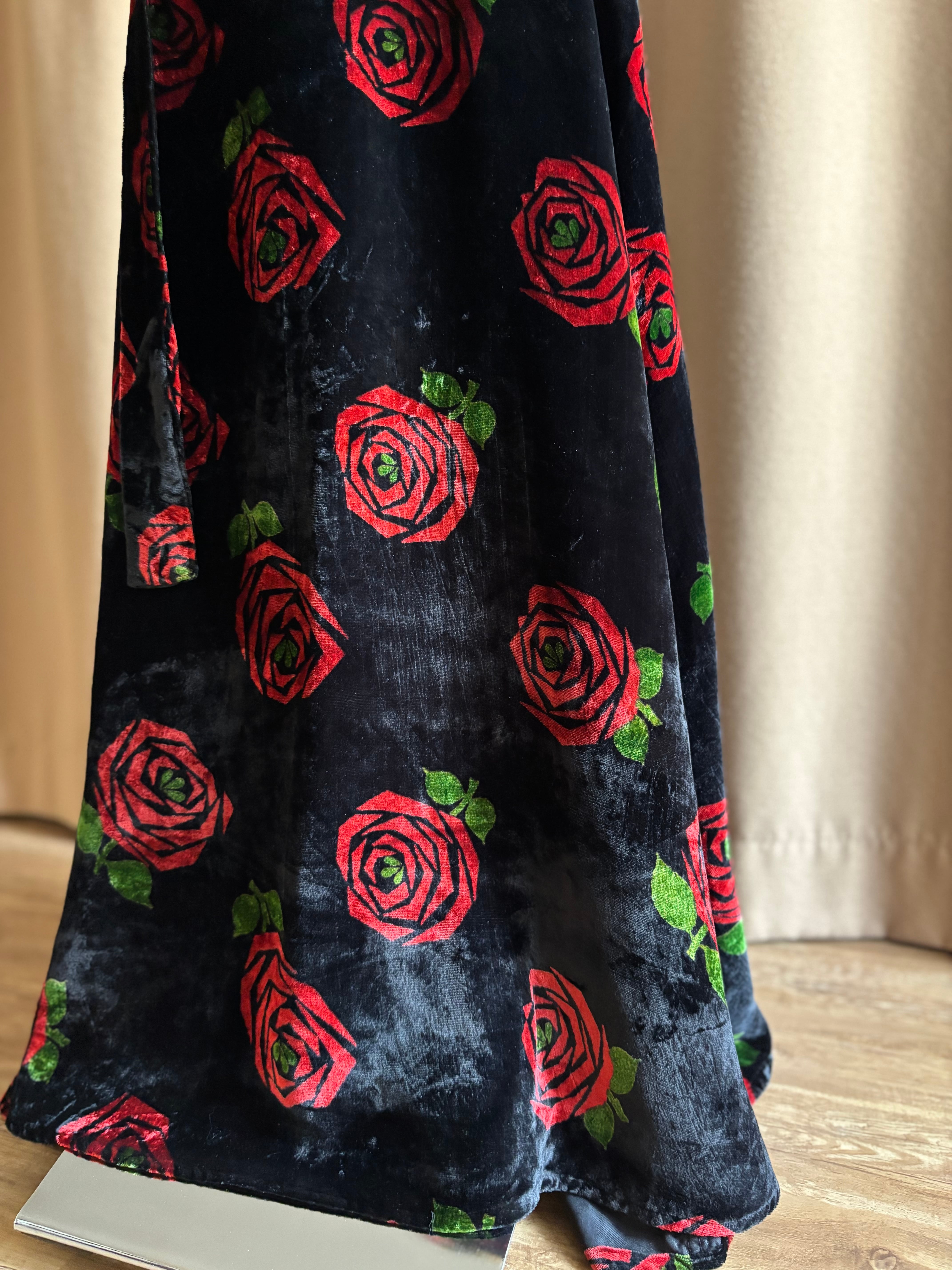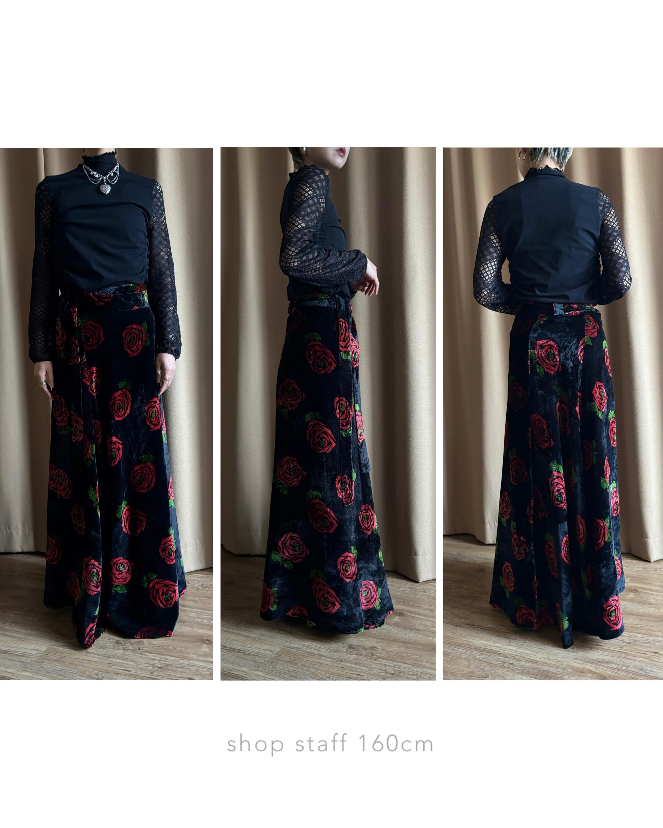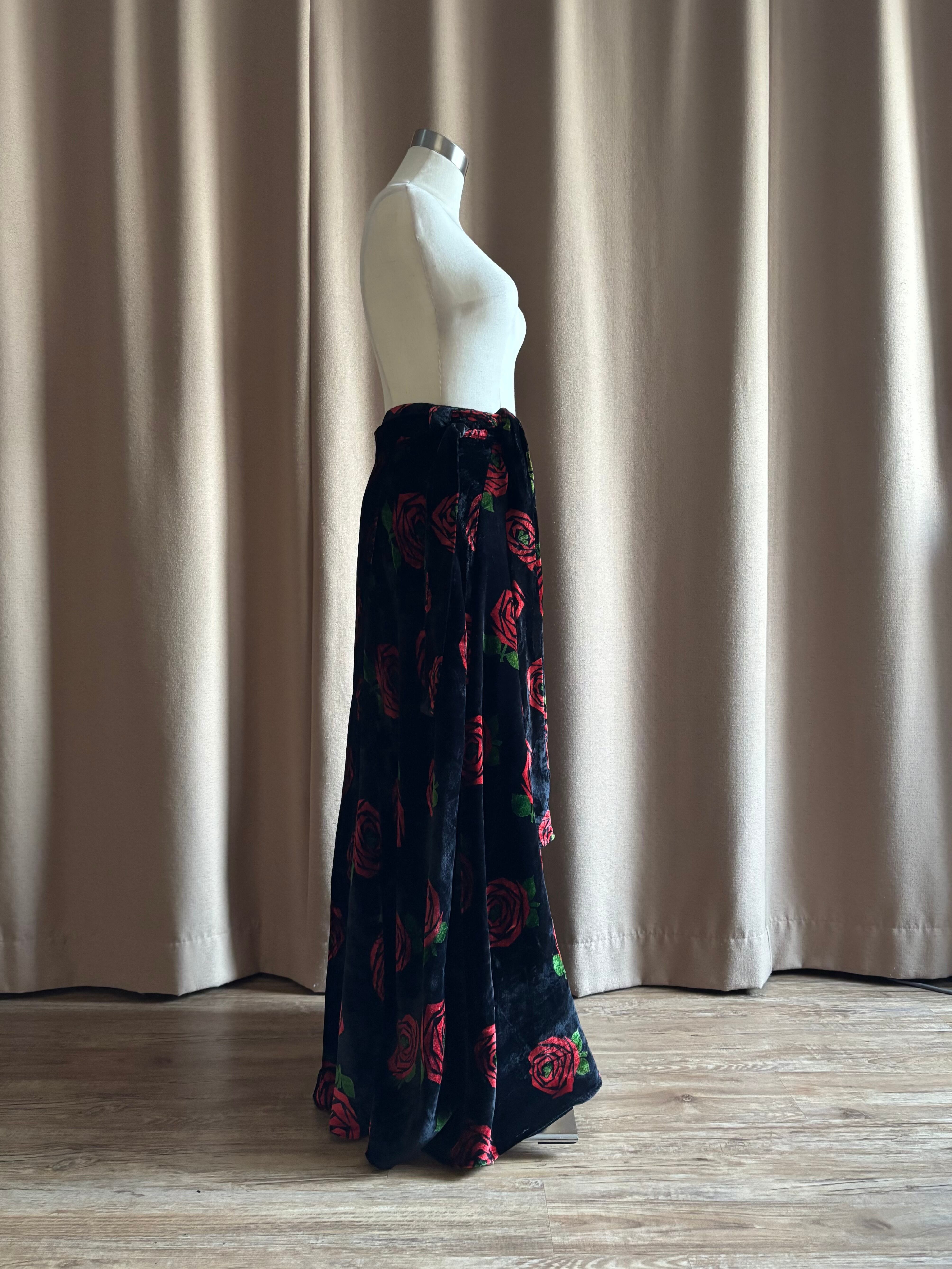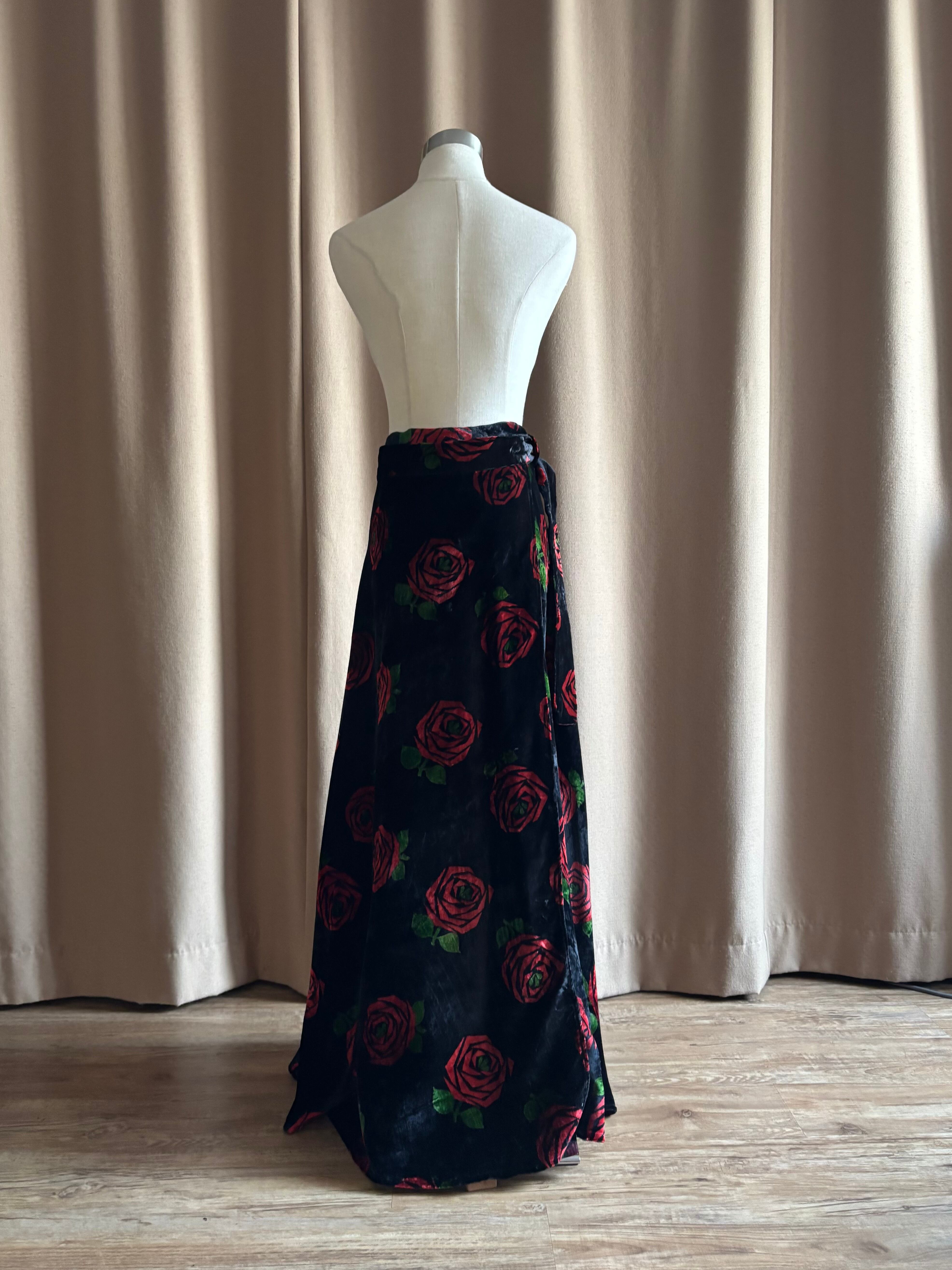 red rose pattern velour maxi skirt-5096-12
