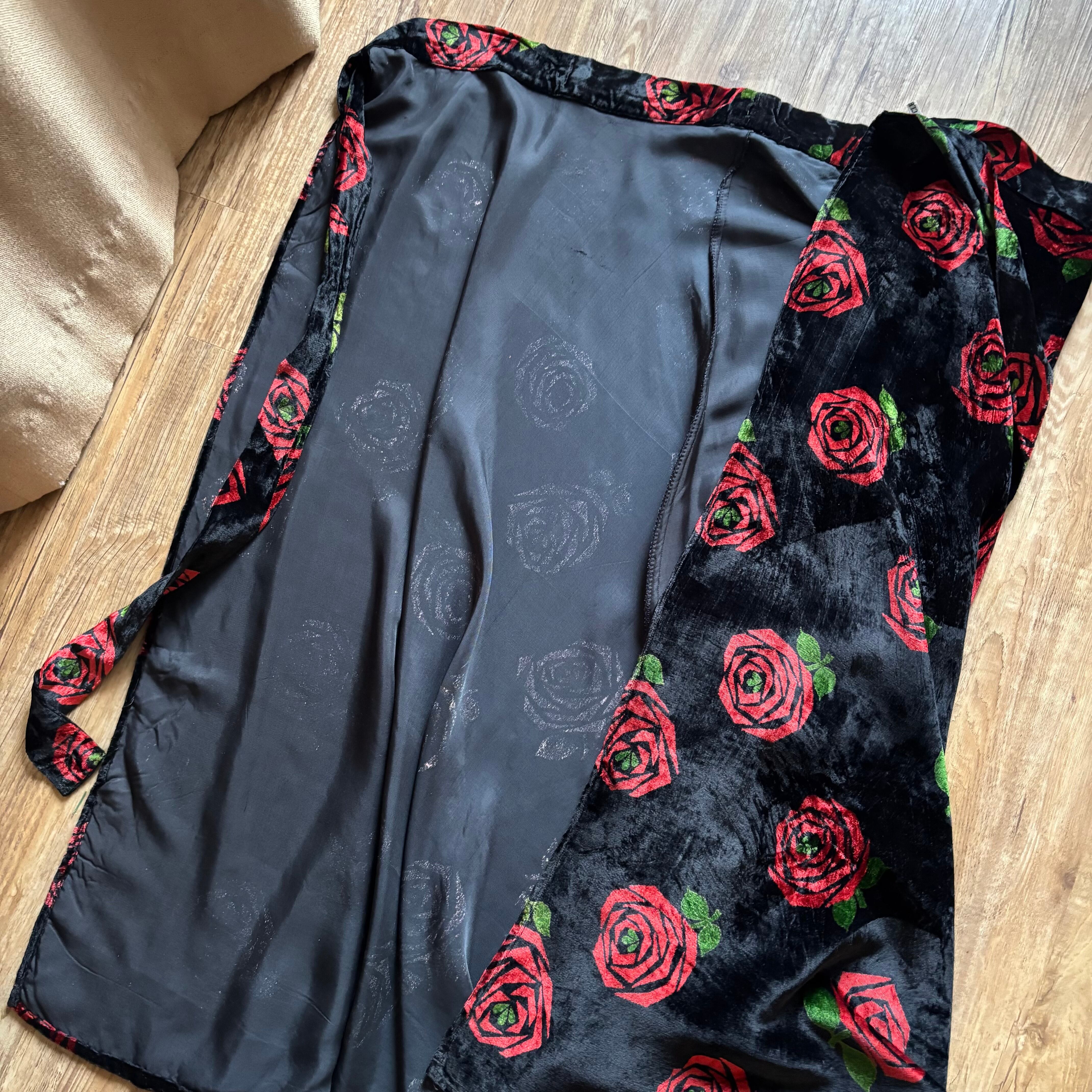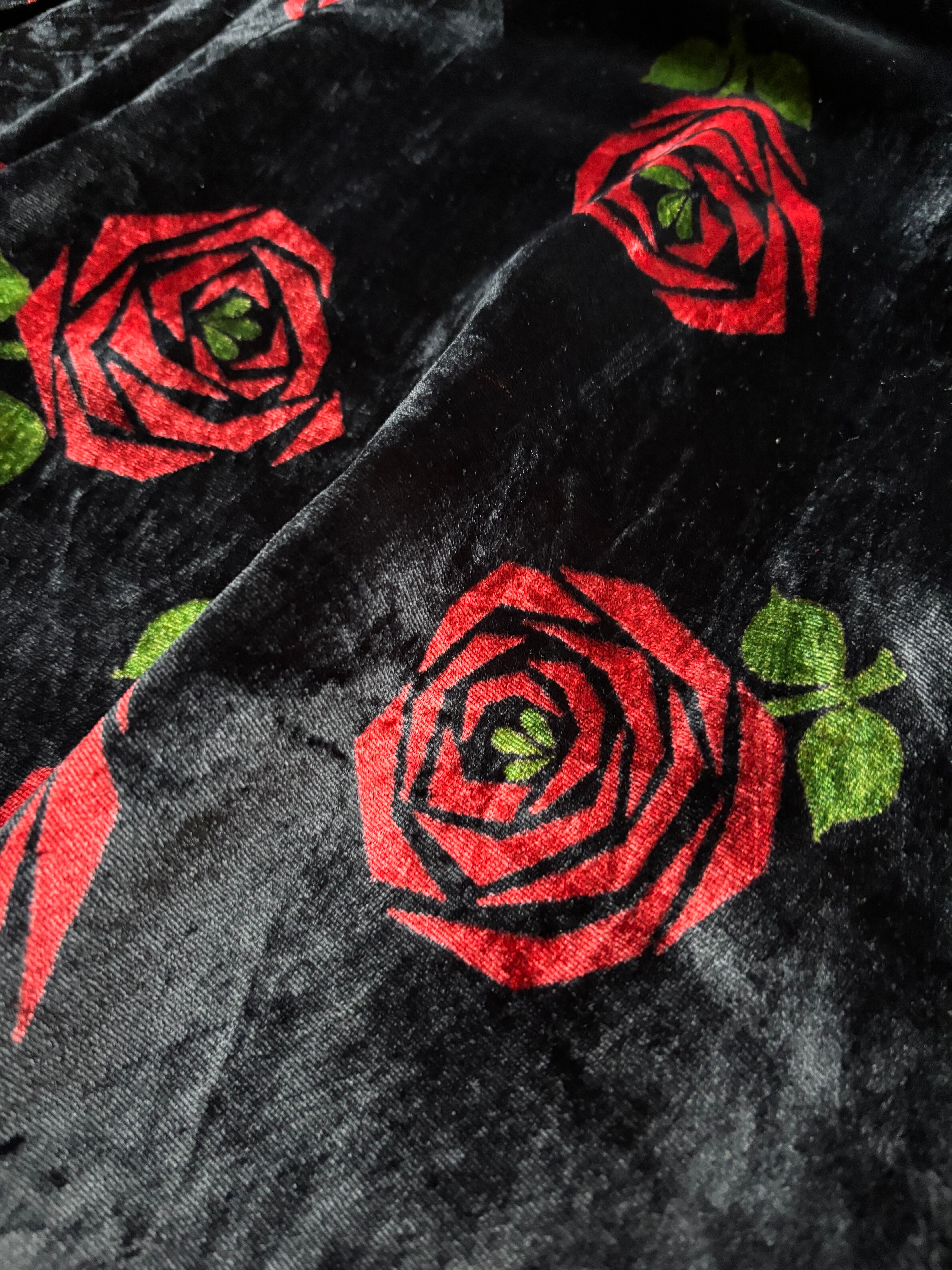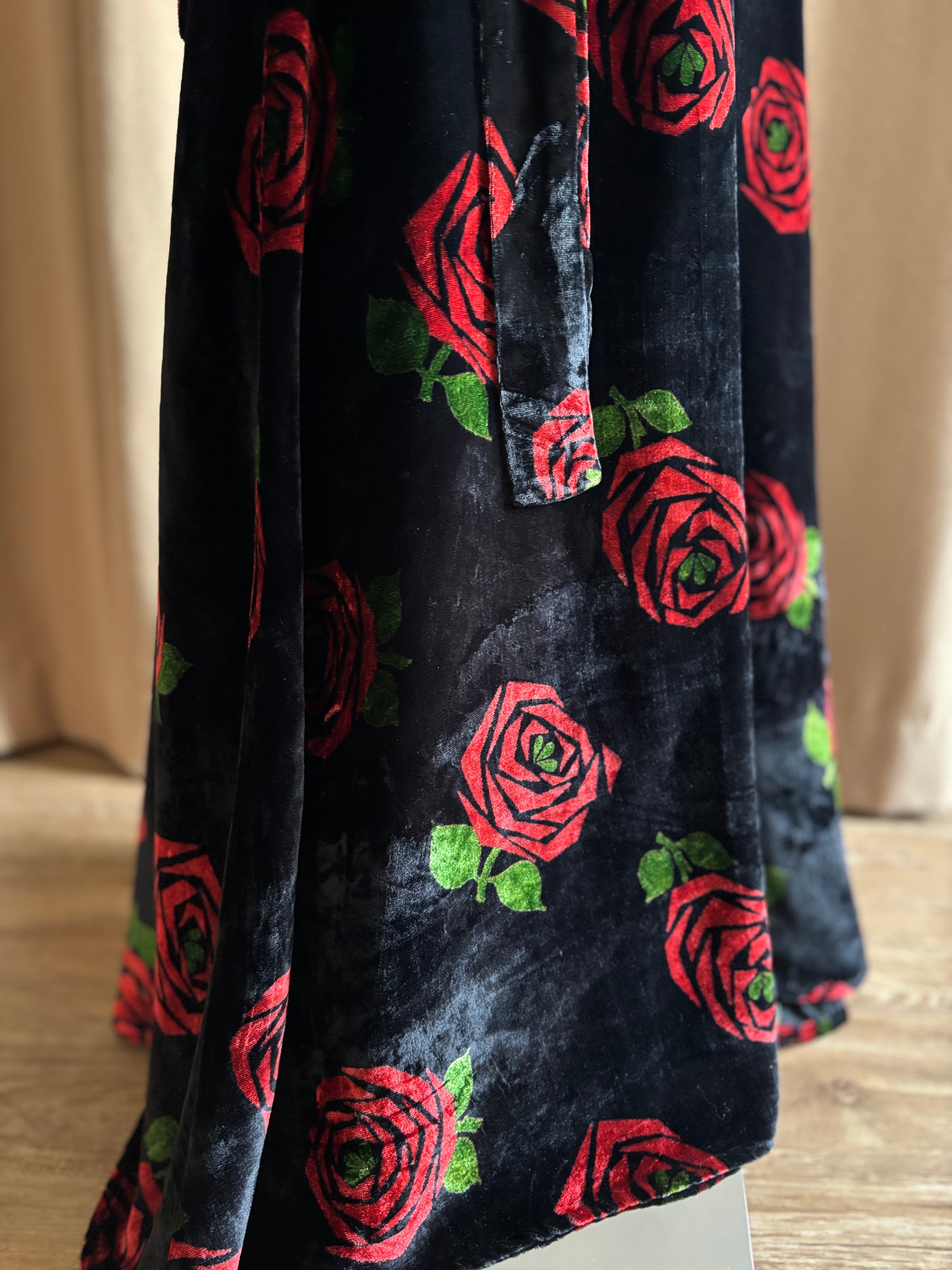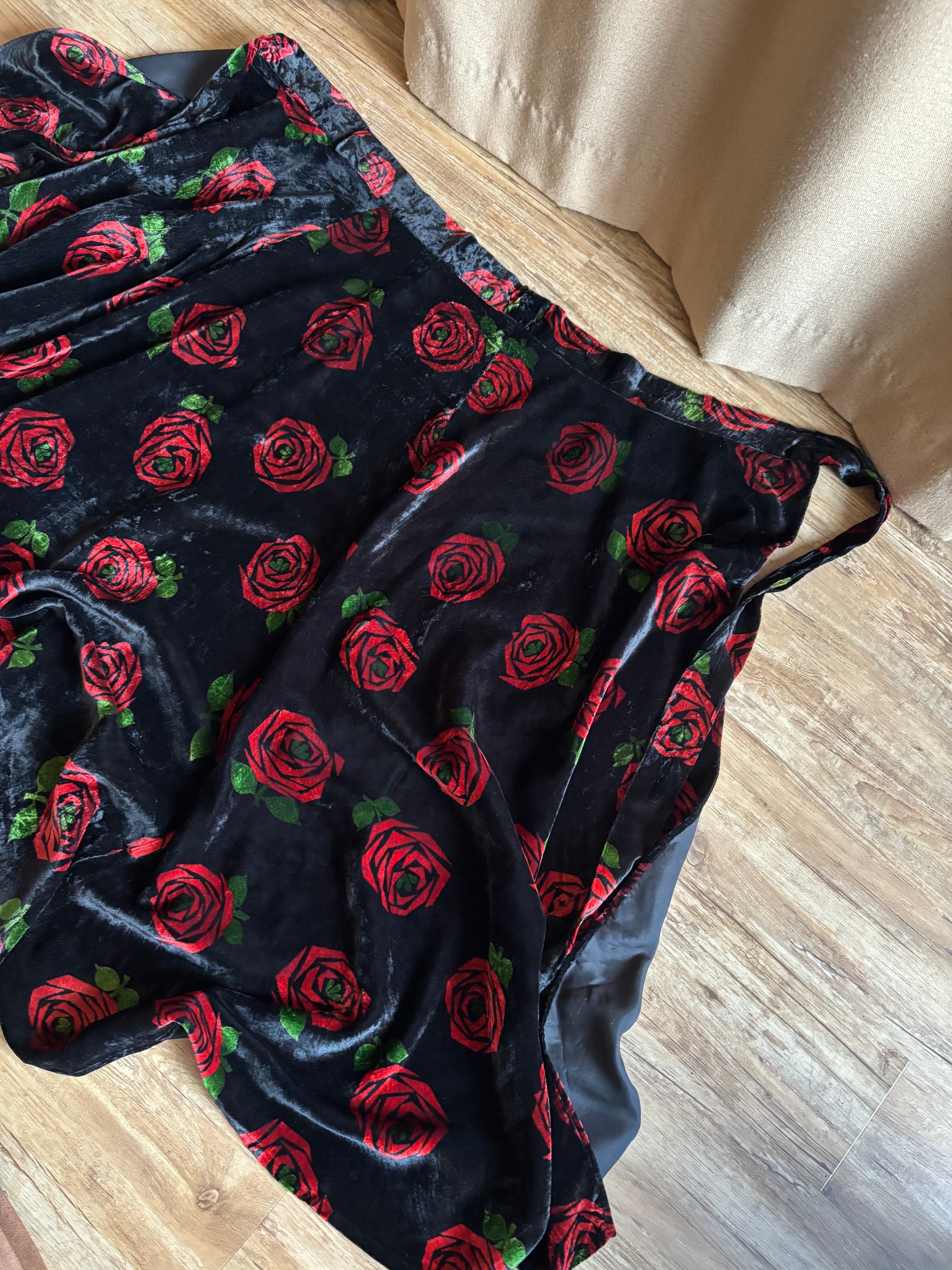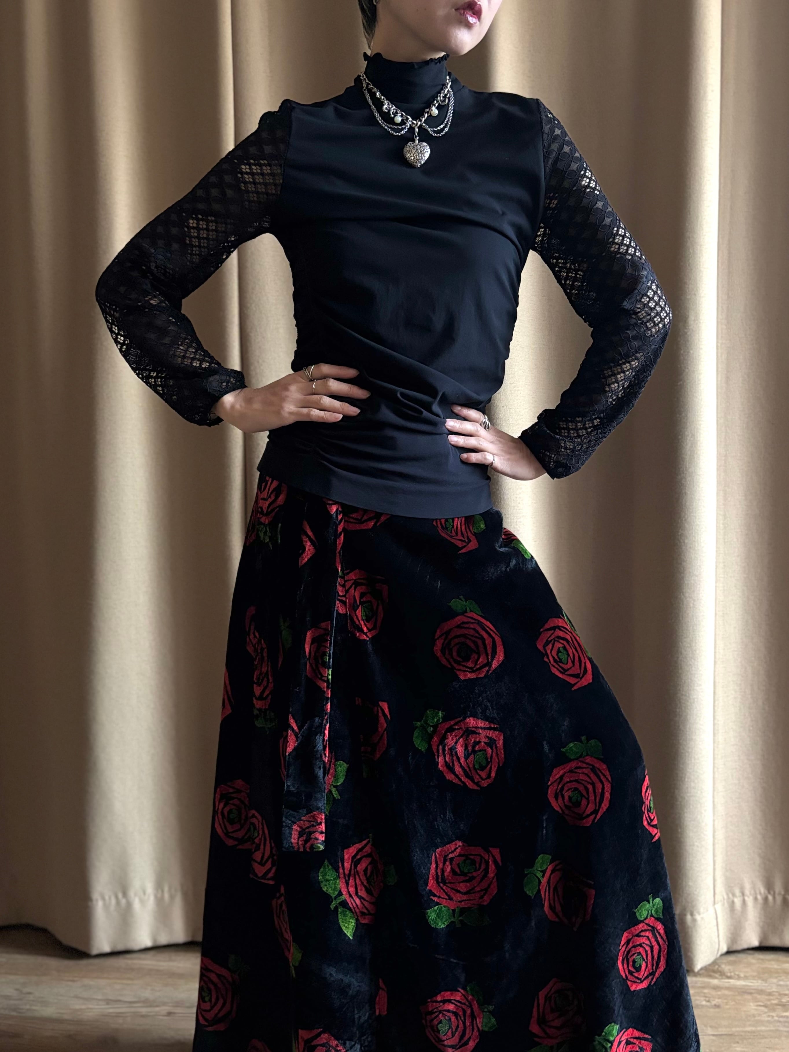 red rose pattern velour maxi skirt-5096-12
