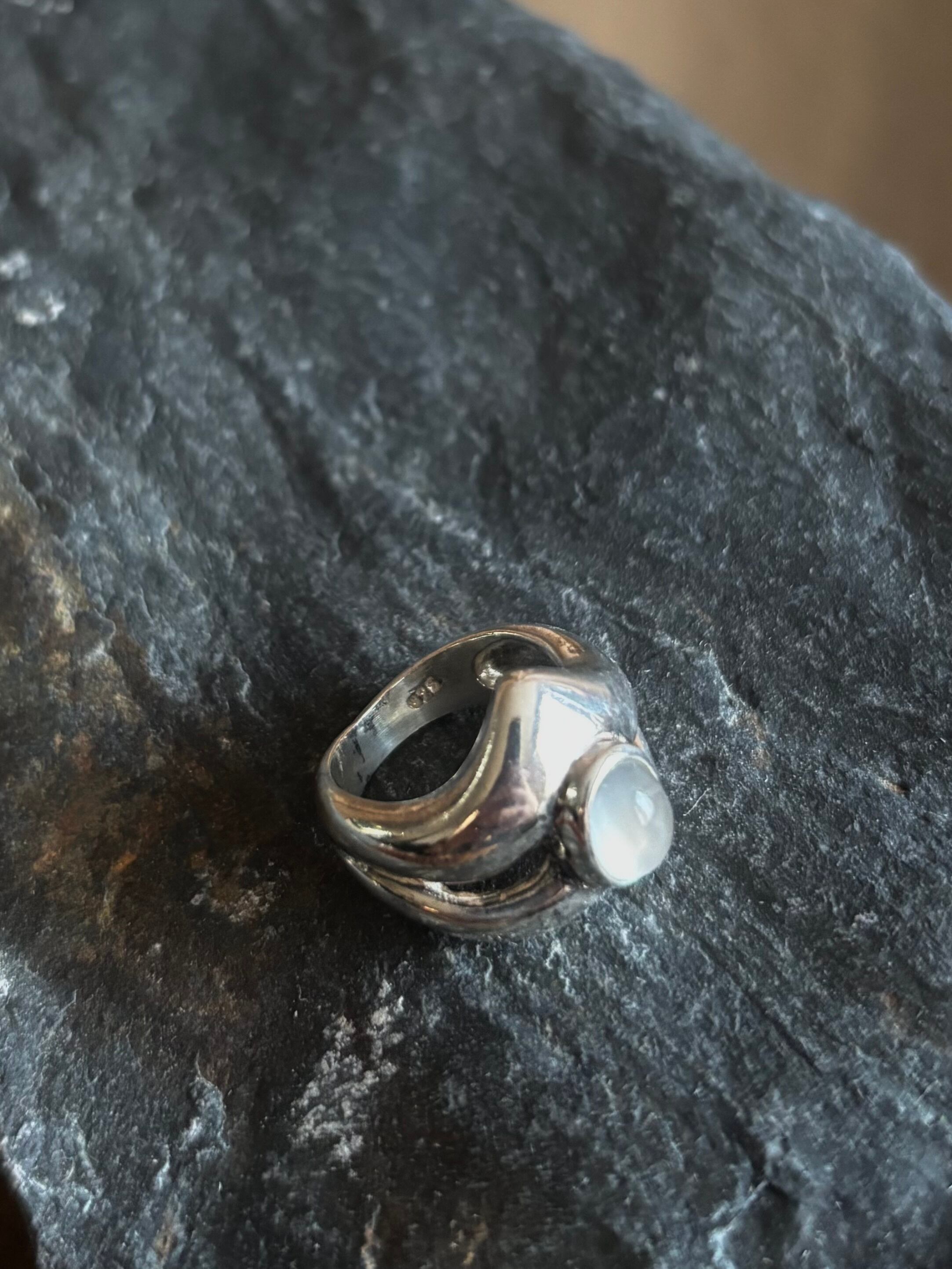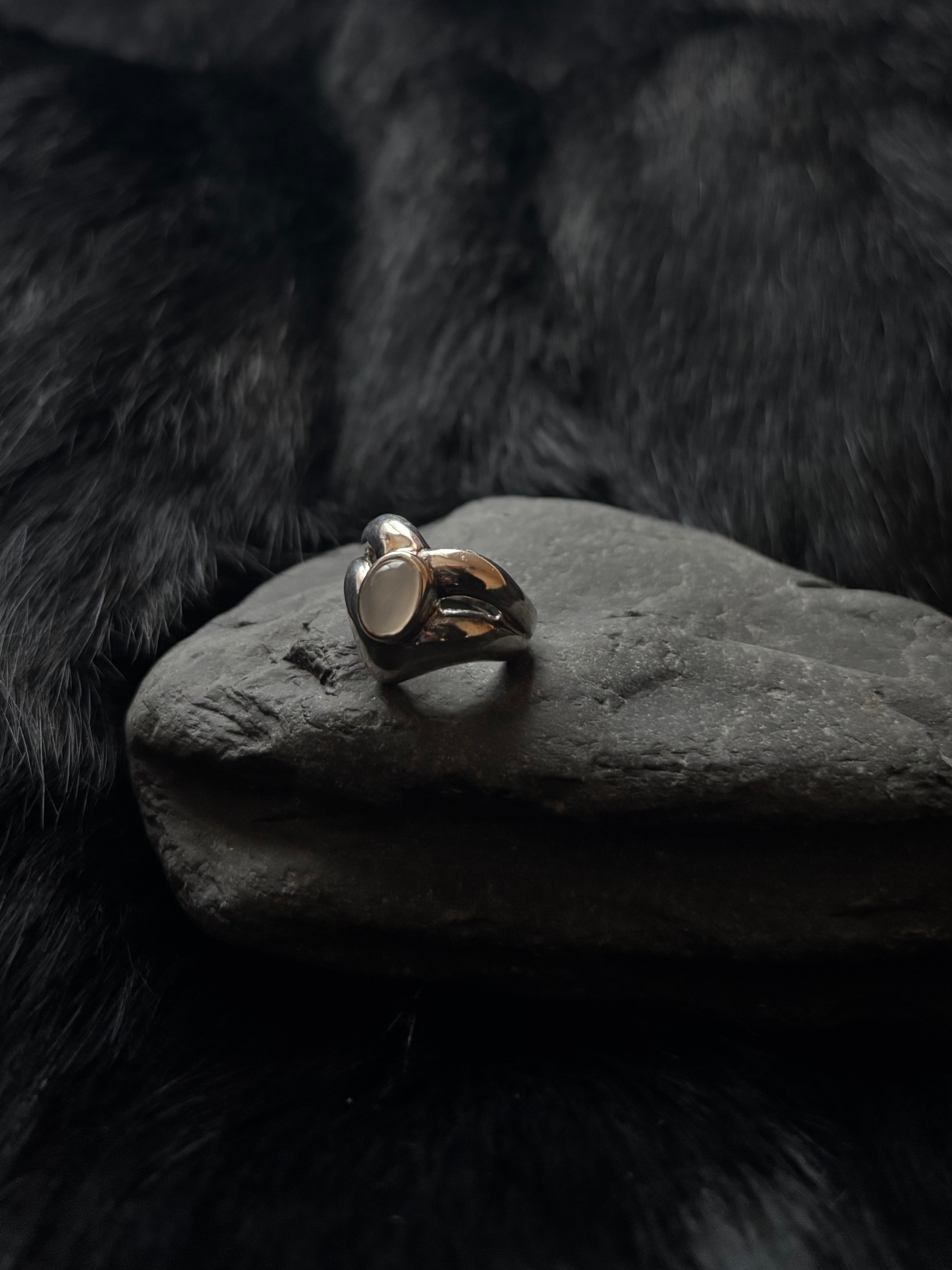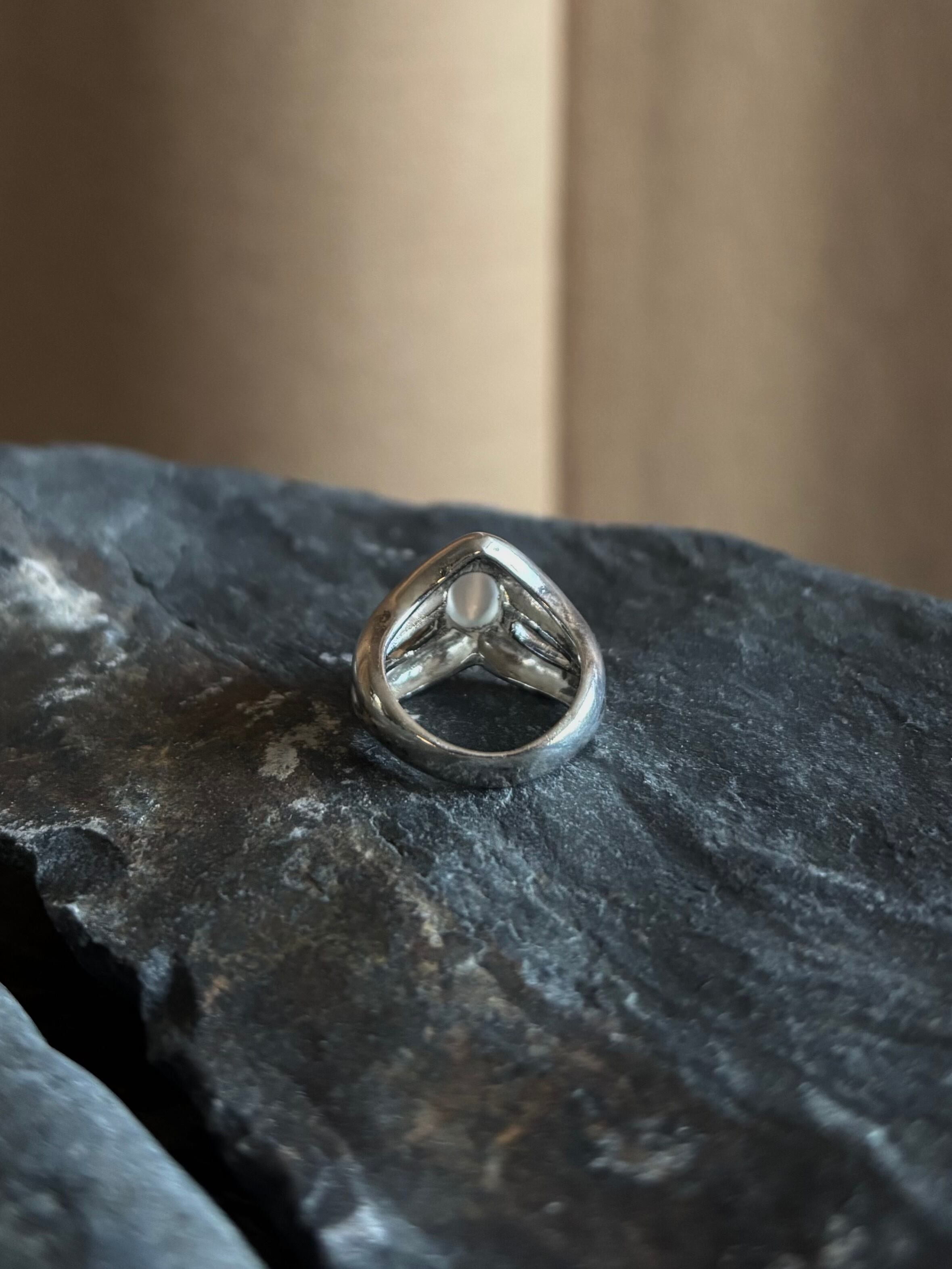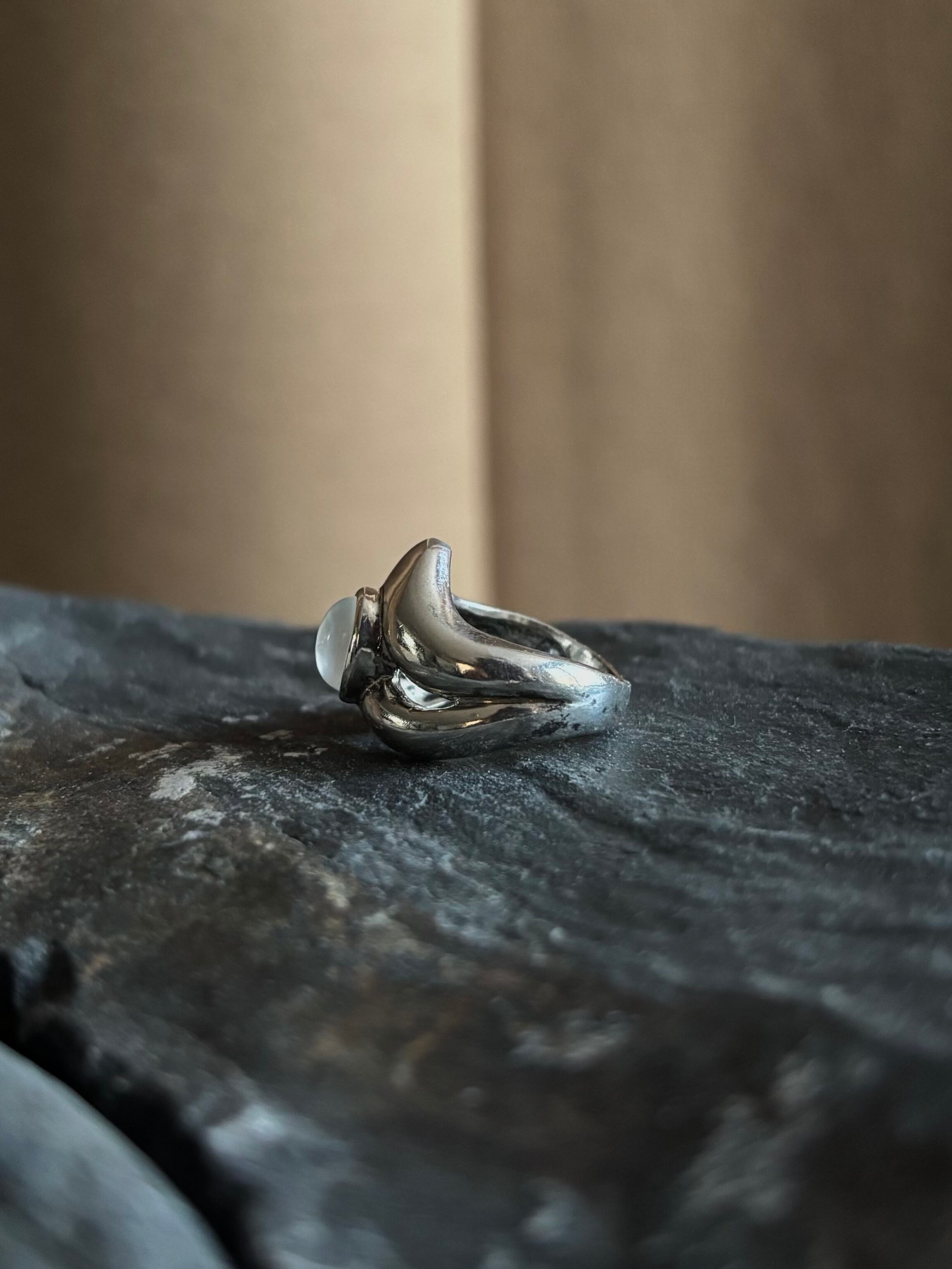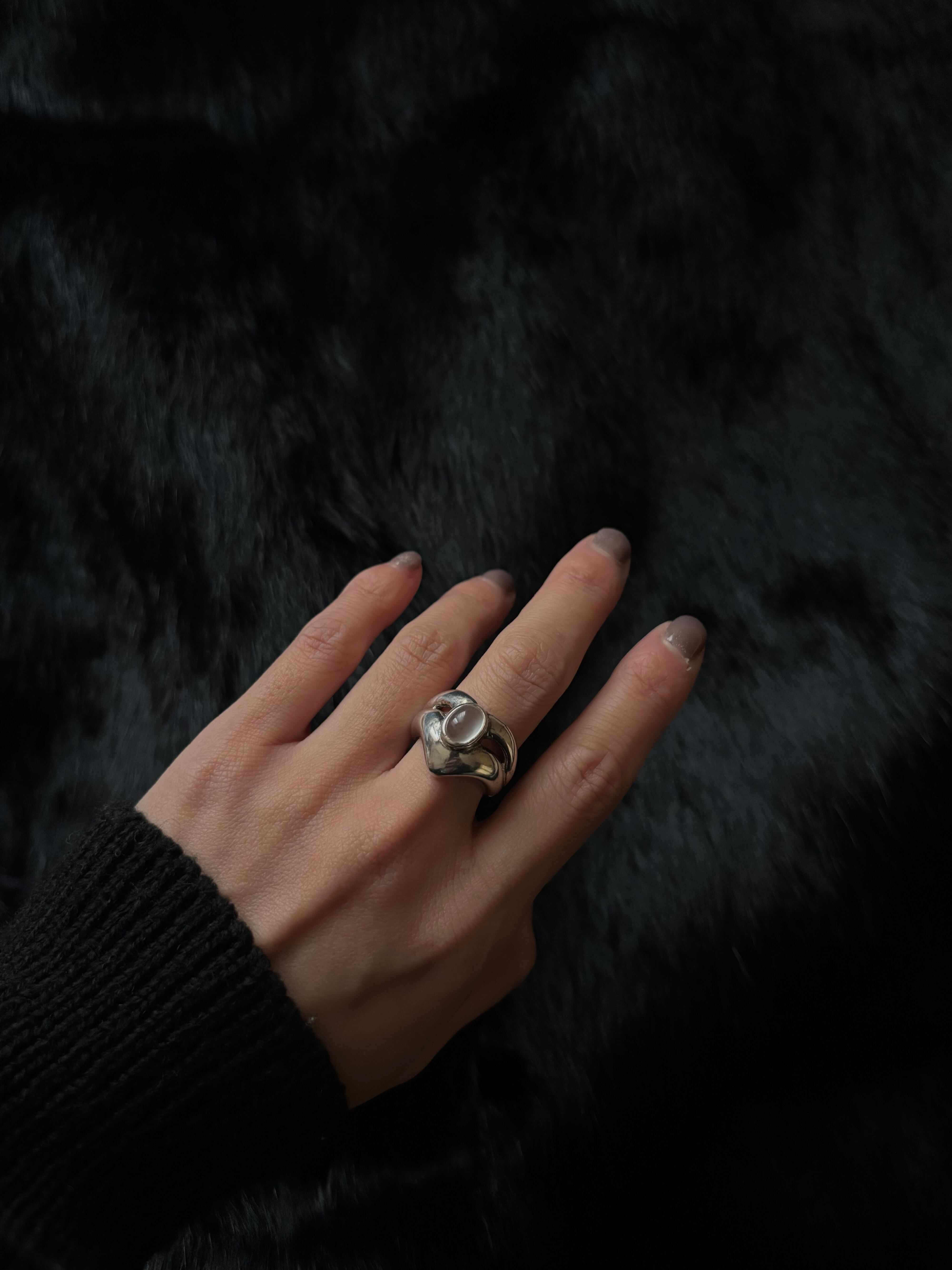 Silverの重厚感と天然石の幻想的な輝きが目を惹く逸品。