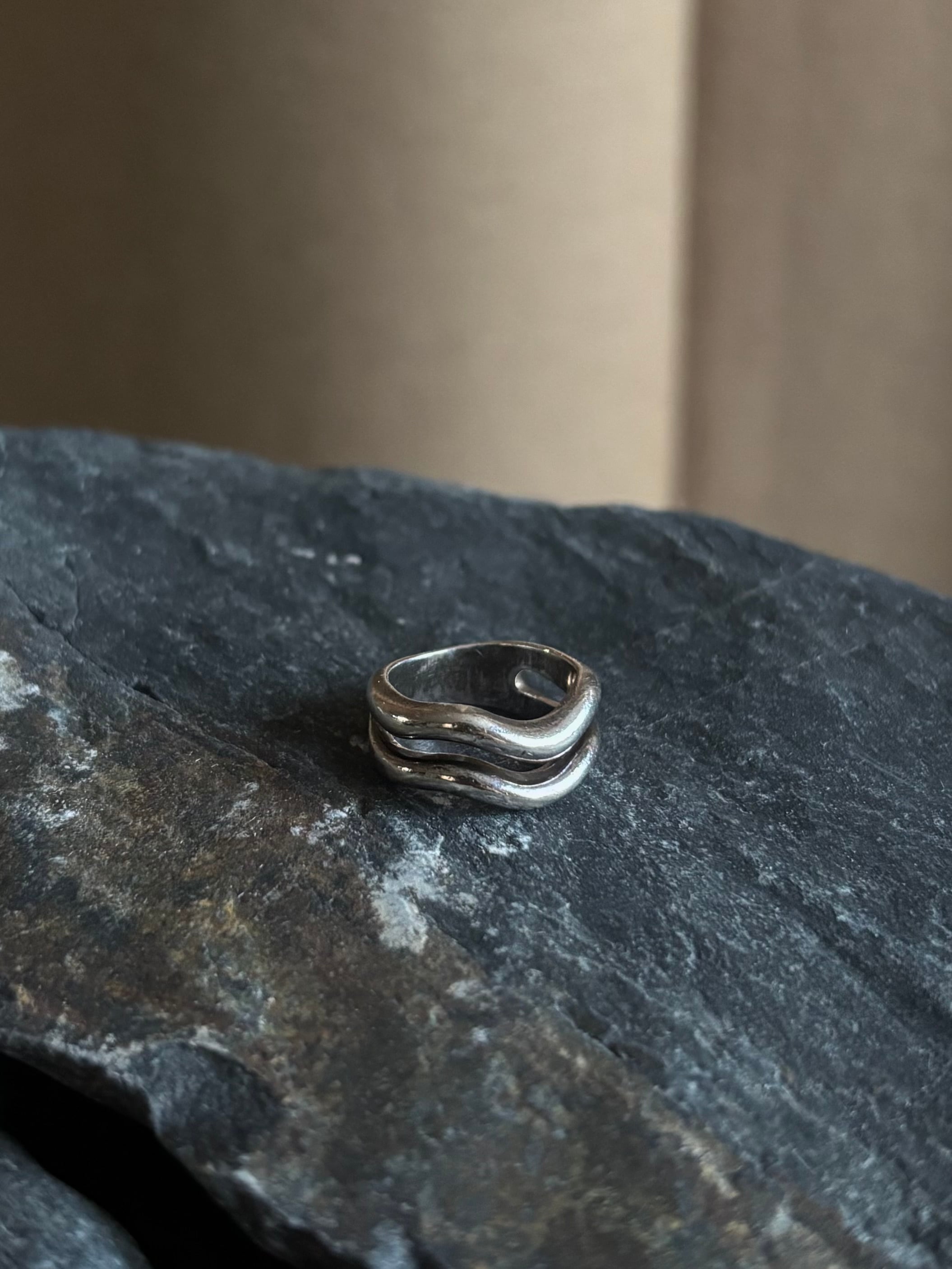 2連のウェーブデザインが印象的なSilverピンキーリング。