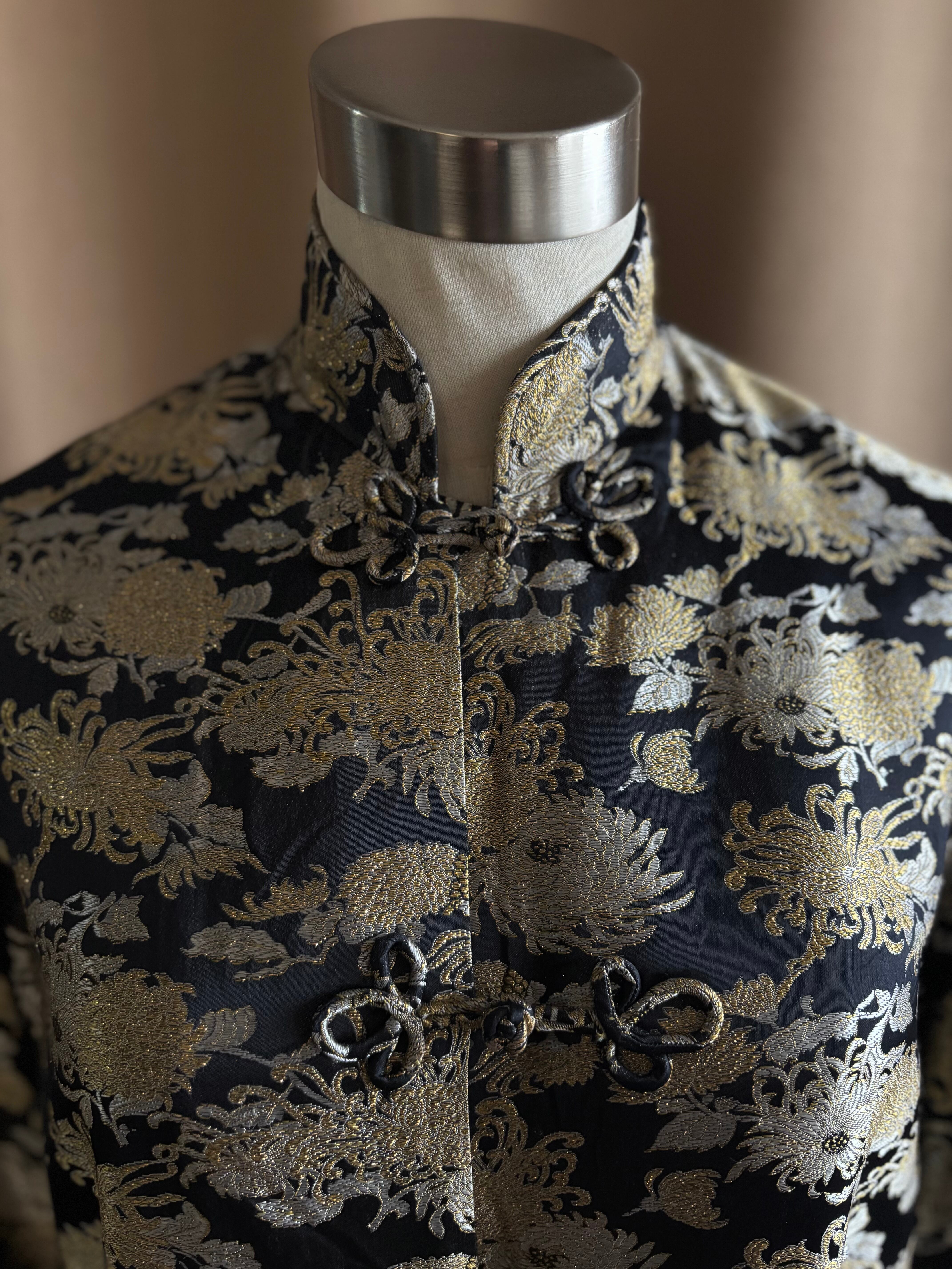 静謐なブラックベースに、繊細なジャガード柄が美しく光を放つ拘りのファブリック。