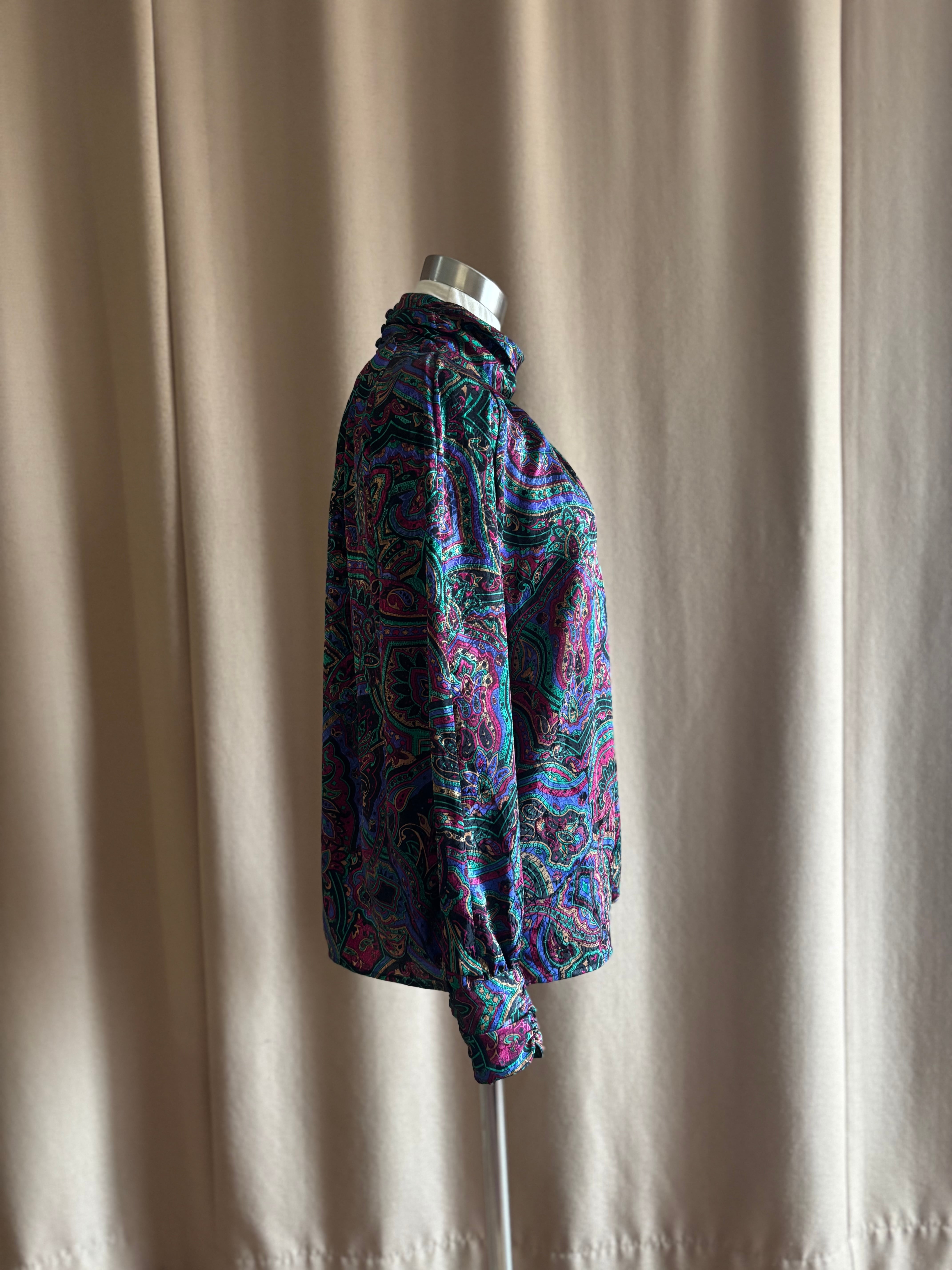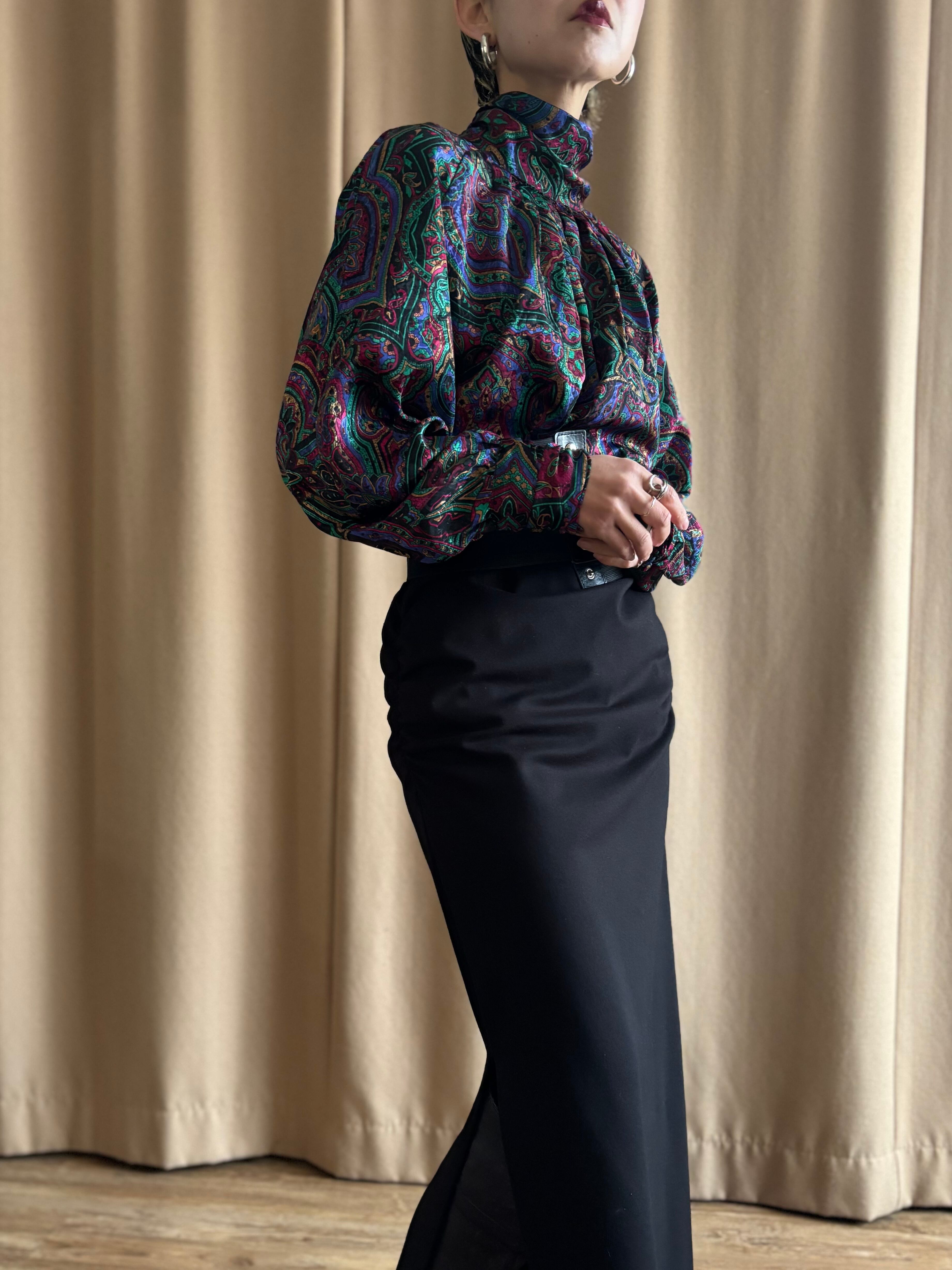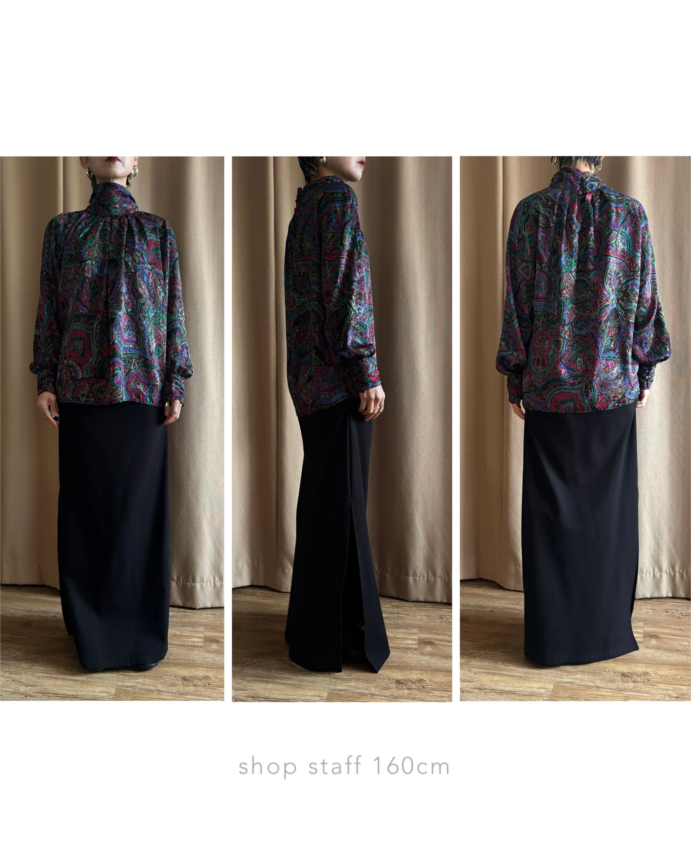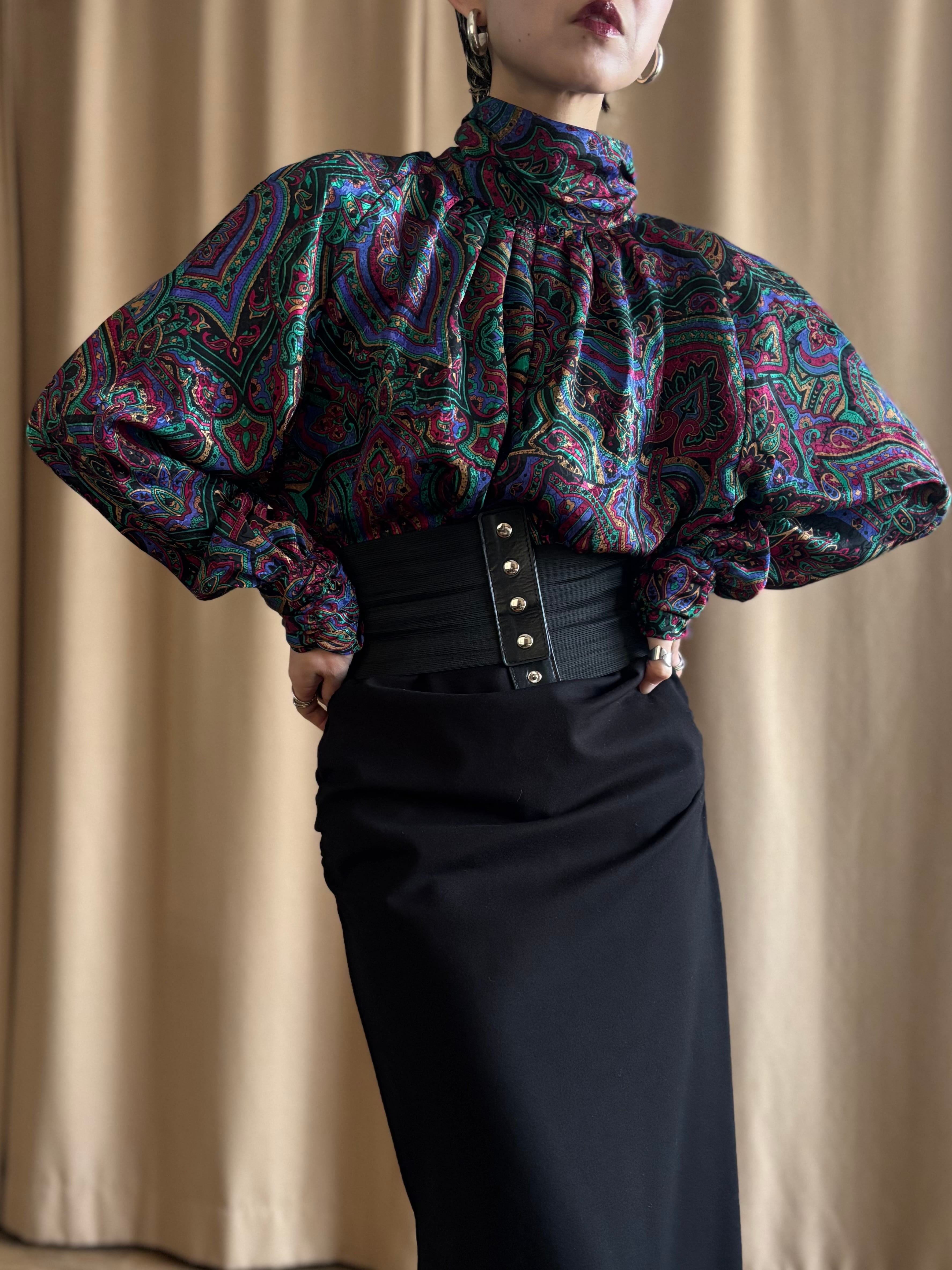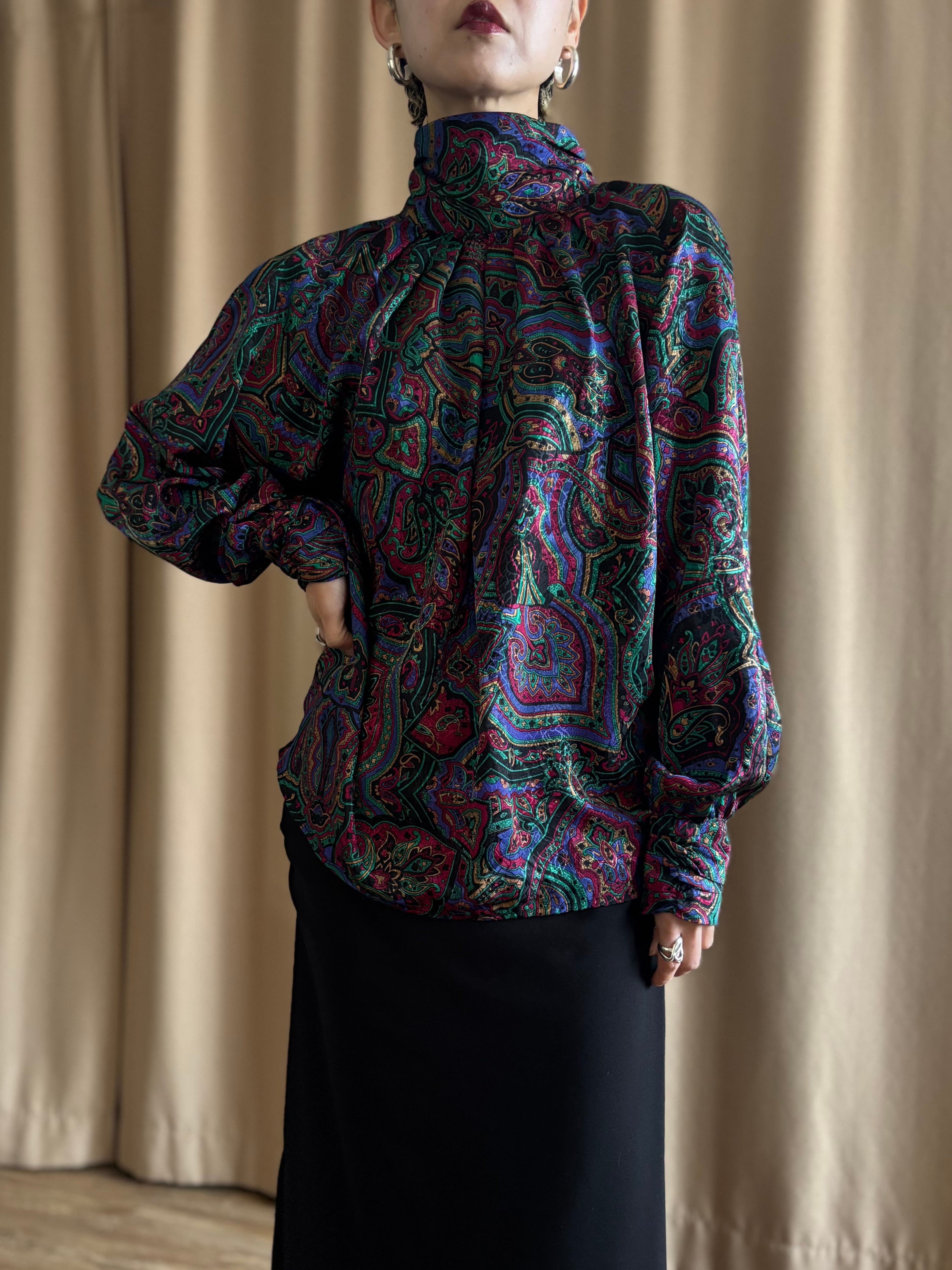 色彩豊かな配色と精妙なペイズリー柄が存在感を放つレトロモードな一着。