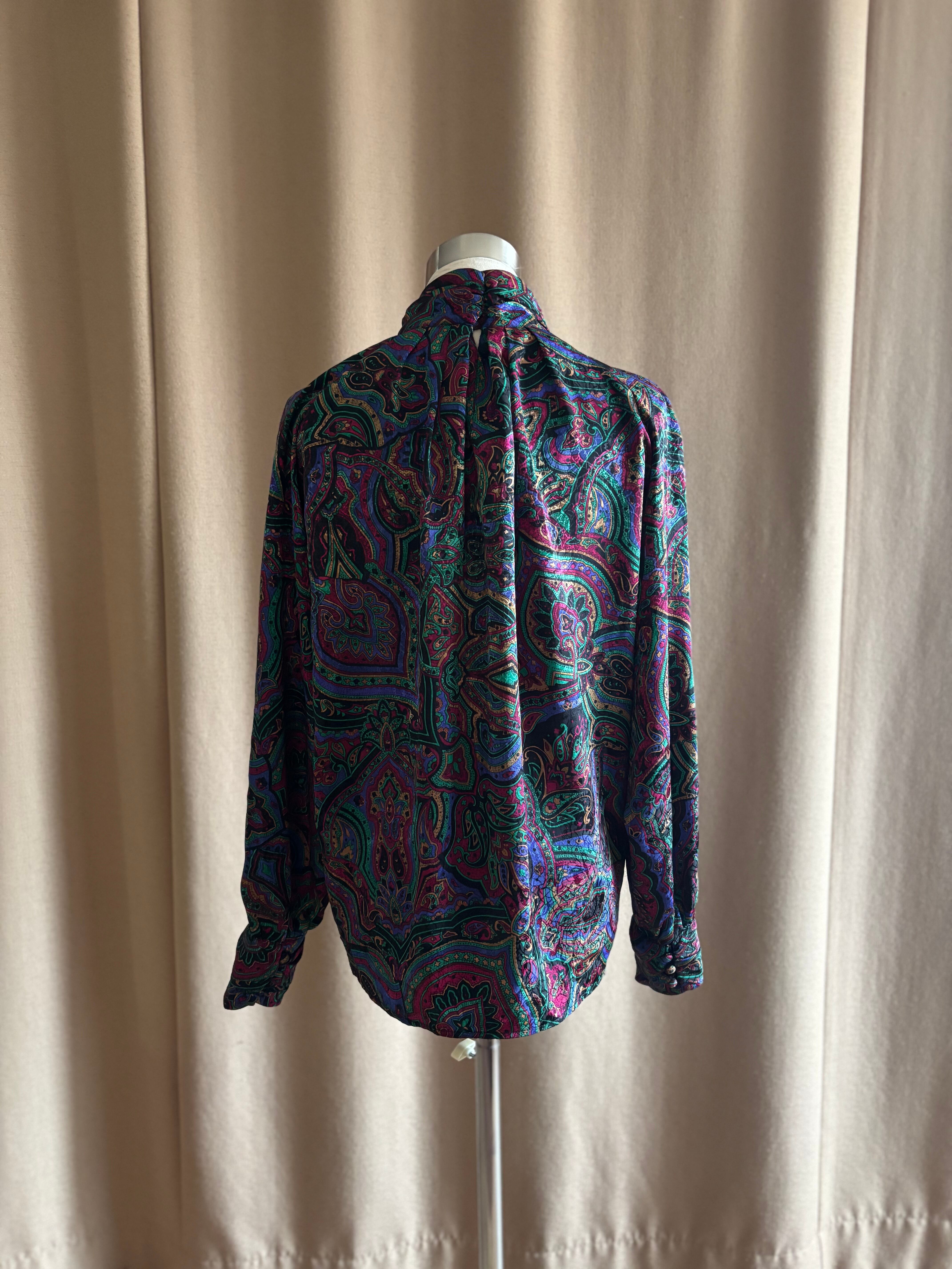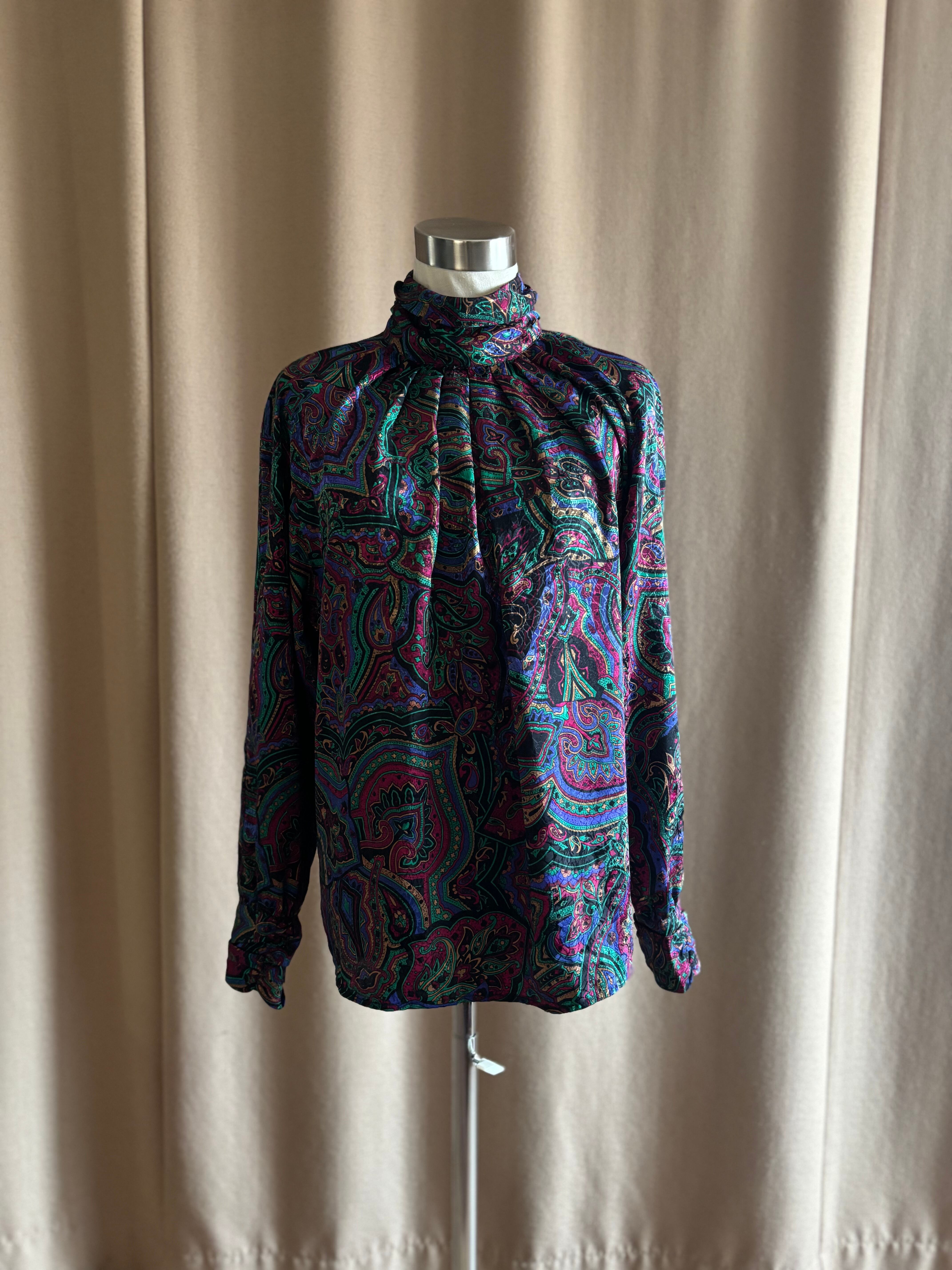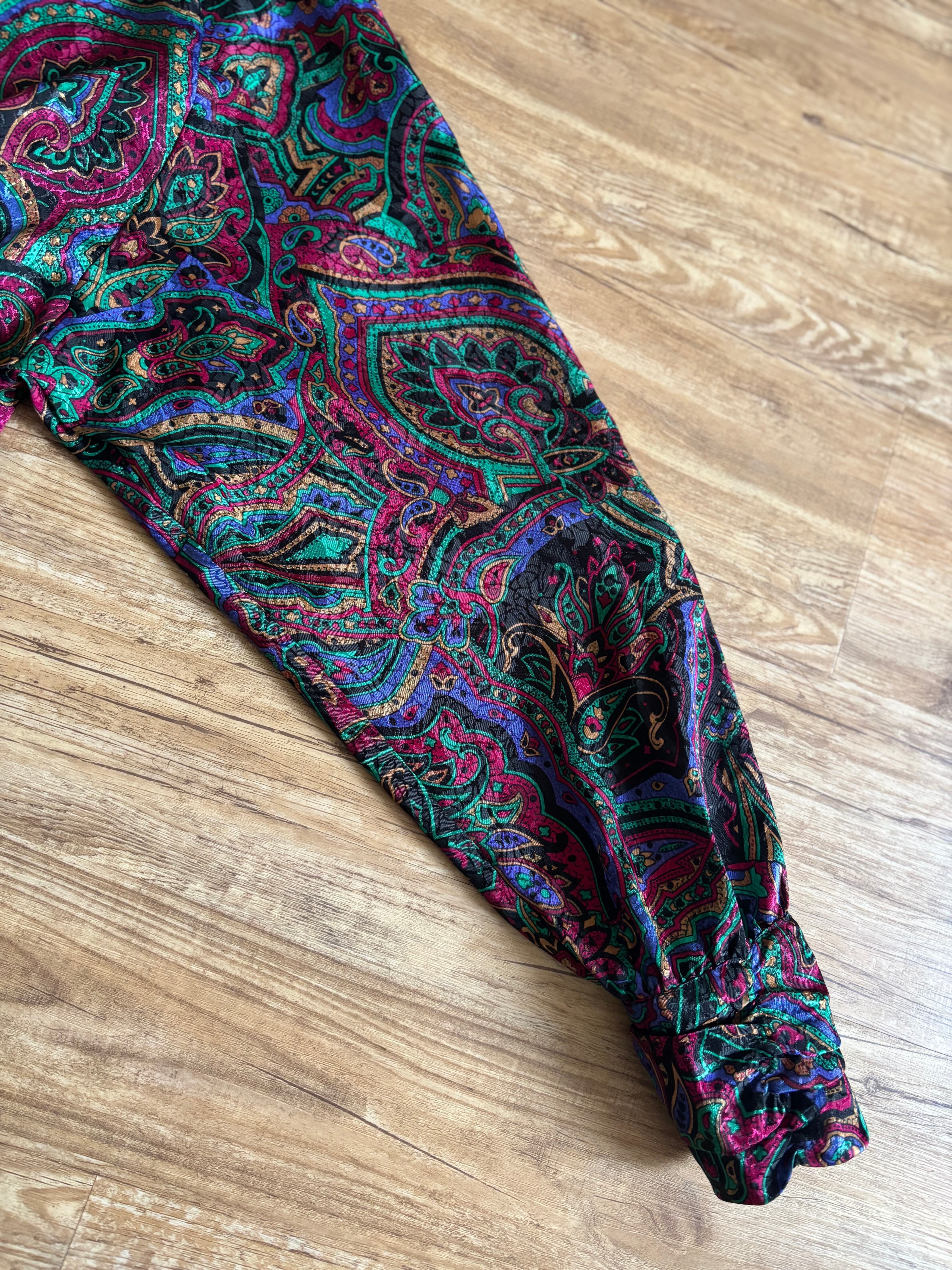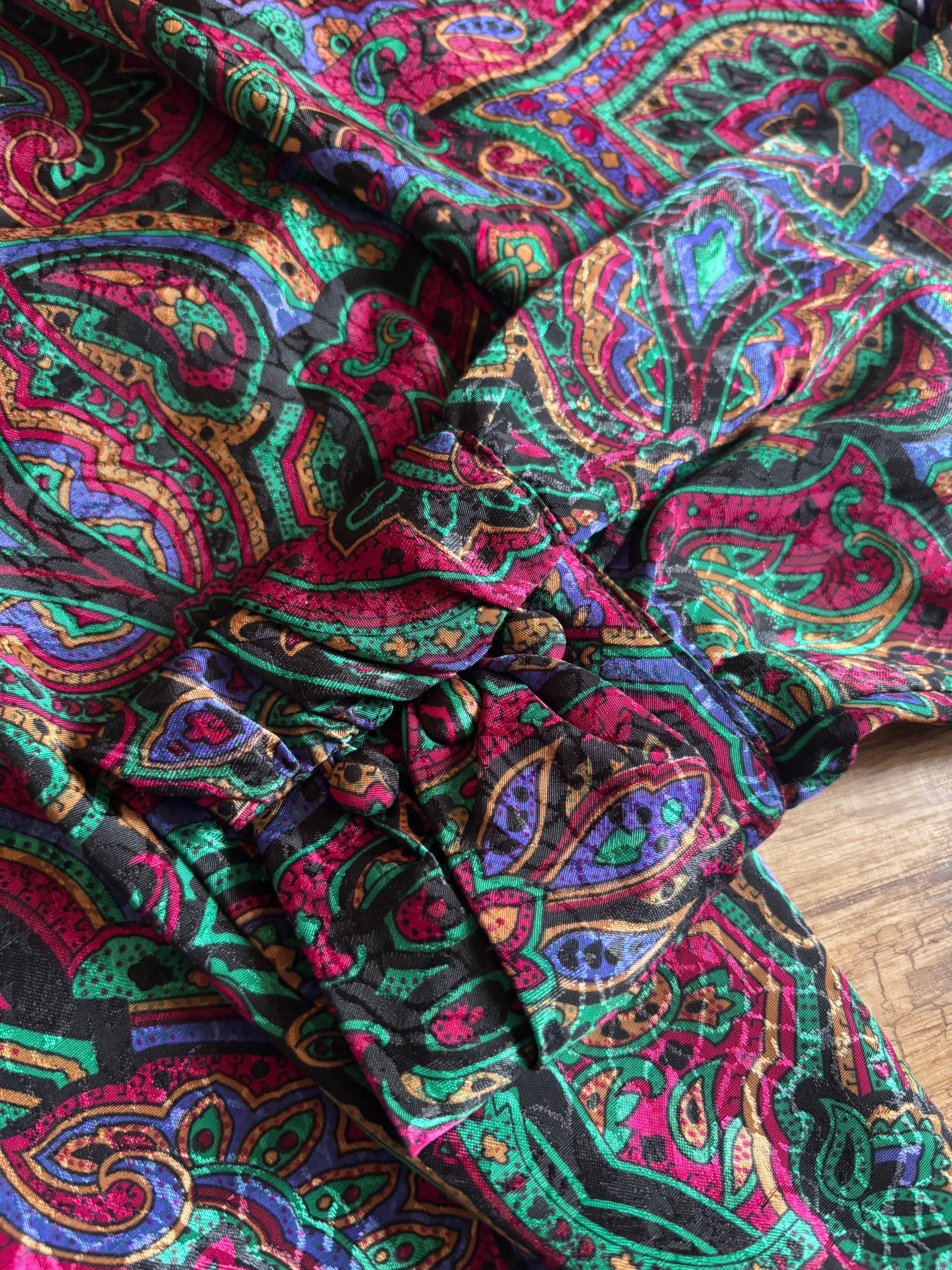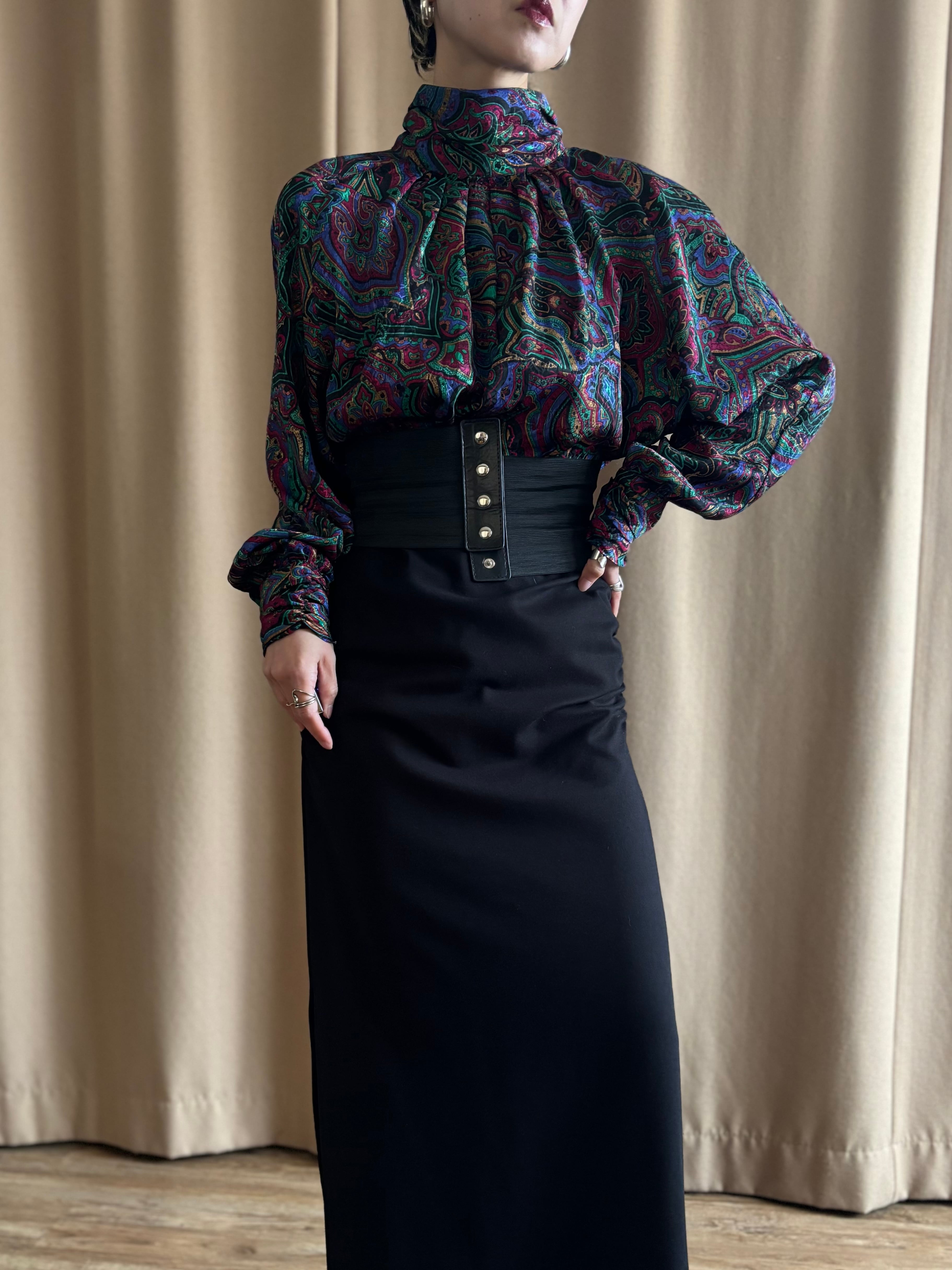色彩豊かな配色と精妙なペイズリー柄が存在感を放つレトロモードな一着。