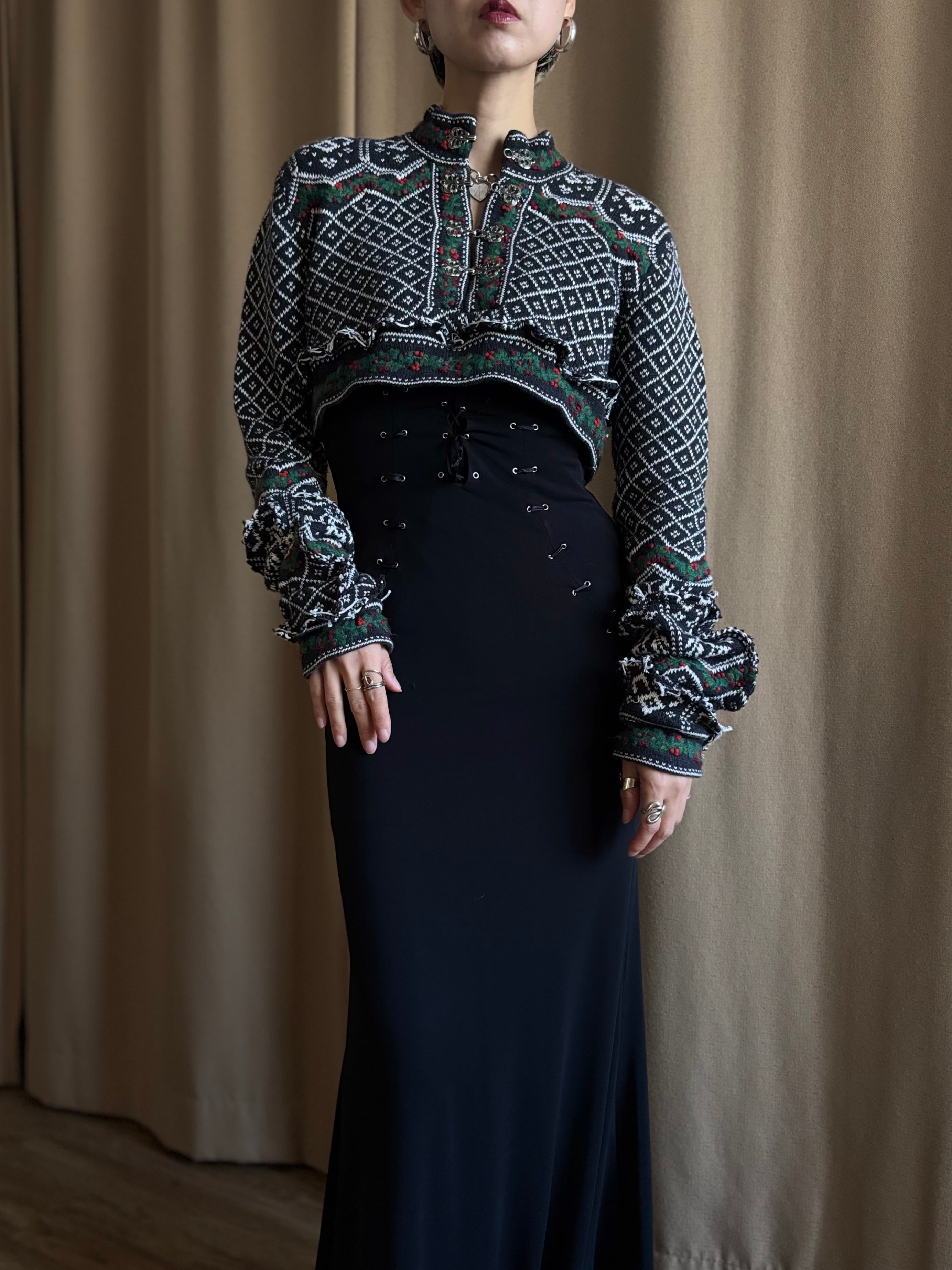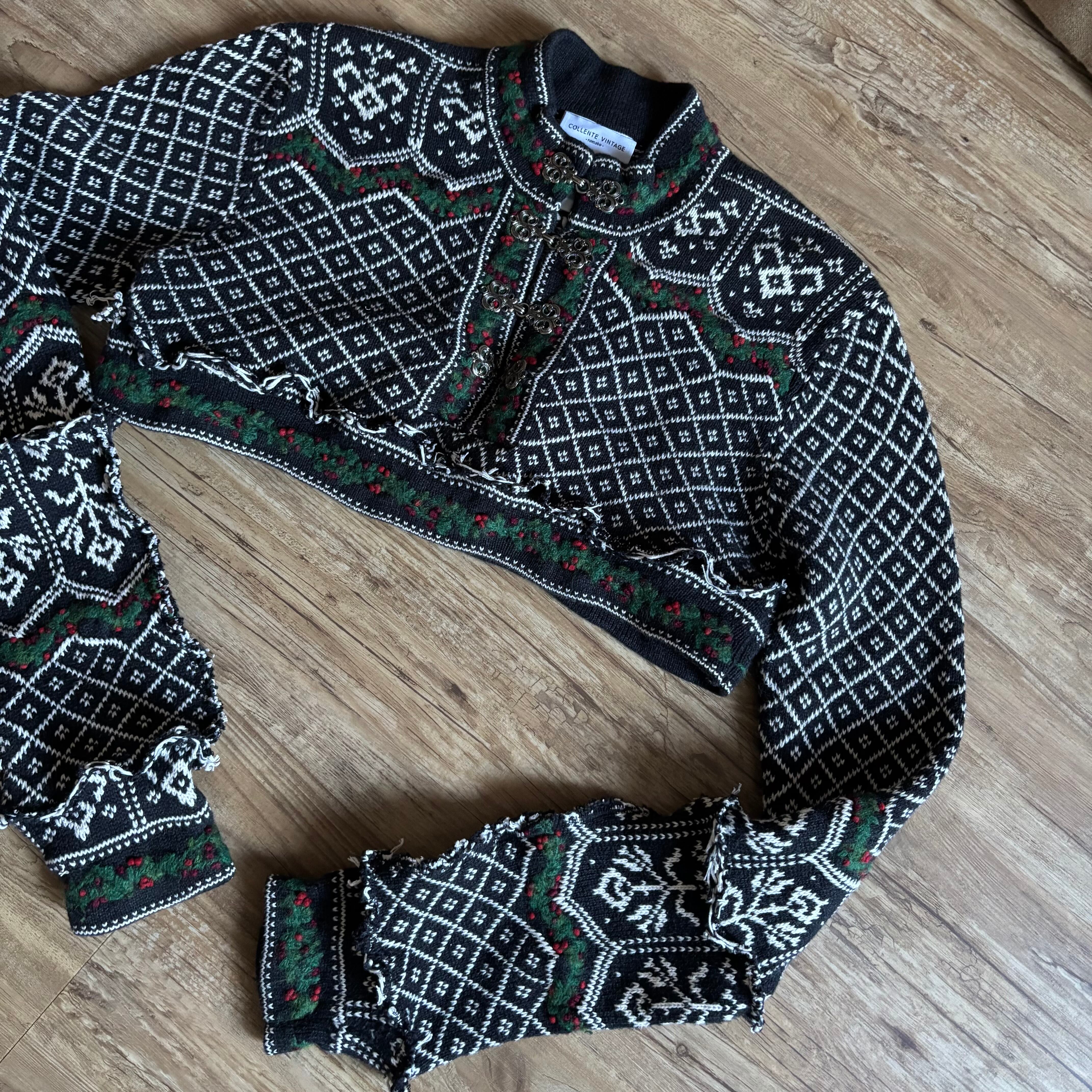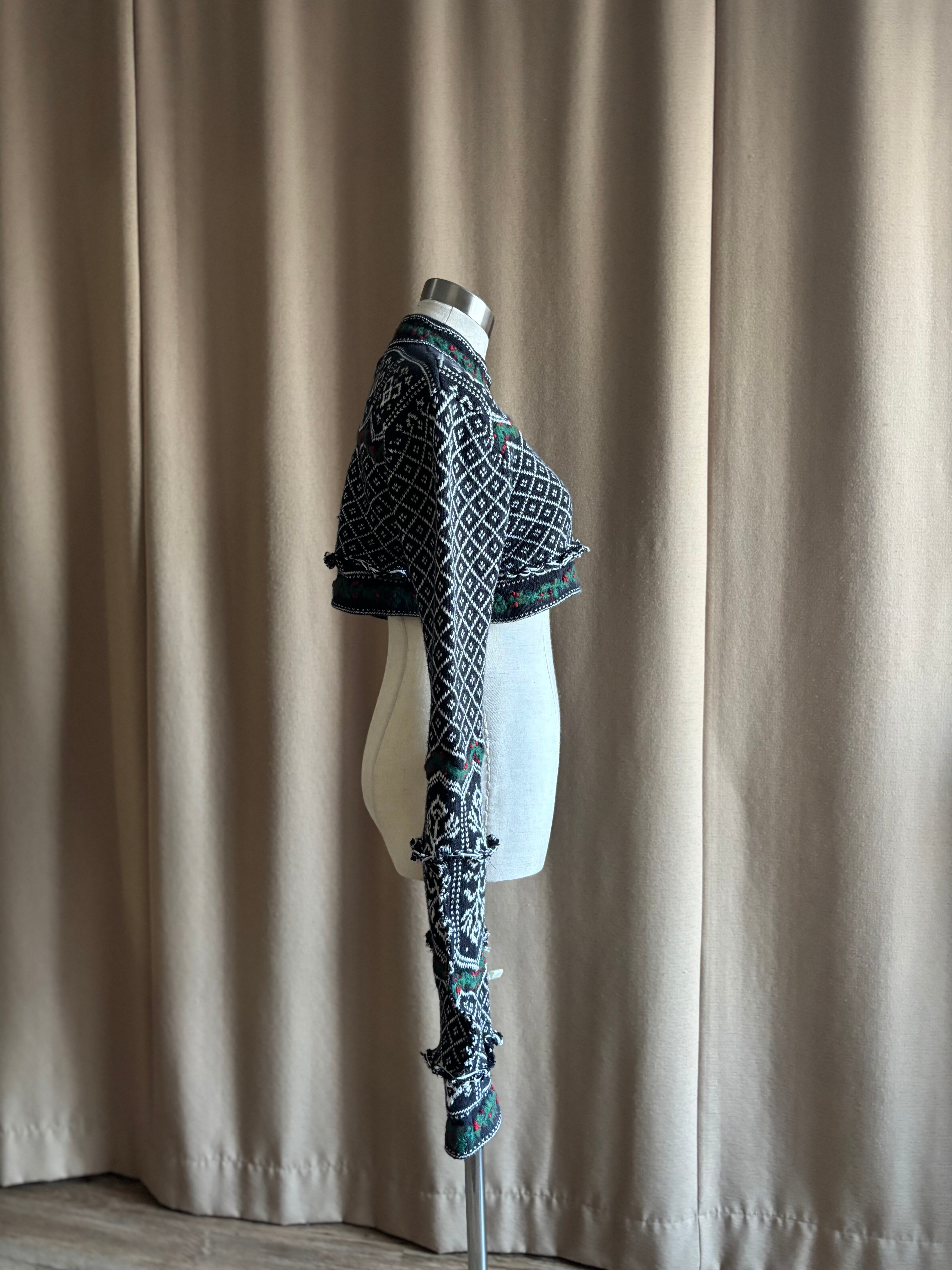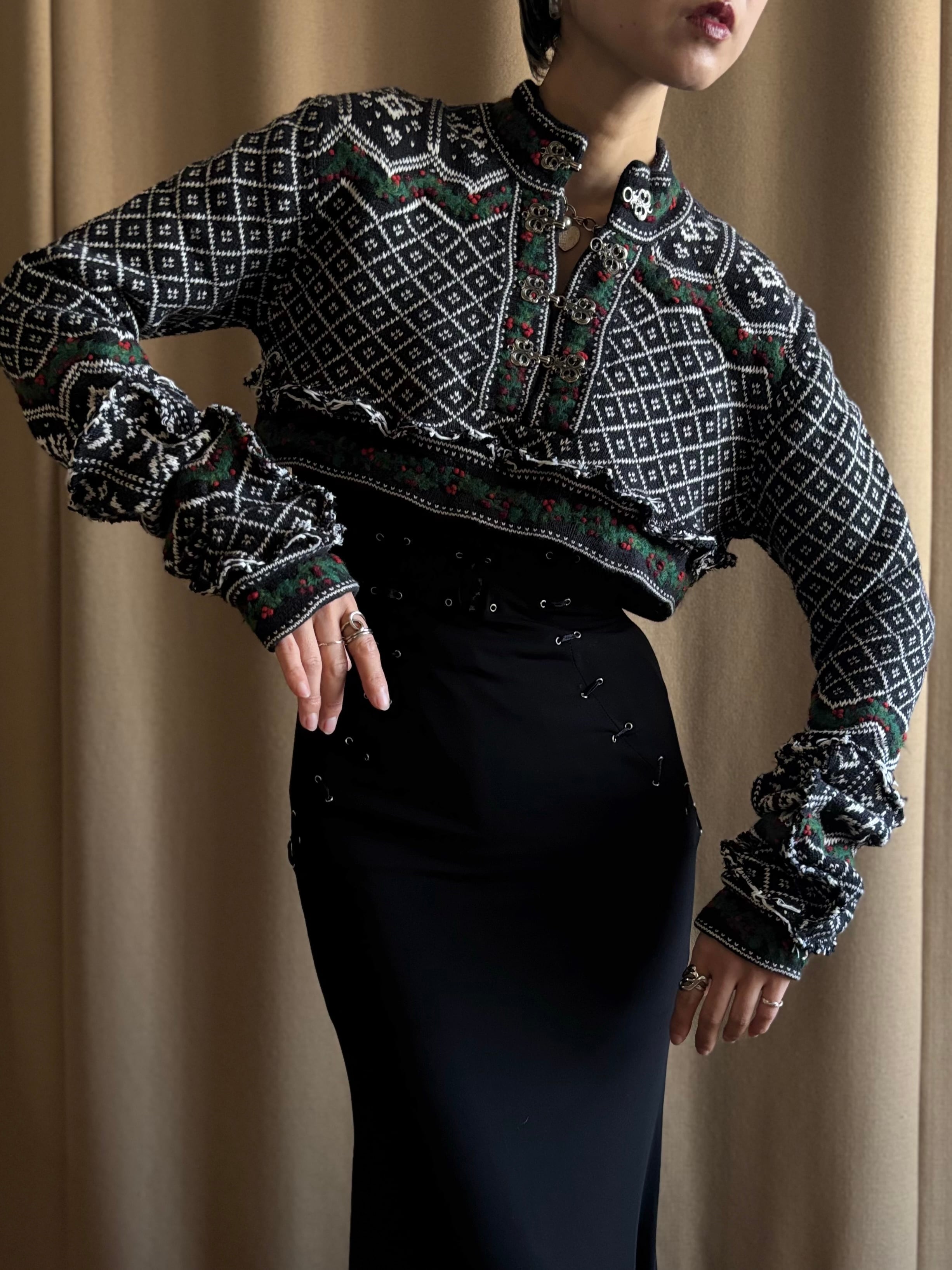 伝統的なチロリアン柄を、洗練されたモードバランスで昇華したリメイクコットンニット。