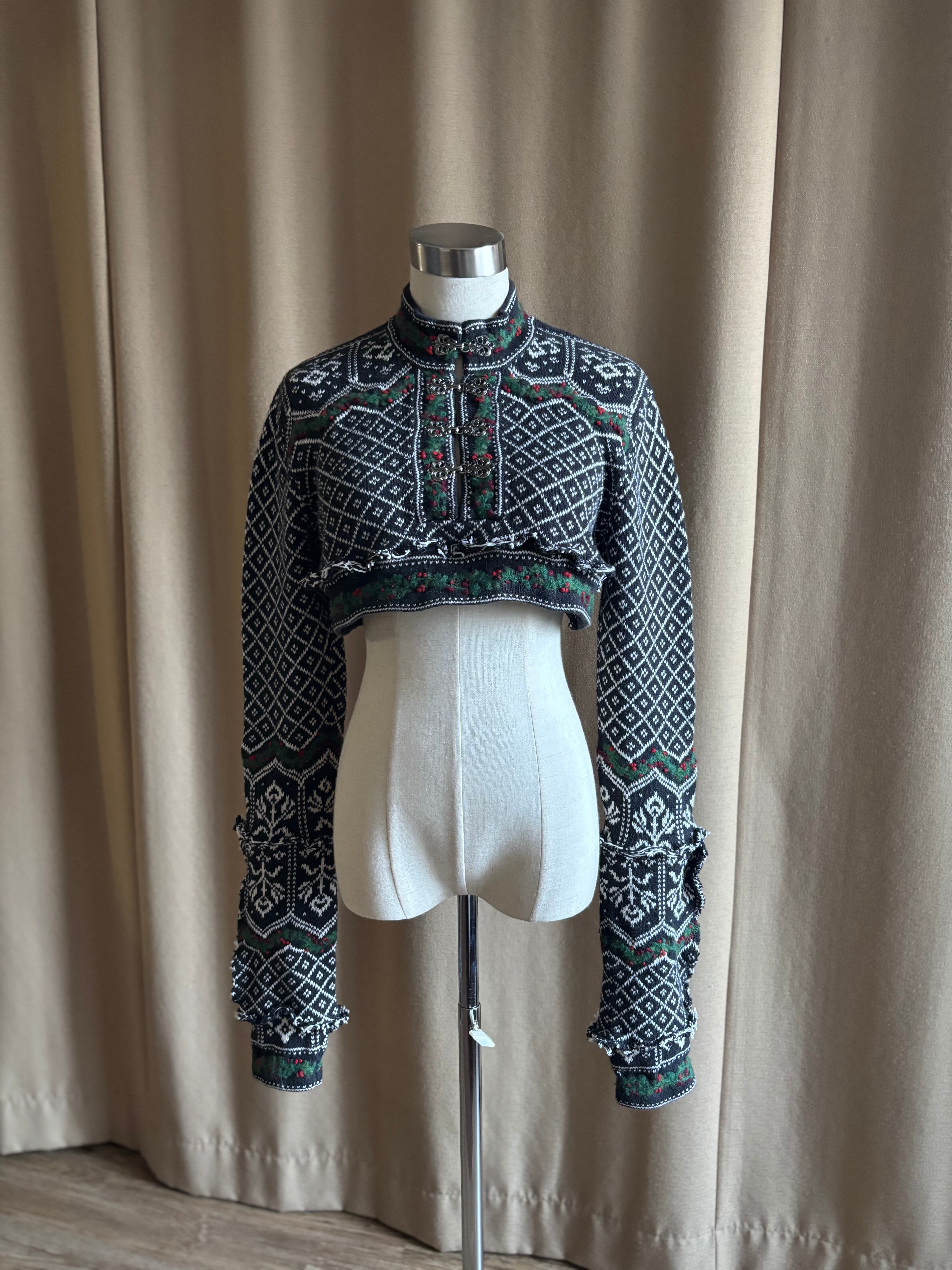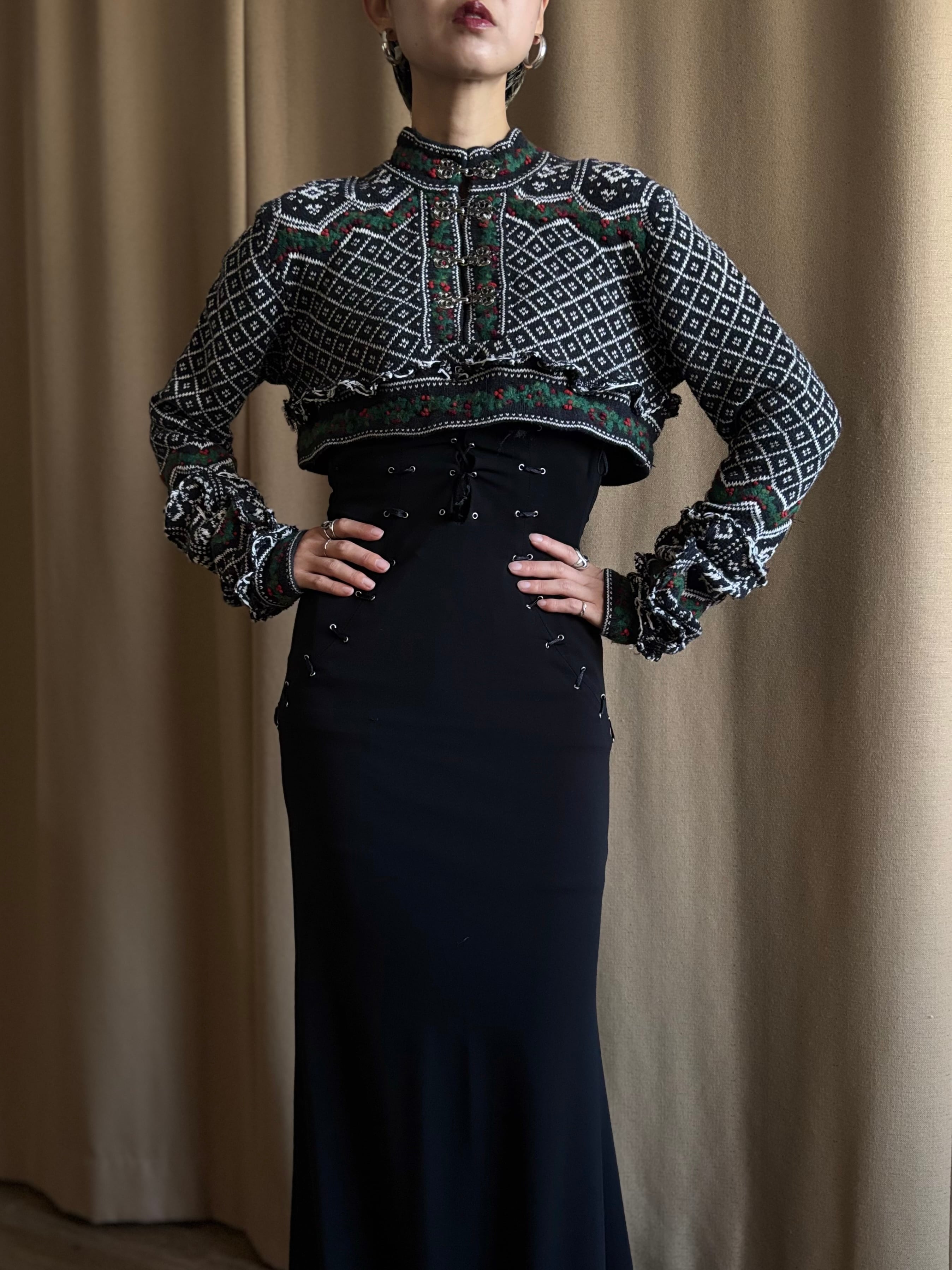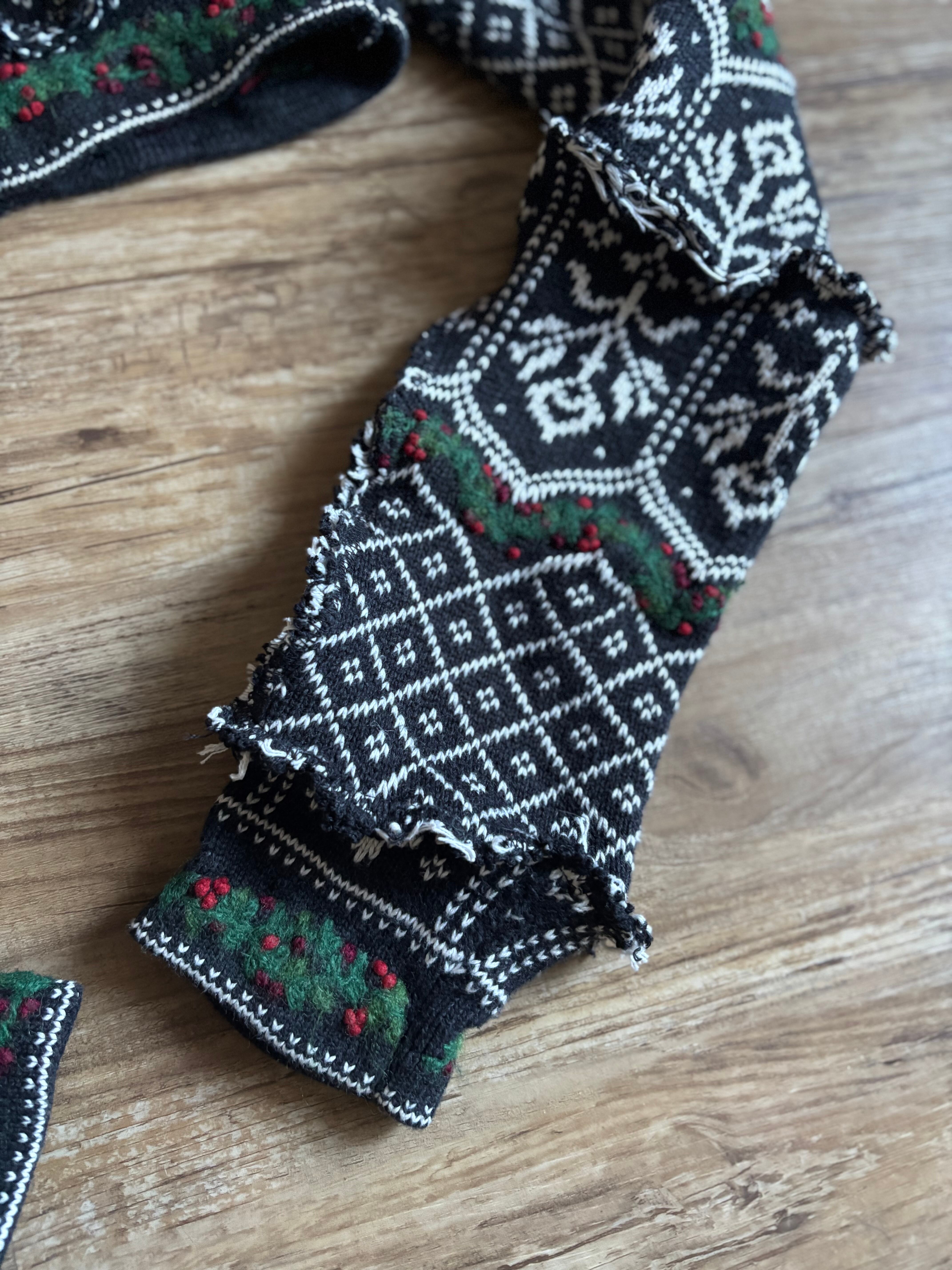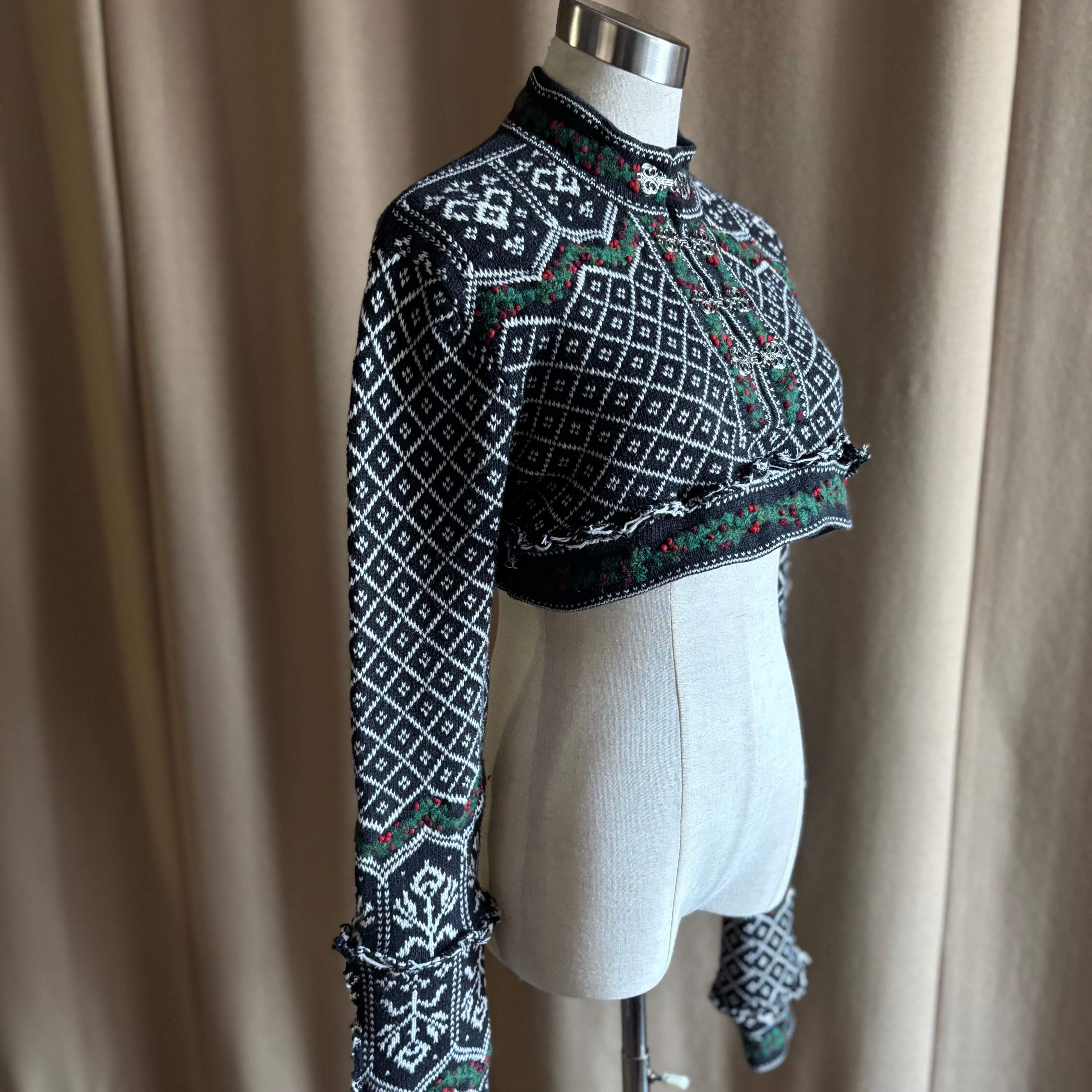 伝統的なチロリアン柄を、洗練されたモードバランスで昇華したリメイクコットンニット。