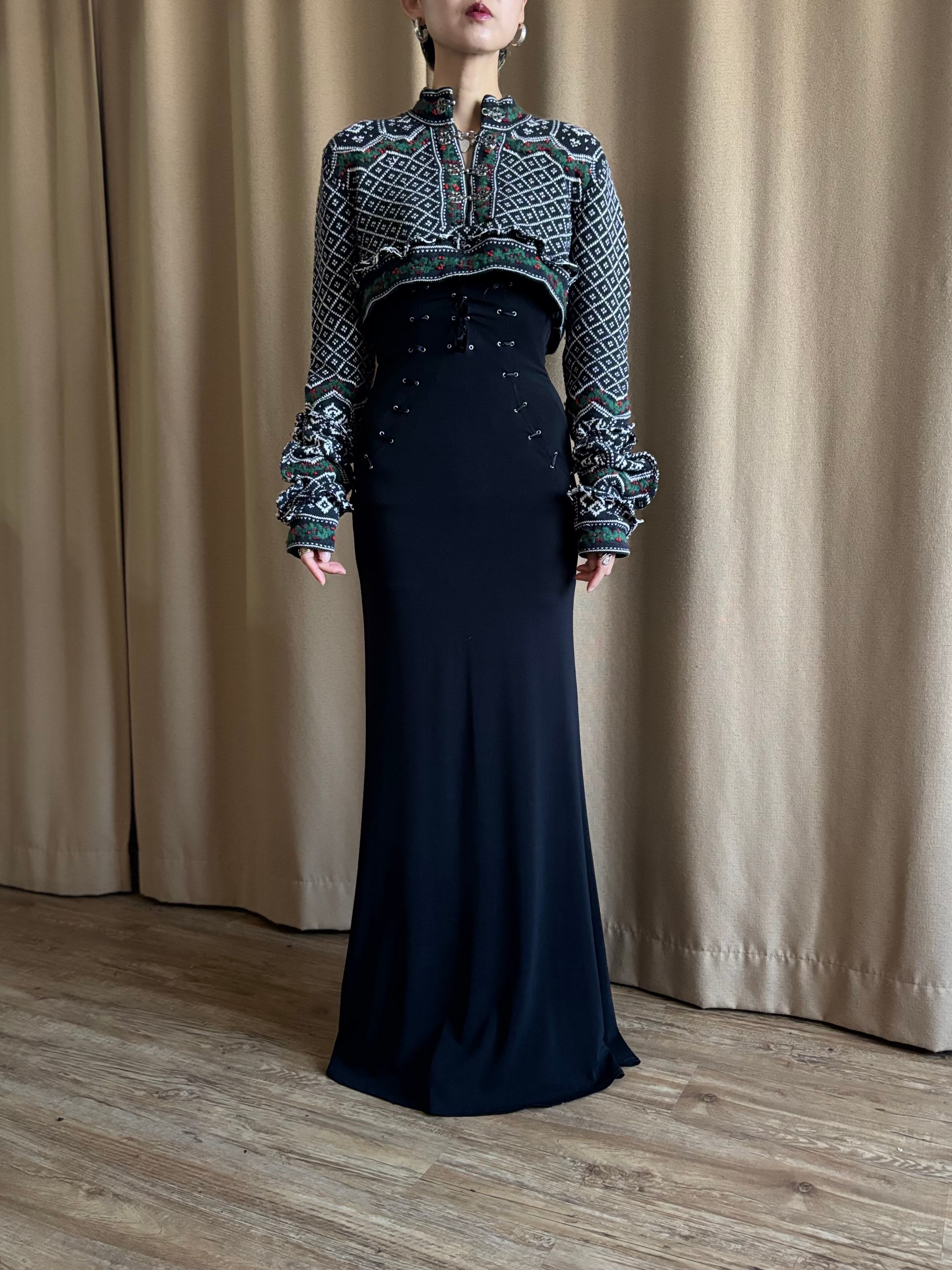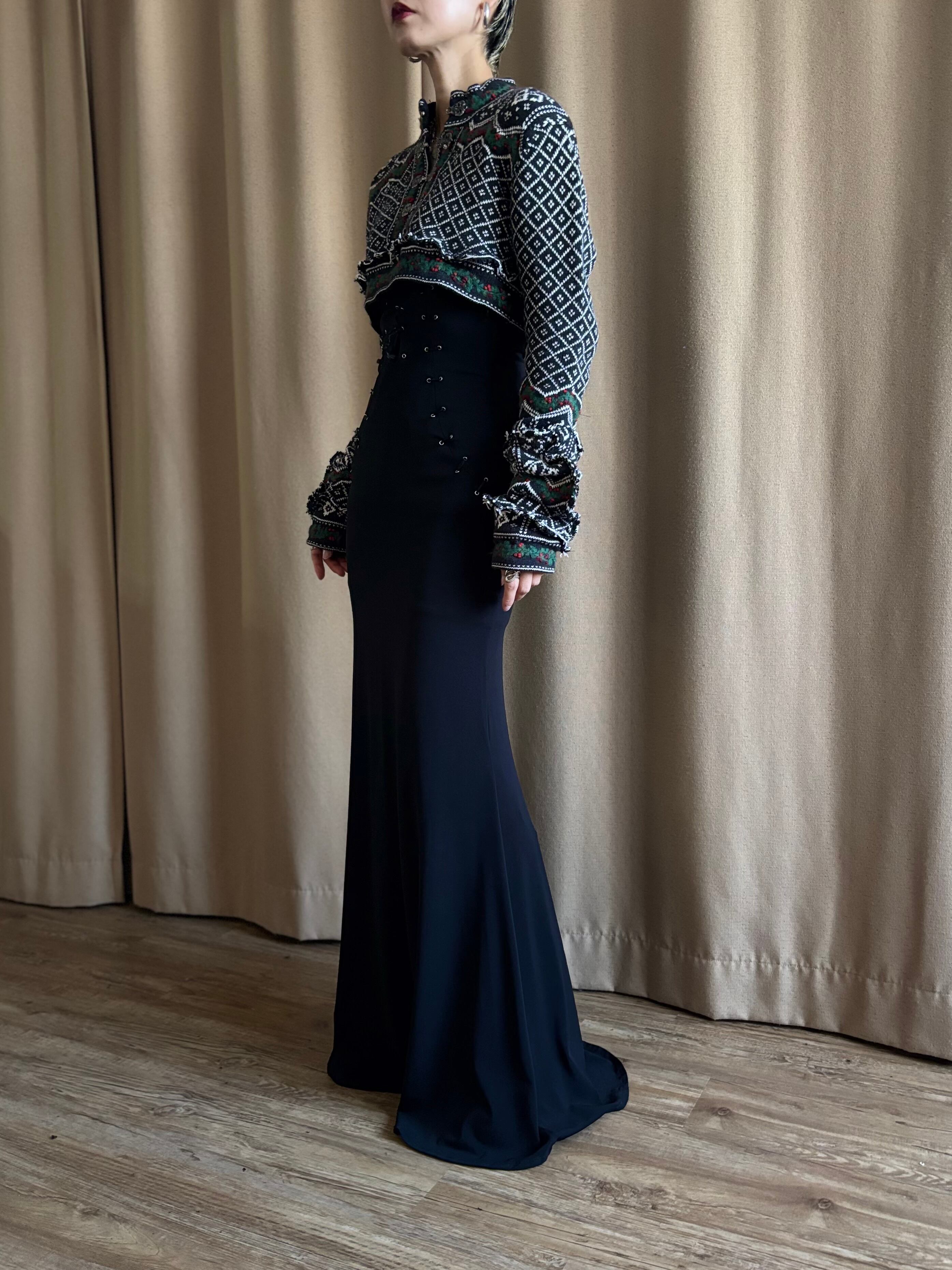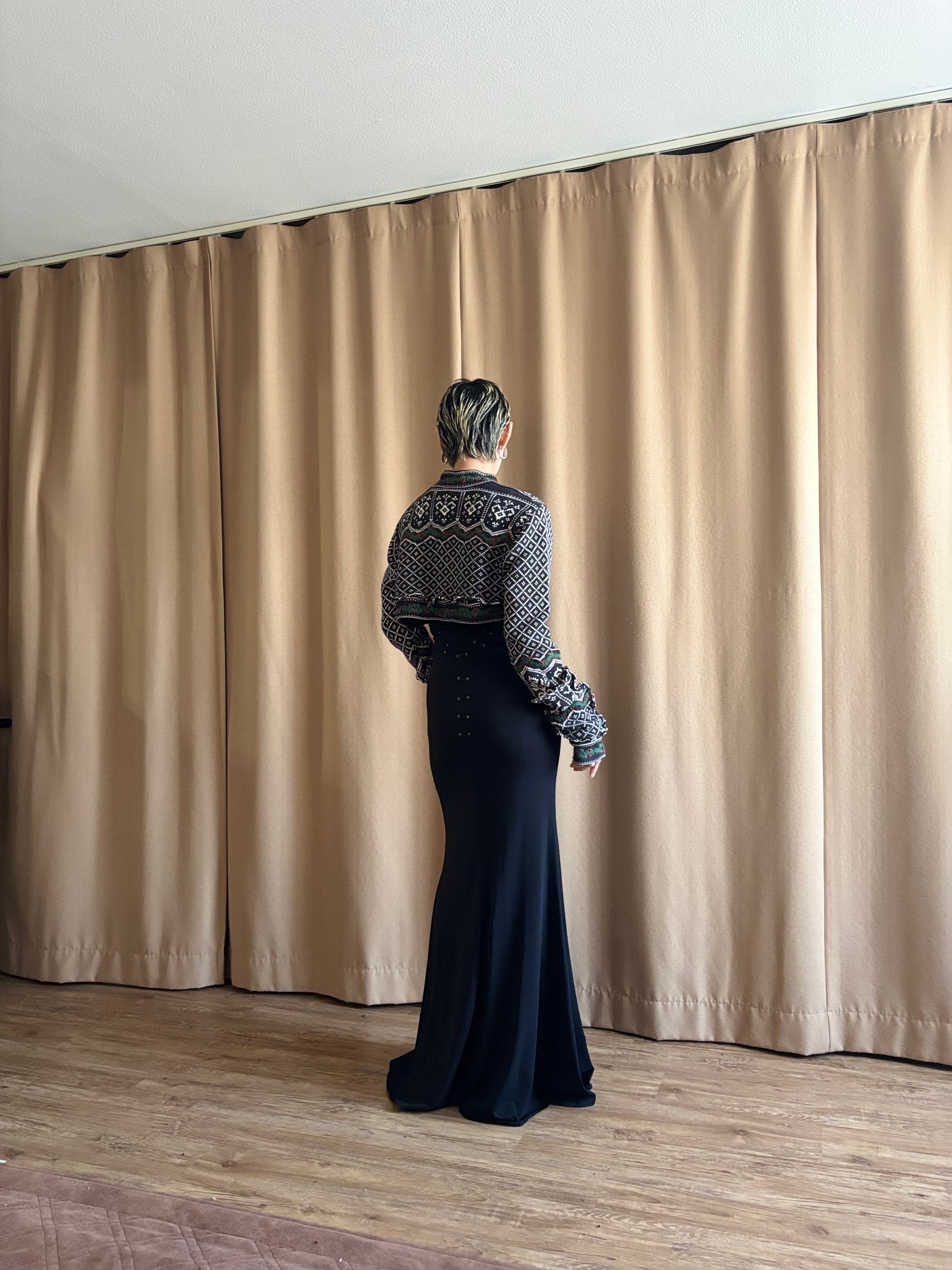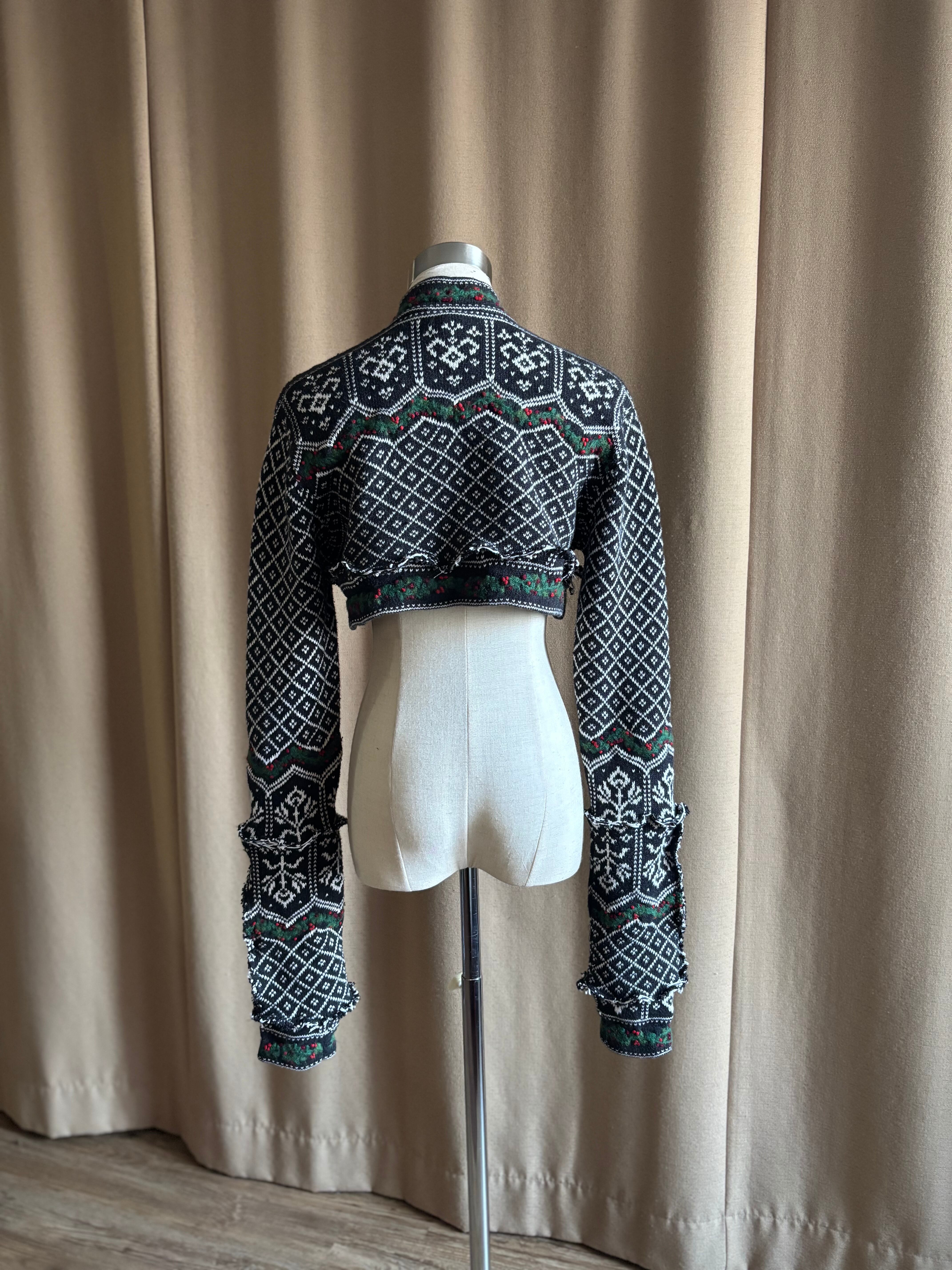 伝統的なチロリアン柄を、洗練されたモードバランスで昇華したリメイクコットンニット。