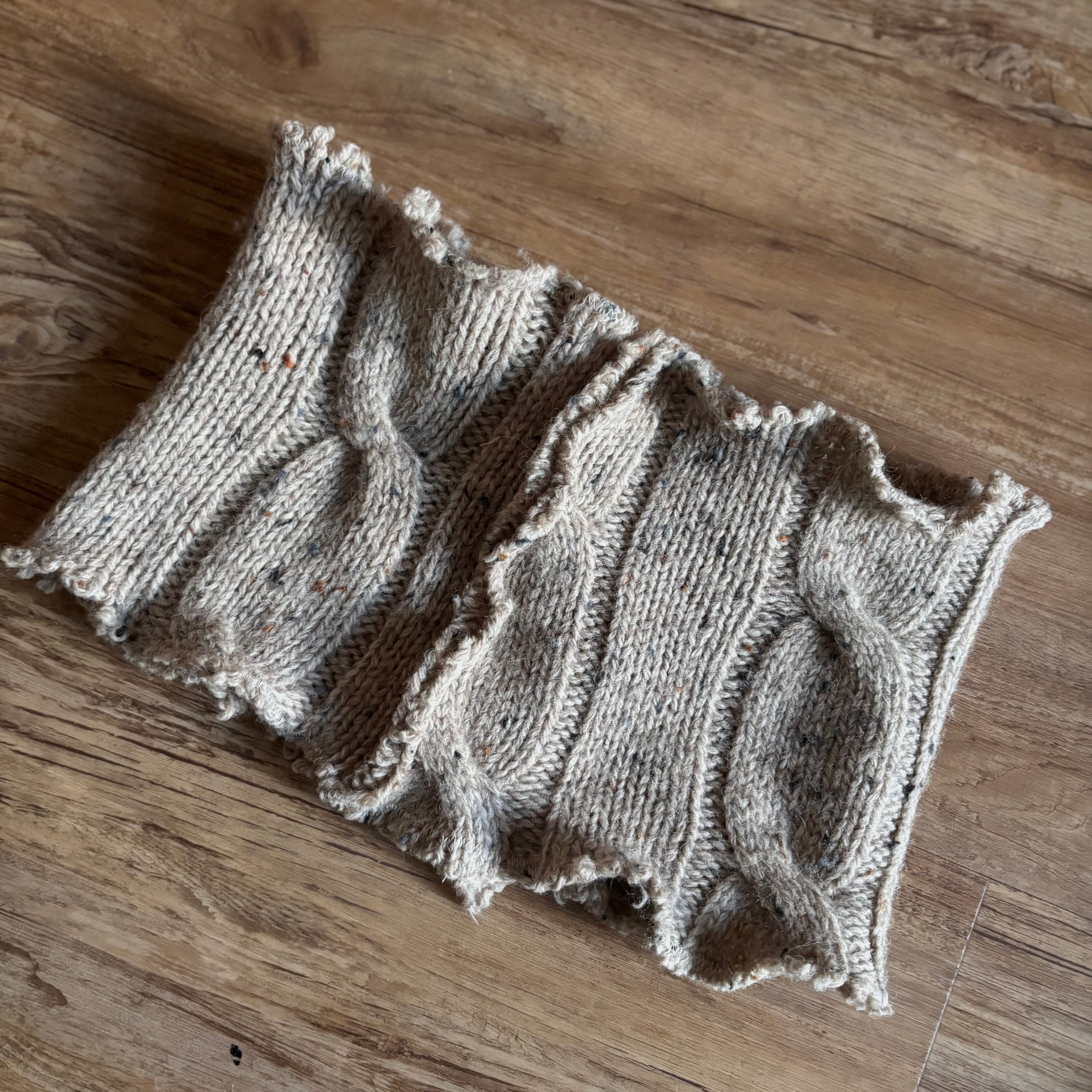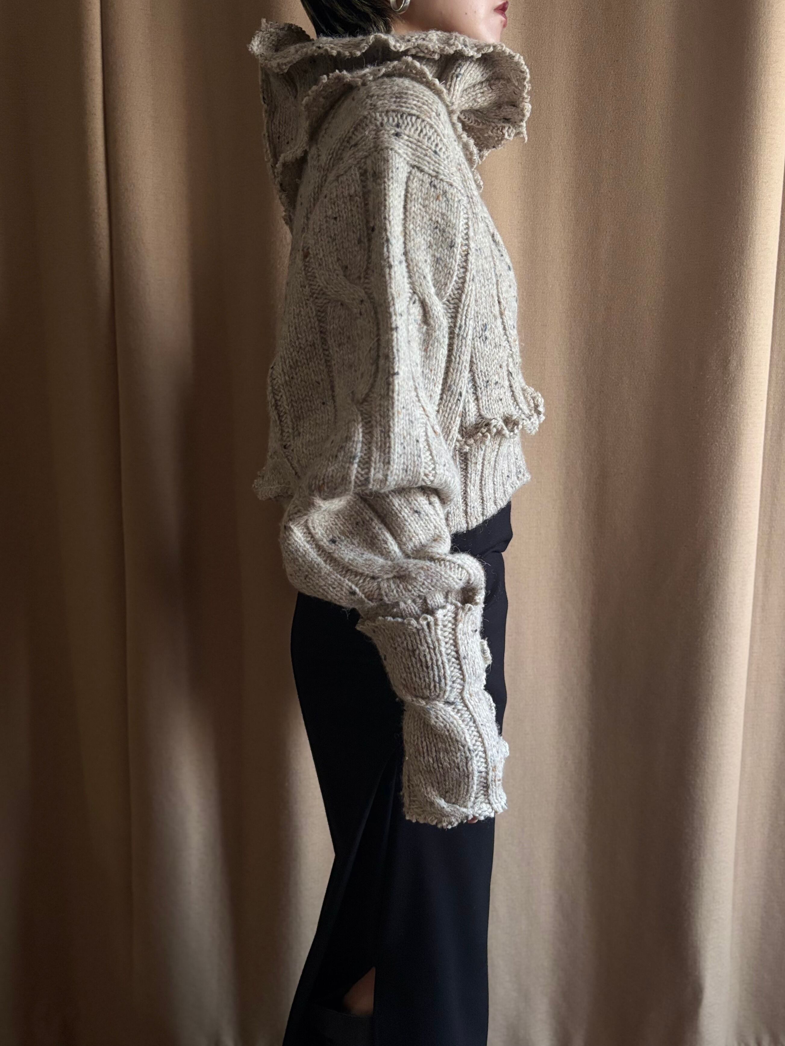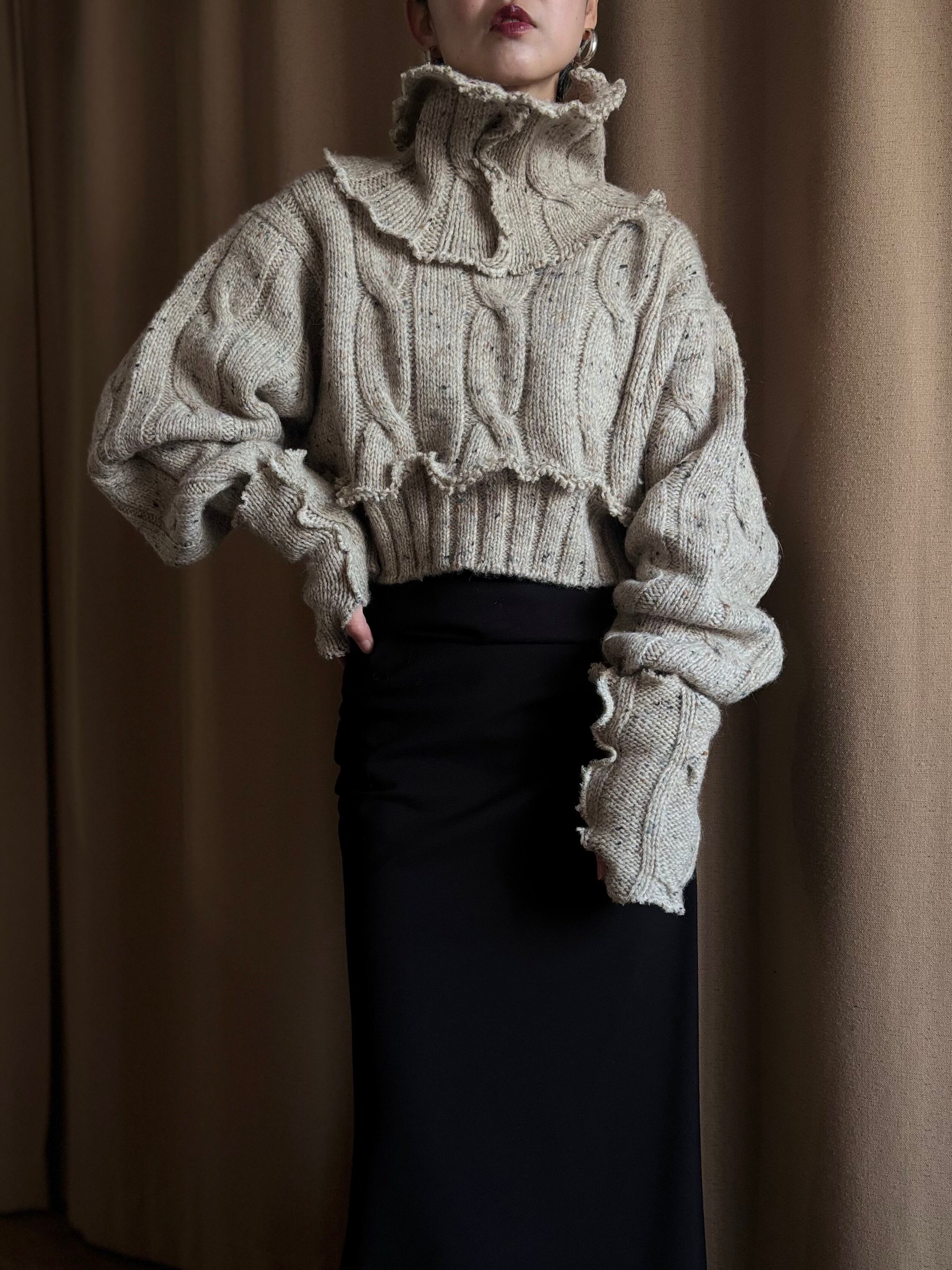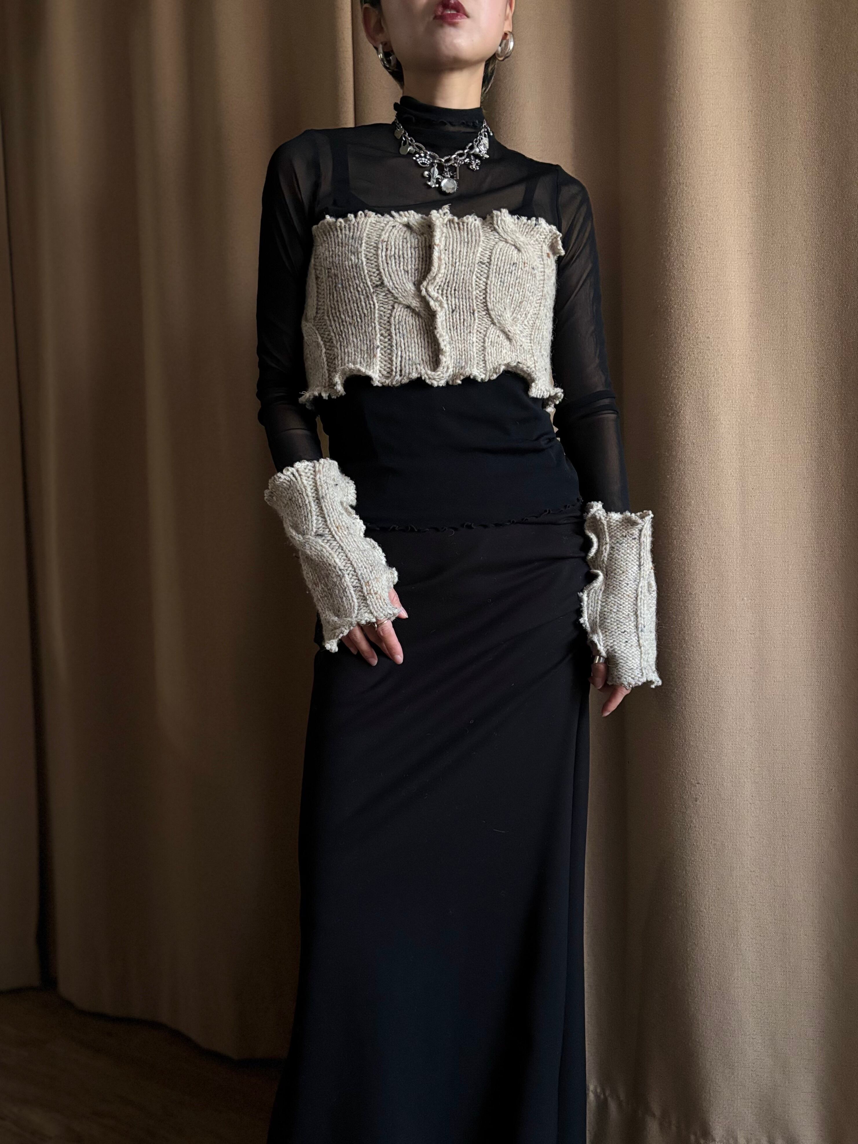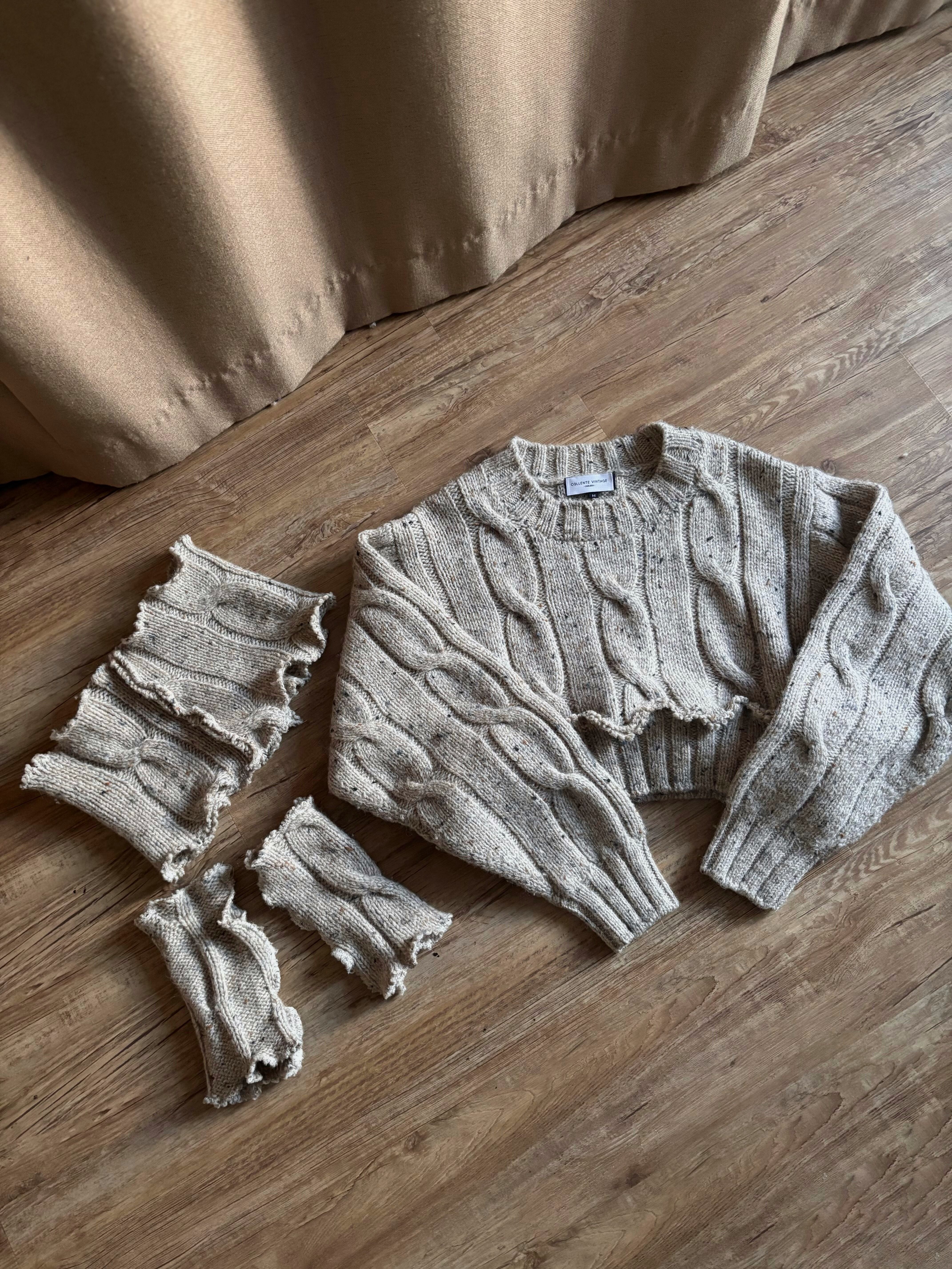 スヌードとアームウォーマーがセットになった再構築リメイクニット。