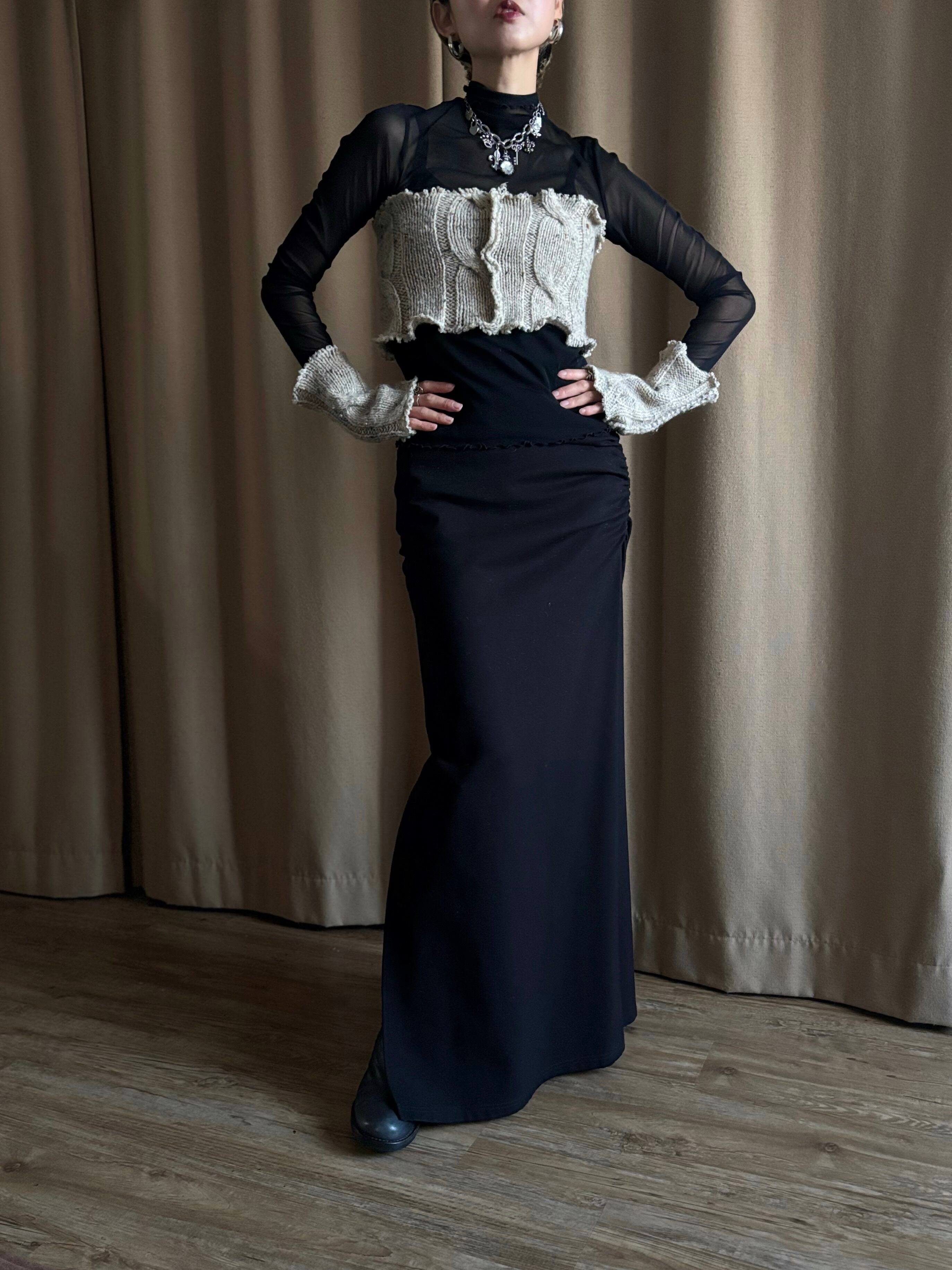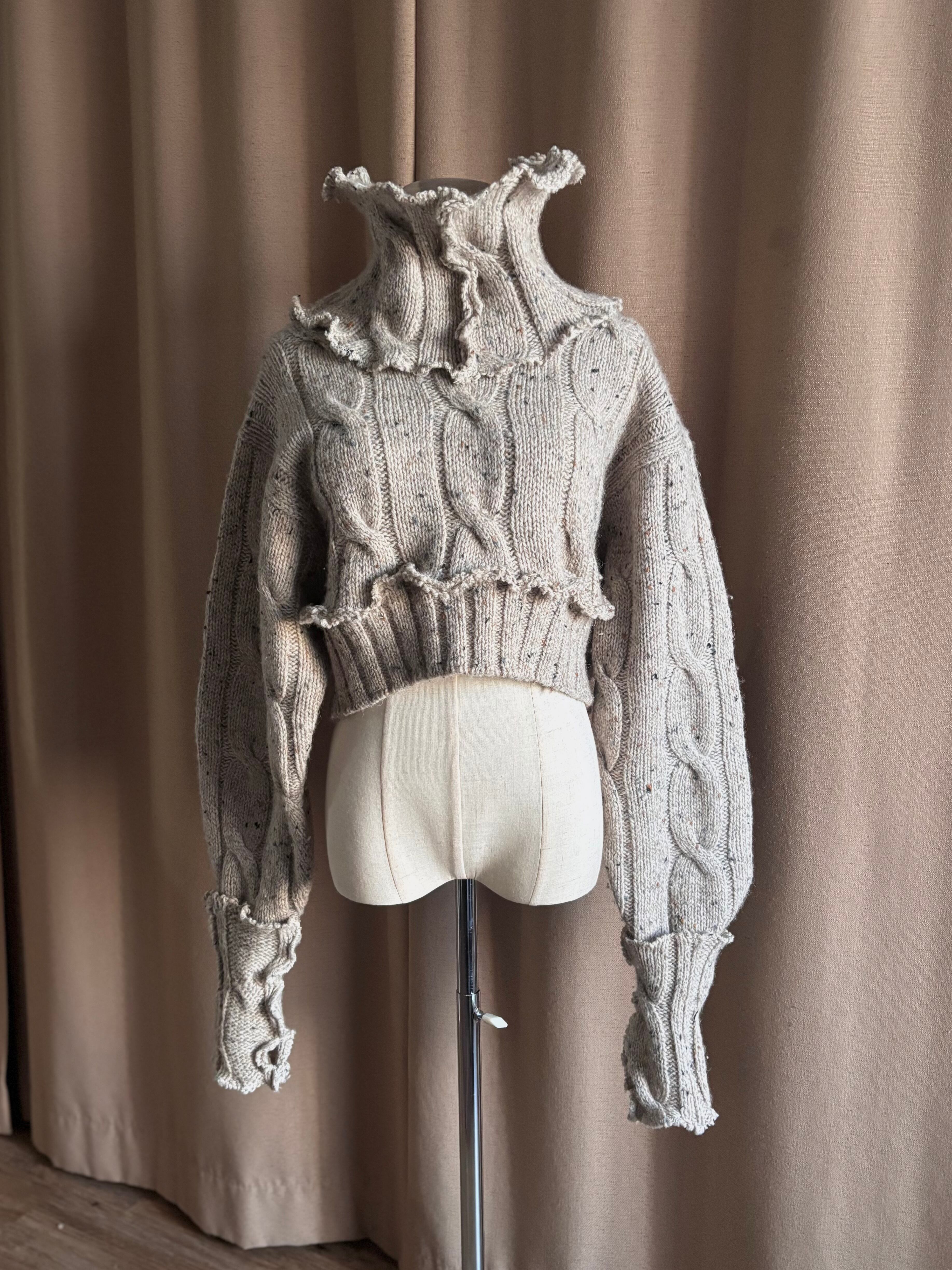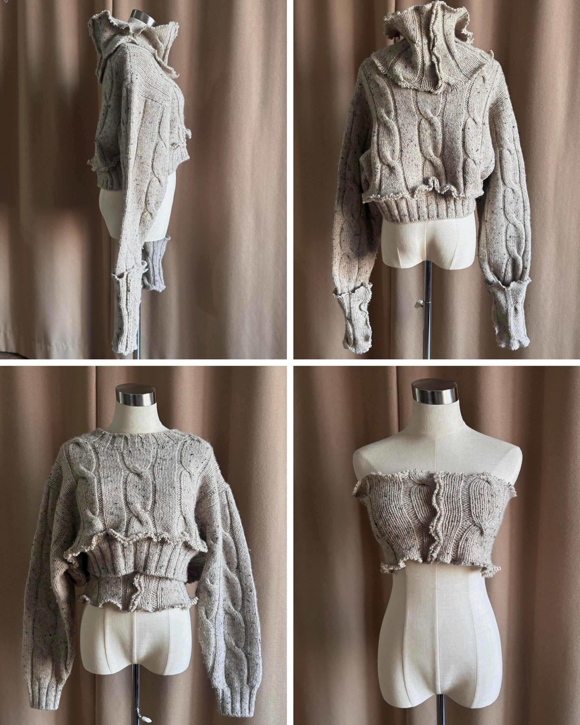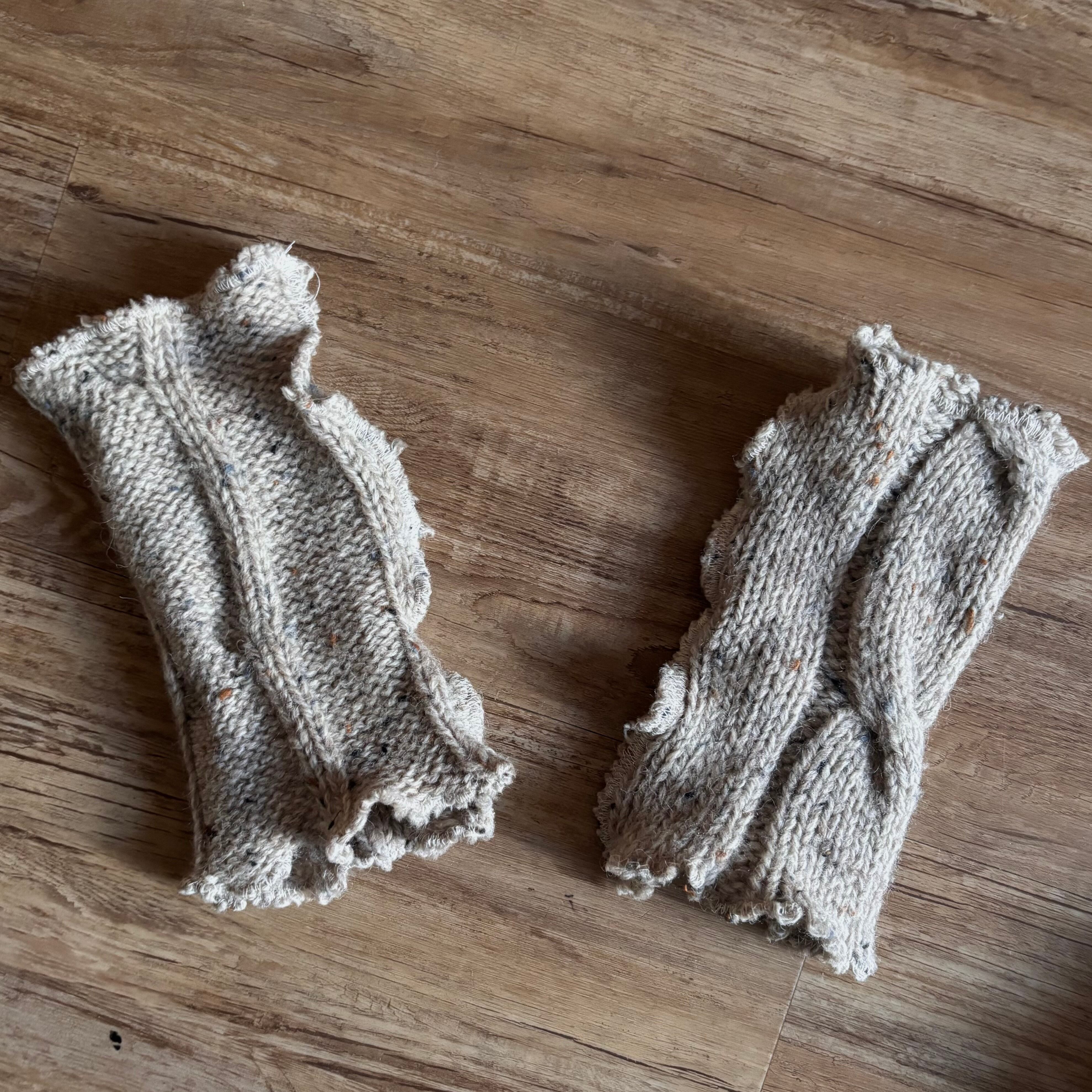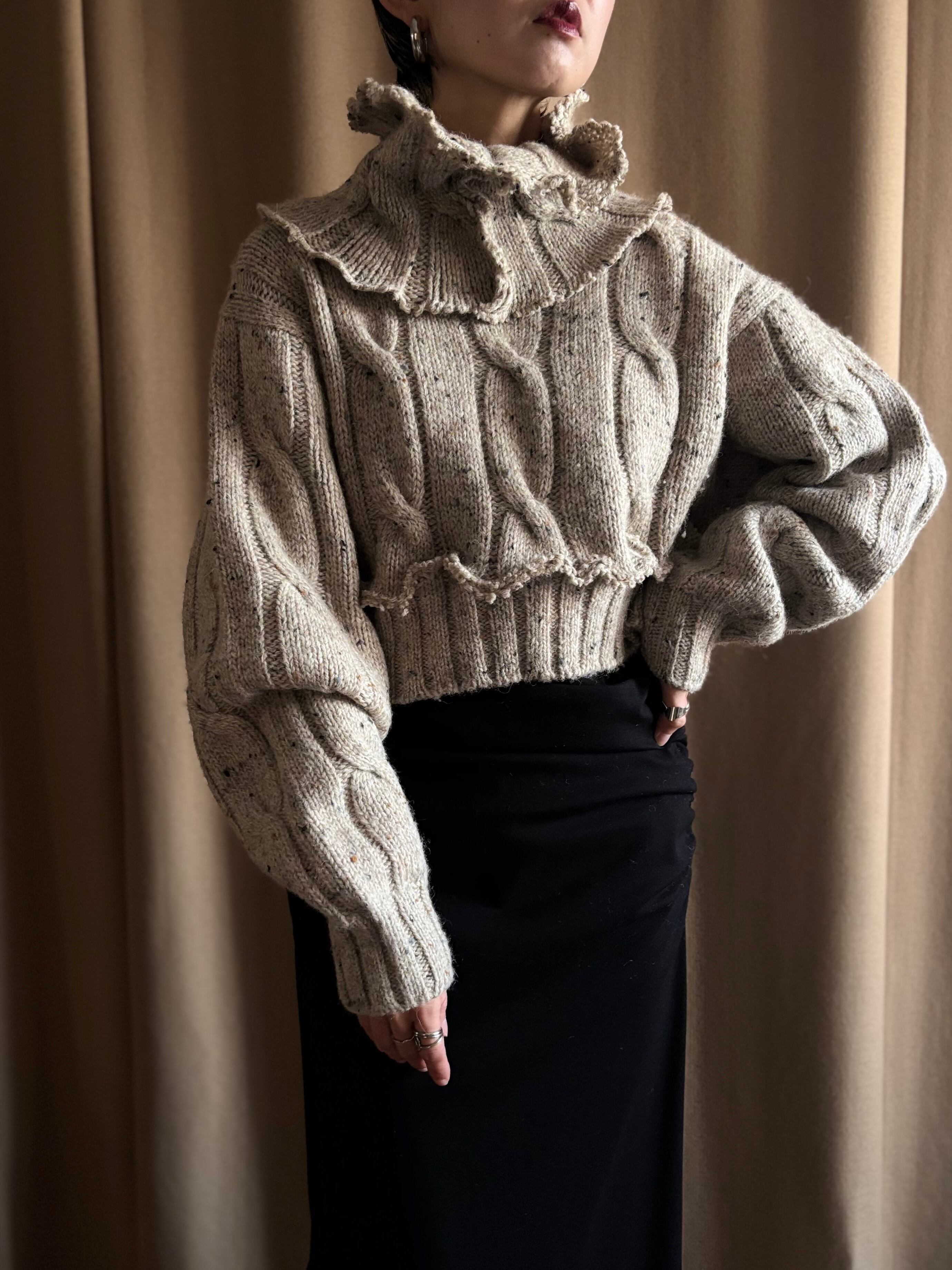 スヌードとアームウォーマーがセットになった再構築リメイクニット。