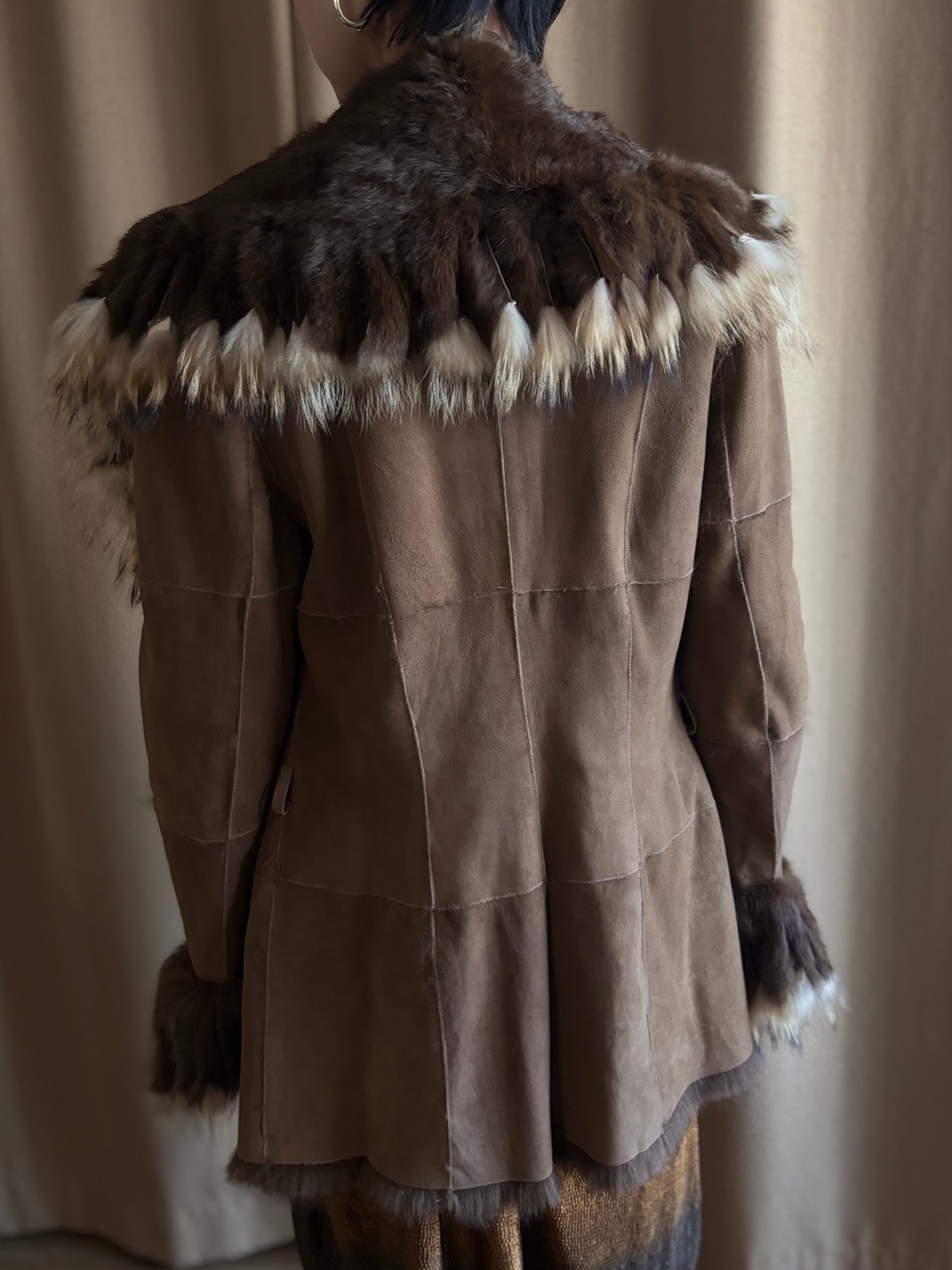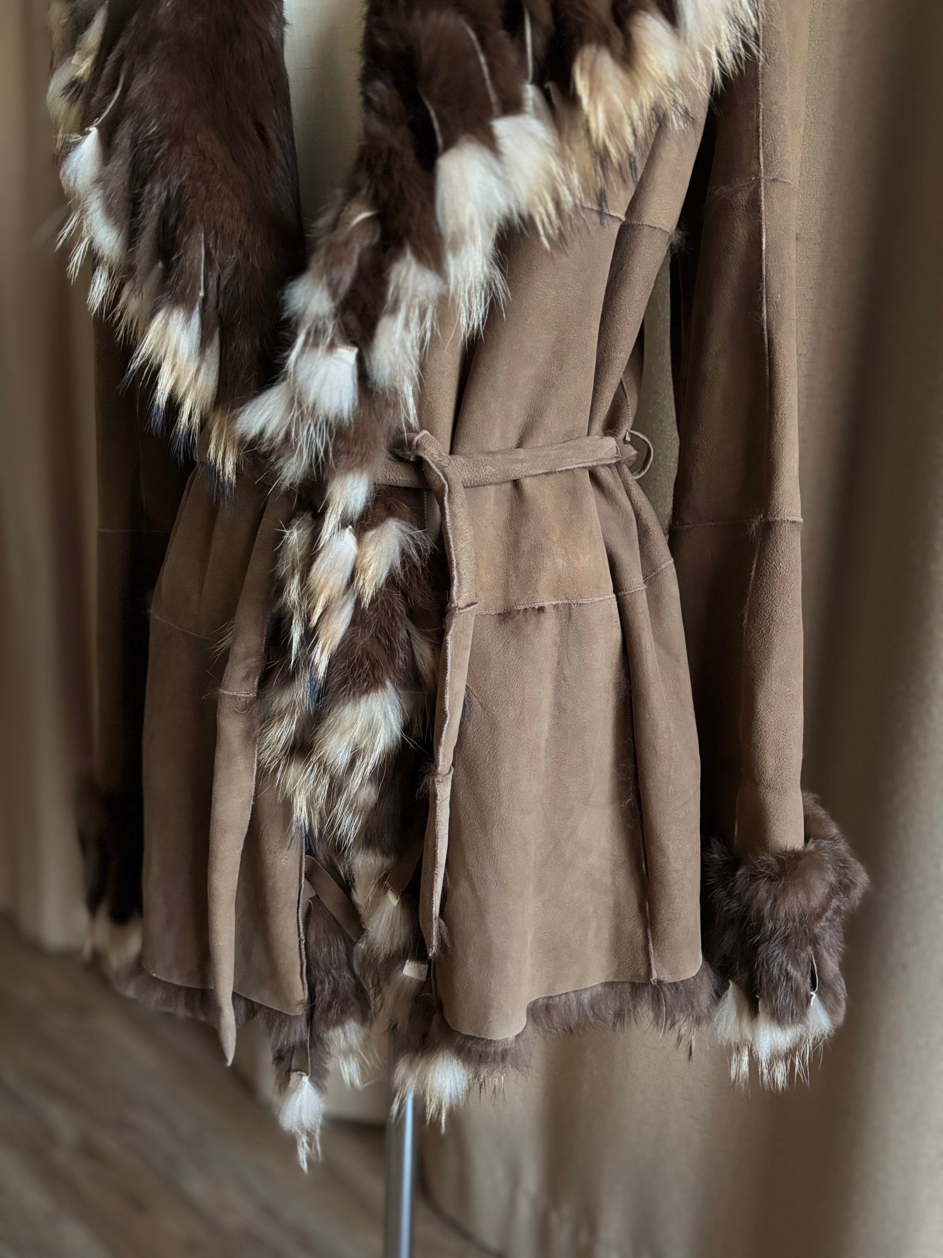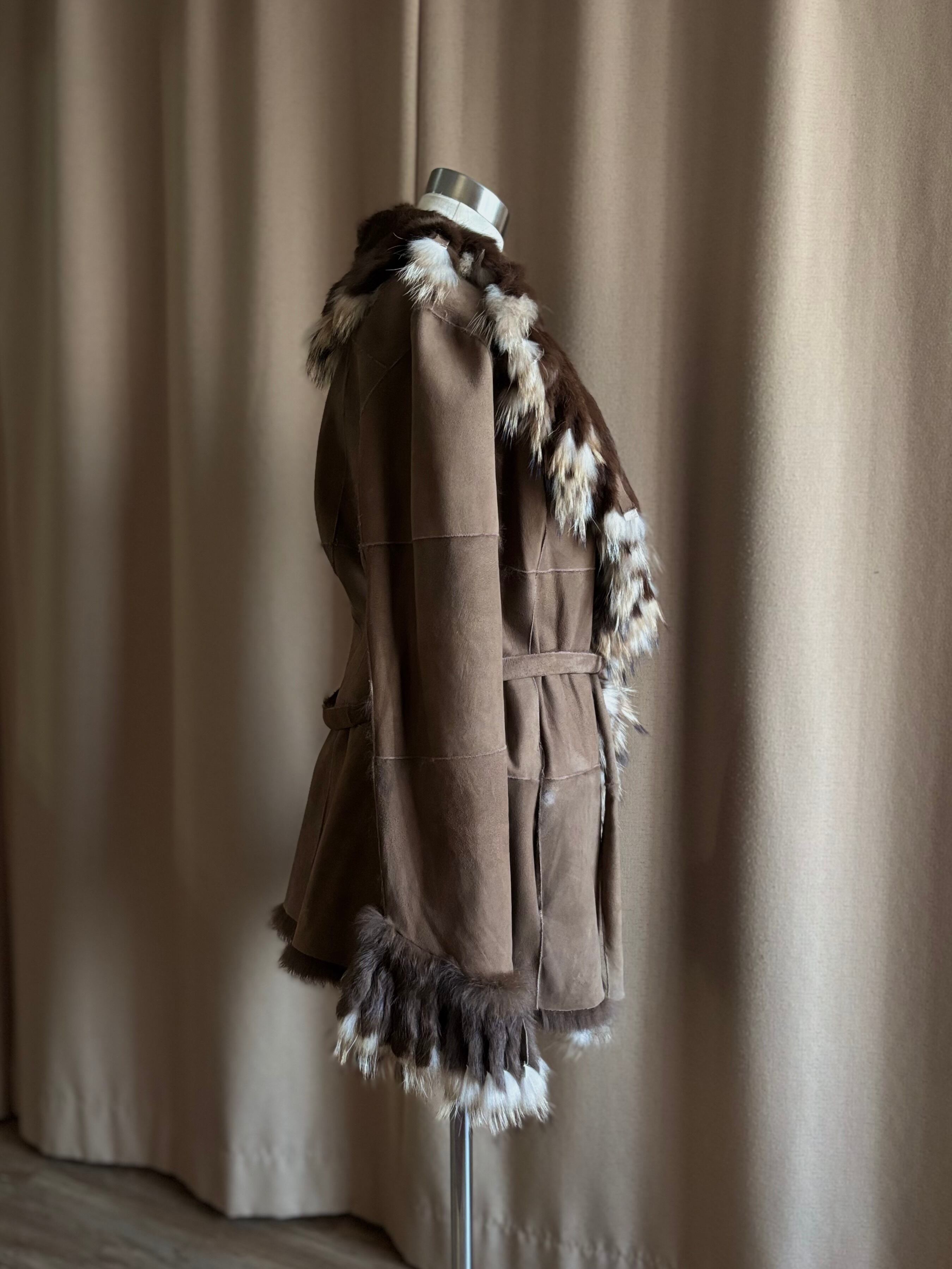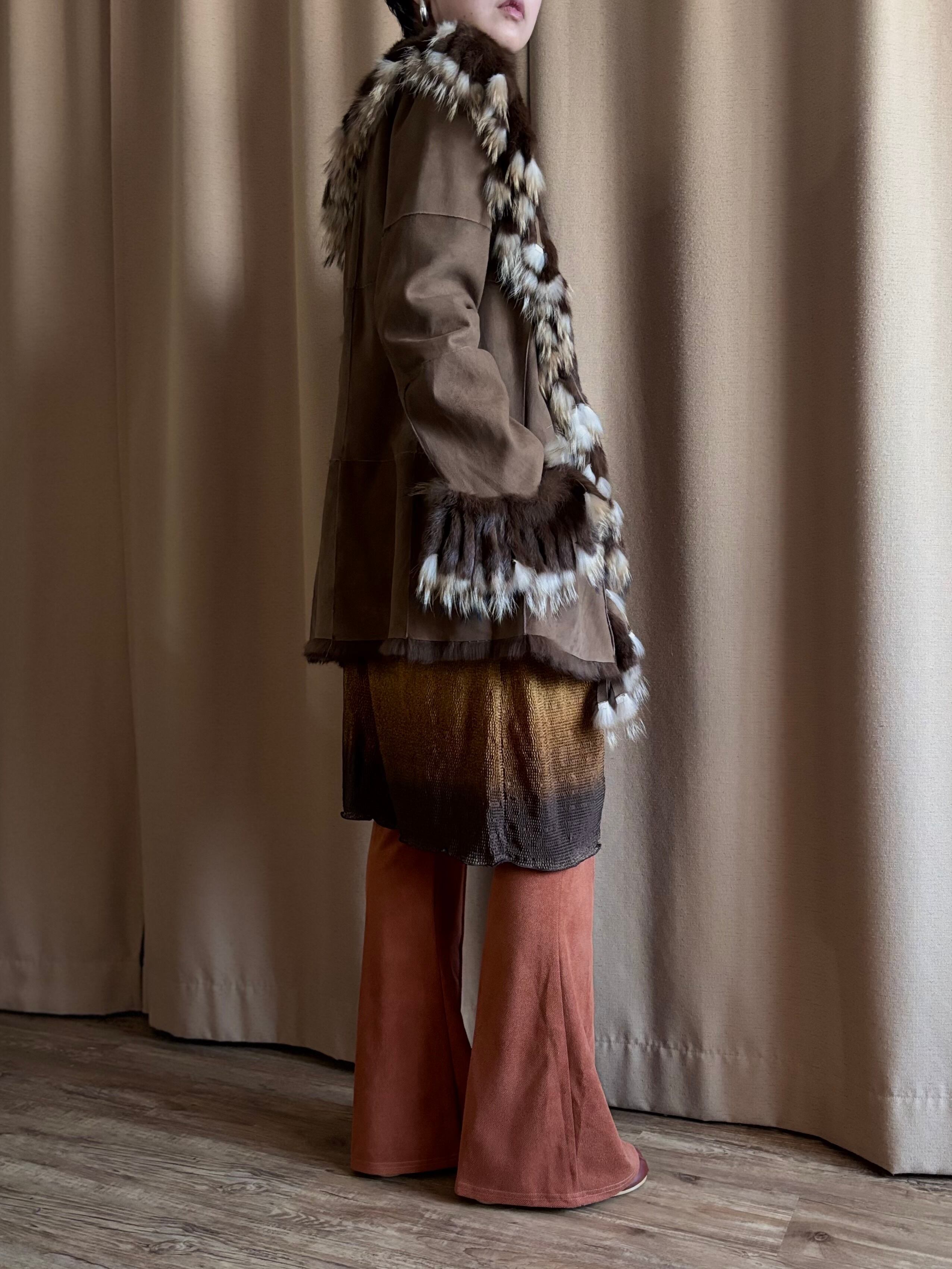 上質なラビットファーのなめらかな質感に、フォックスファーの豊かなボリュームを重ねた、エレガンスと迫力を併せ持つ一着。