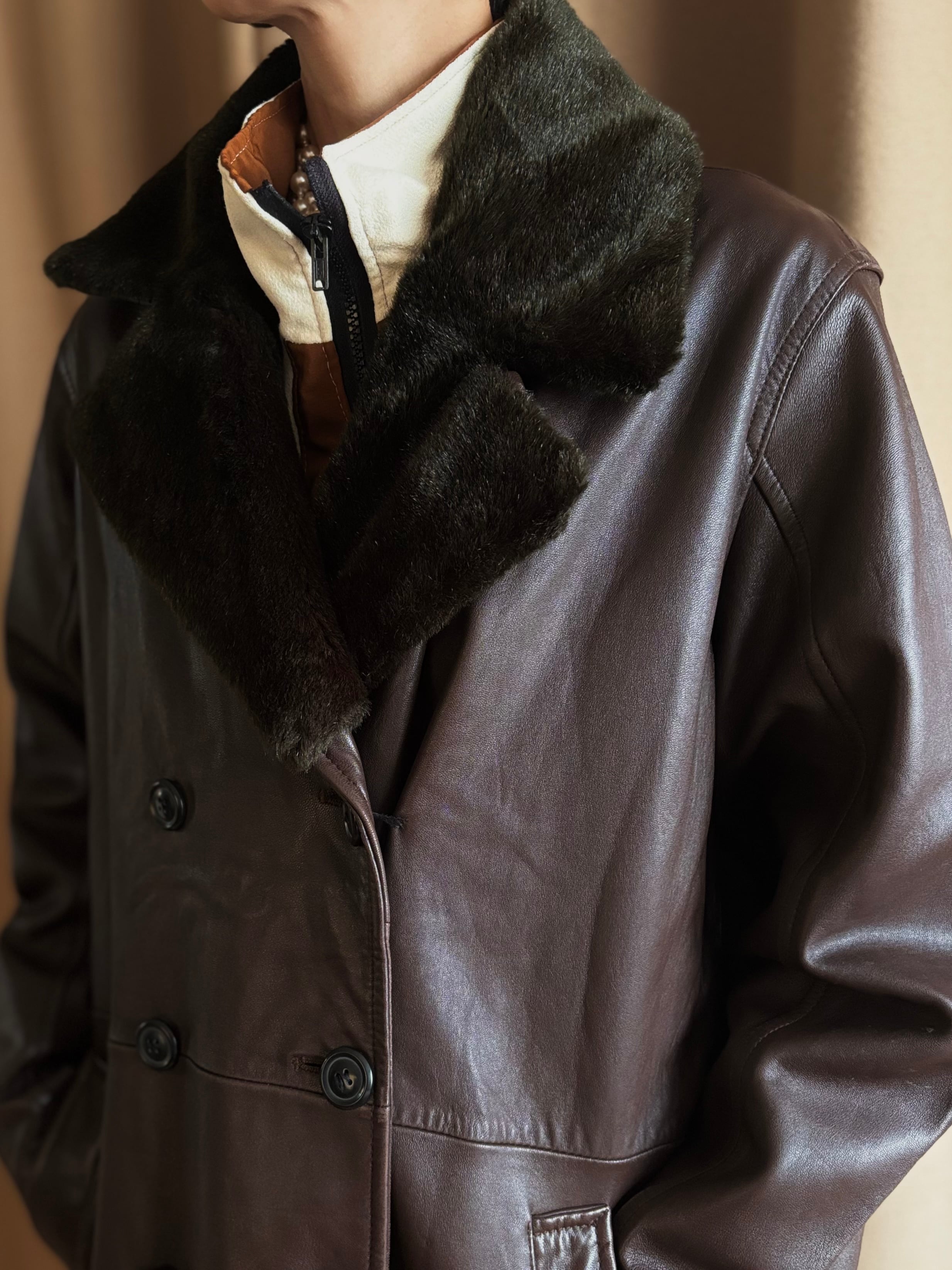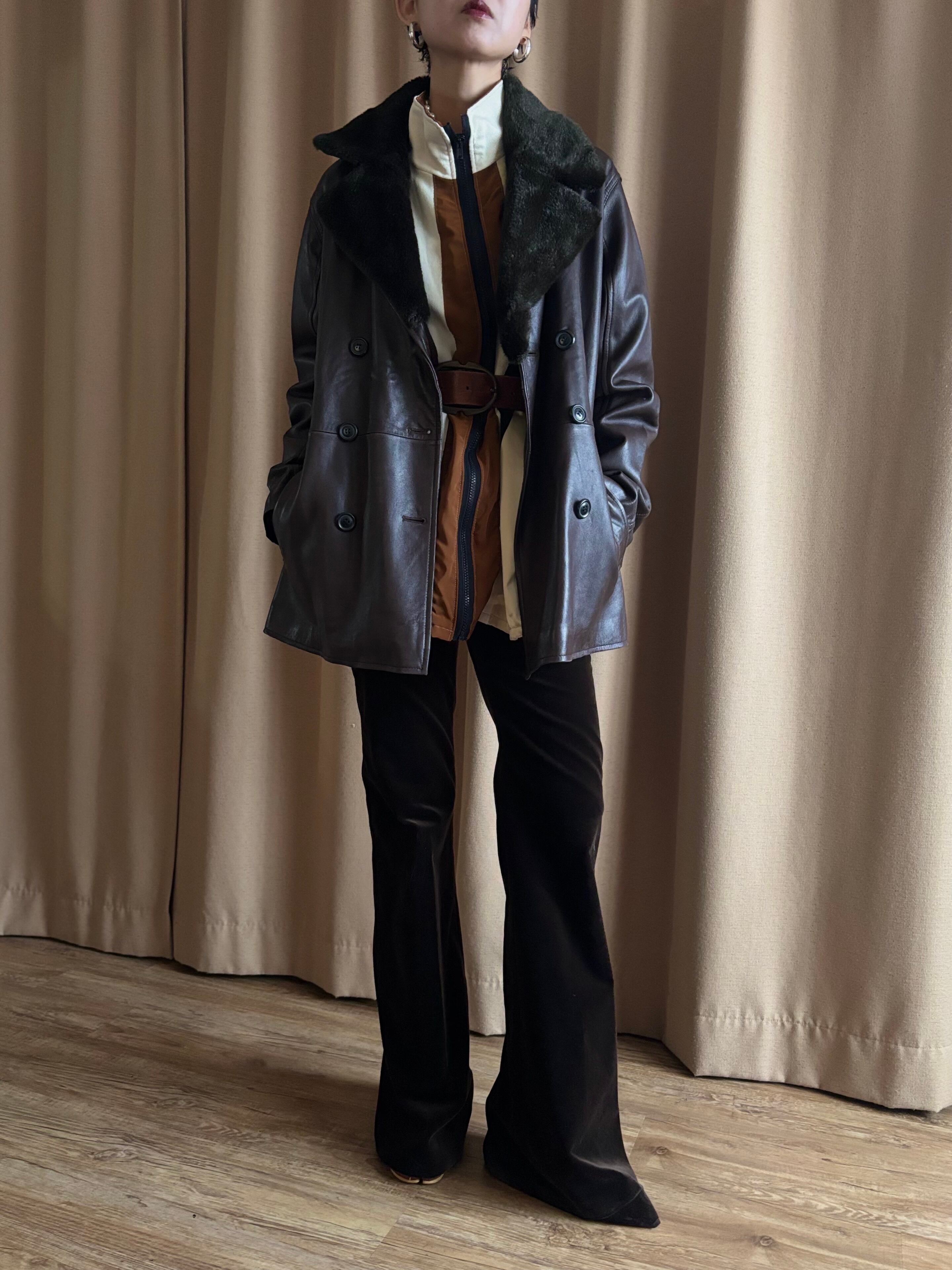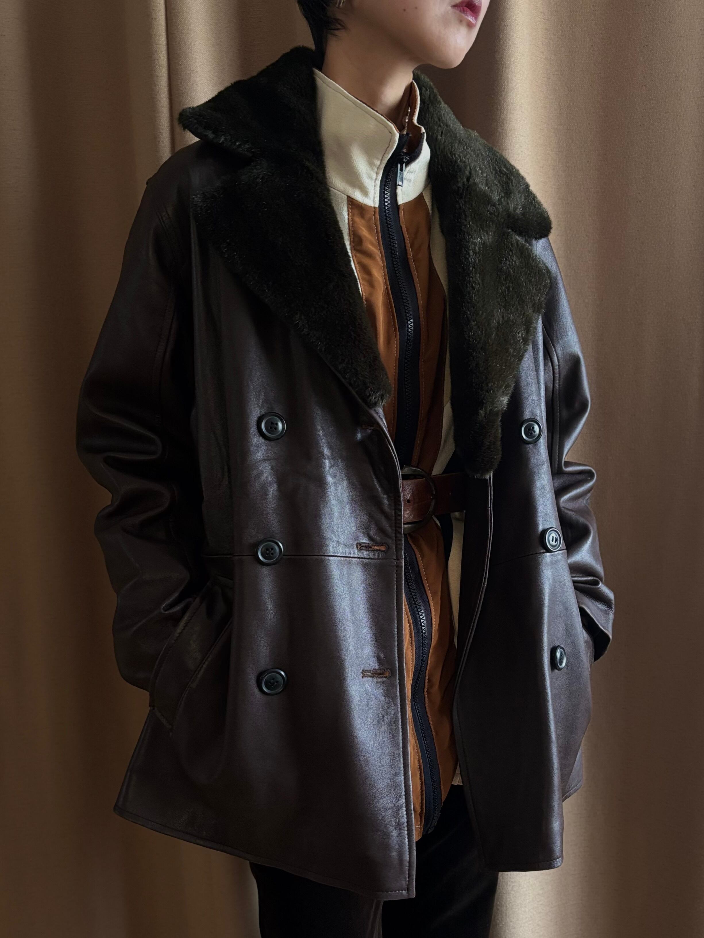 ■素材 表地 羊革100% 裏地ナイロン50% アセテート50% 別衿アクリル100%