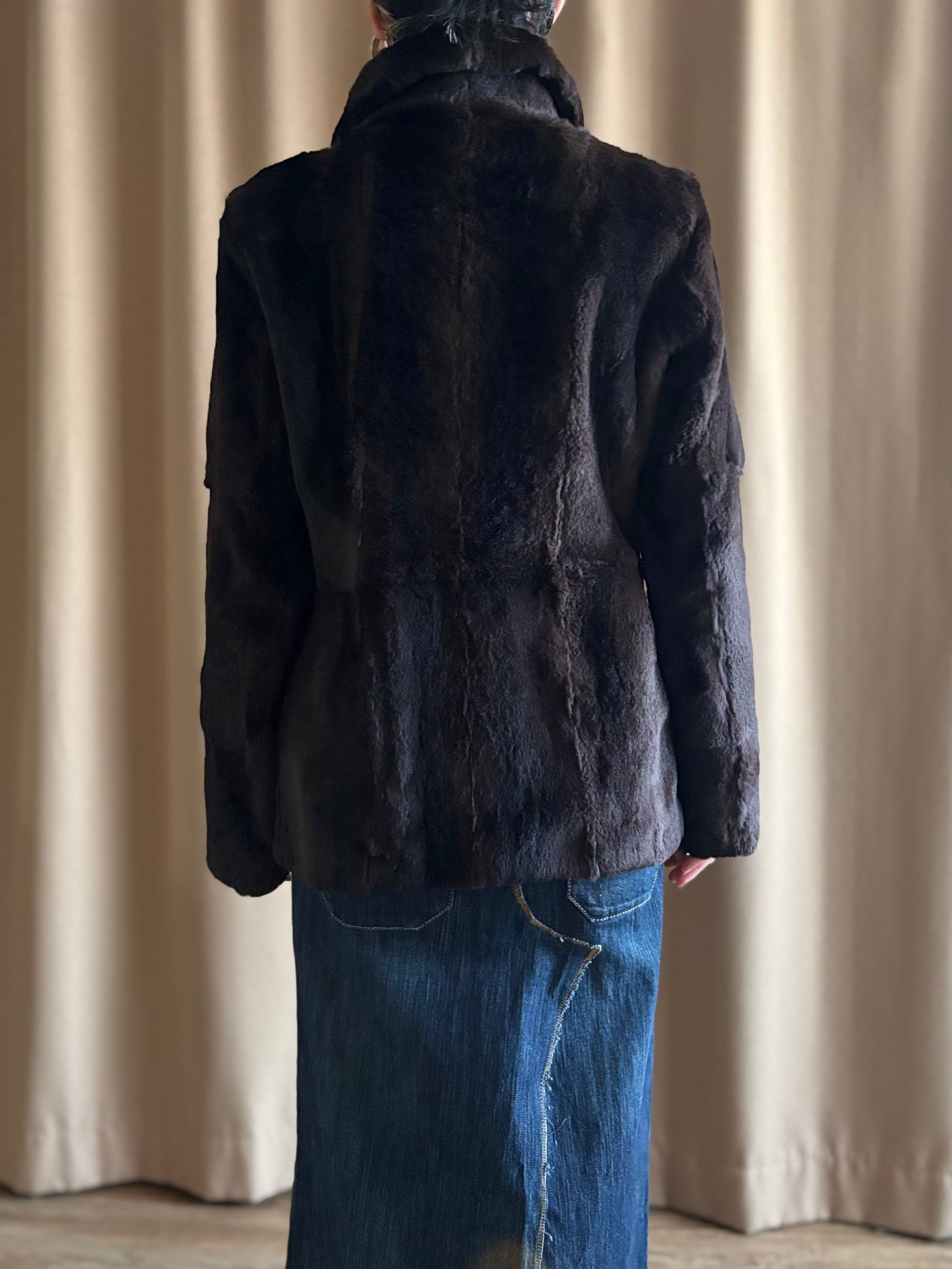 上質なラビットファーならではの艶と奥行きを纏った、存在感のあるファージャケット。