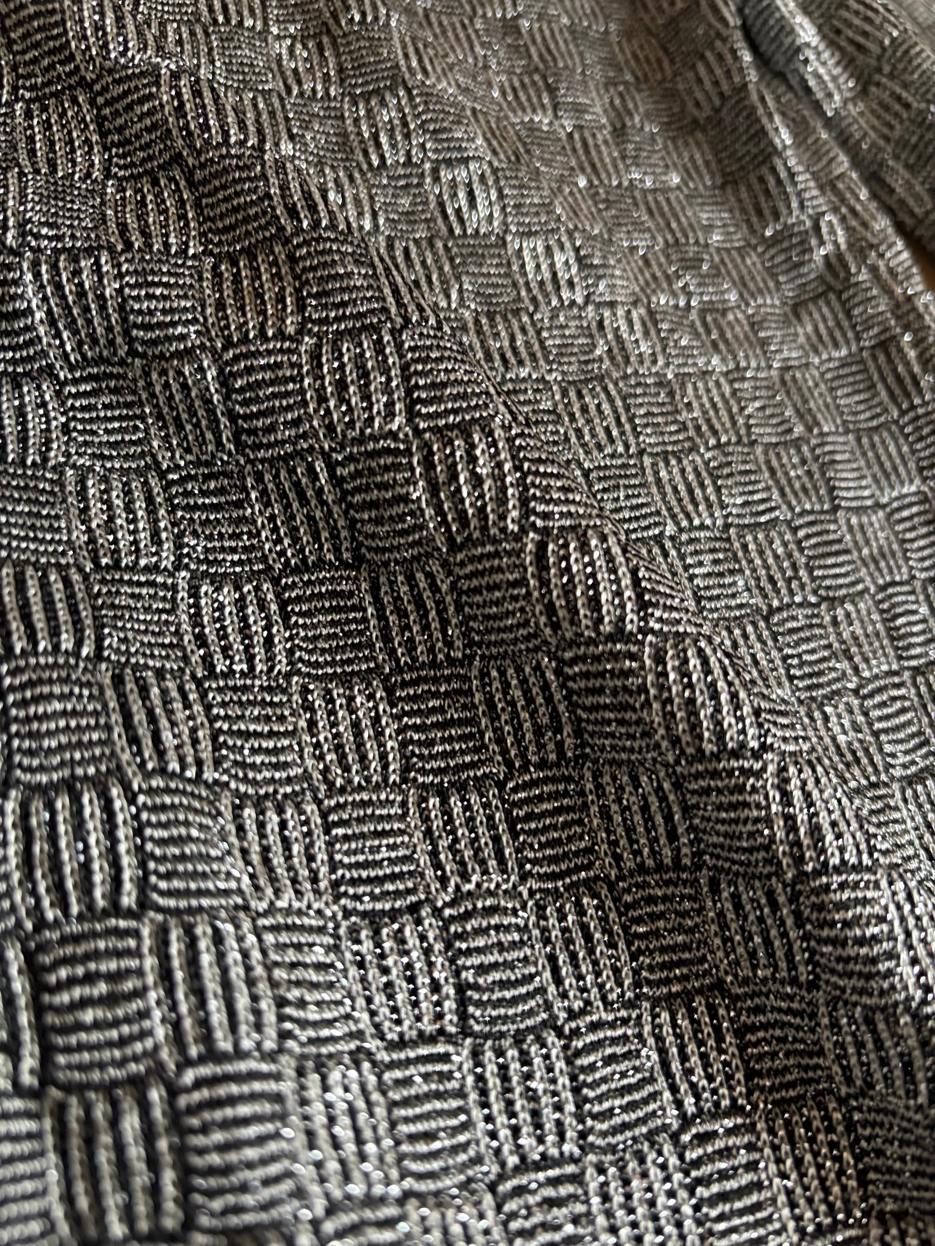 繊細に織り込まれたシルバーラメが光を受けてさりげなく輝き、落ち着いた中にもモードな存在感を宿す拘りのファブリック。