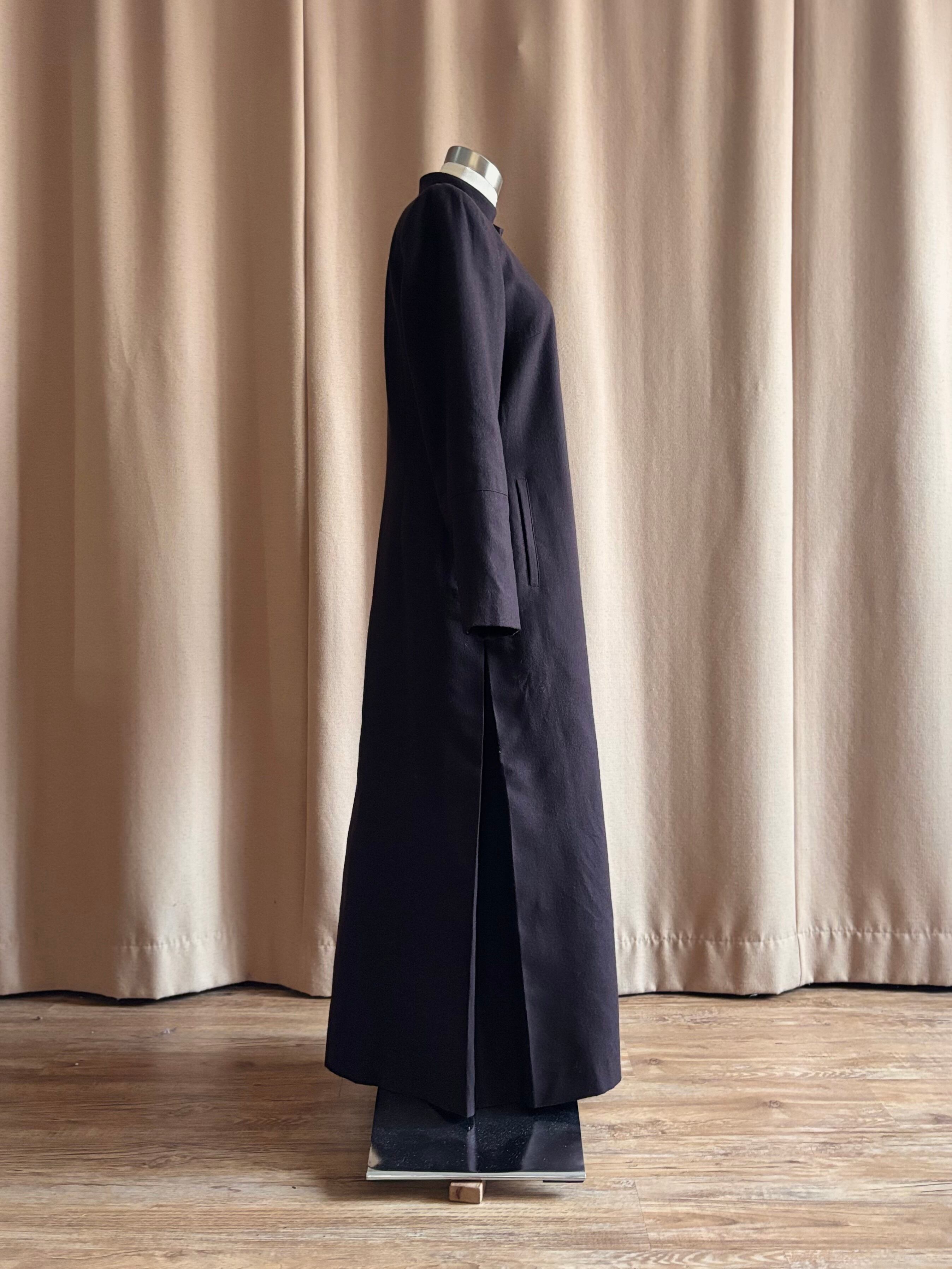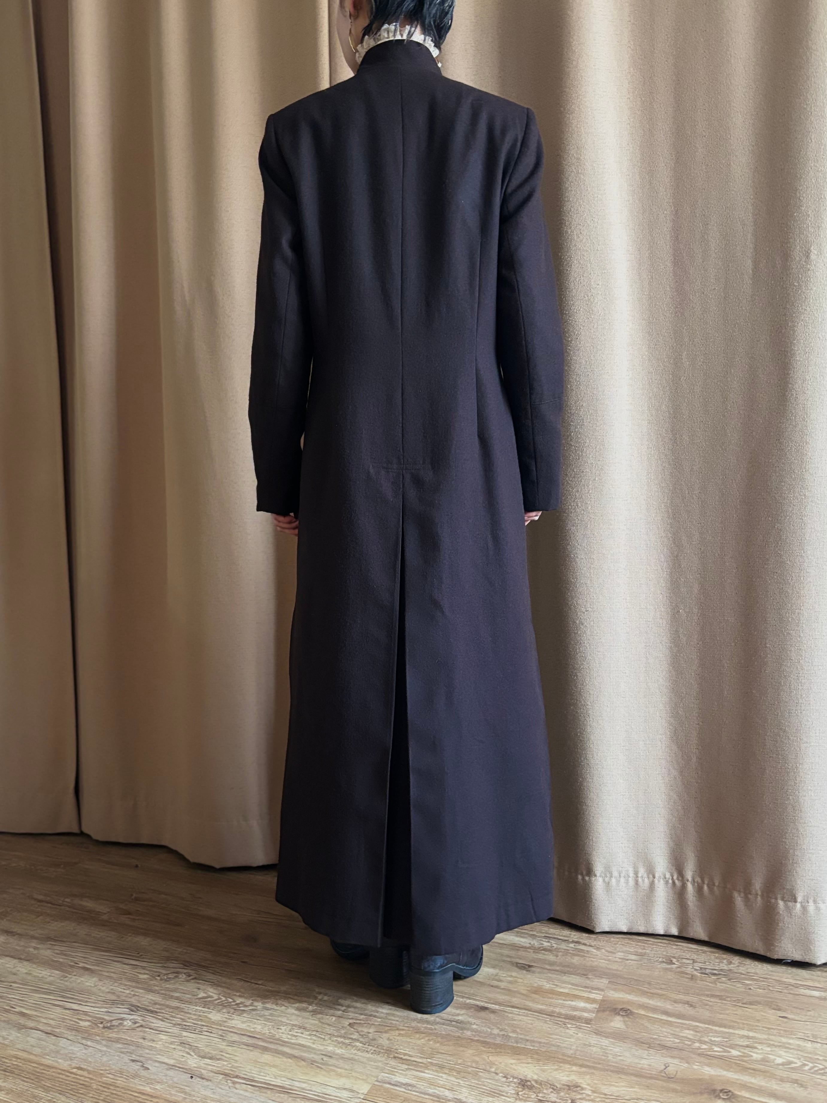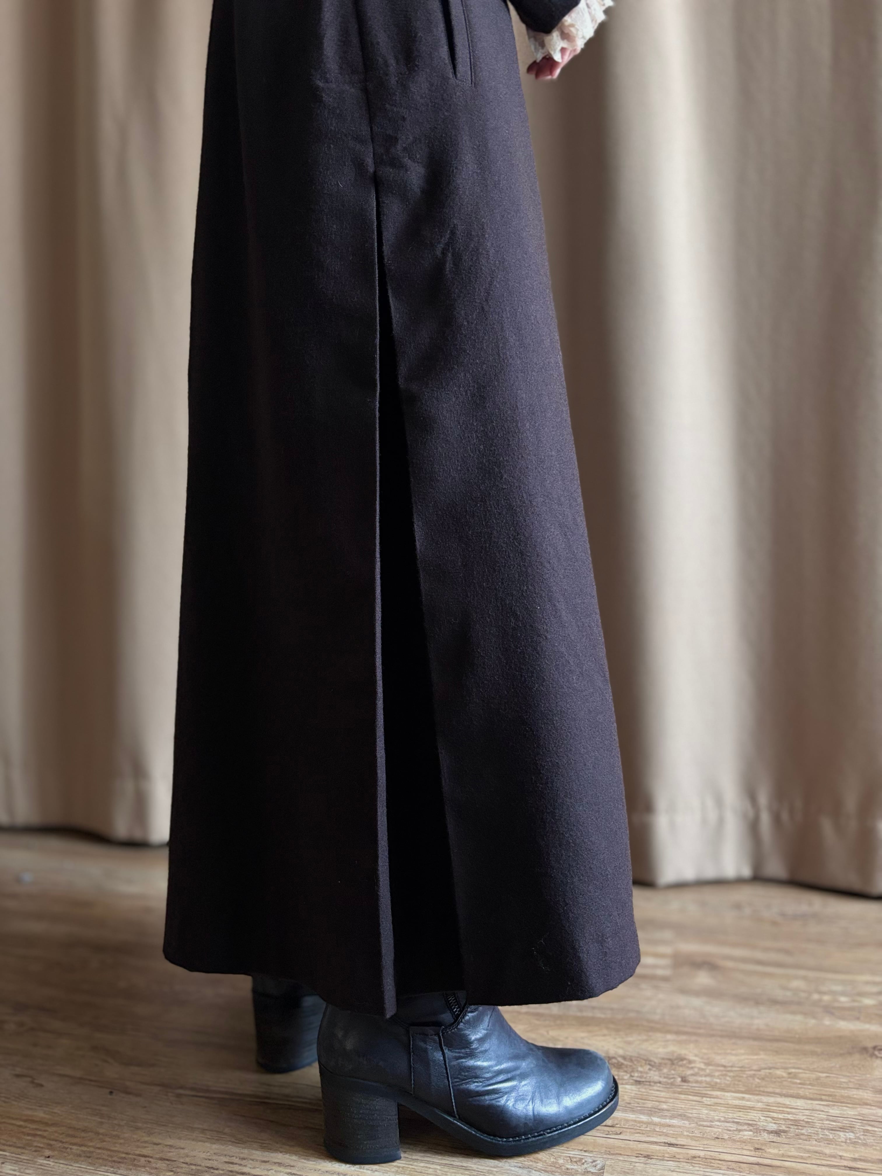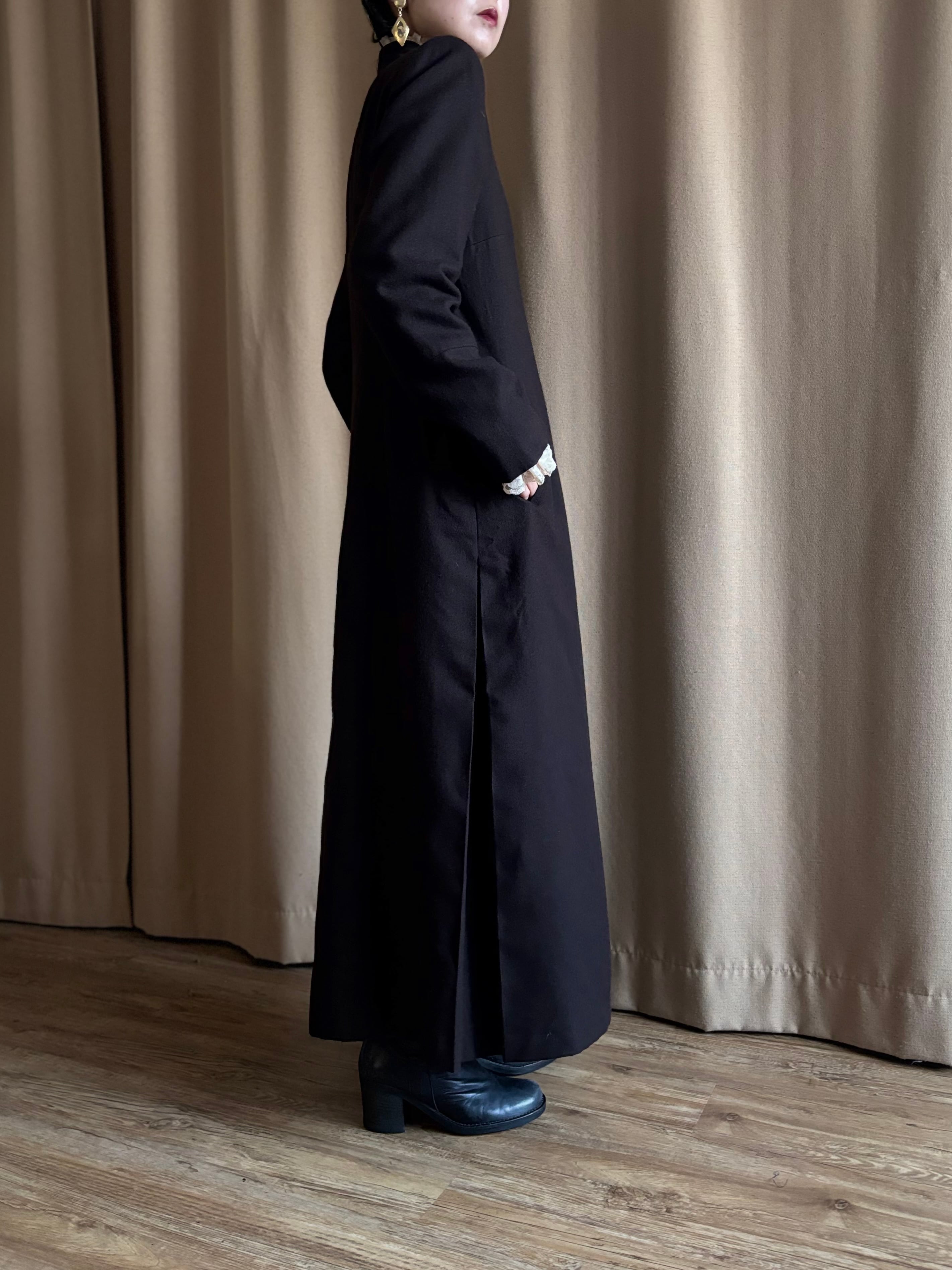 上質なウールの滑らかな質感と深いダークブラウンが、纏うだけで空気を引き締めます。