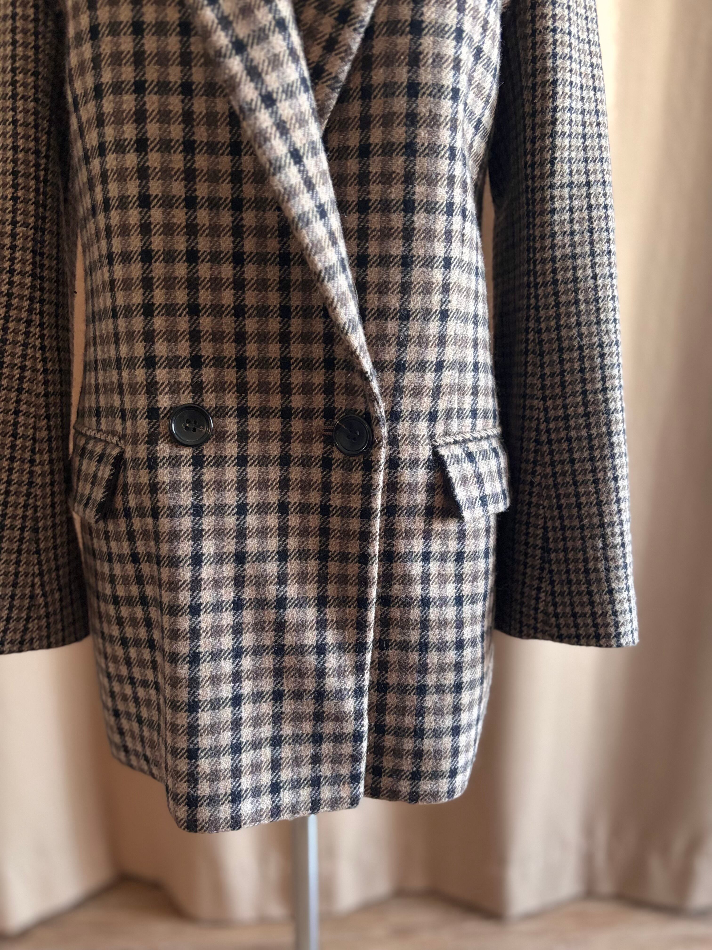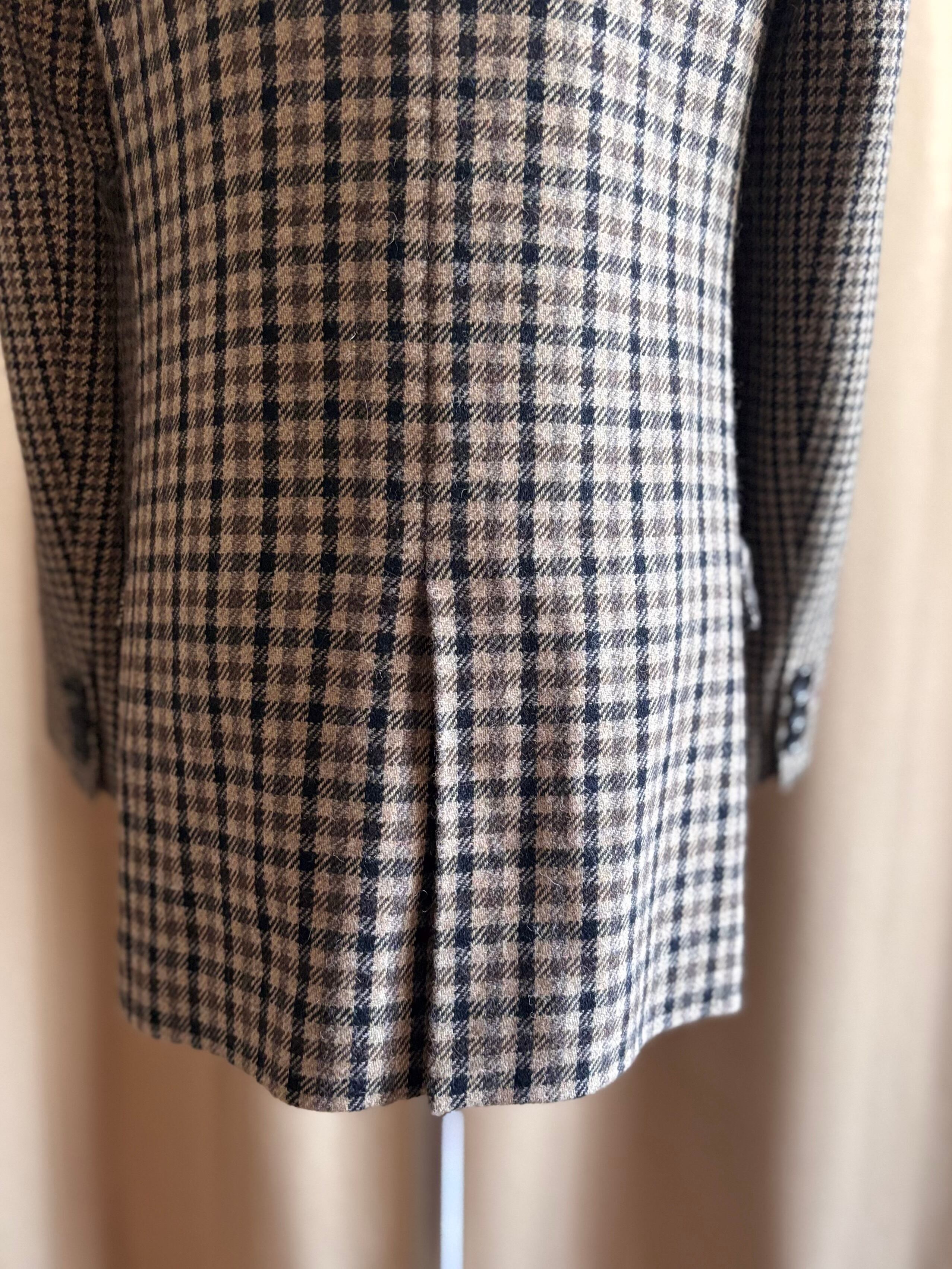 【B】フロント袖口ボタン傷あり、毛羽立ちややあり、裏地小さな傷みやシワややあり、タグ手書き表記あり