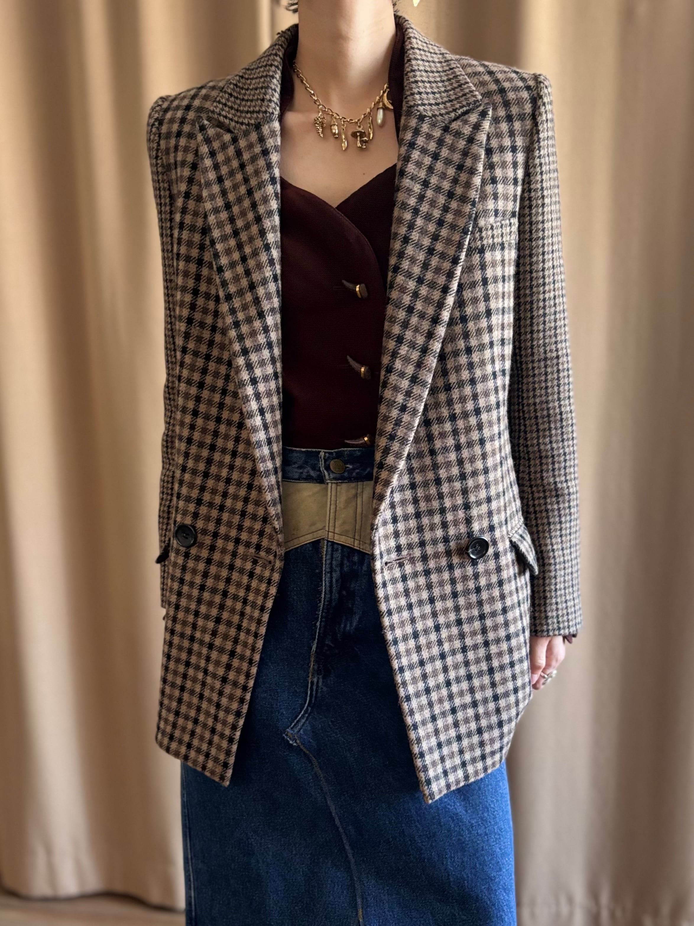 落ち着いたトーンのチェック柄は、トラッドでありながらモードな空気を纏い、デニムやスカートに合わせるだけでスタイリングを格上げ。