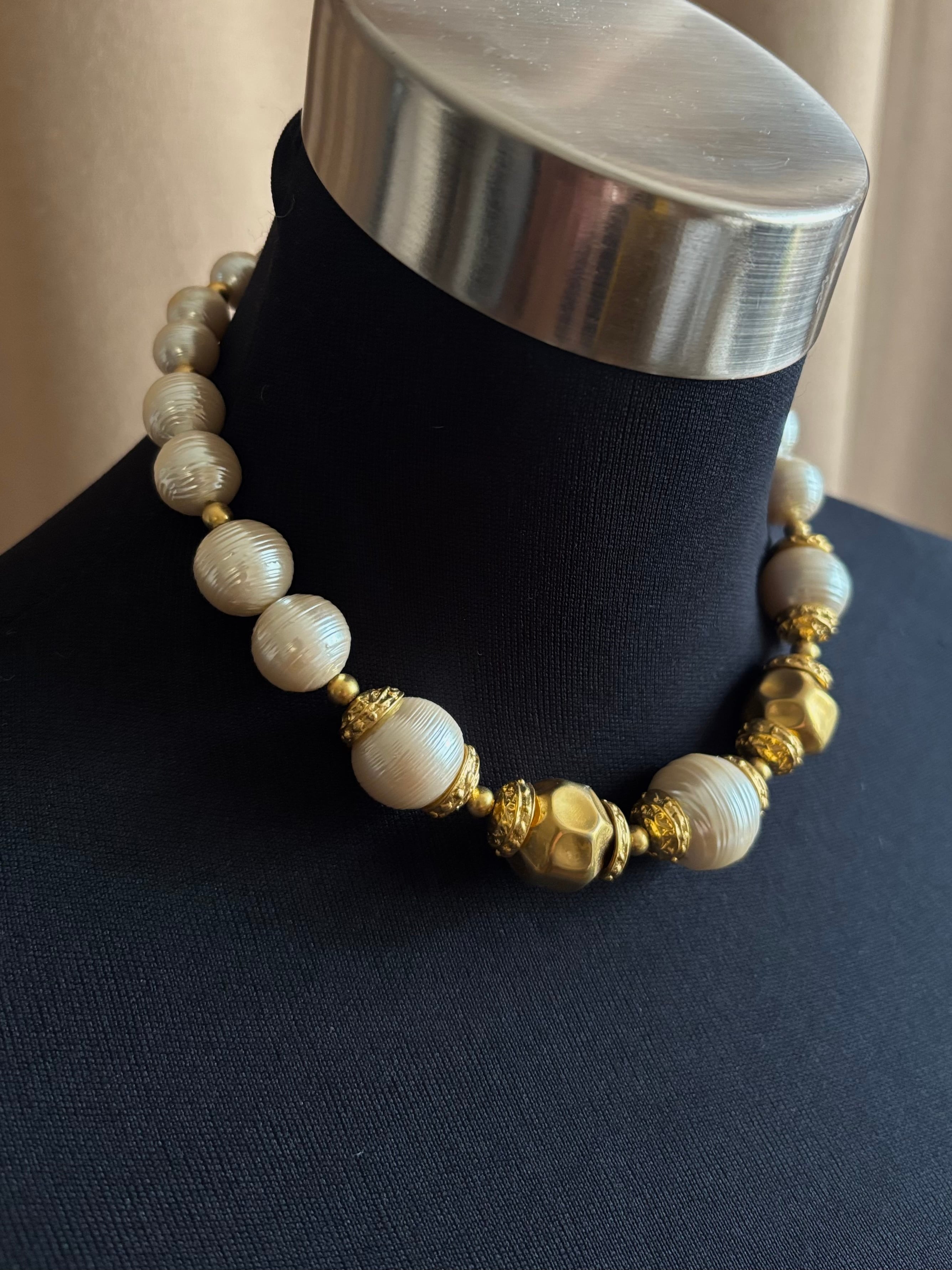 luxury big pearl gold necklace-5153-2