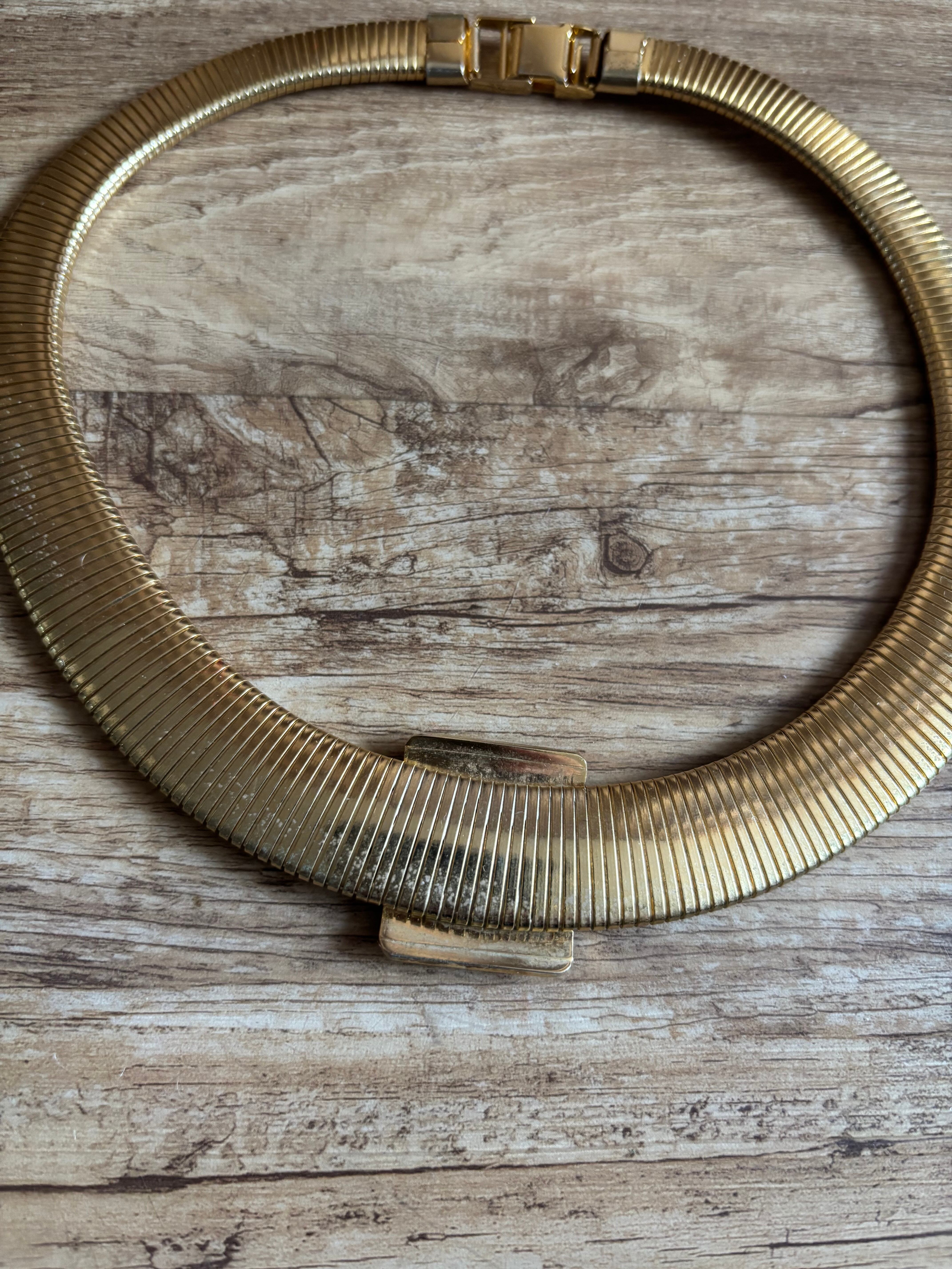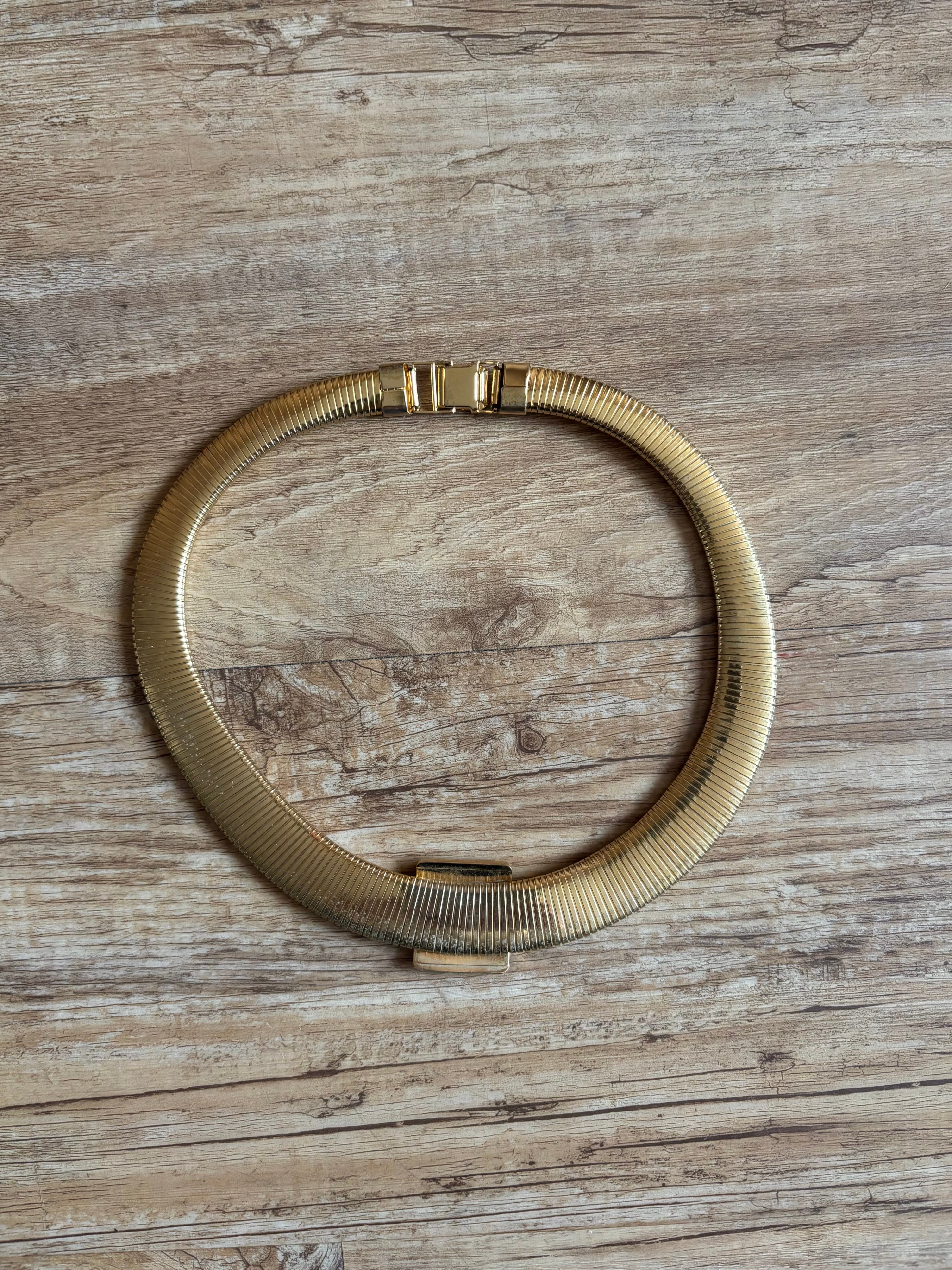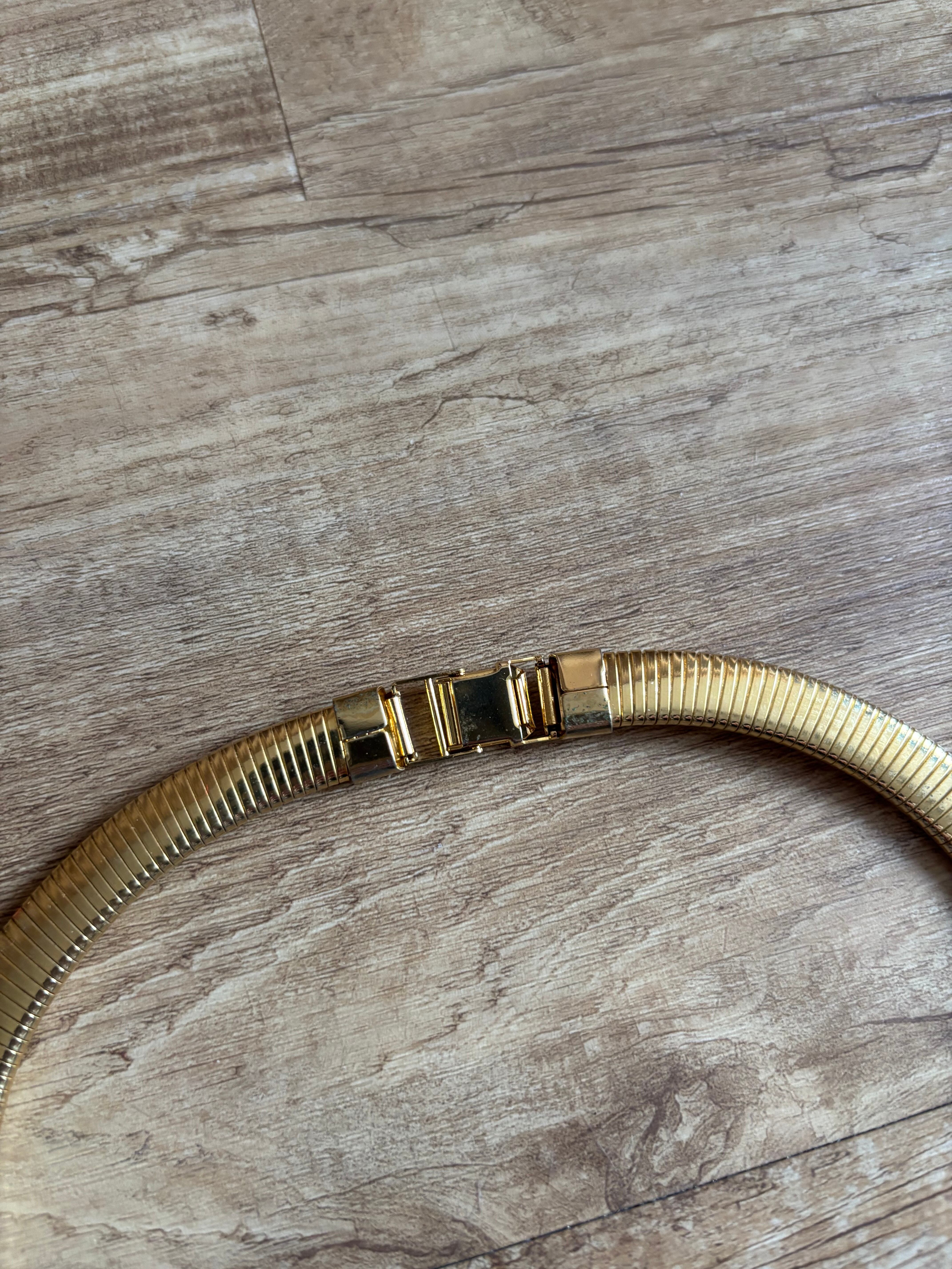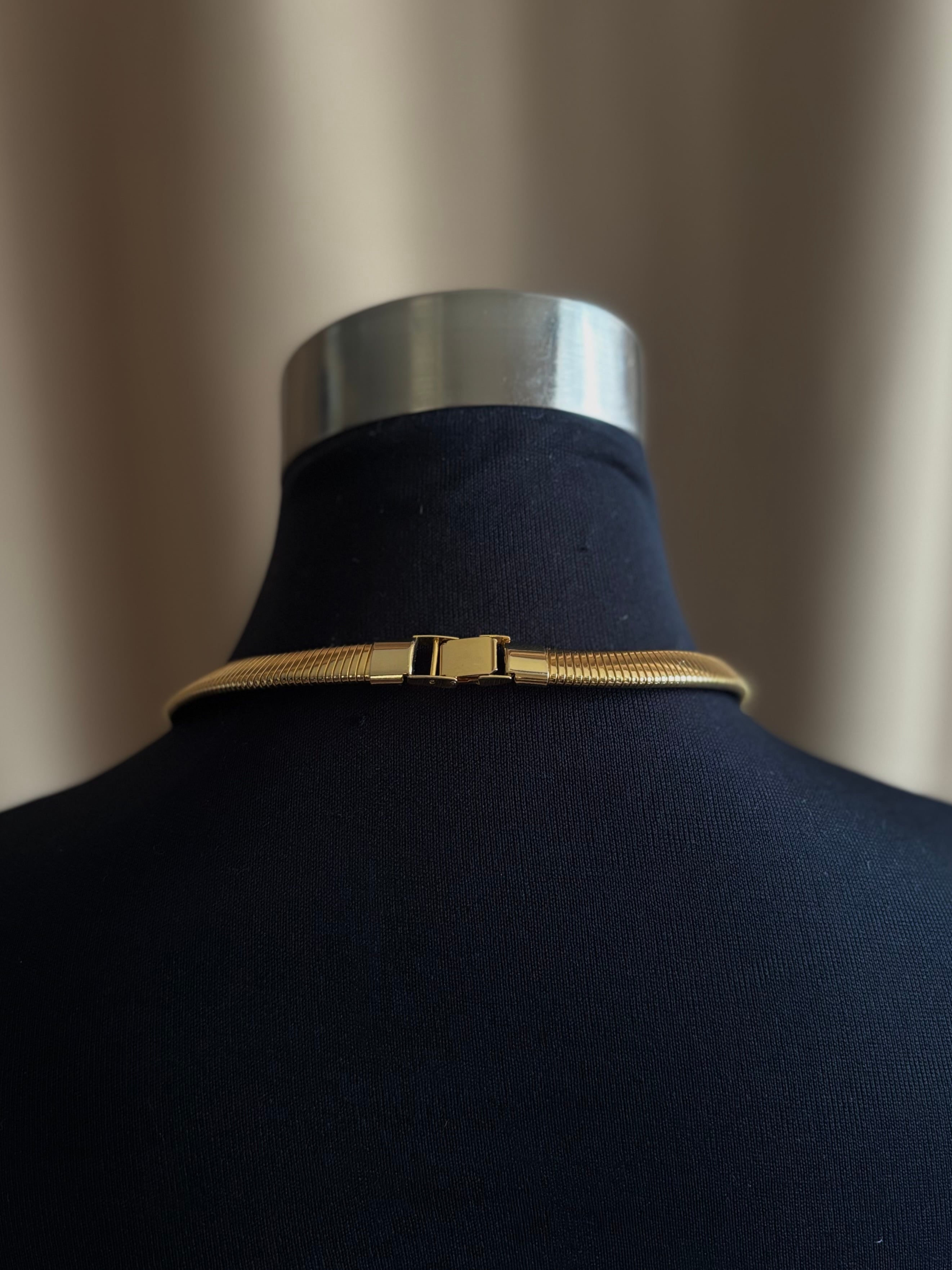 しなやかなゴールドトーンが美しい、首元にフィットするチョーカーデザインのネックレス。