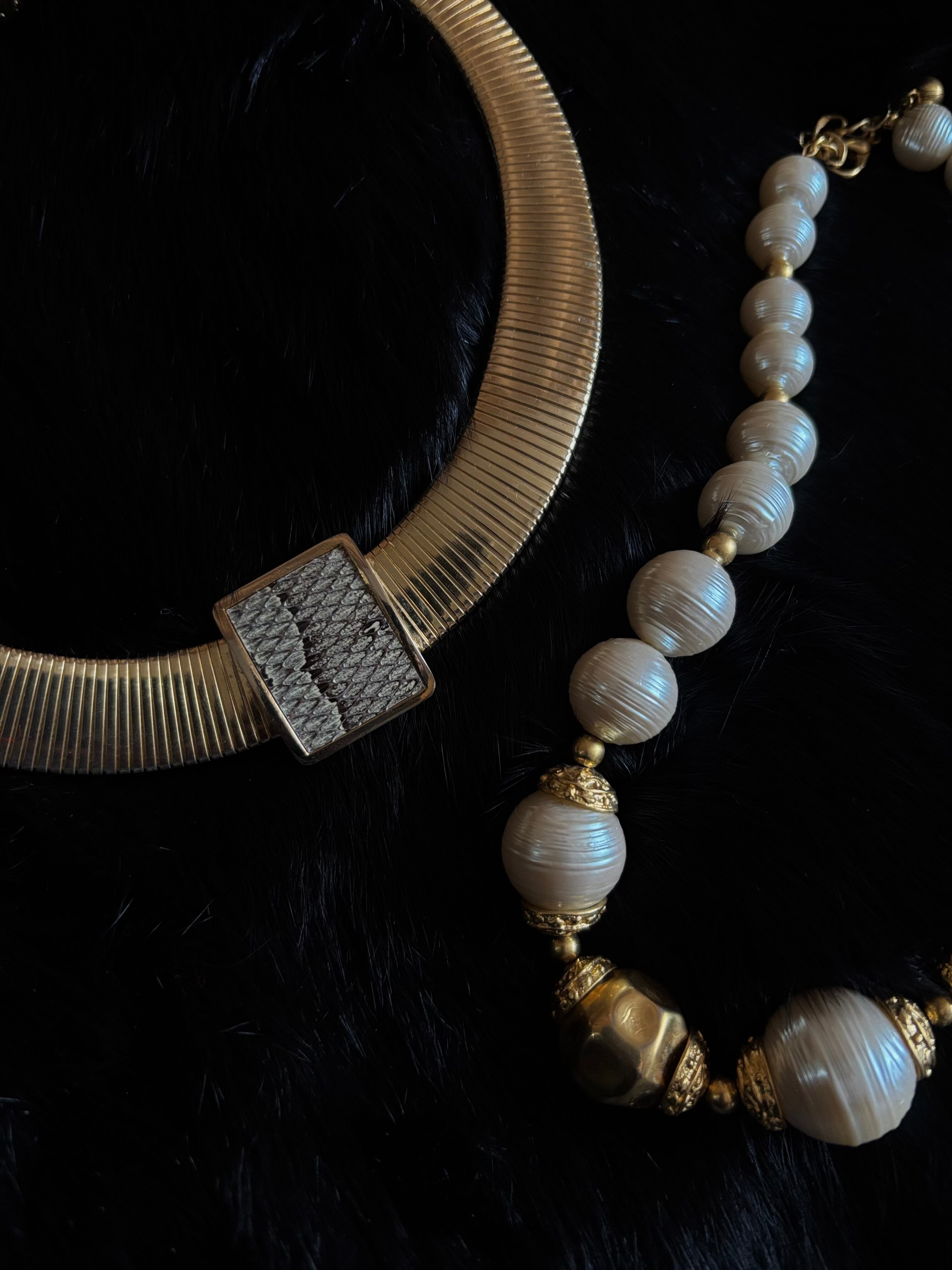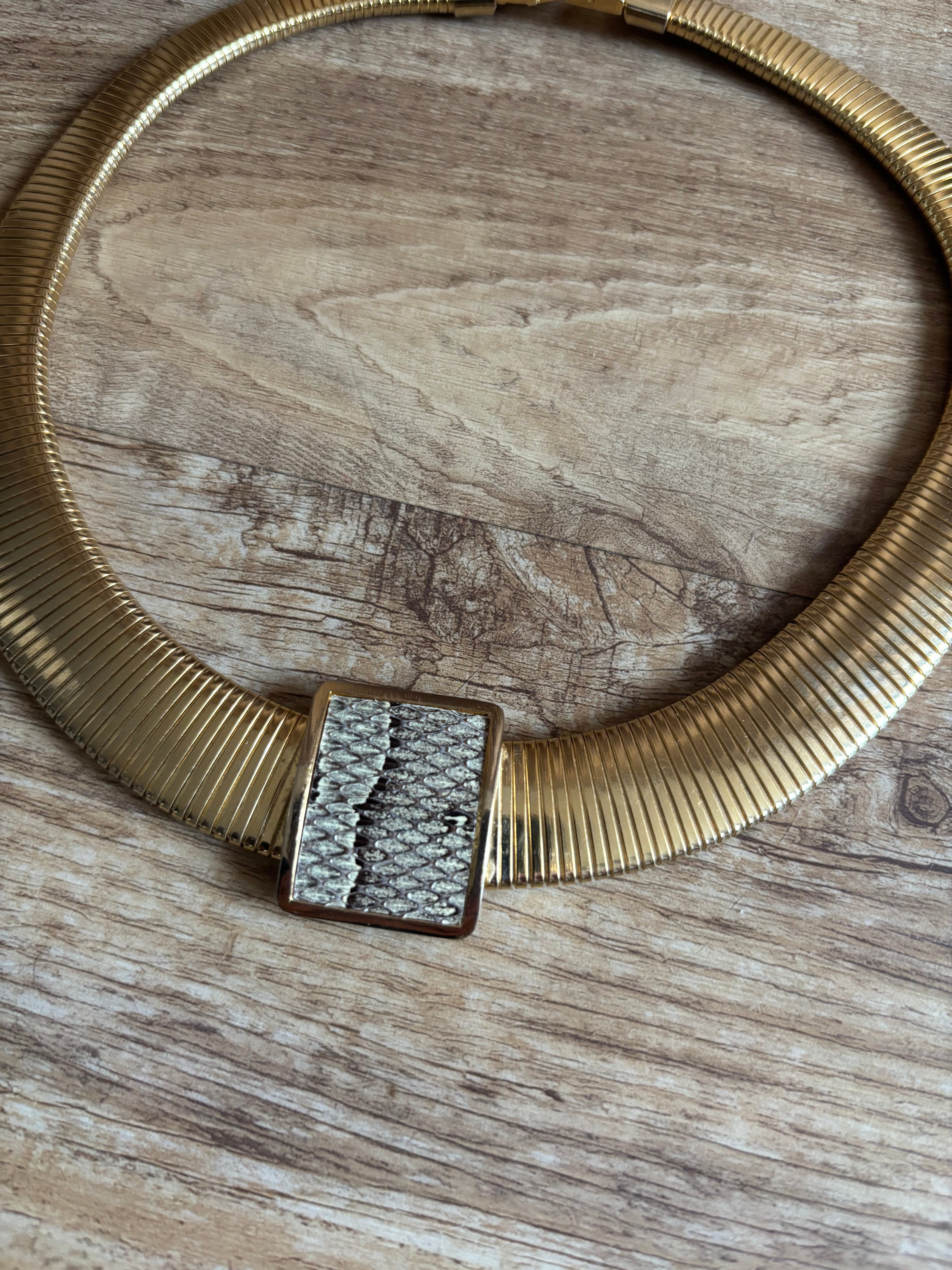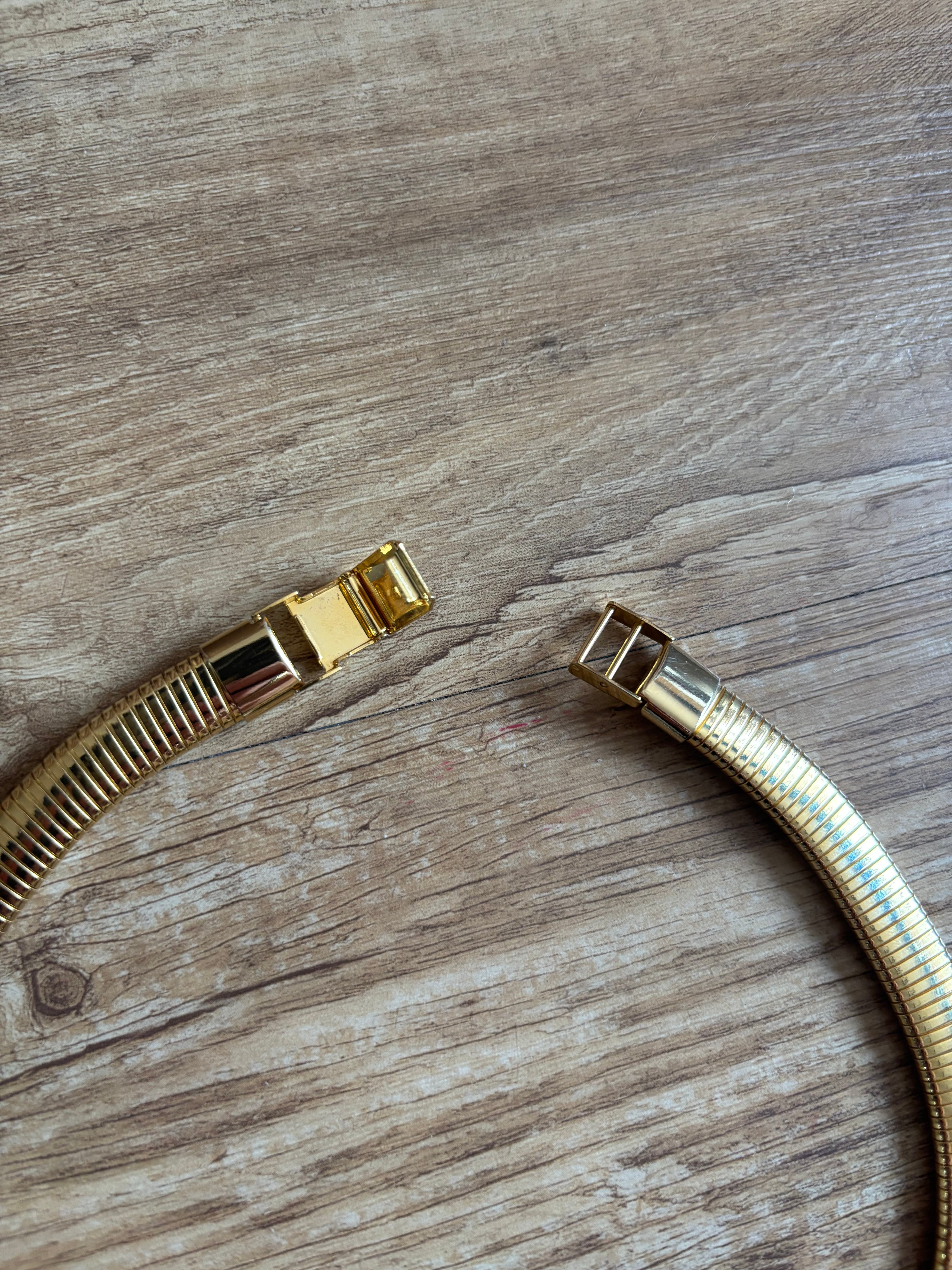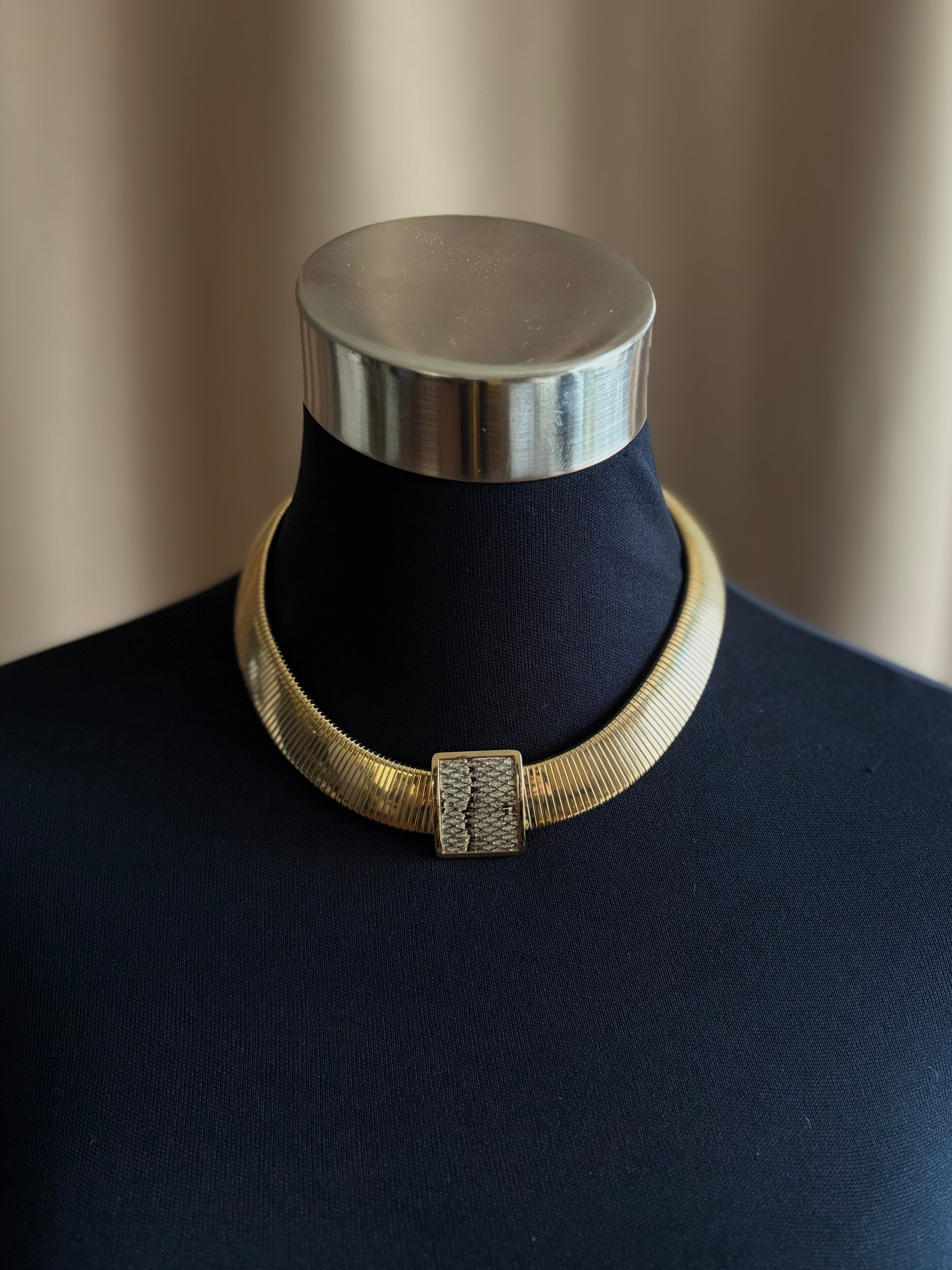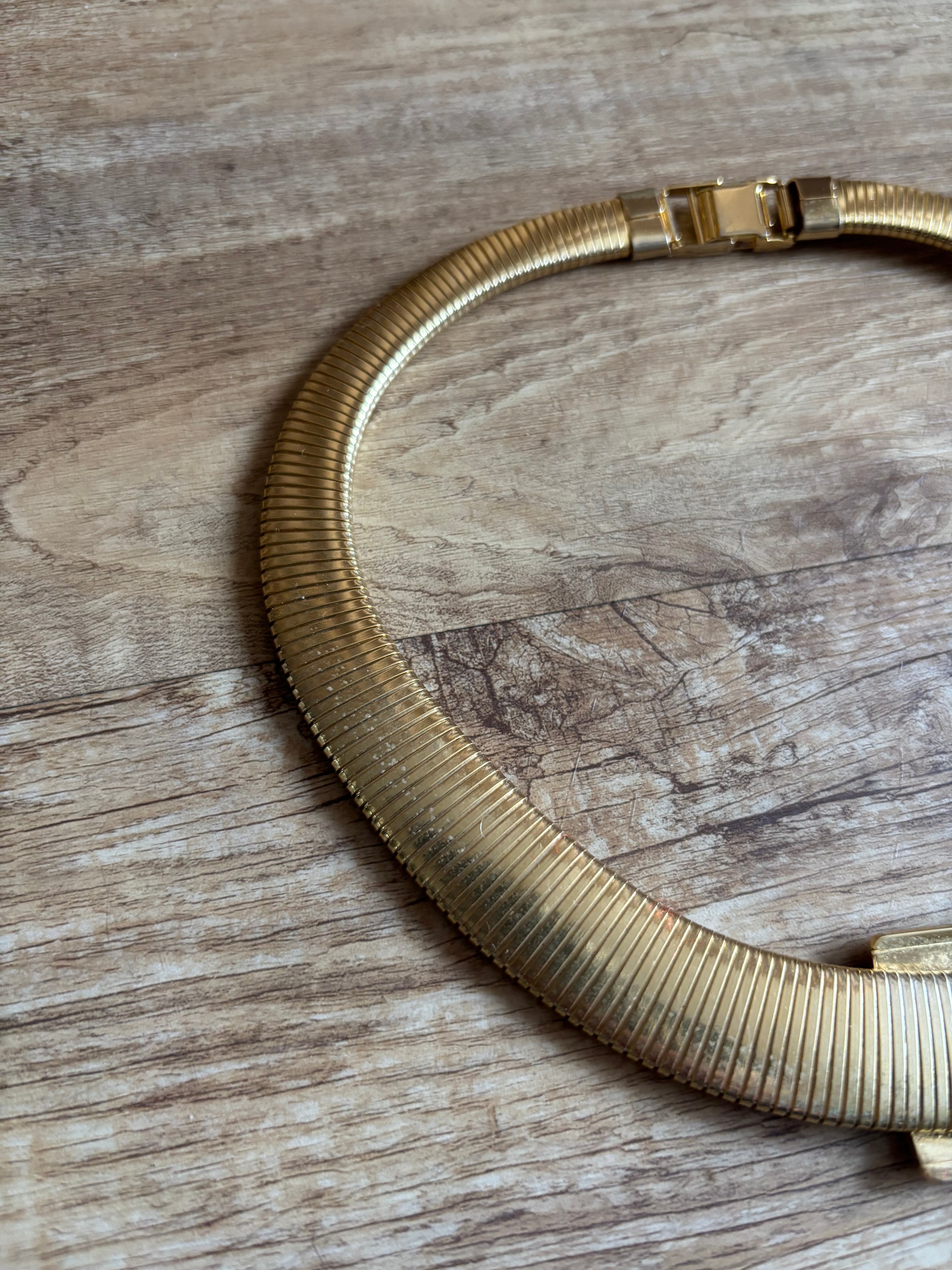 しなやかなゴールドトーンが美しい、首元にフィットするチョーカーデザインのネックレス。