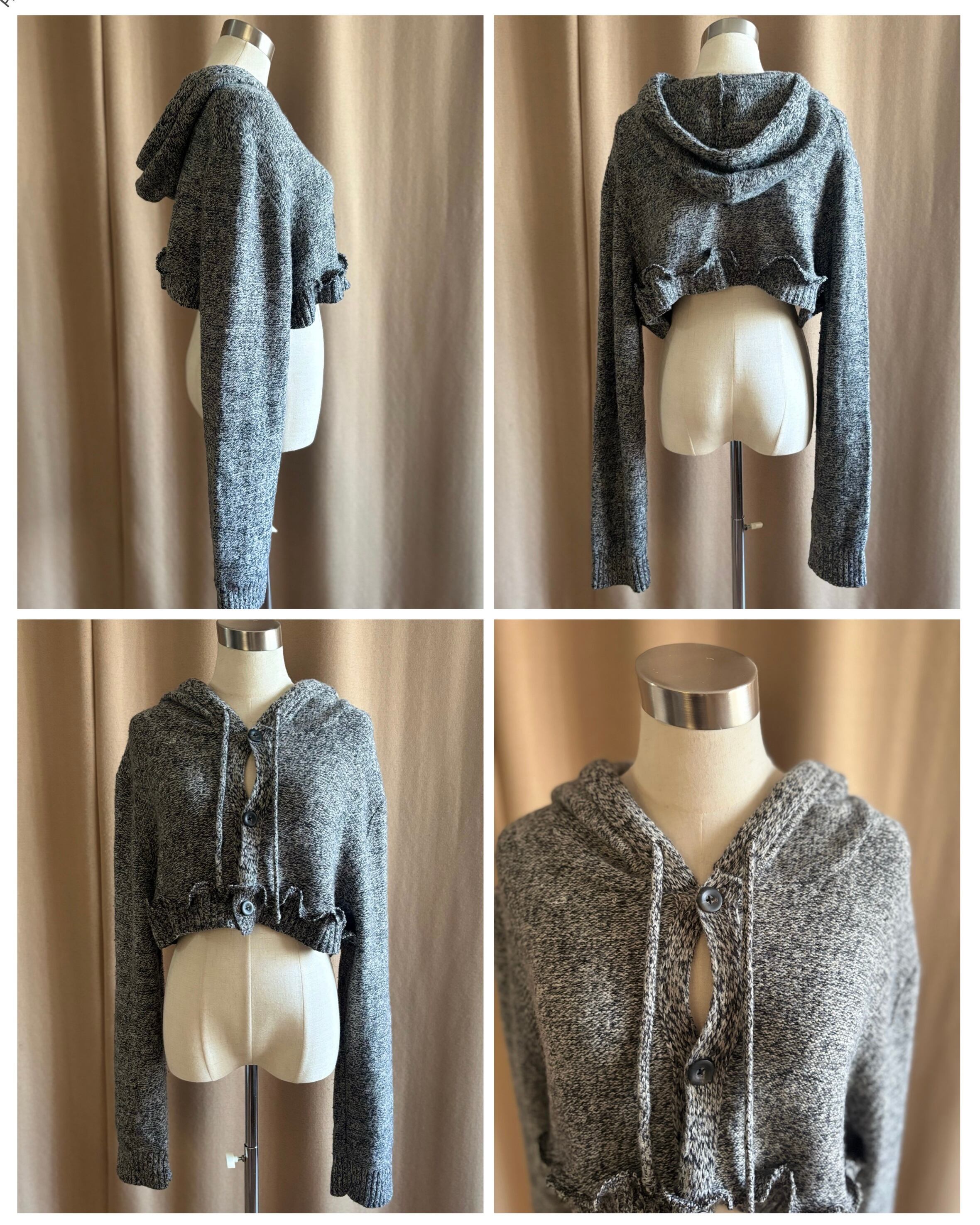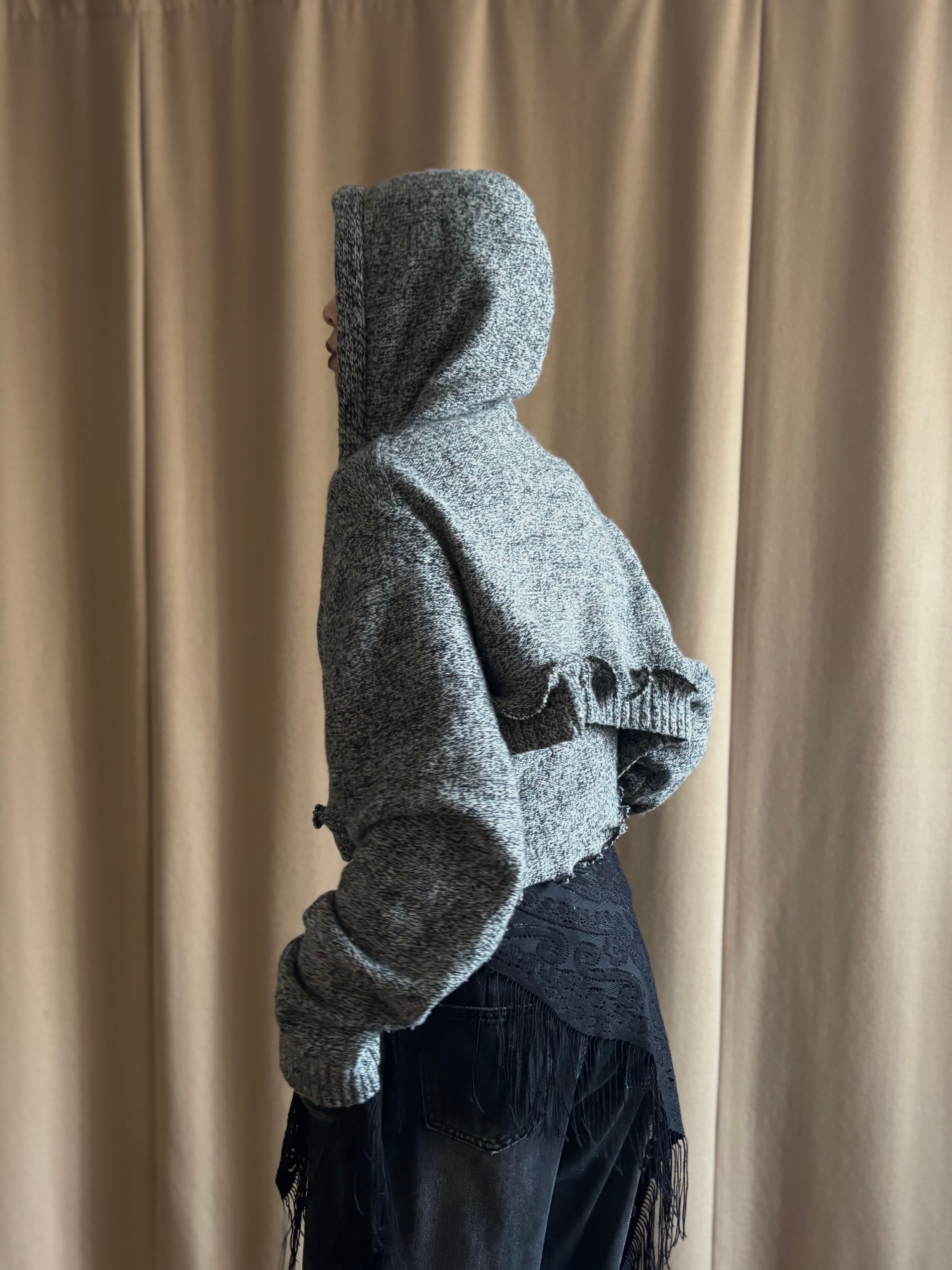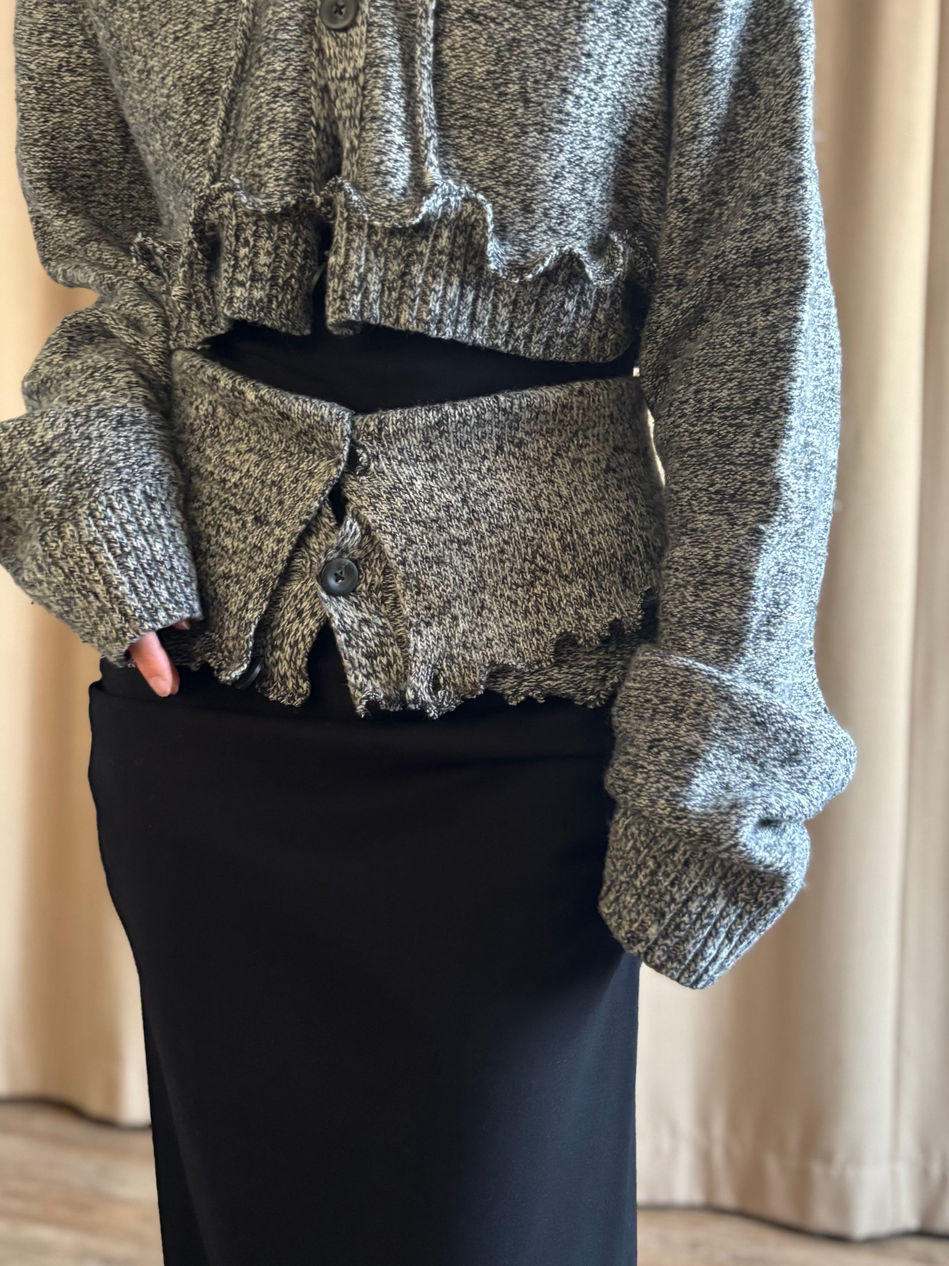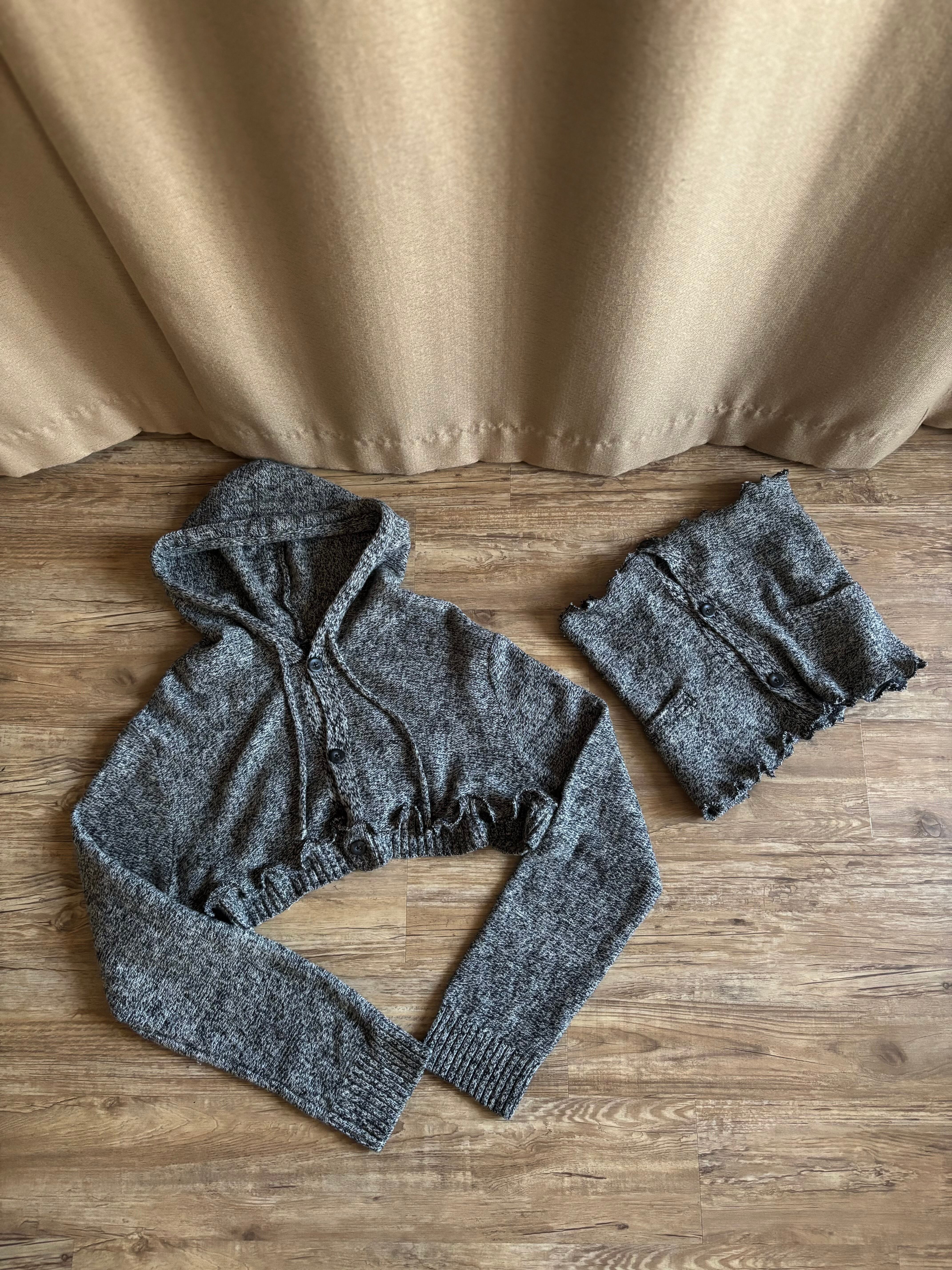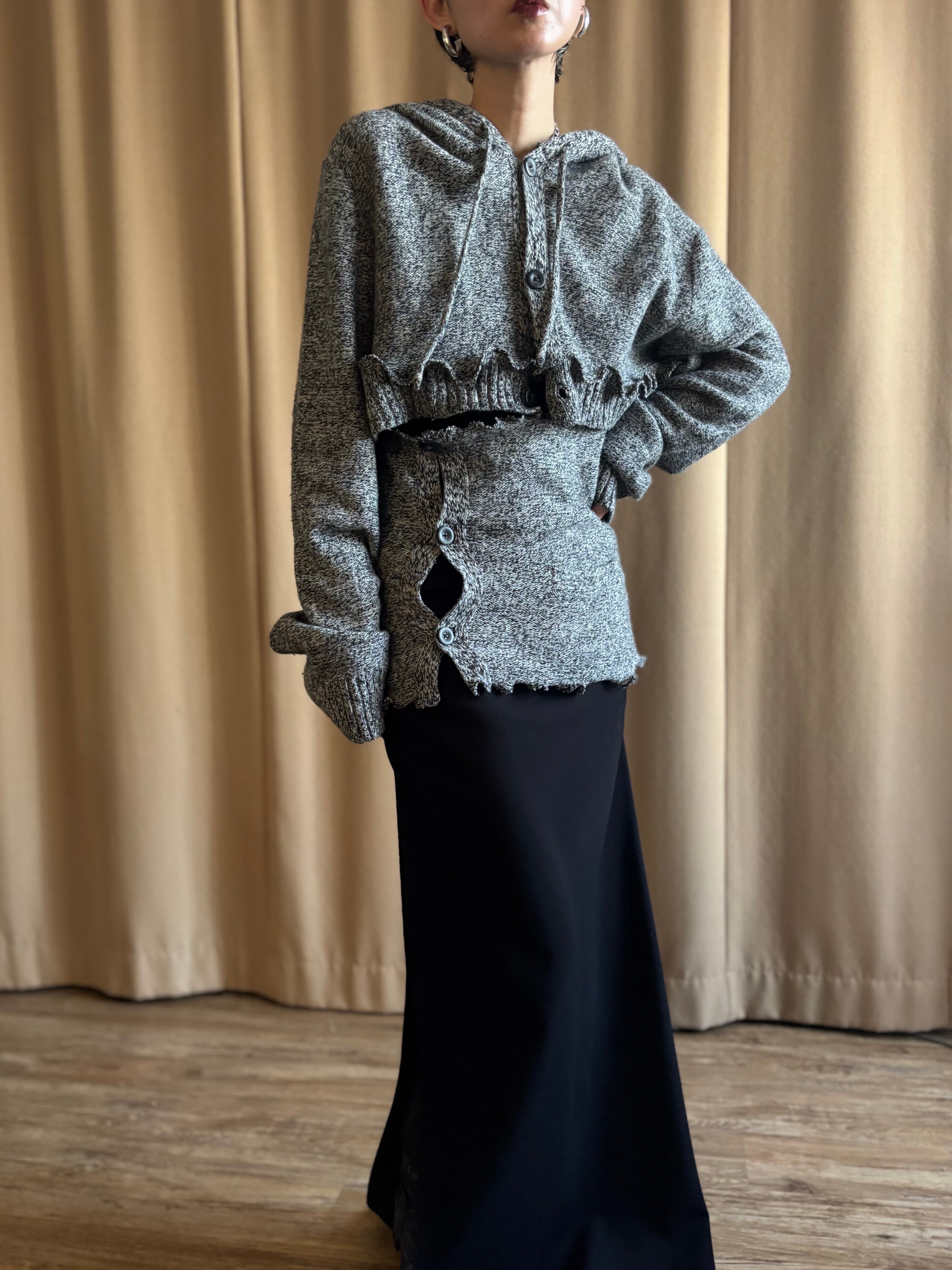 フーディーカーディガンとレイヤードトップスの2点セットとして再構築した