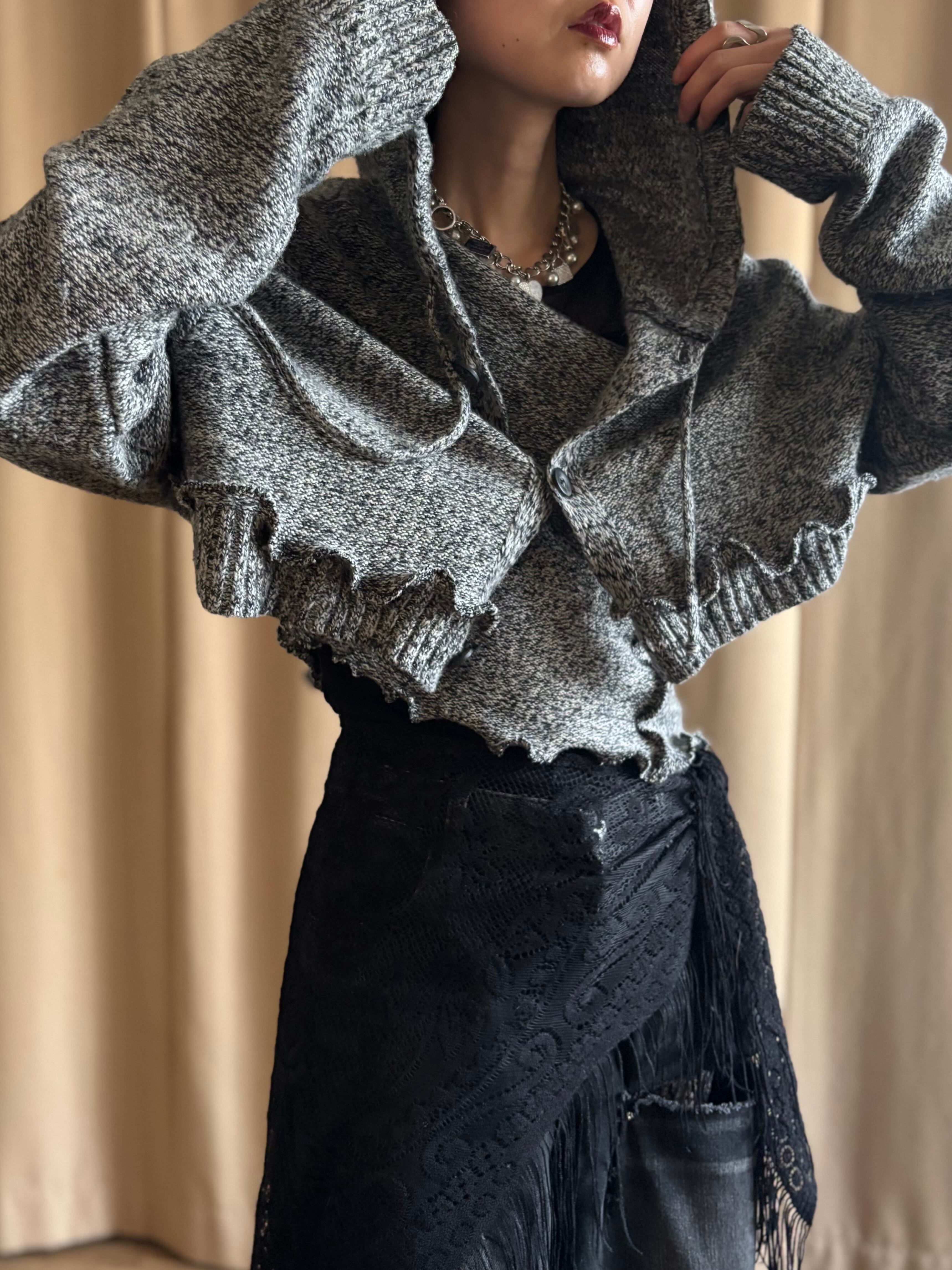 立体感のあるカットラインとラフなフリルディテールが、シンプルな装いにも自然な奥行きをプラス。