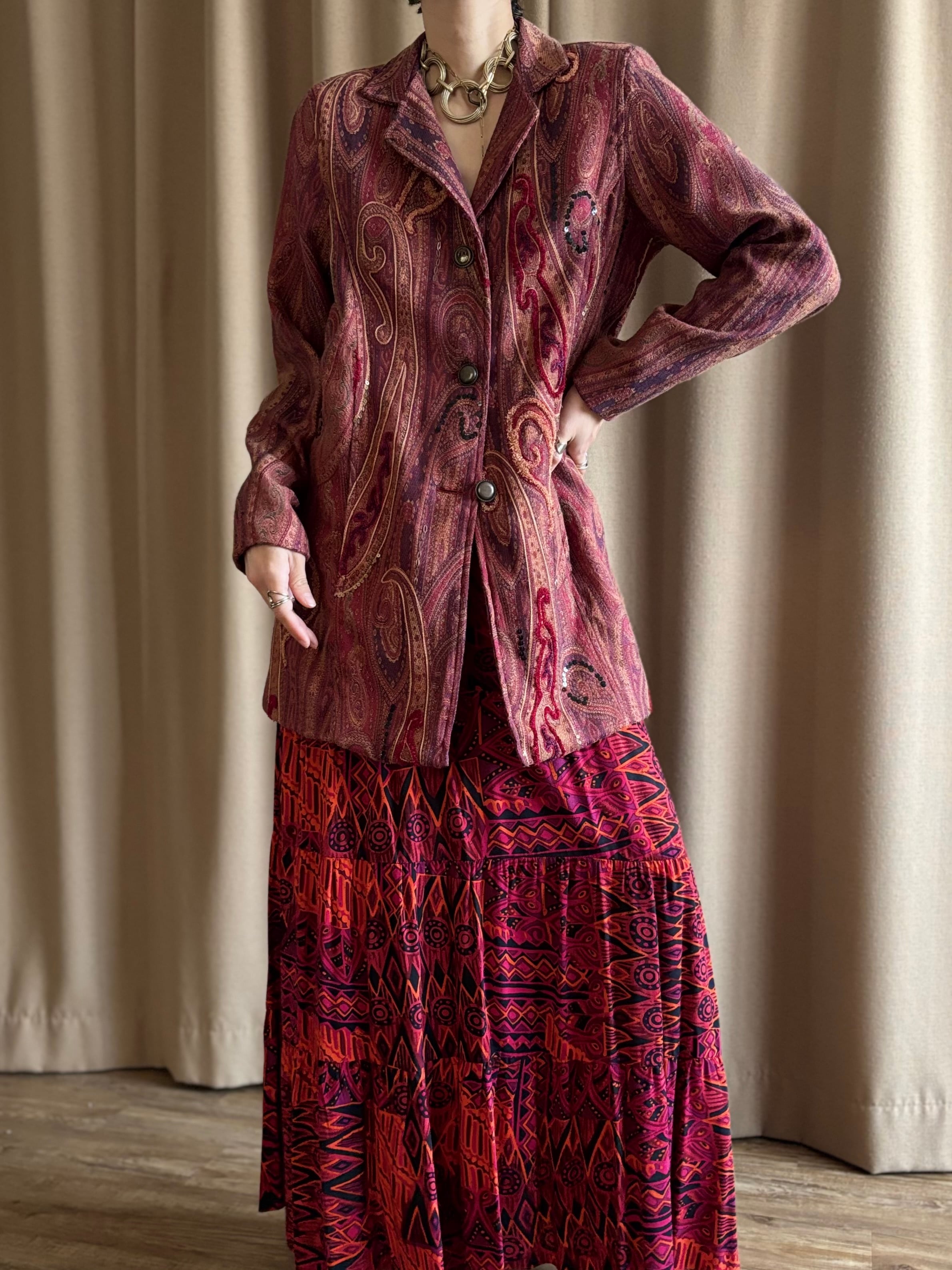 アートを彷彿させる繊細なペイズリー柄と立体的な柄が施され、コーディネートに奥行きをプラスしてくれます。