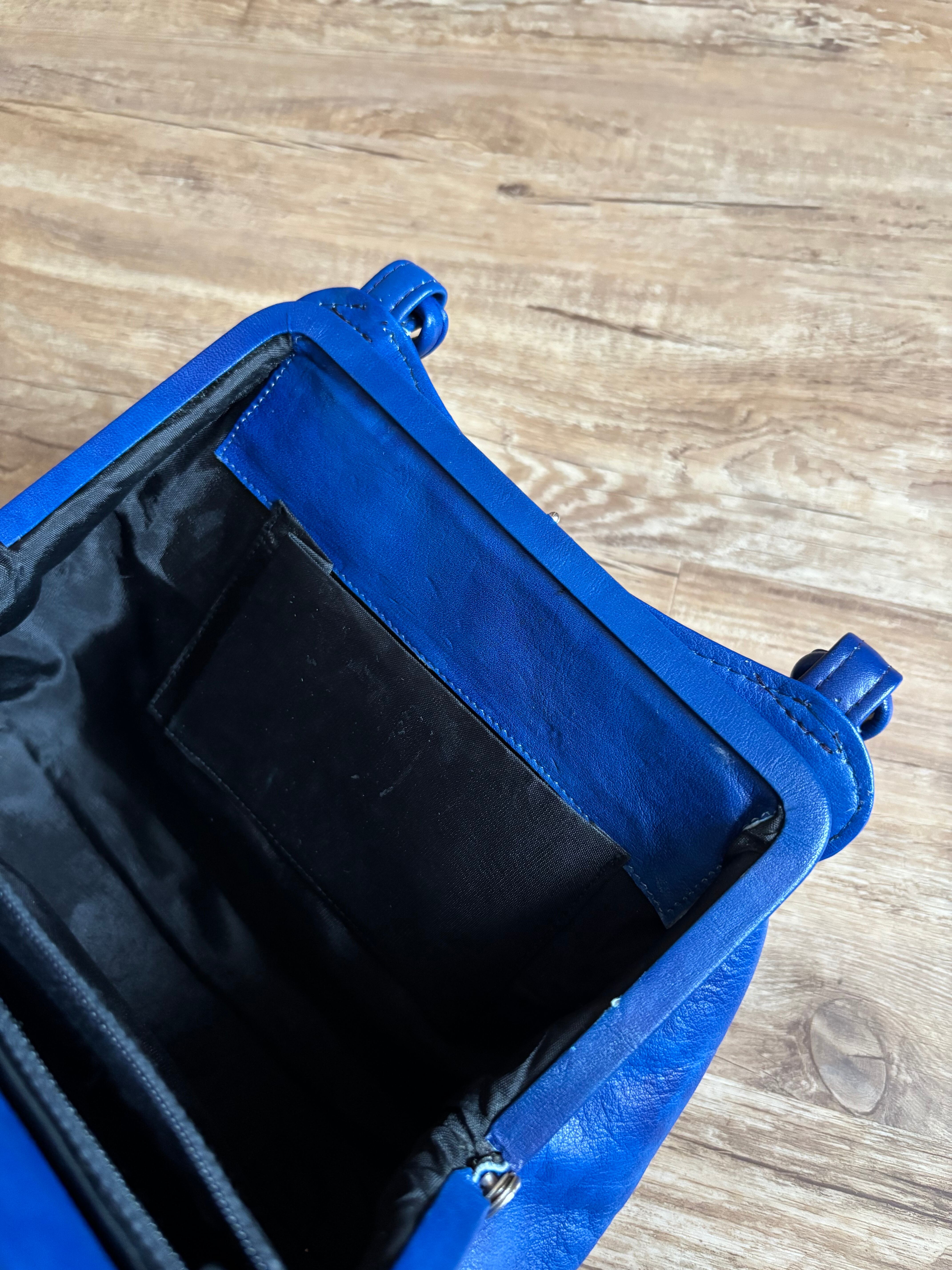 blue leather hand bag-5163-2