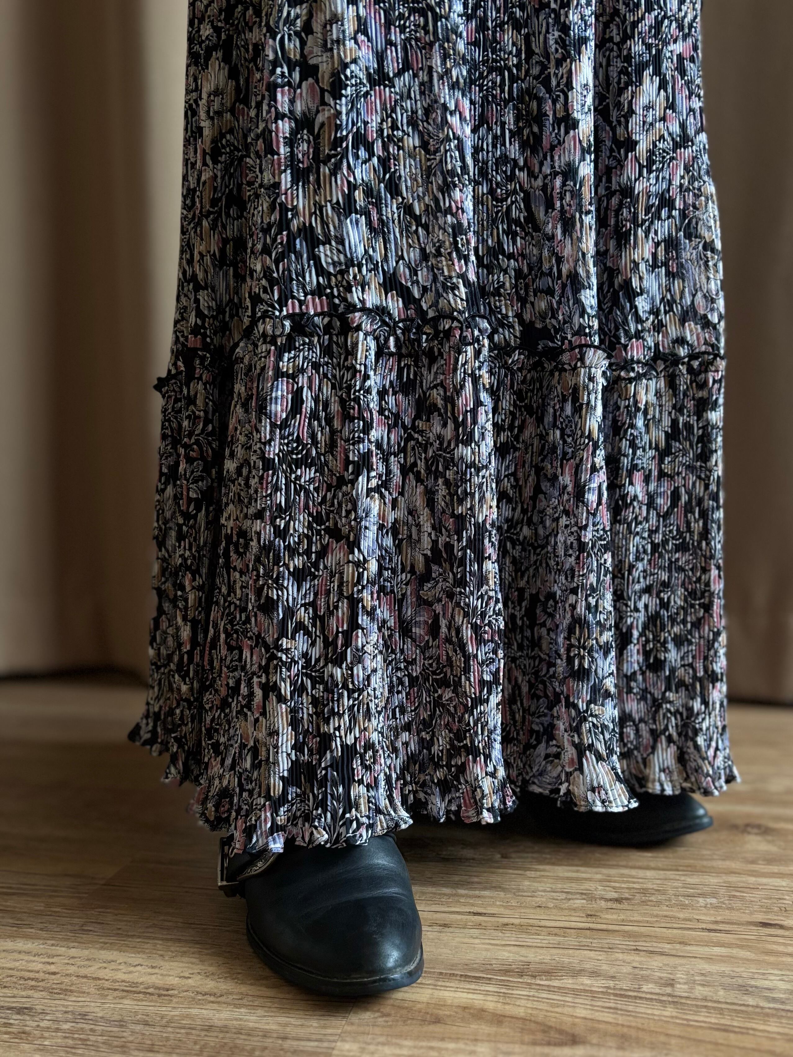スカート部分はティアードデザインになっており、柔らかな揺れ感がエレガントなシルエットを演出。