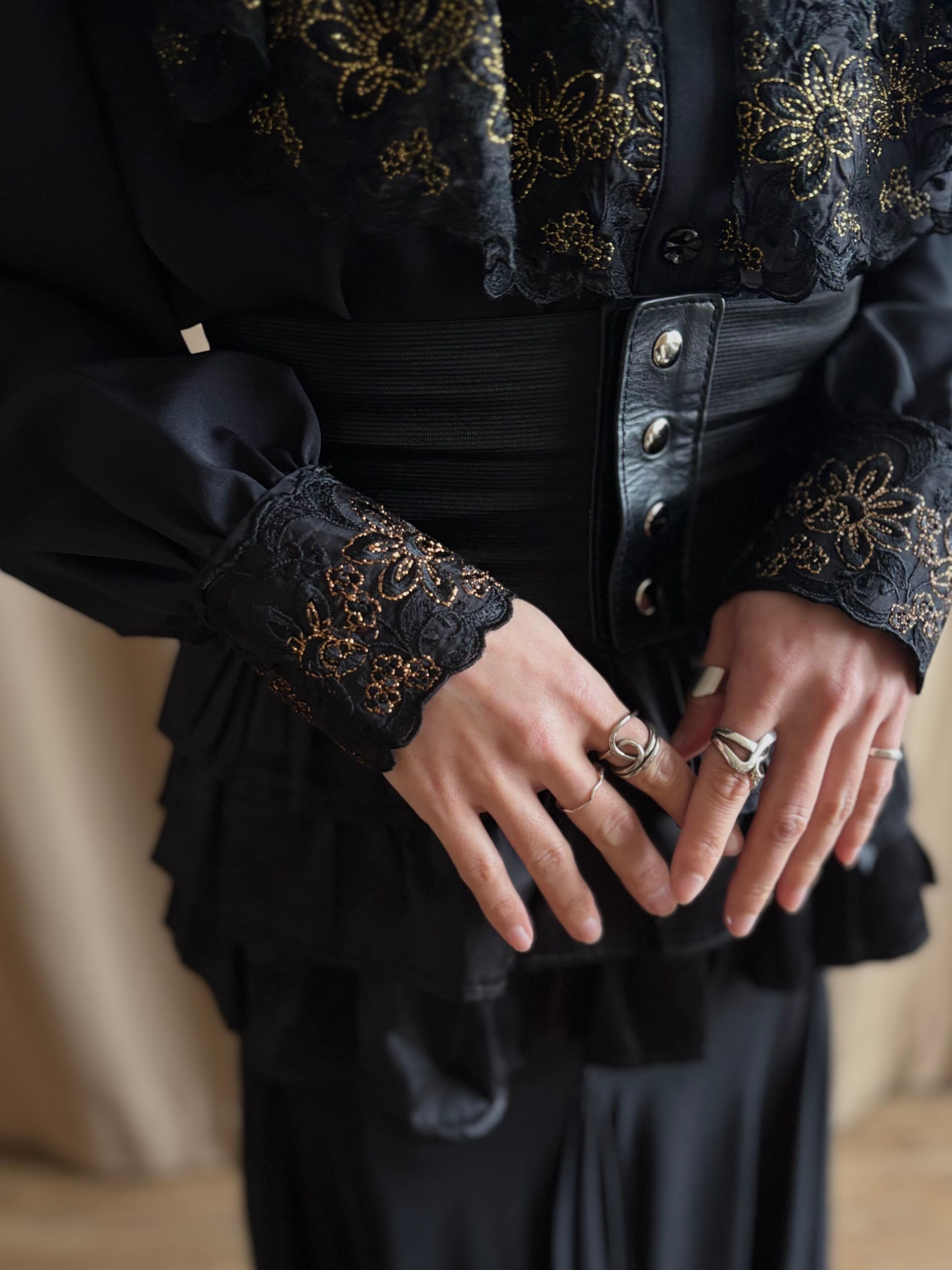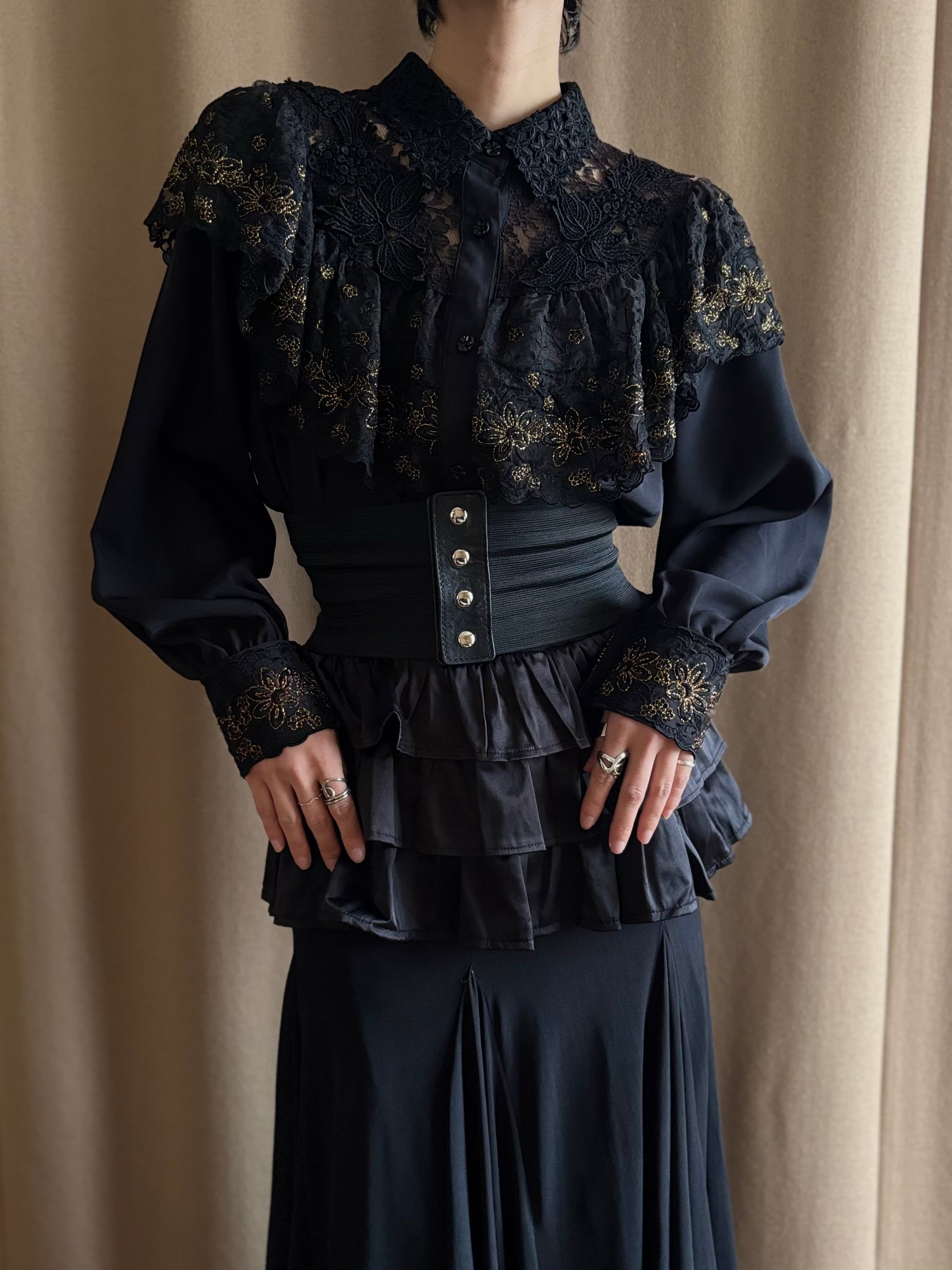 繊細なレースが存在感を放つ、ブラックレースシャツ。