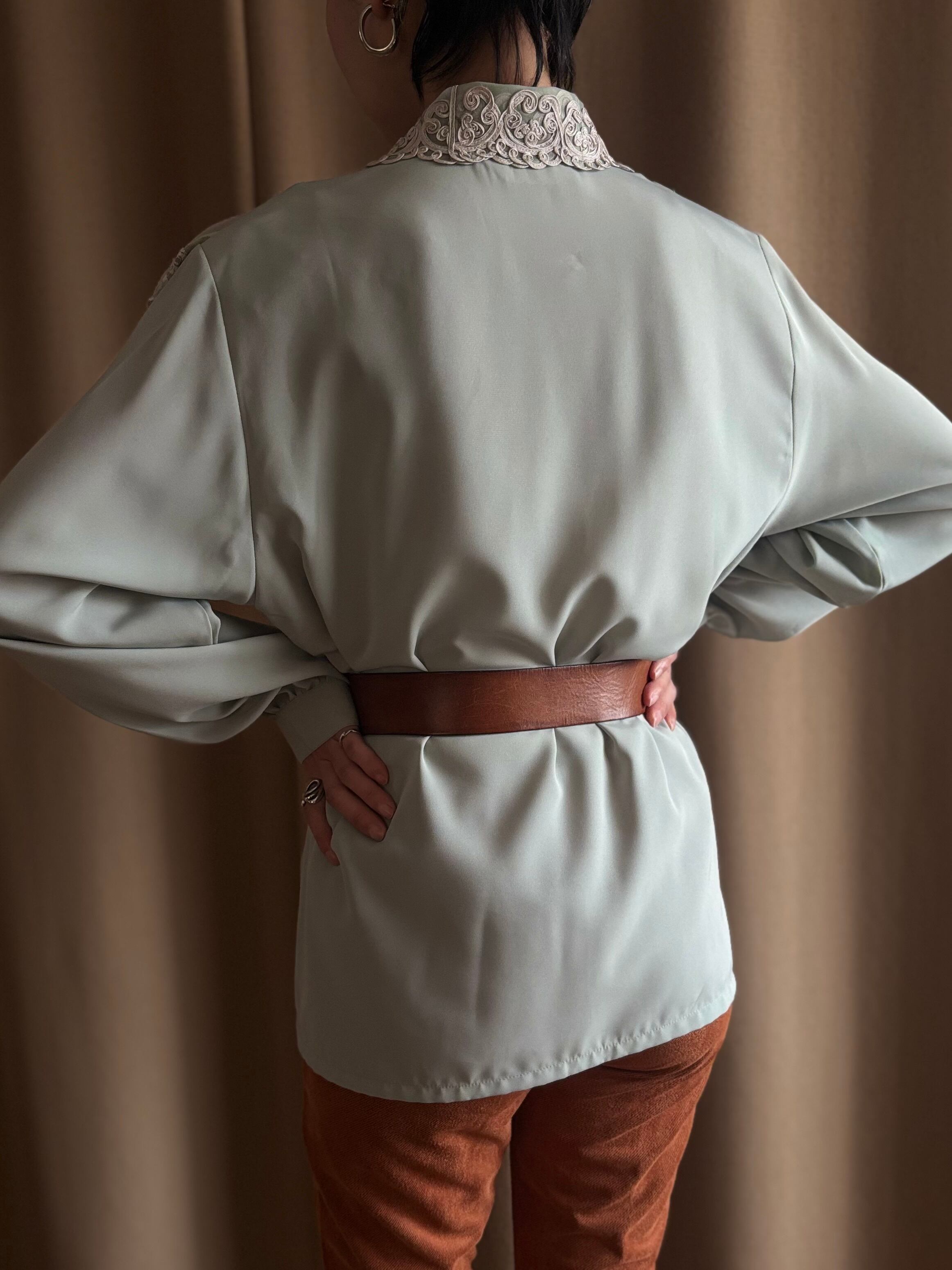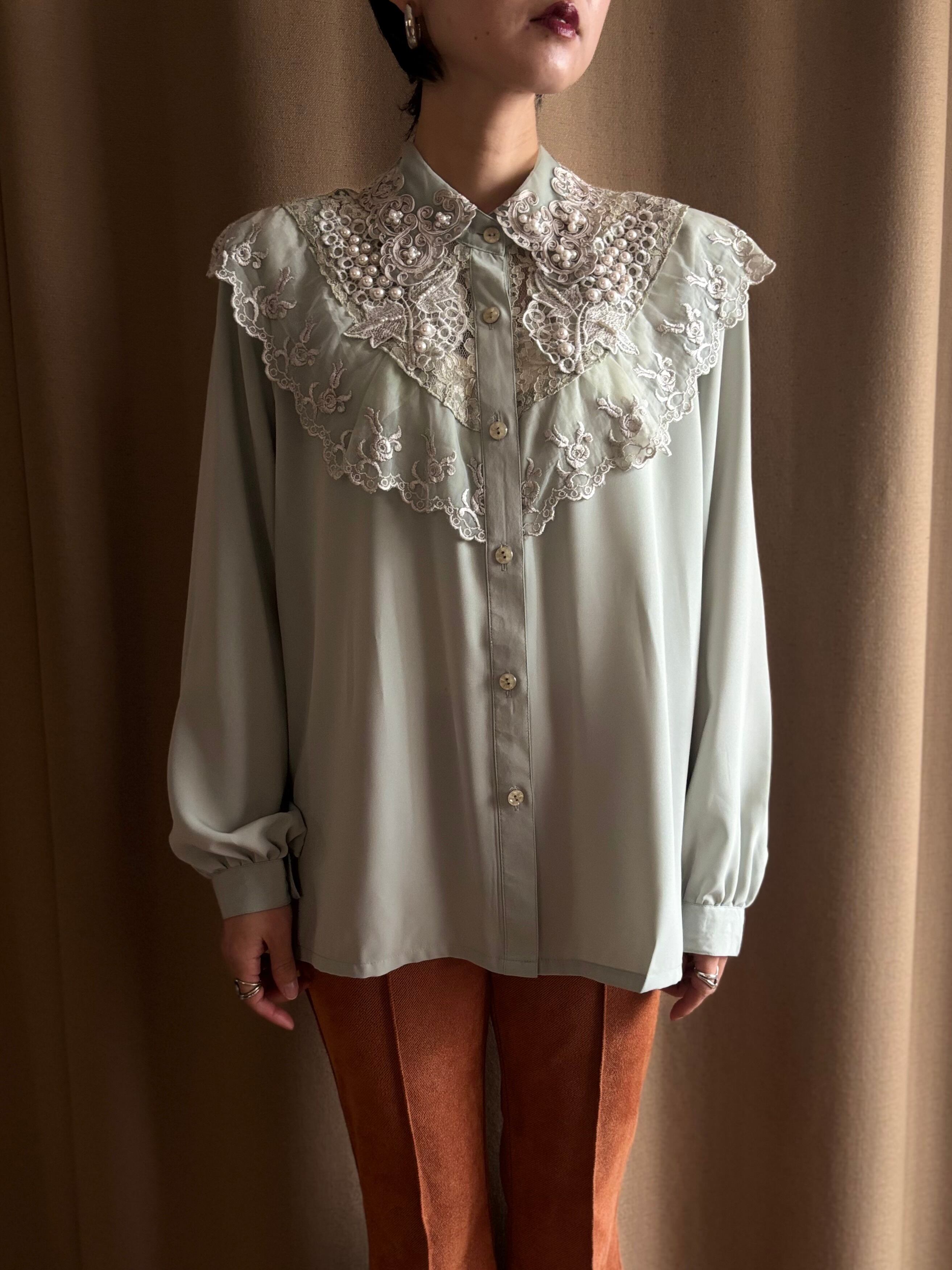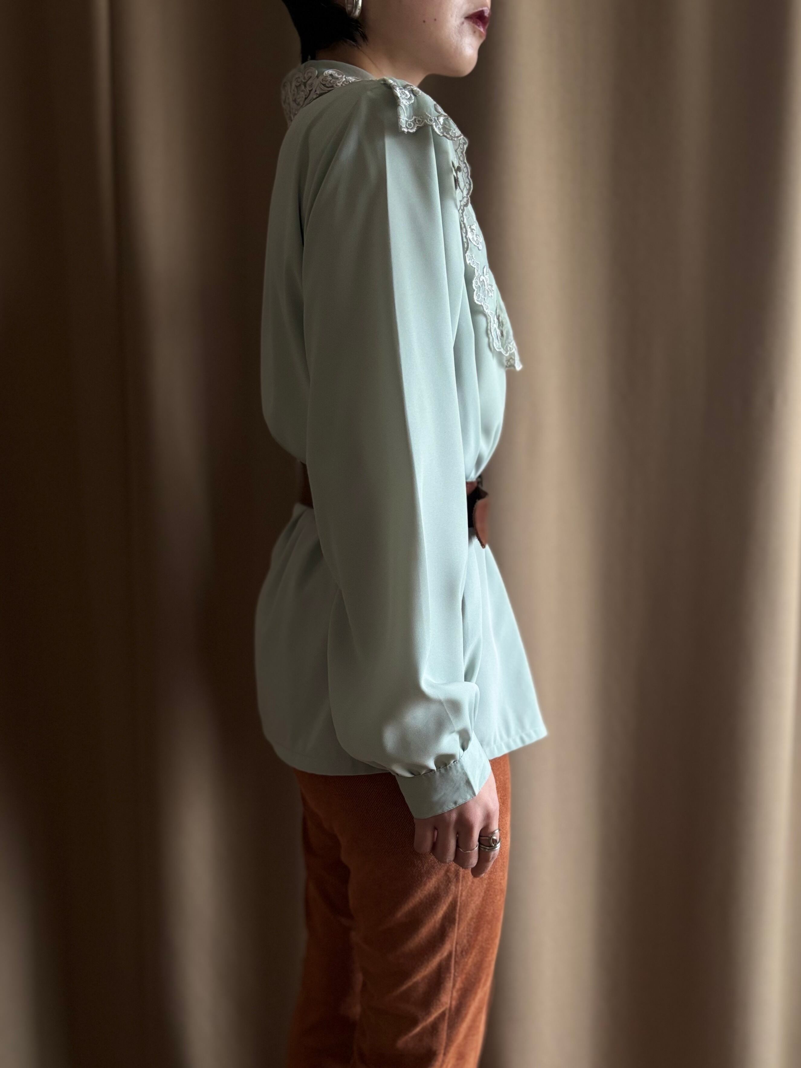 淡いミントグリーンが春らしいクラシカルシャツ。
