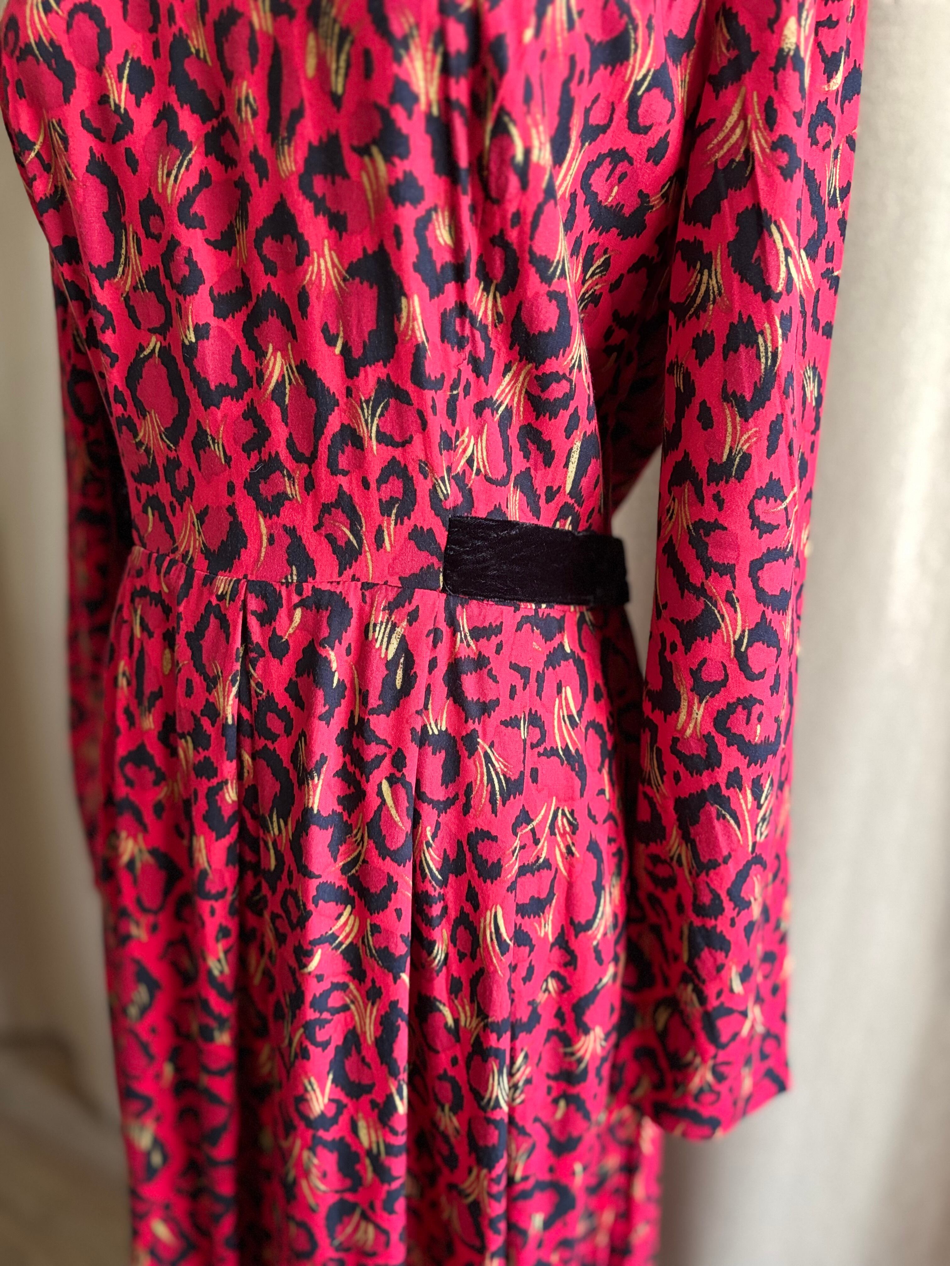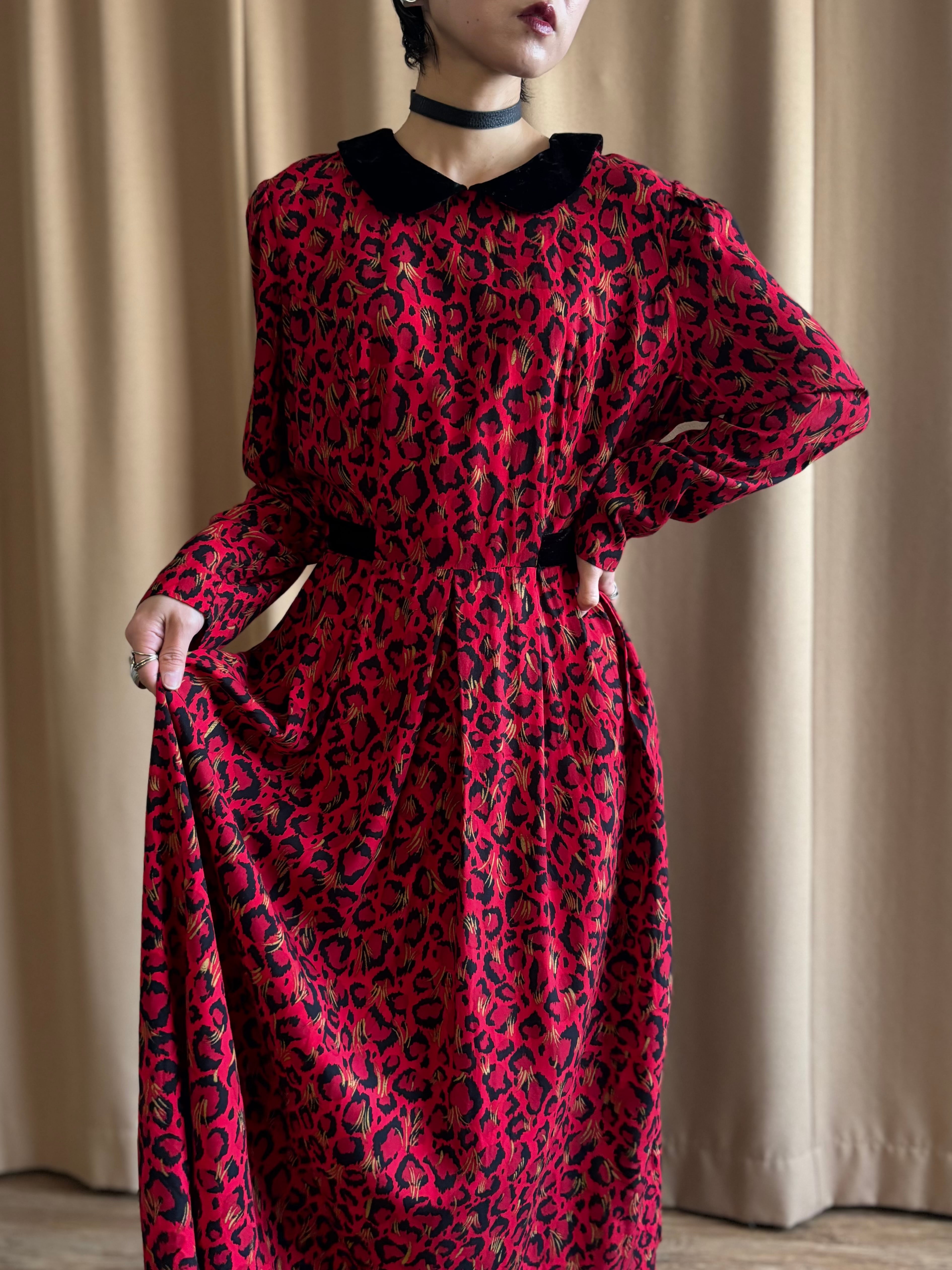 深みのあるレッドに大胆なアニマル柄が映える、存在感たっぷりのインポートワンピース。