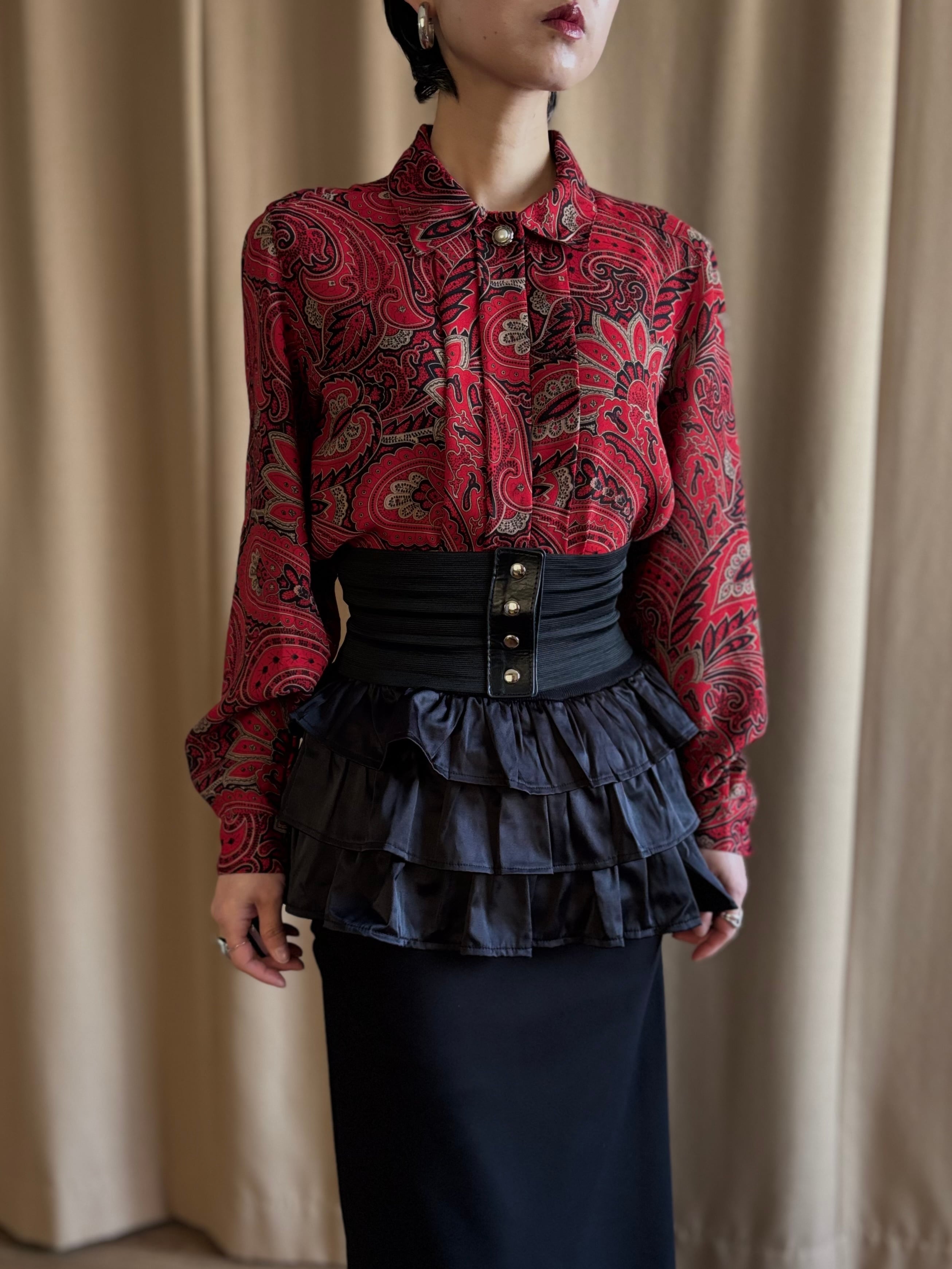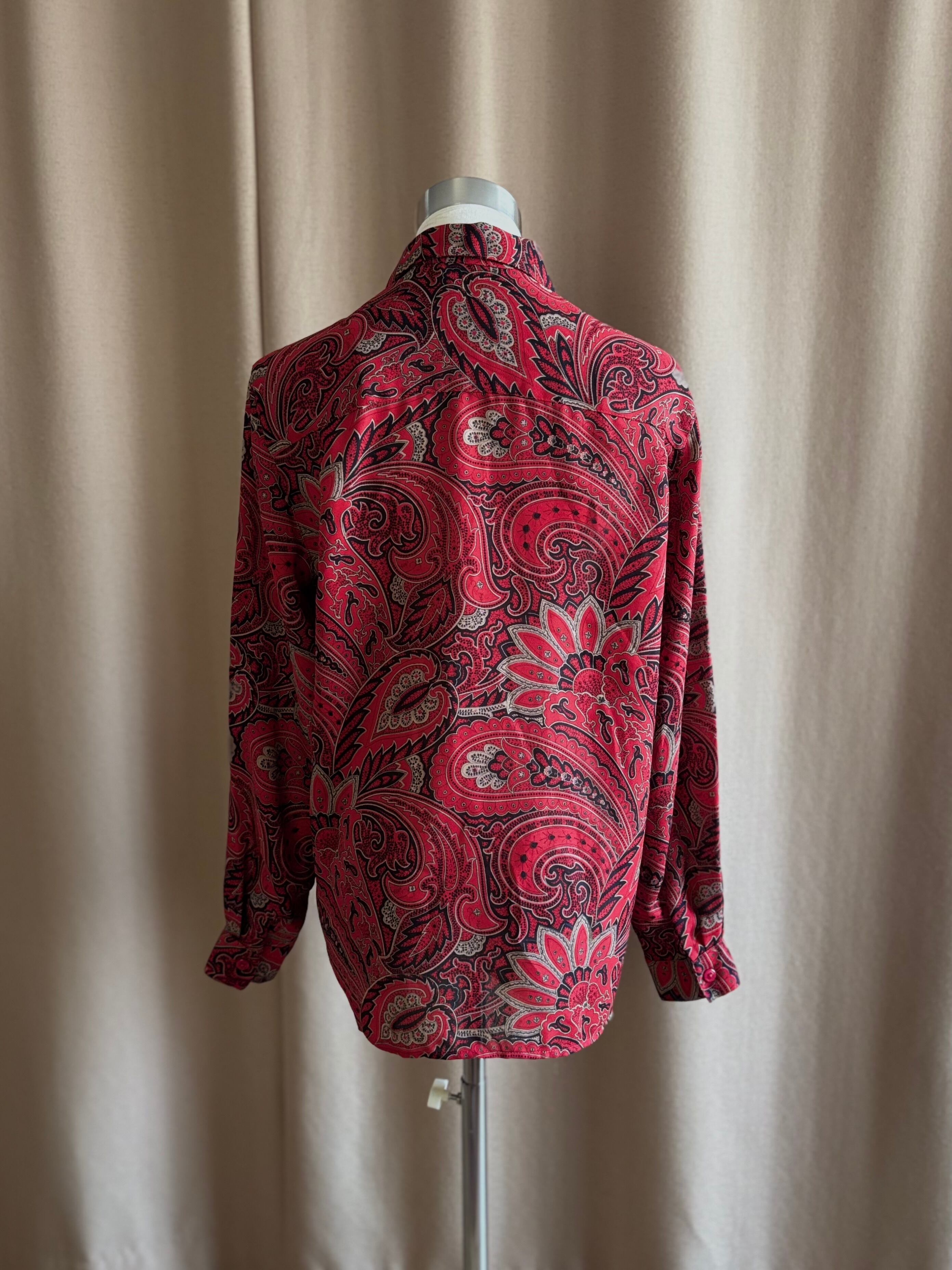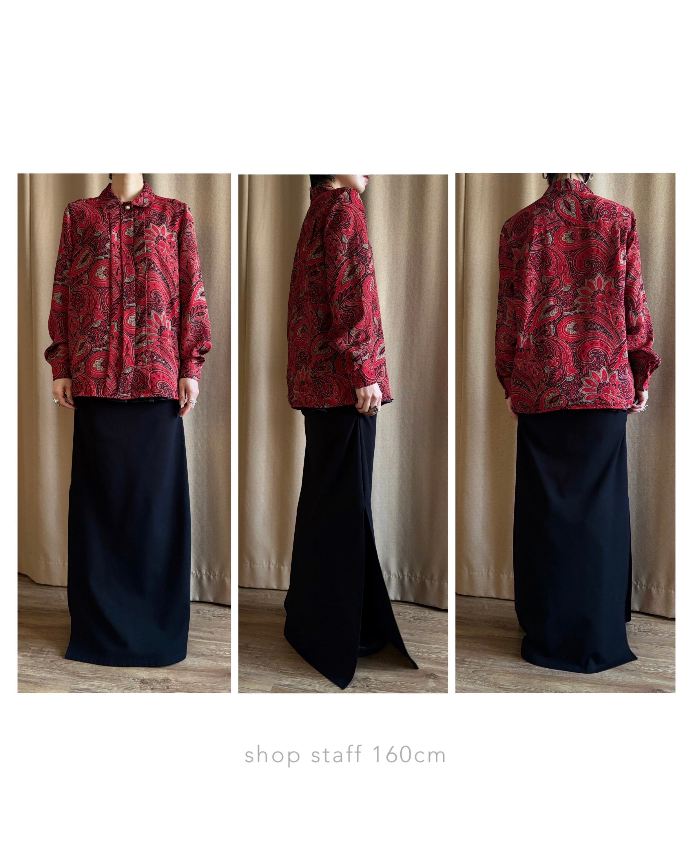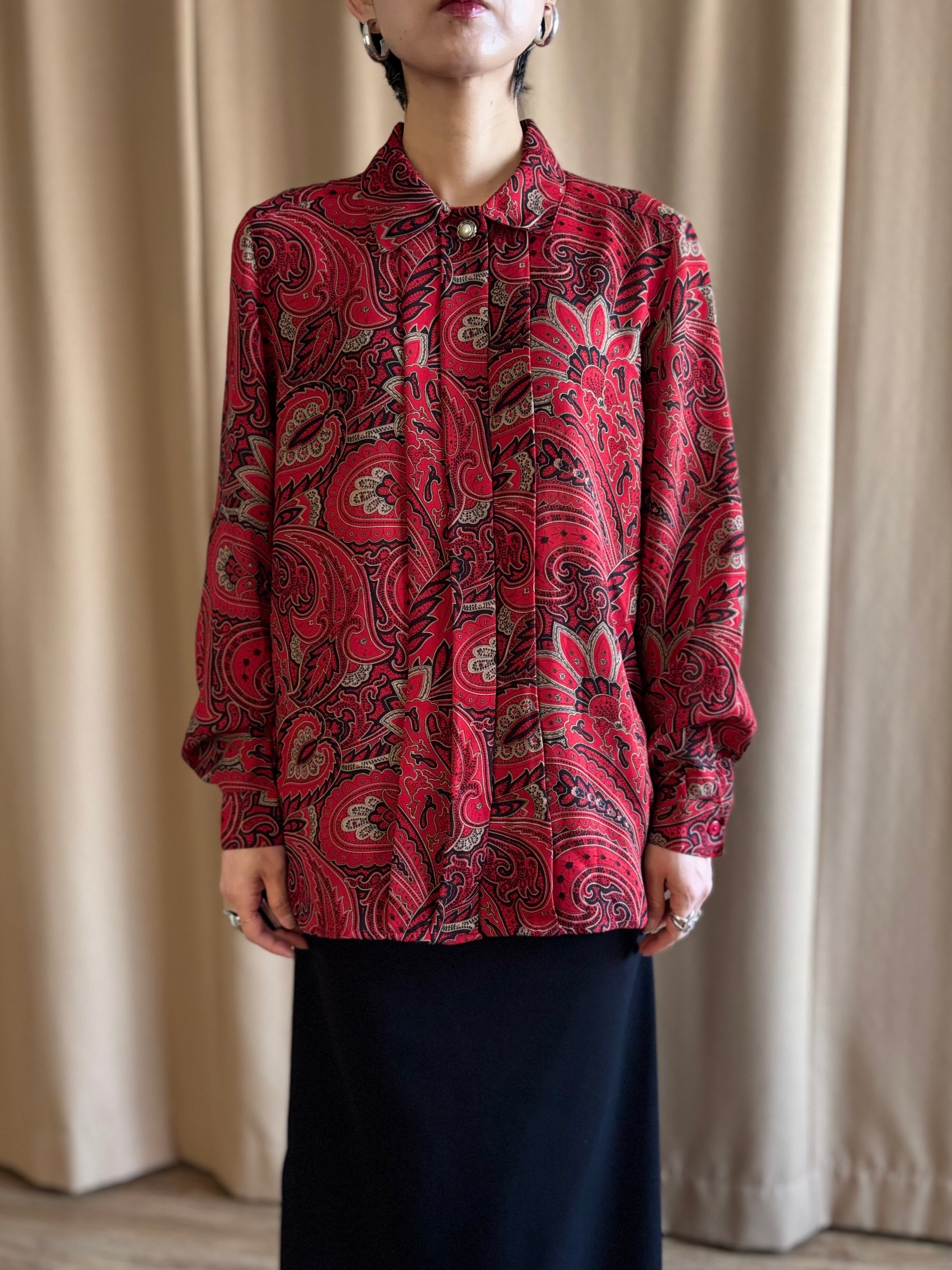 鮮やかなレッドに、レトロ柄が全面に広がる存在感抜群のインポートシャツ。
