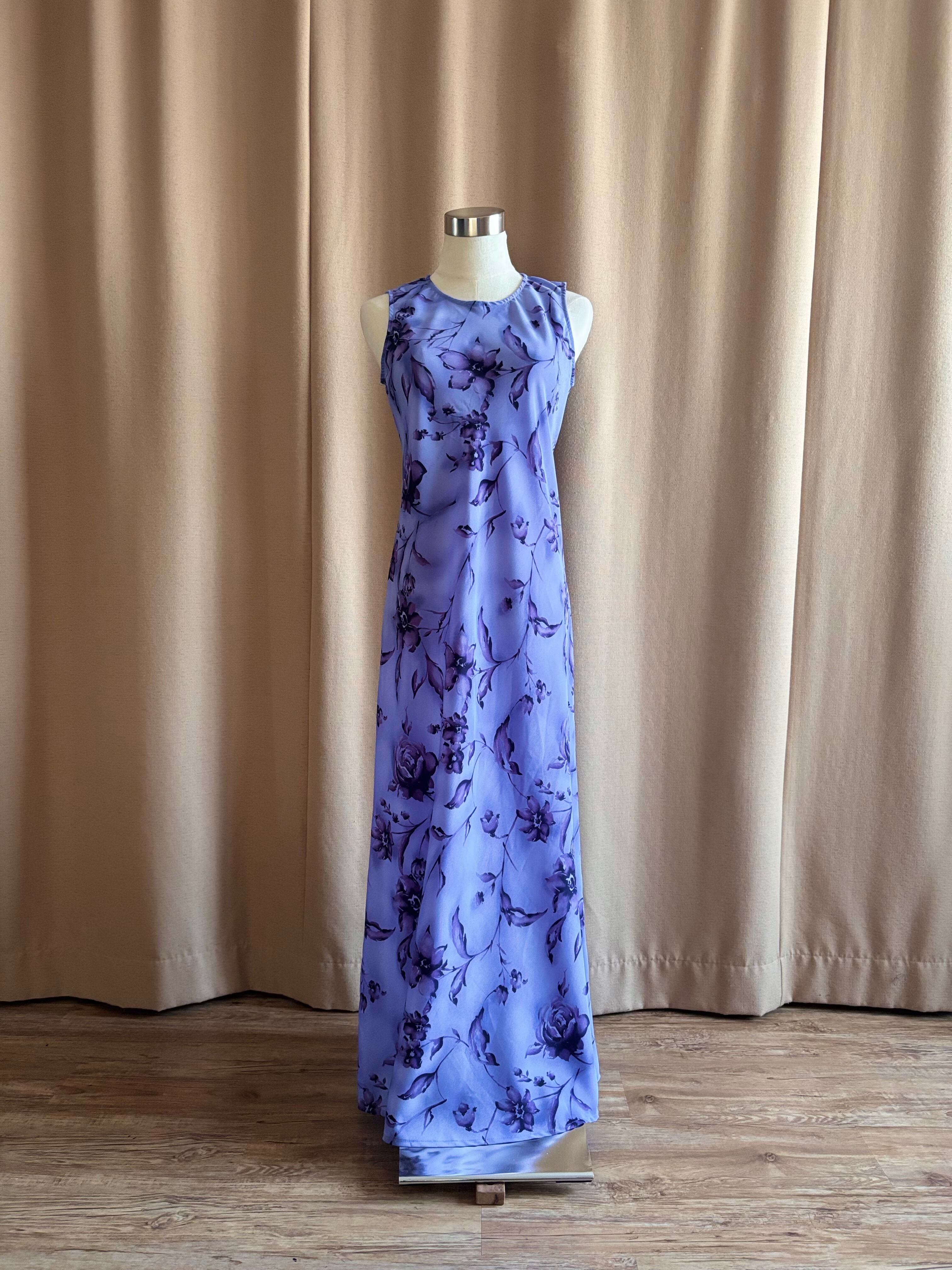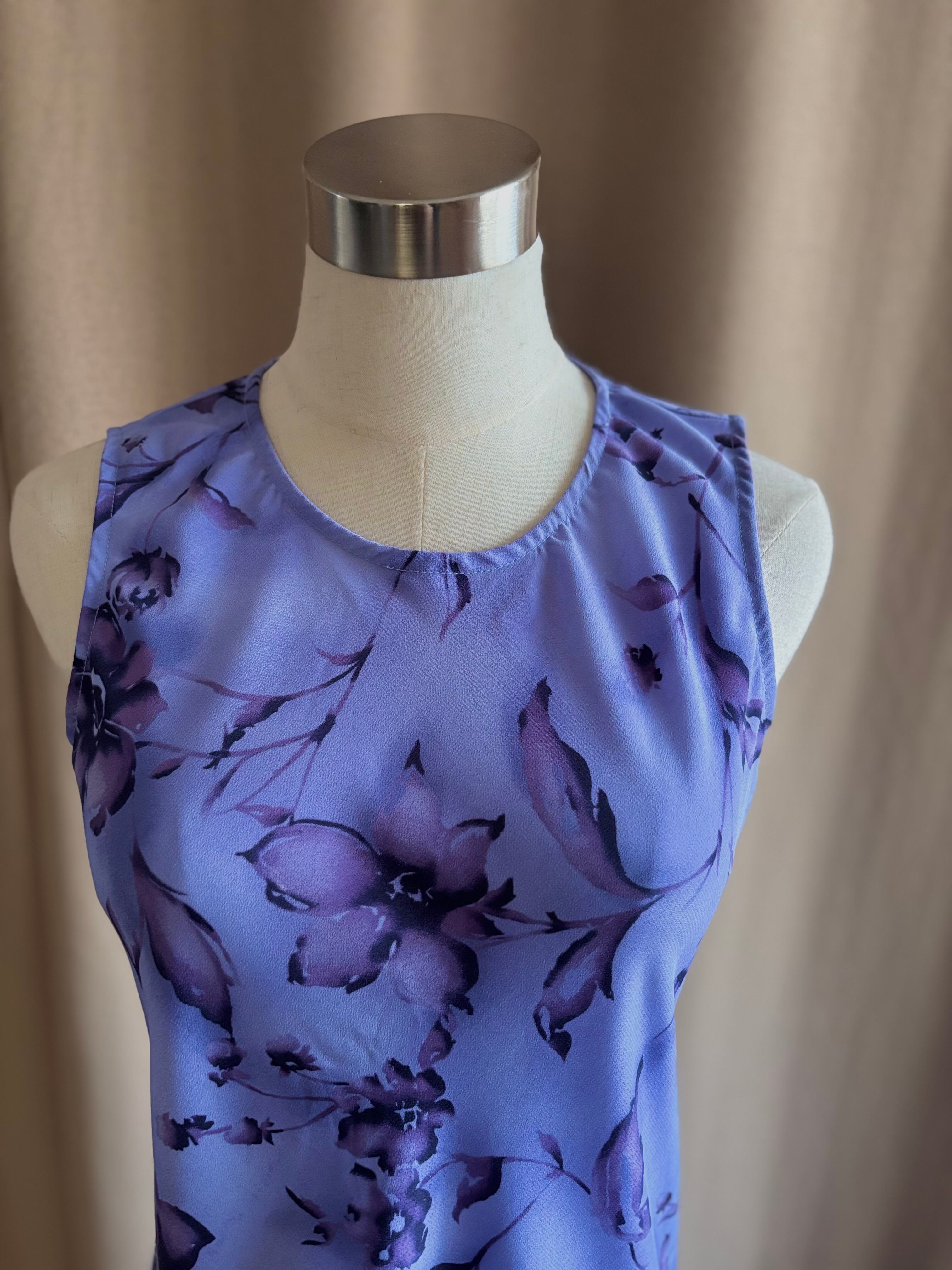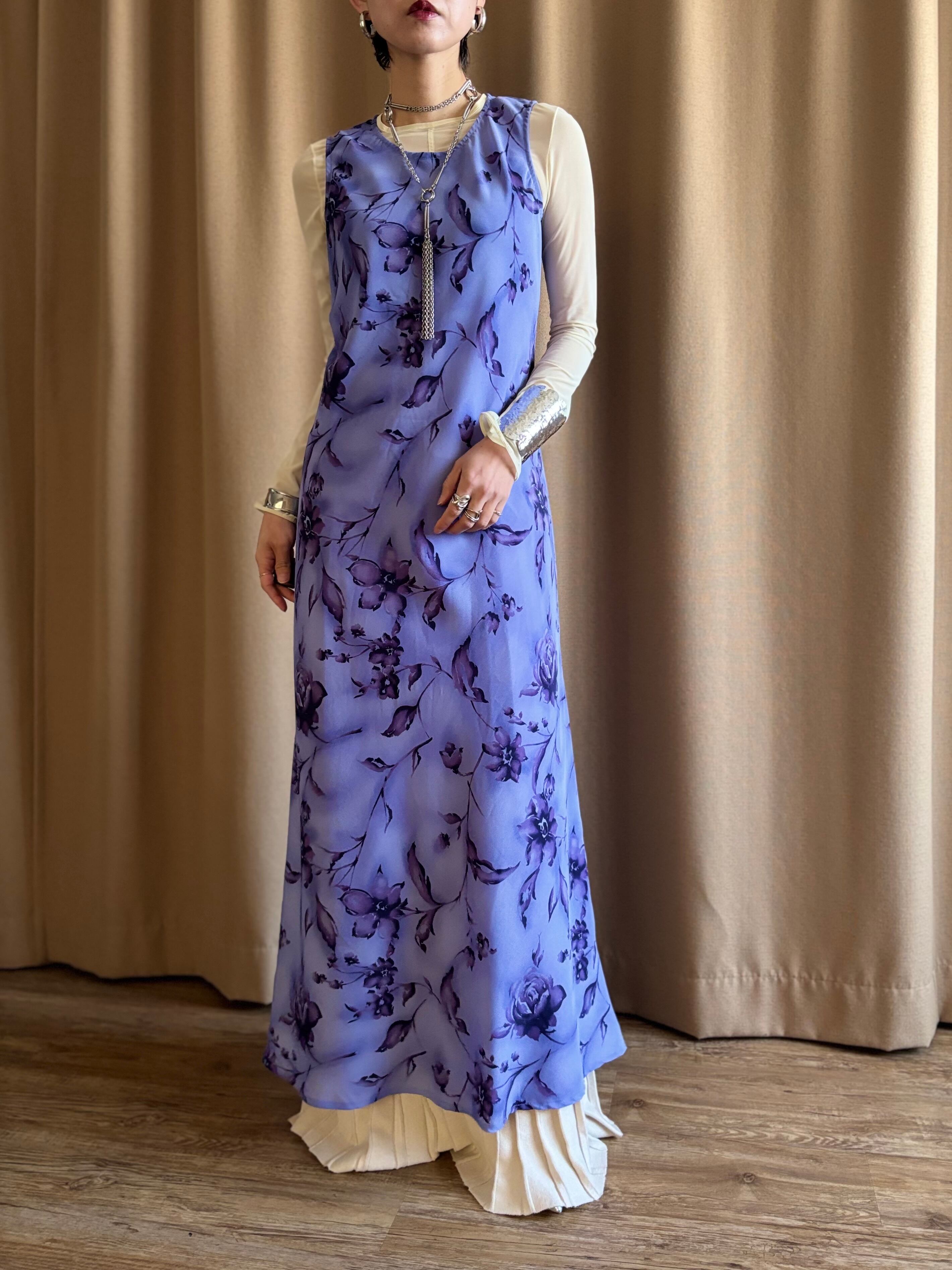 柔らかなラベンダーカラーに、繊細なフラワープリントが映えるインポートワンピース。