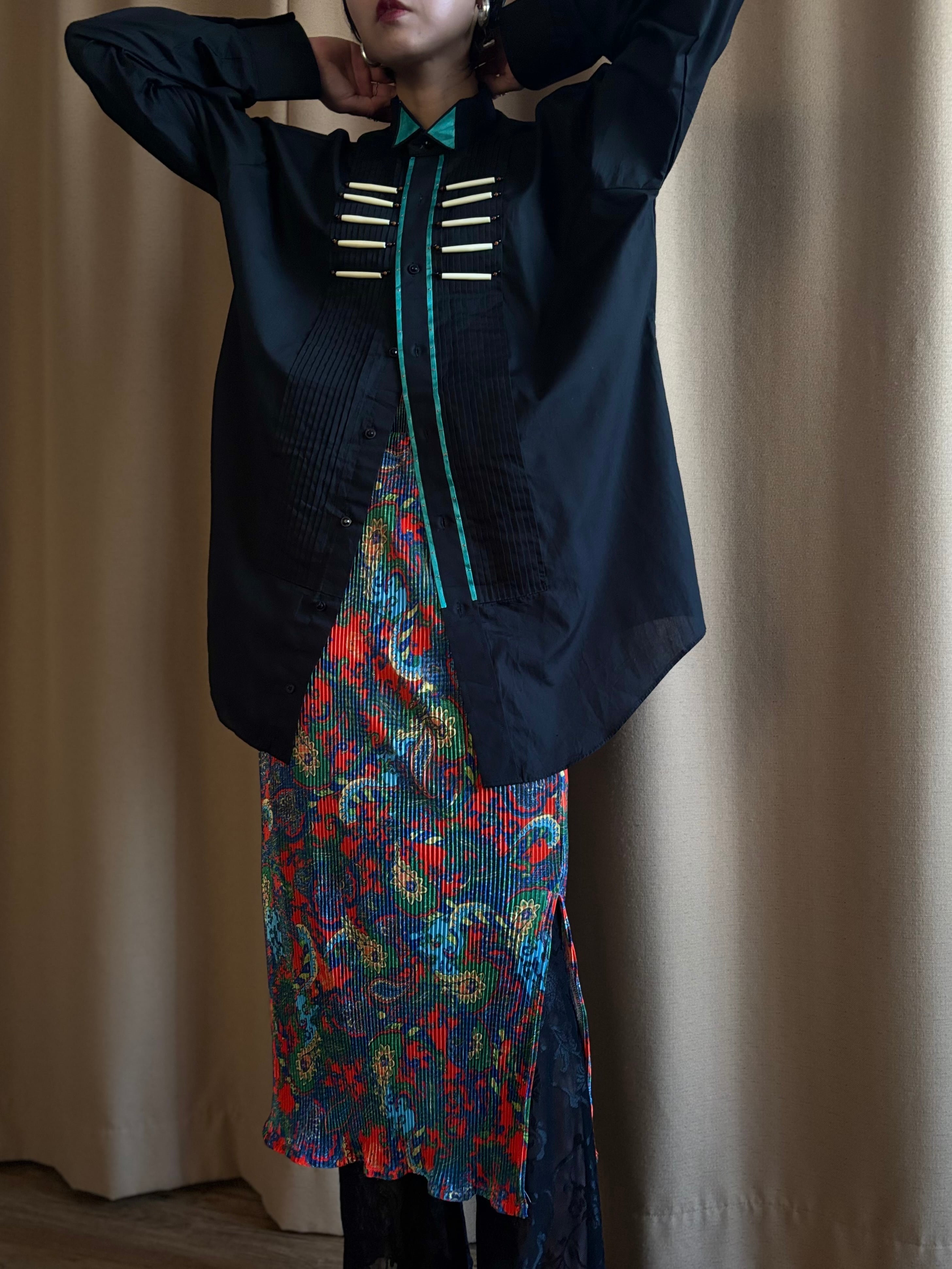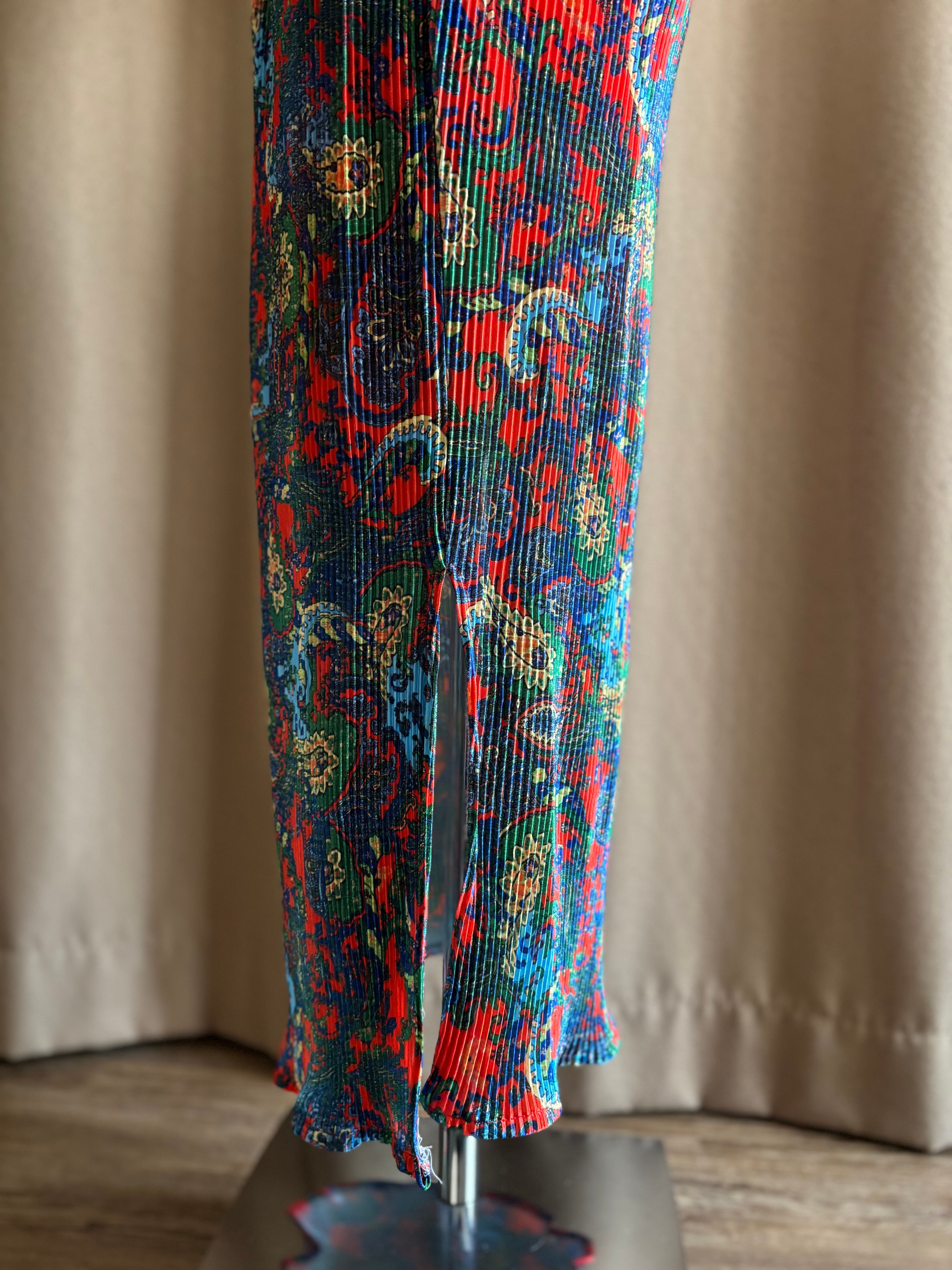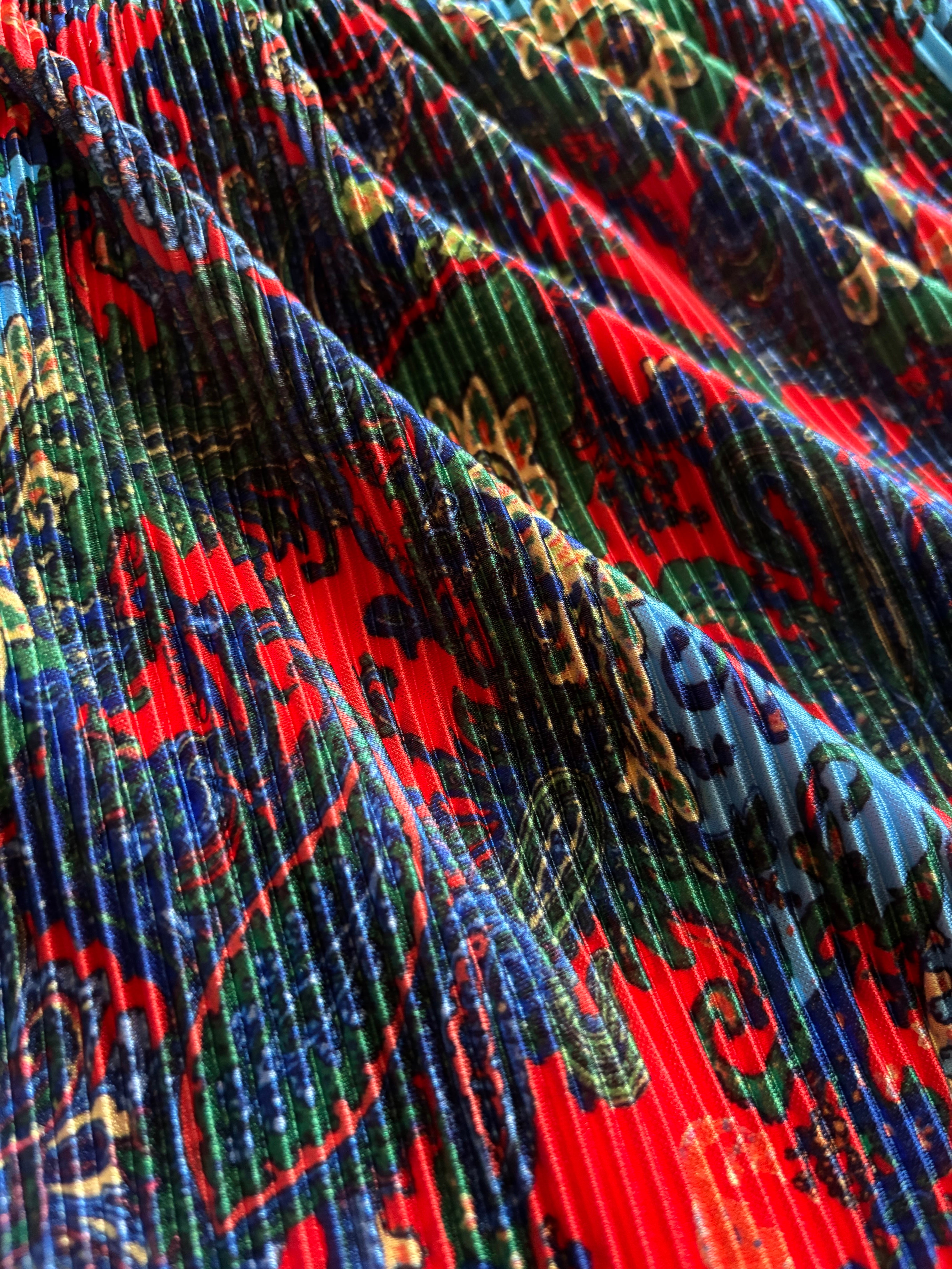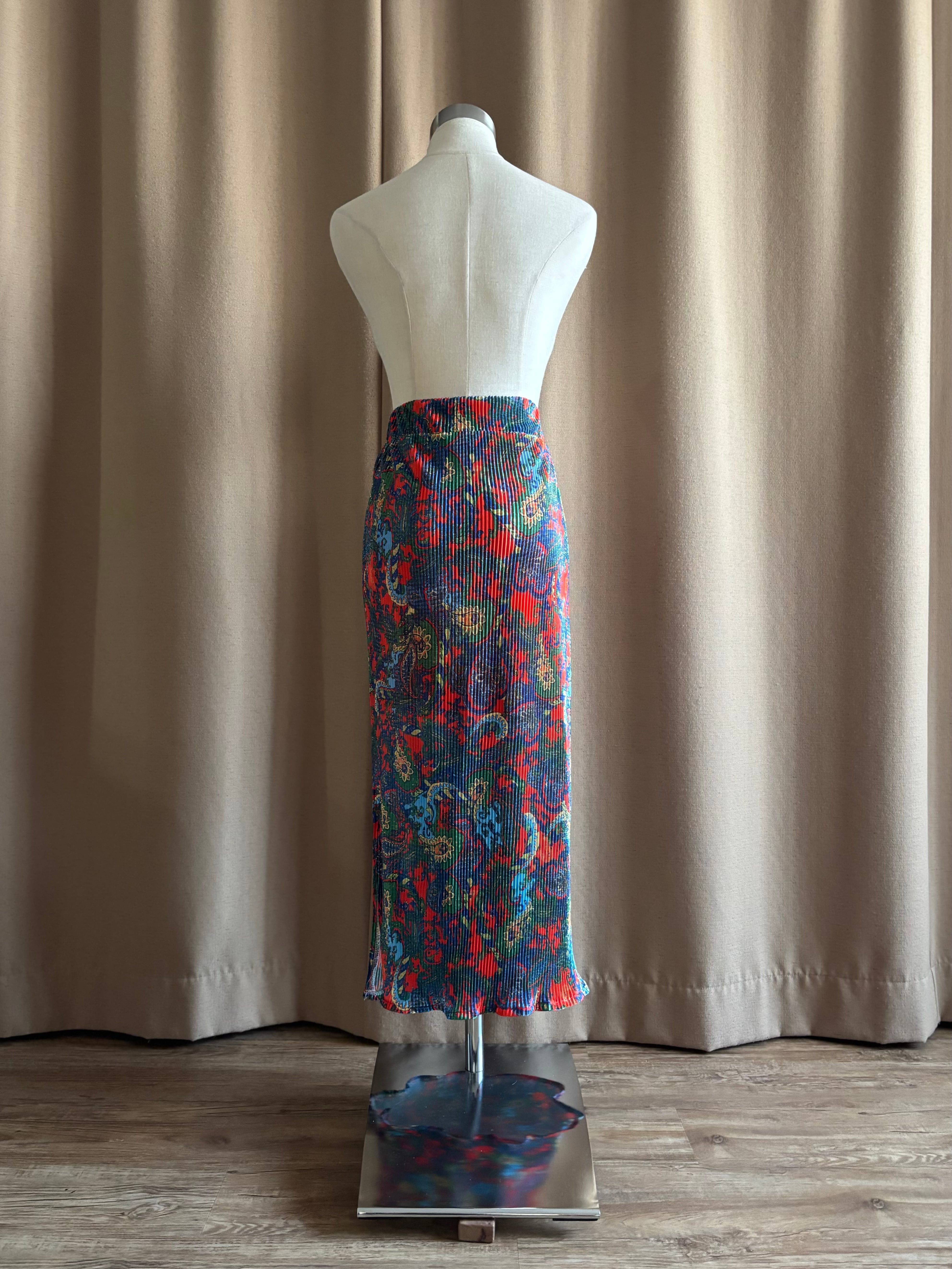 色彩豊かなパターンが印象的な、プリーツタイトスカート。