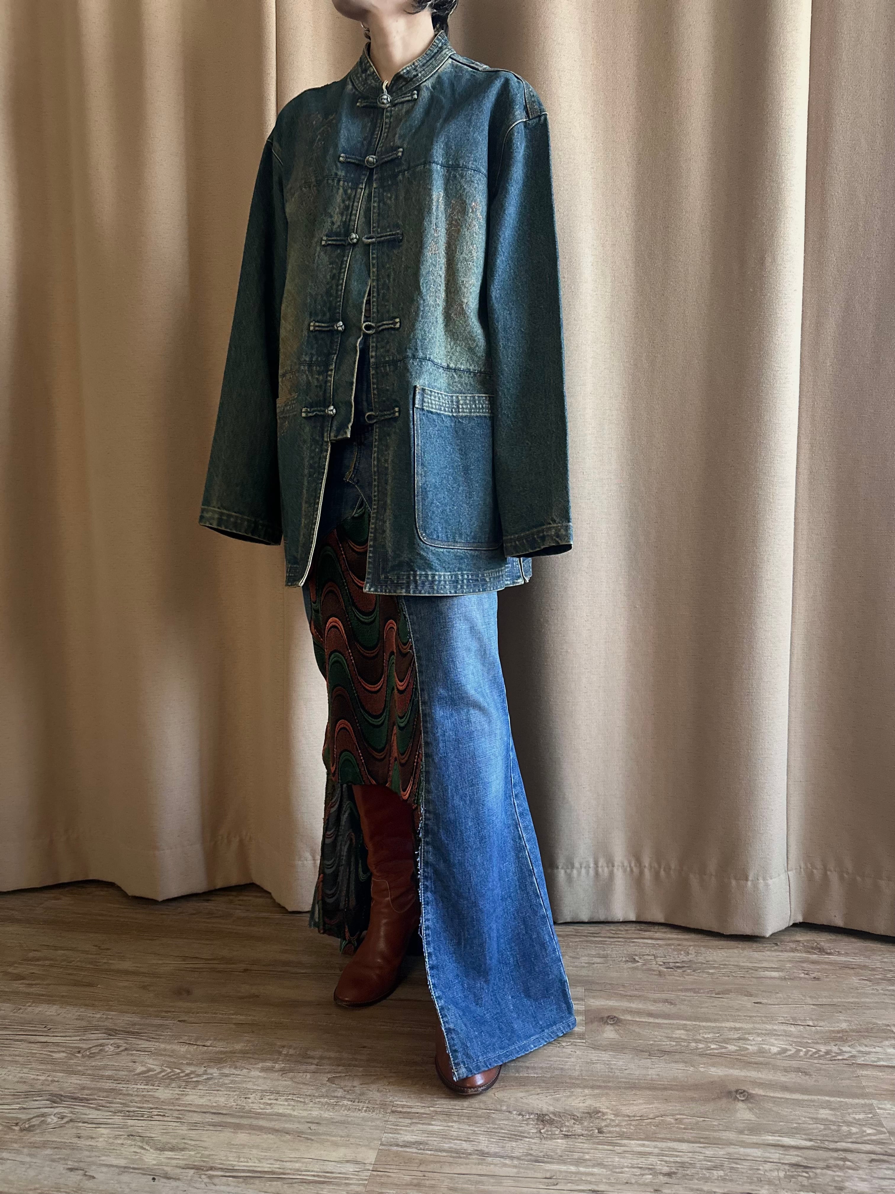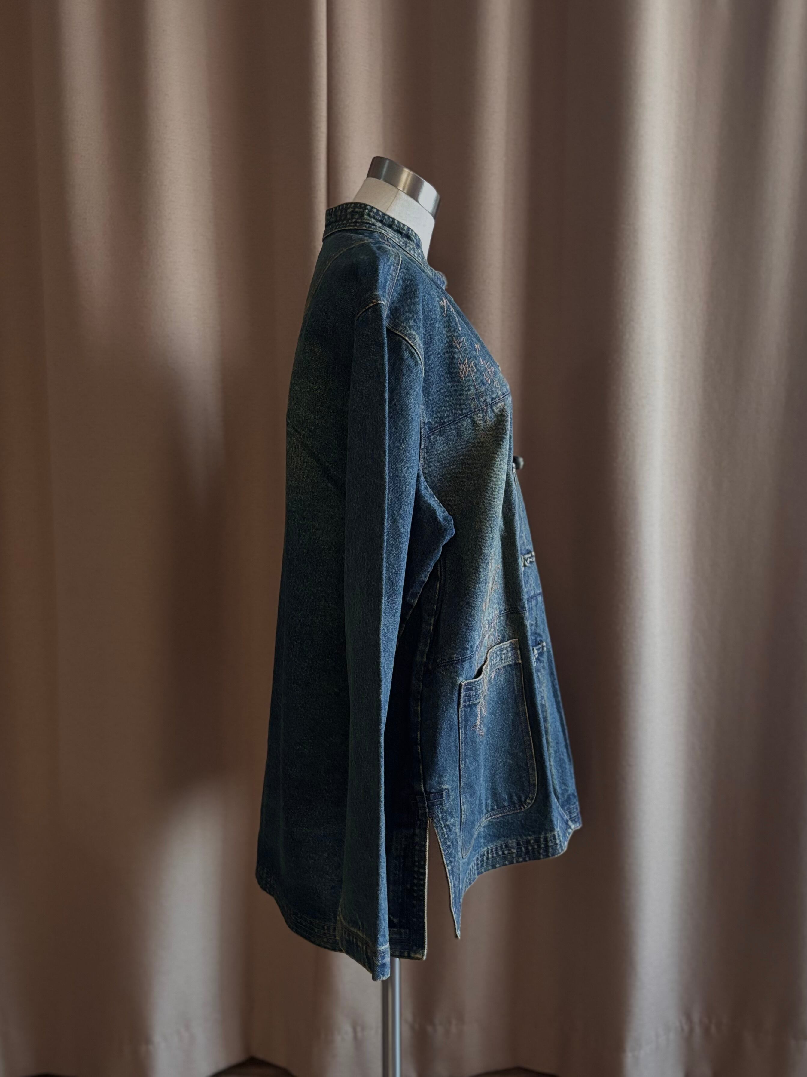 前面には筆文字と龍の刺繍を施し、ヴィンテージ感漂うウォッシュ加工で表情豊かな逸品に。