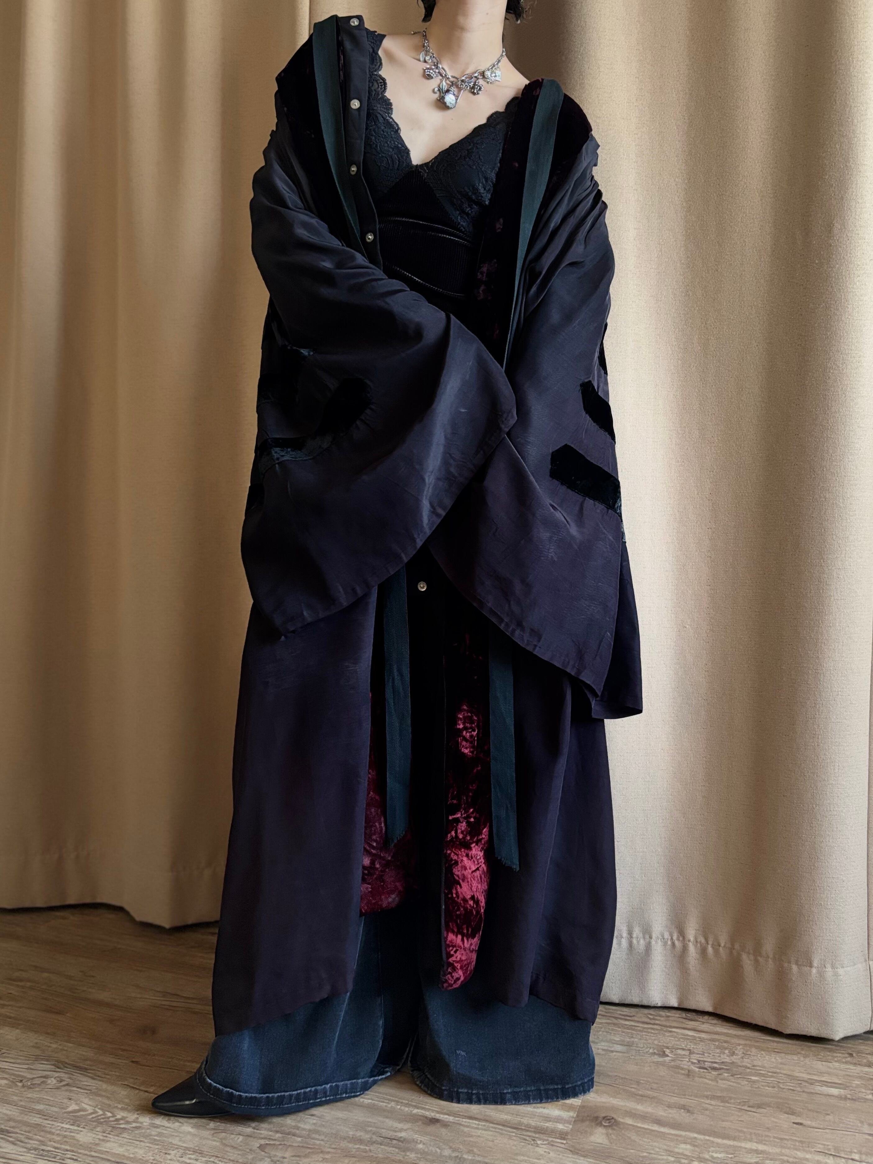 深みのあるベロアをドッキングした、存在感際立つヴィンテージガウン。