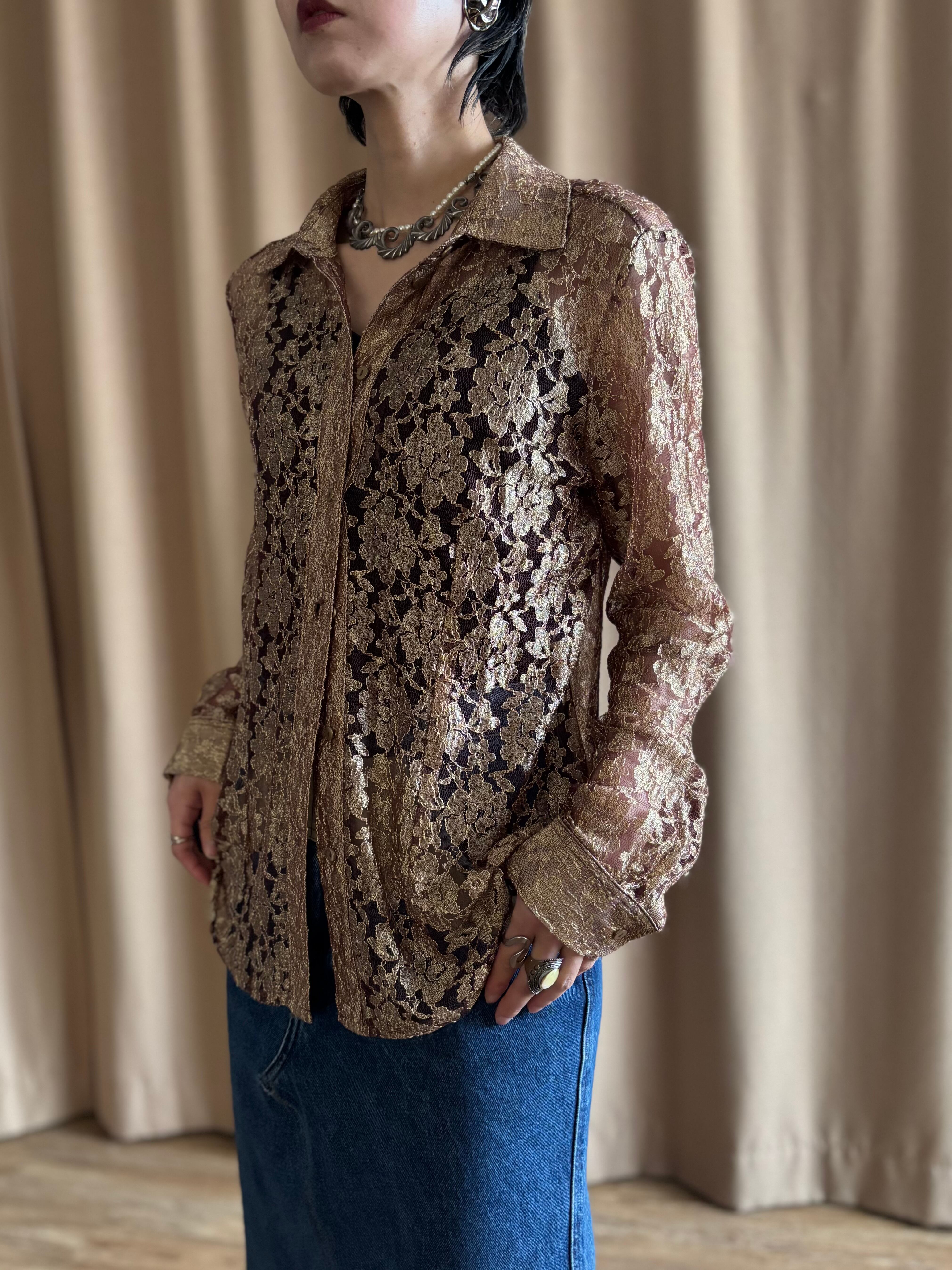 CHICOS gold lace shirt-5192-3