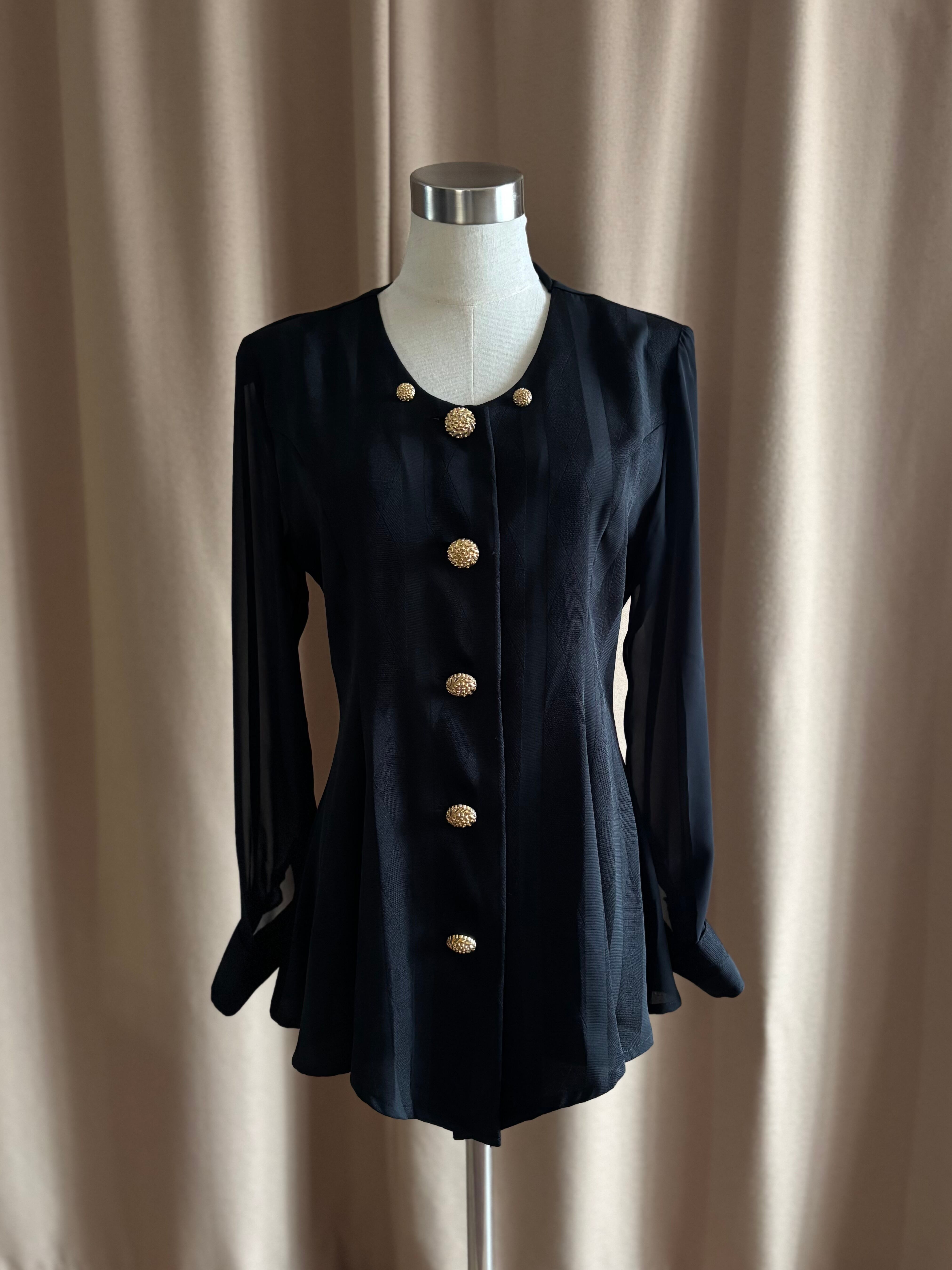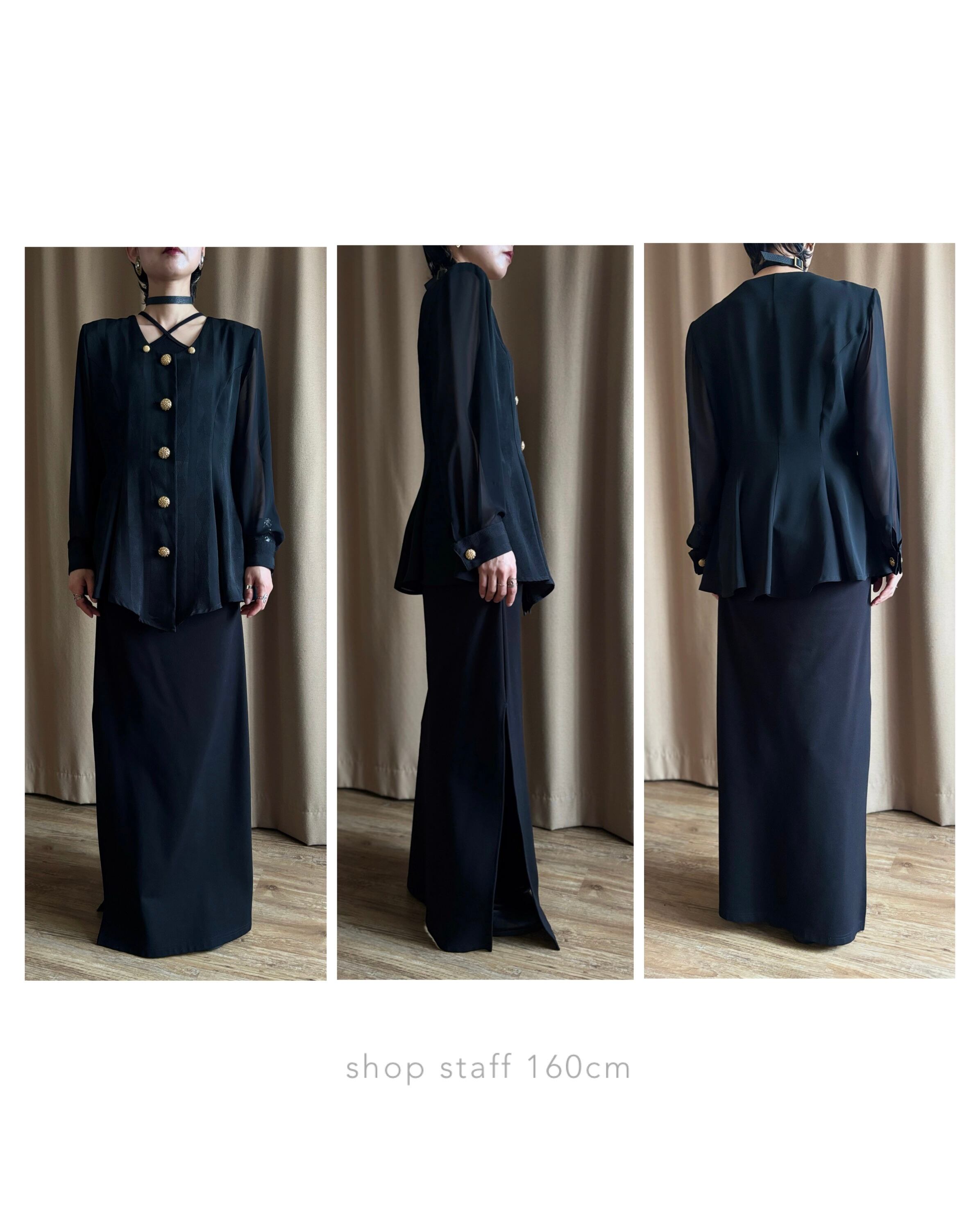 ■その他 前ボタン5+飾りボタン2、袖口ボタン1(カフス調、取り外し可能)、肩パッド入り(簡易的に縫われているため、ご自身で取り外し可能です)