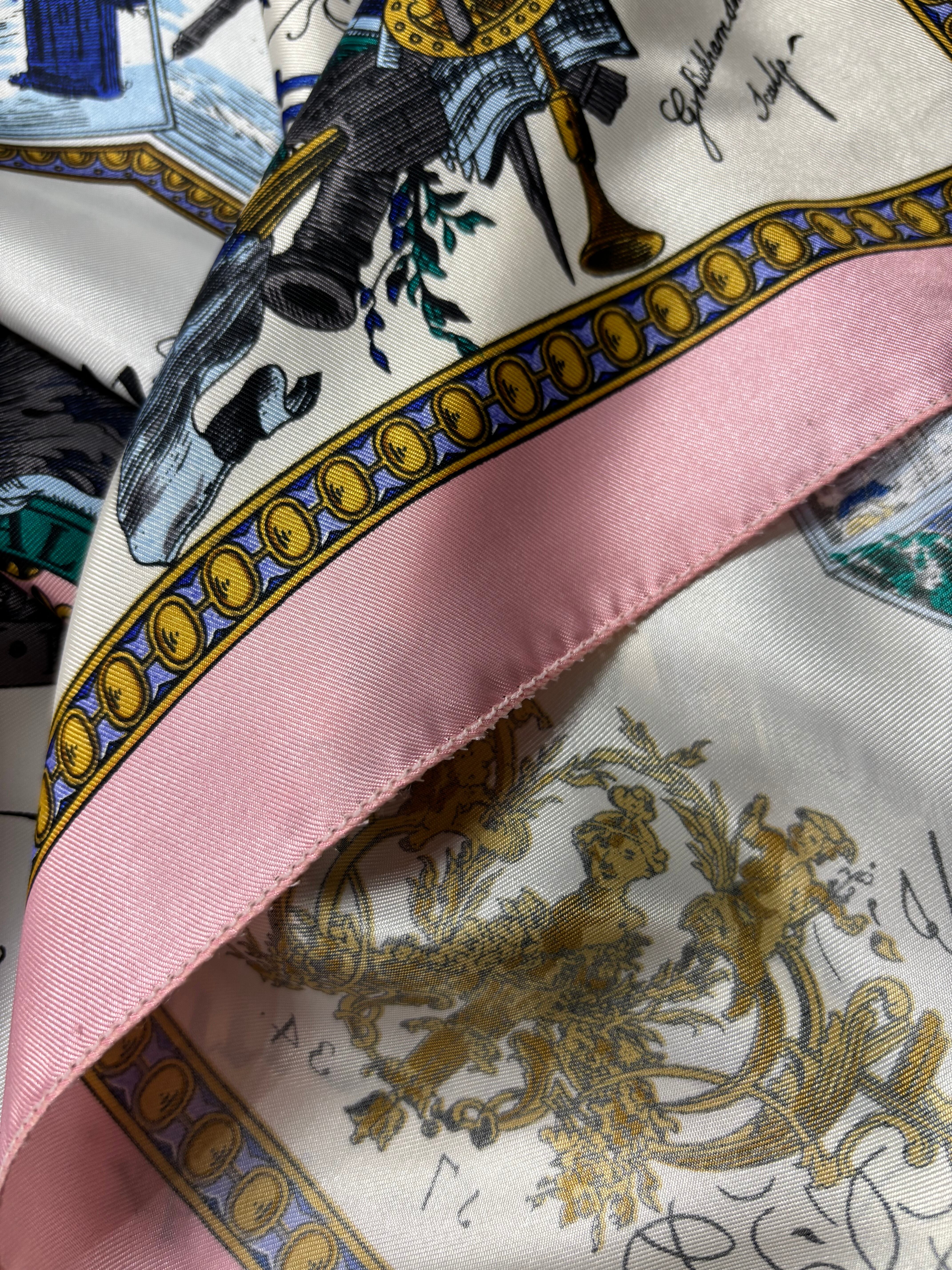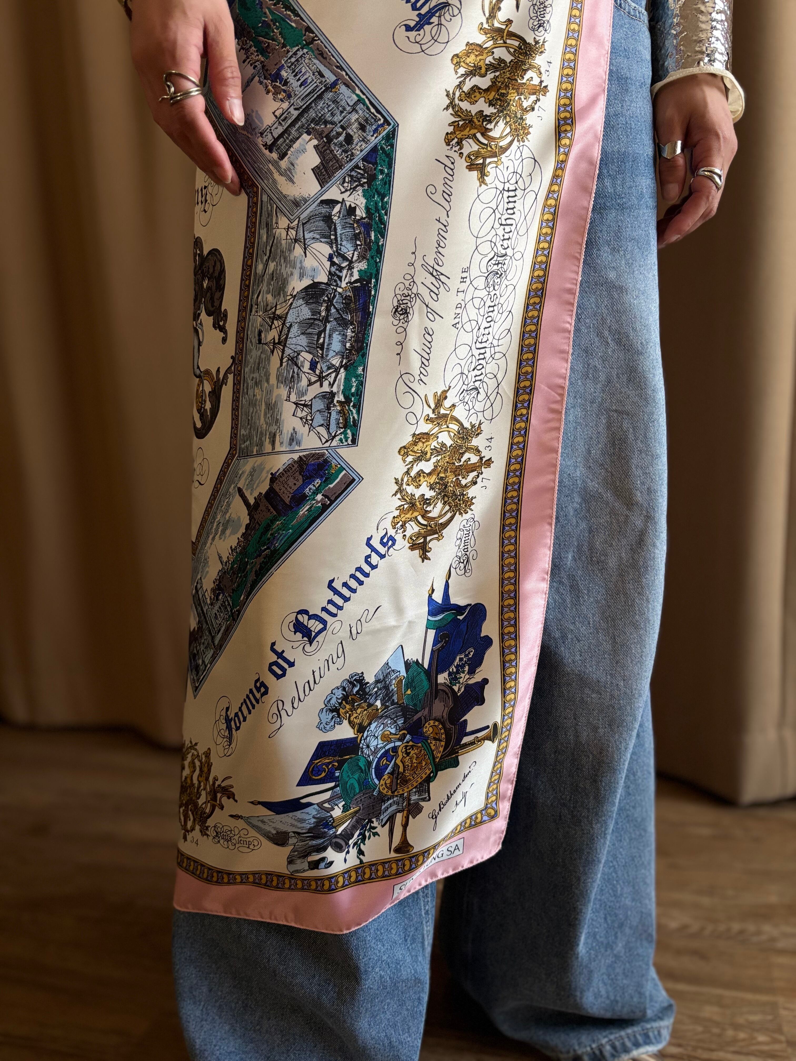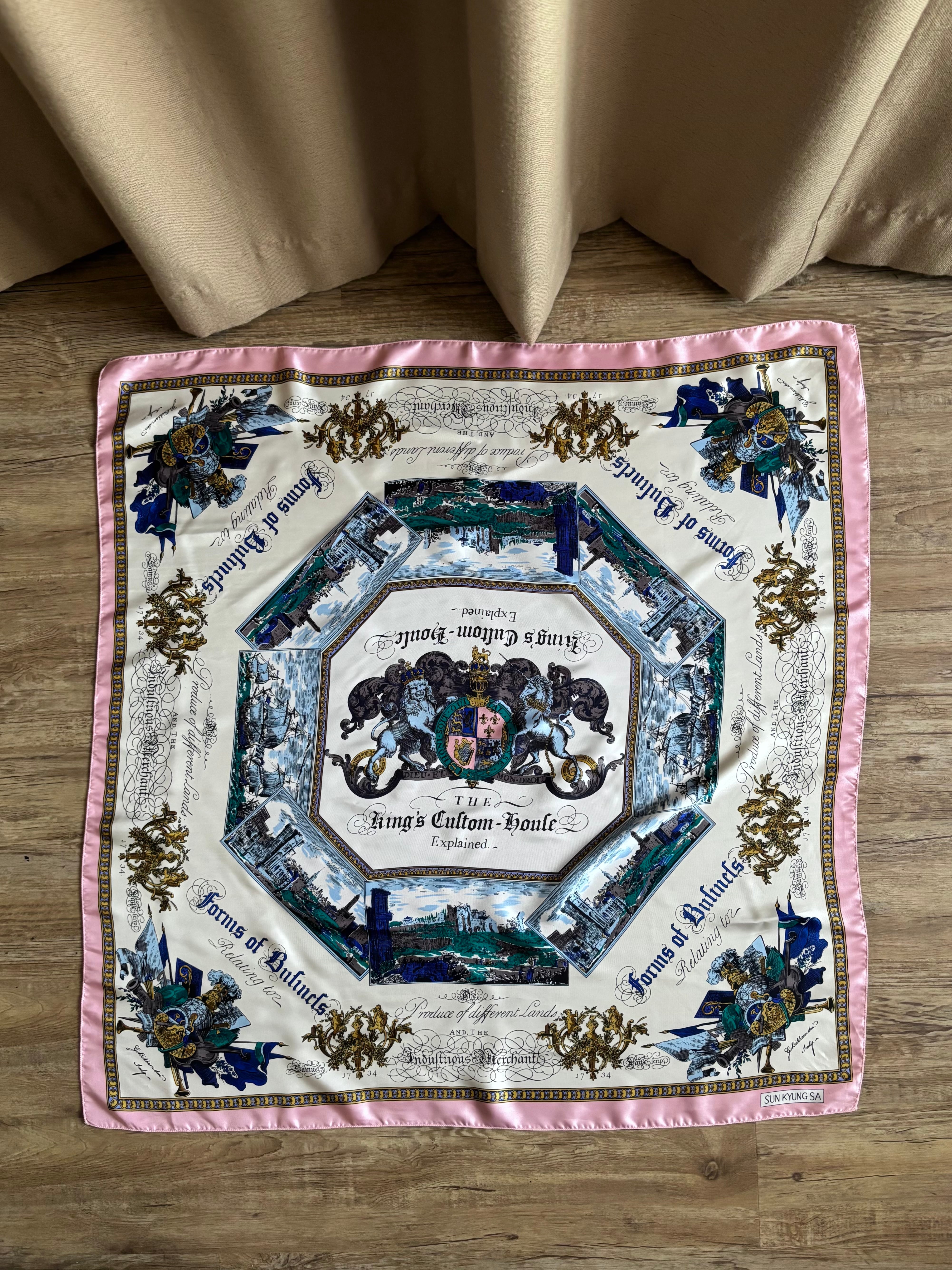 イギリスの国章(コート・オブ・アームズ)が大胆にデザインされたヴィンテージスカーフ。