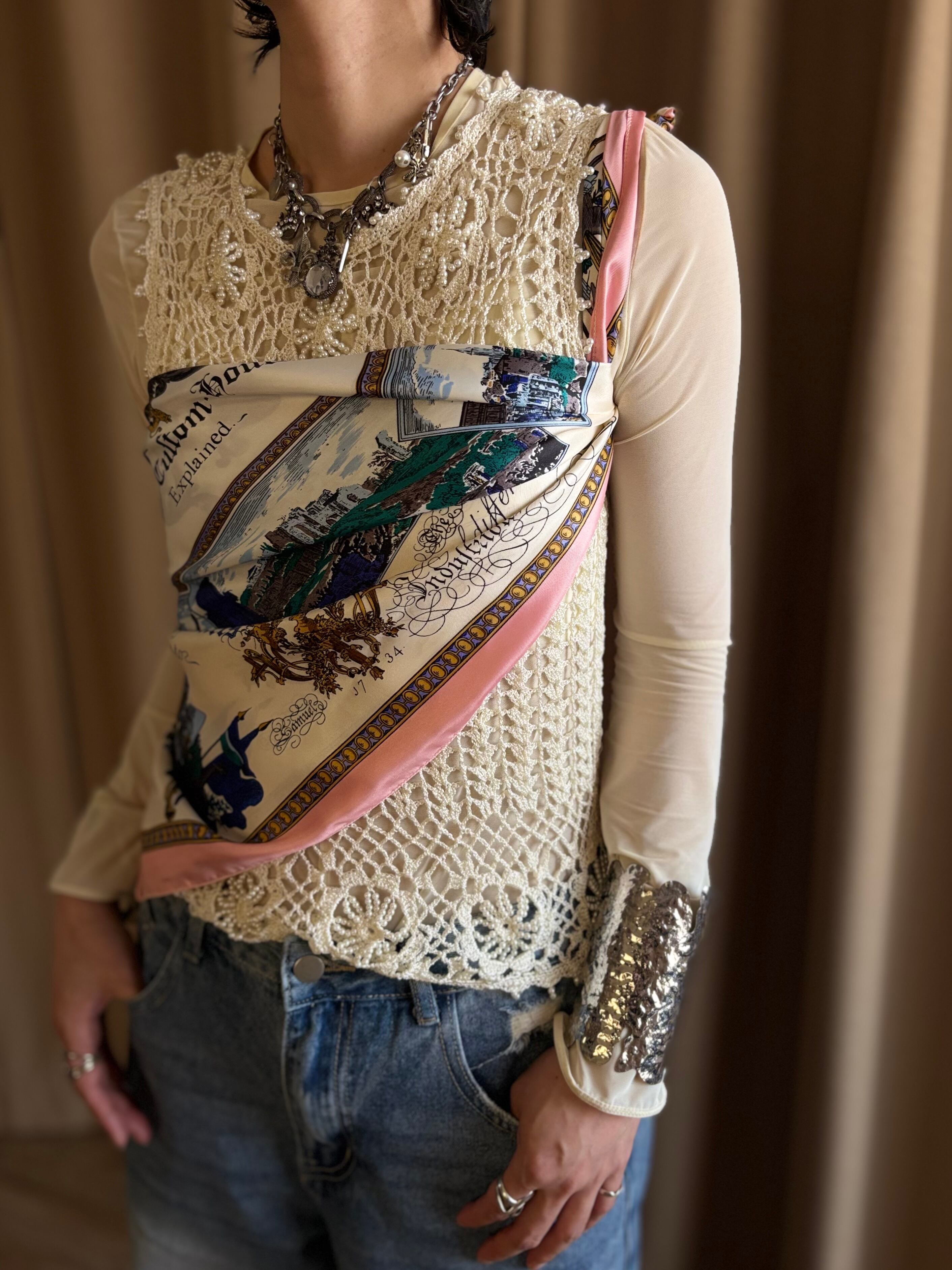 首元には勿論、腰に巻いたりビスチェのように纏ったりと、自由なアレンジでスタイリングを格上げ。