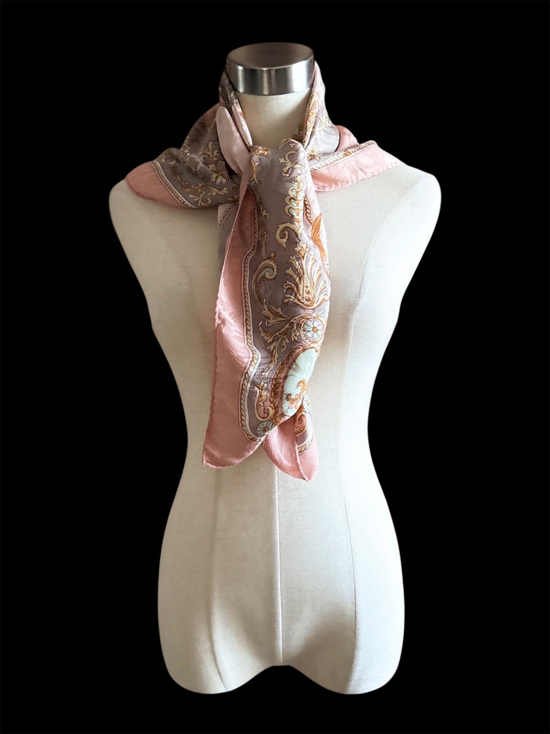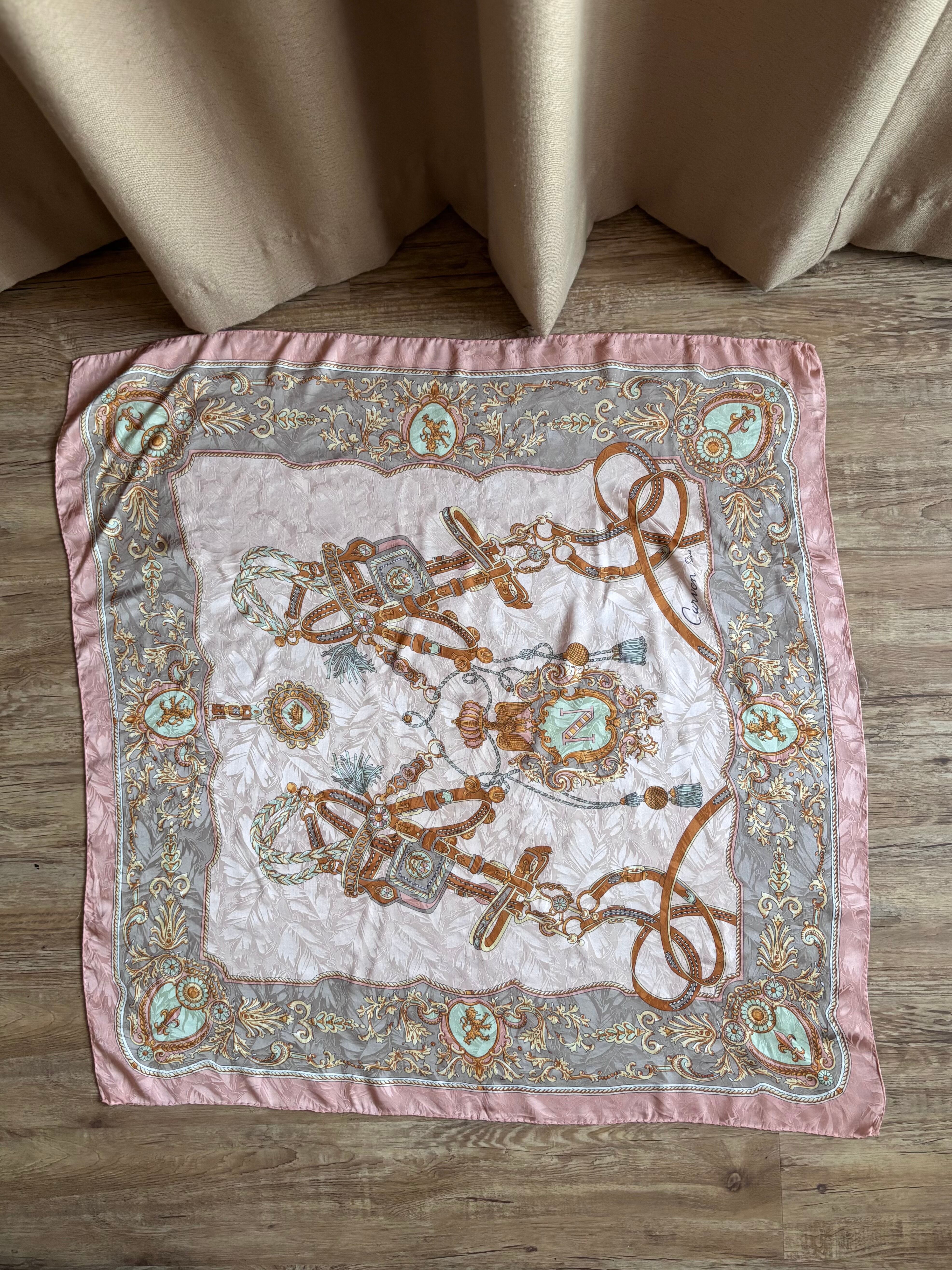 淡いピンクが静かな存在感を纏う、イタリア製ヴィンテージスカーフ。