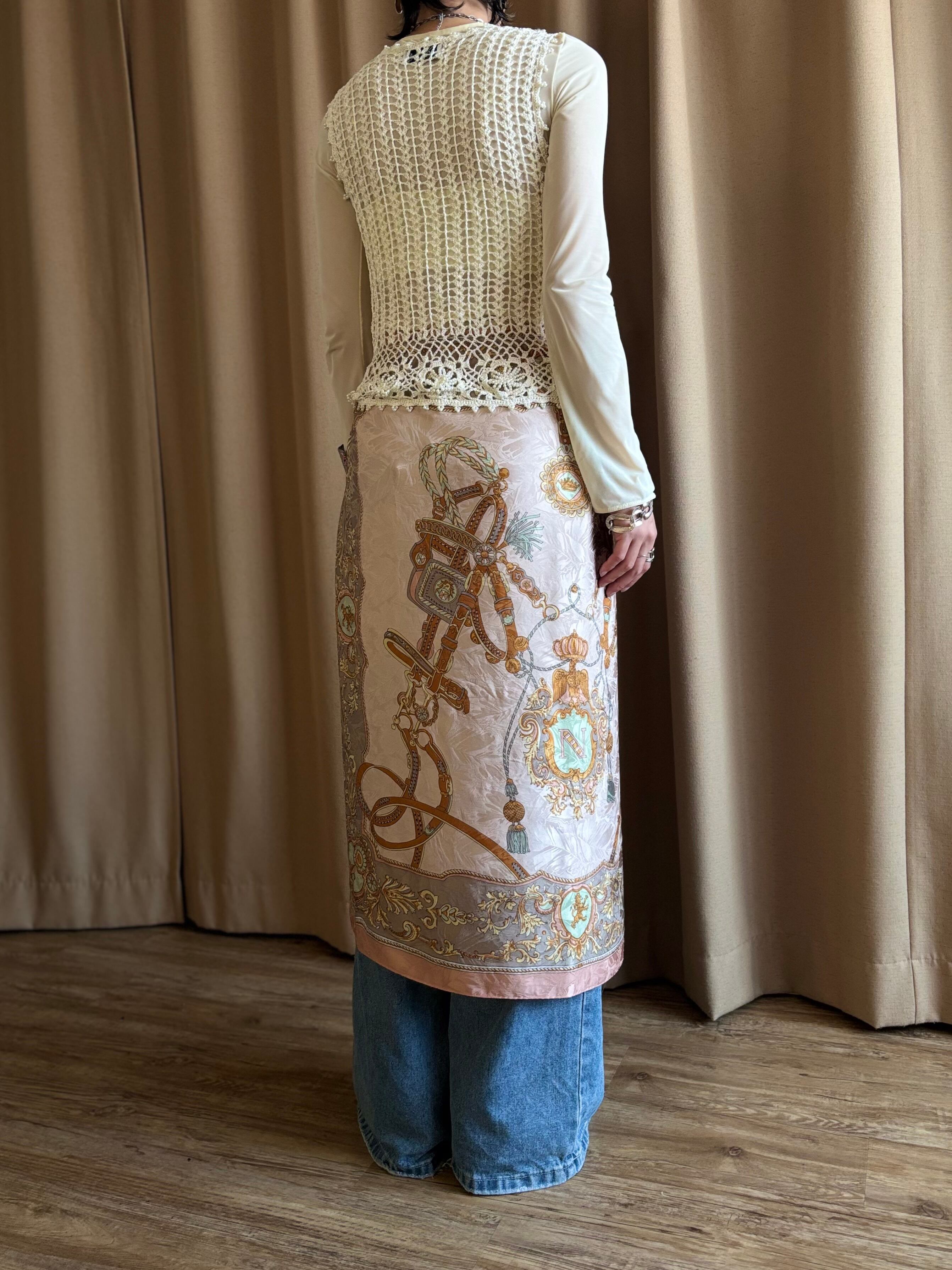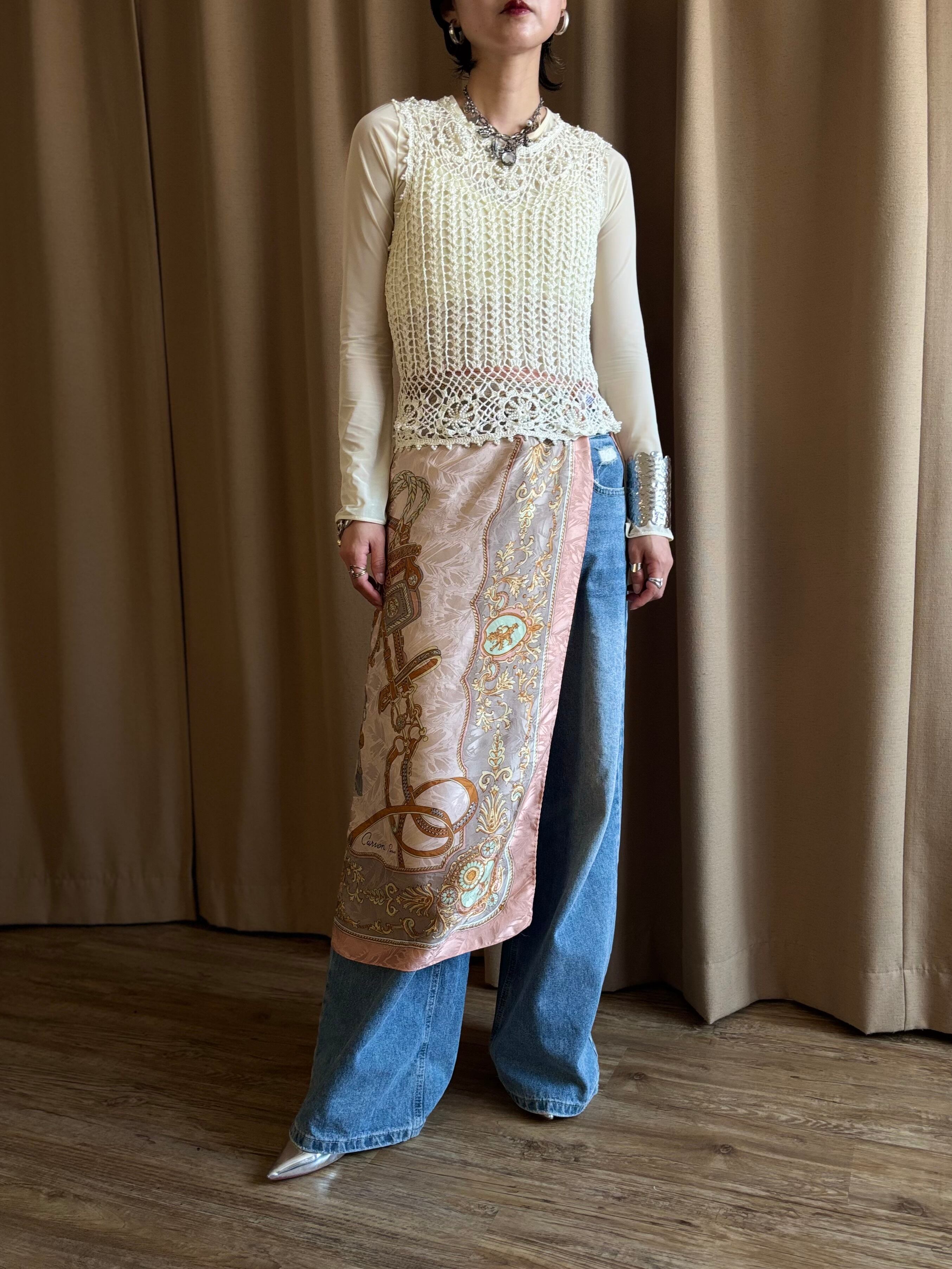 首元には勿論、腰に巻いたりビスチェのように纏ったりと、自由なアレンジでスタイリングを格上げ。