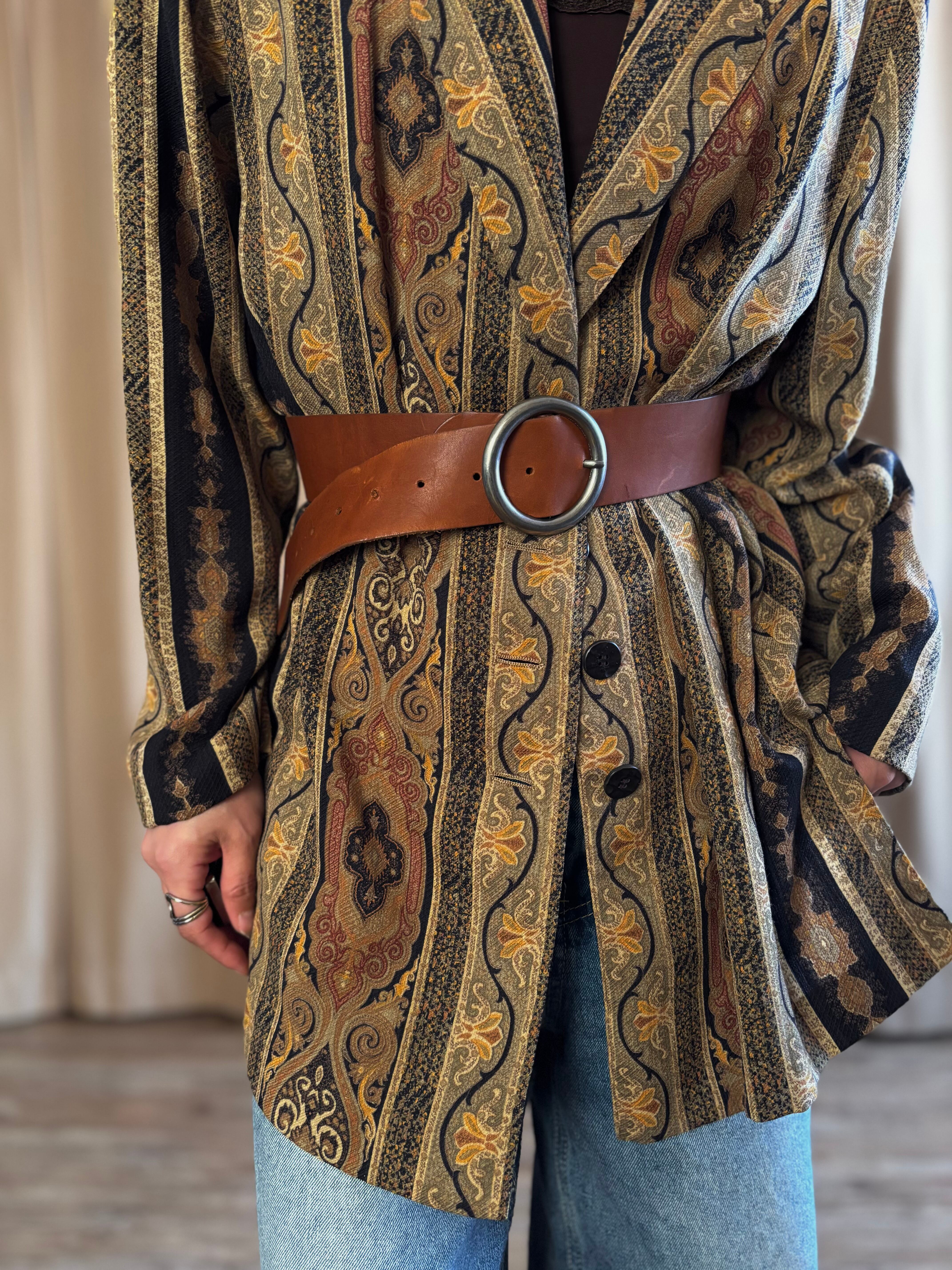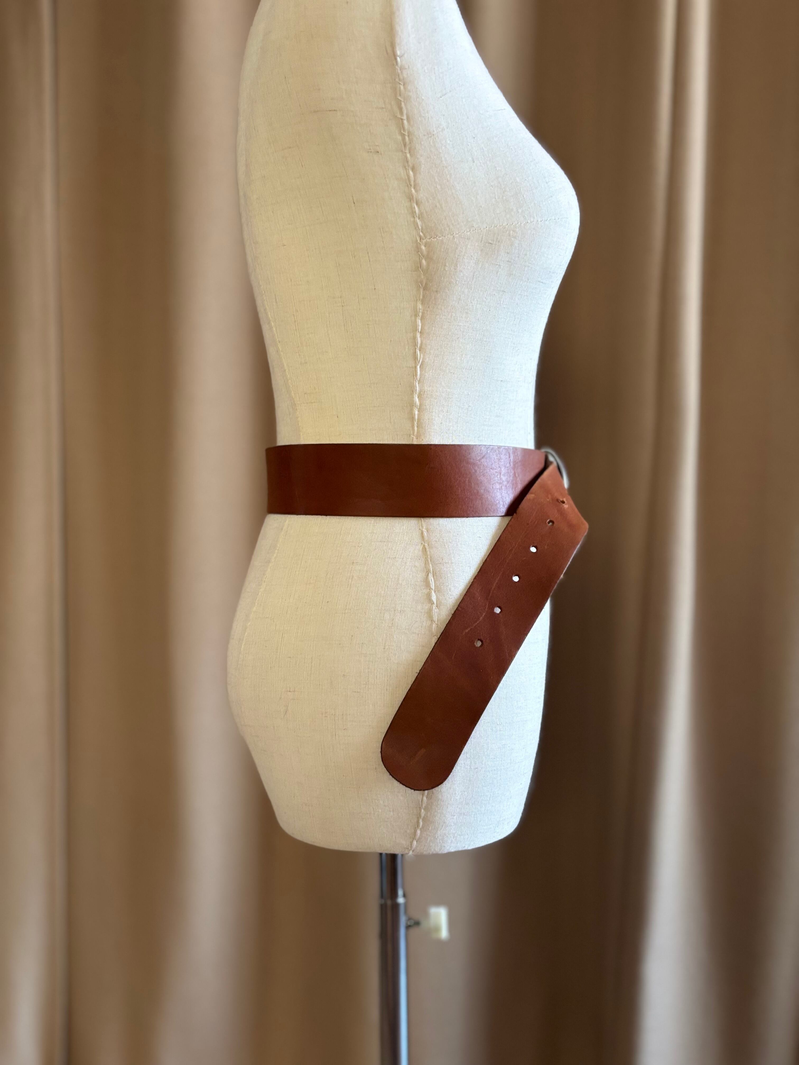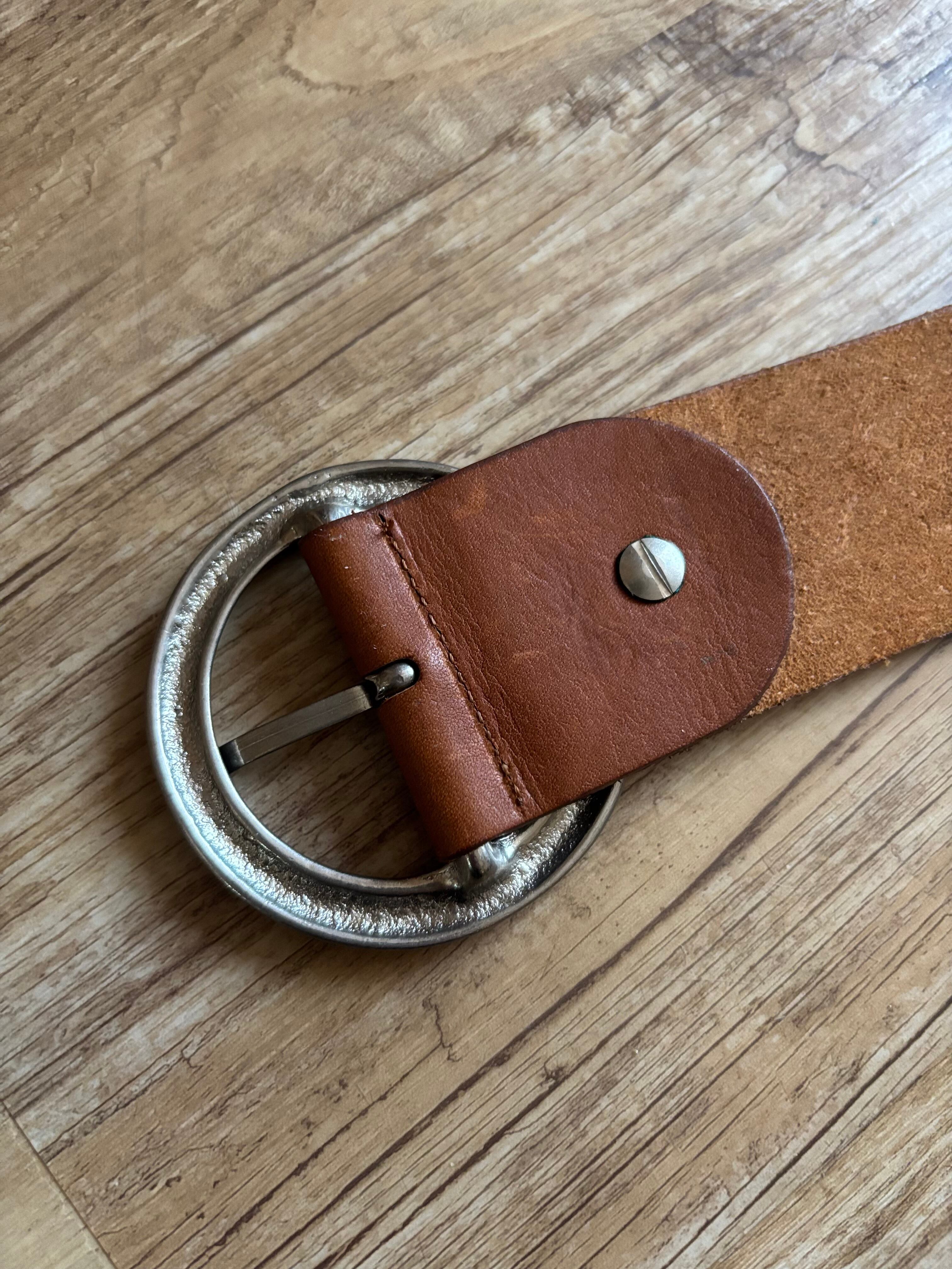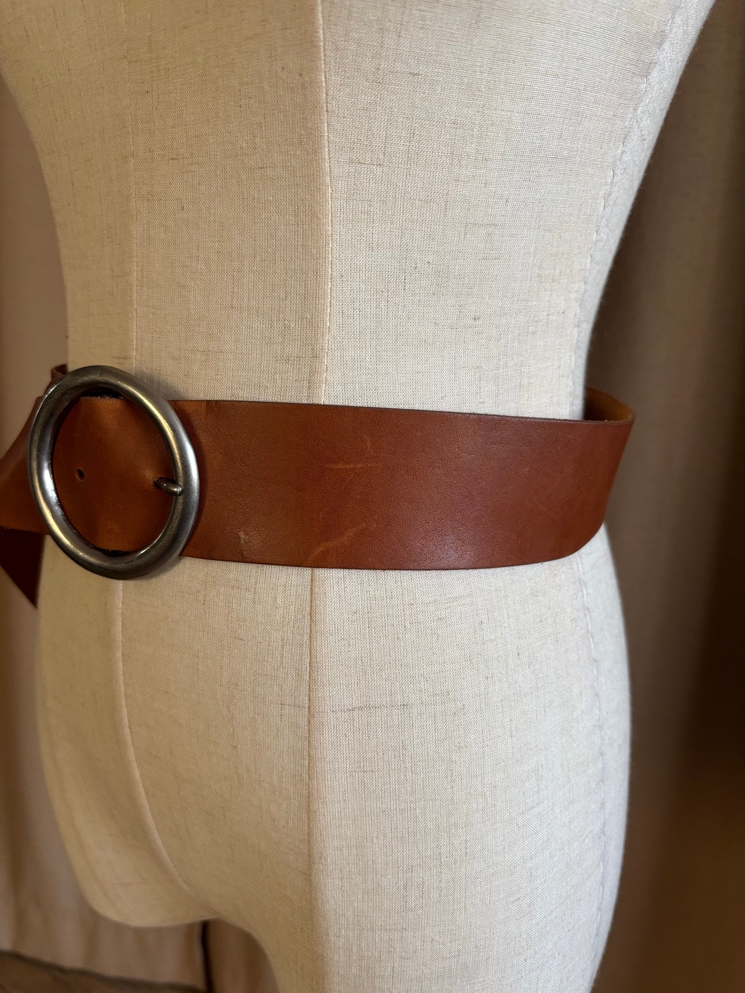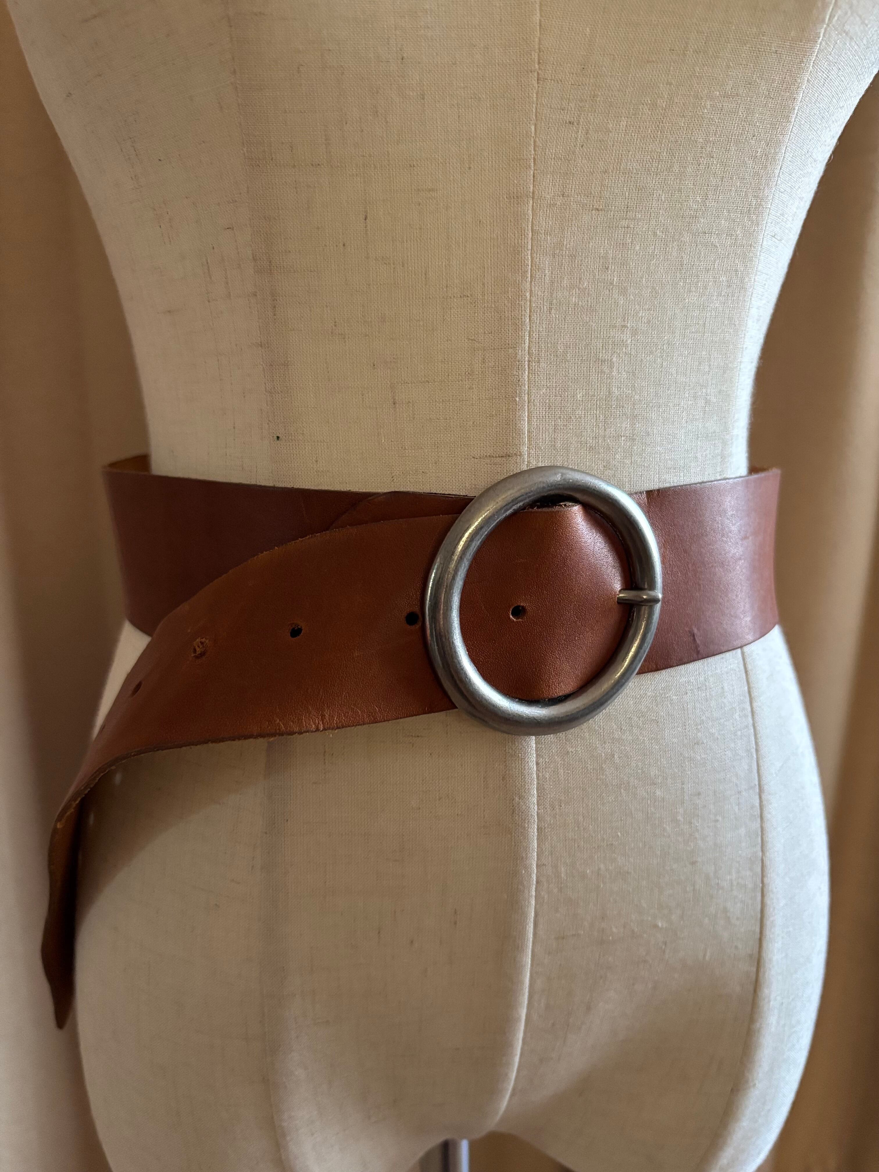 しなやかなレザーに、存在感のあるシルバーのラウンドバックルが映える一本。