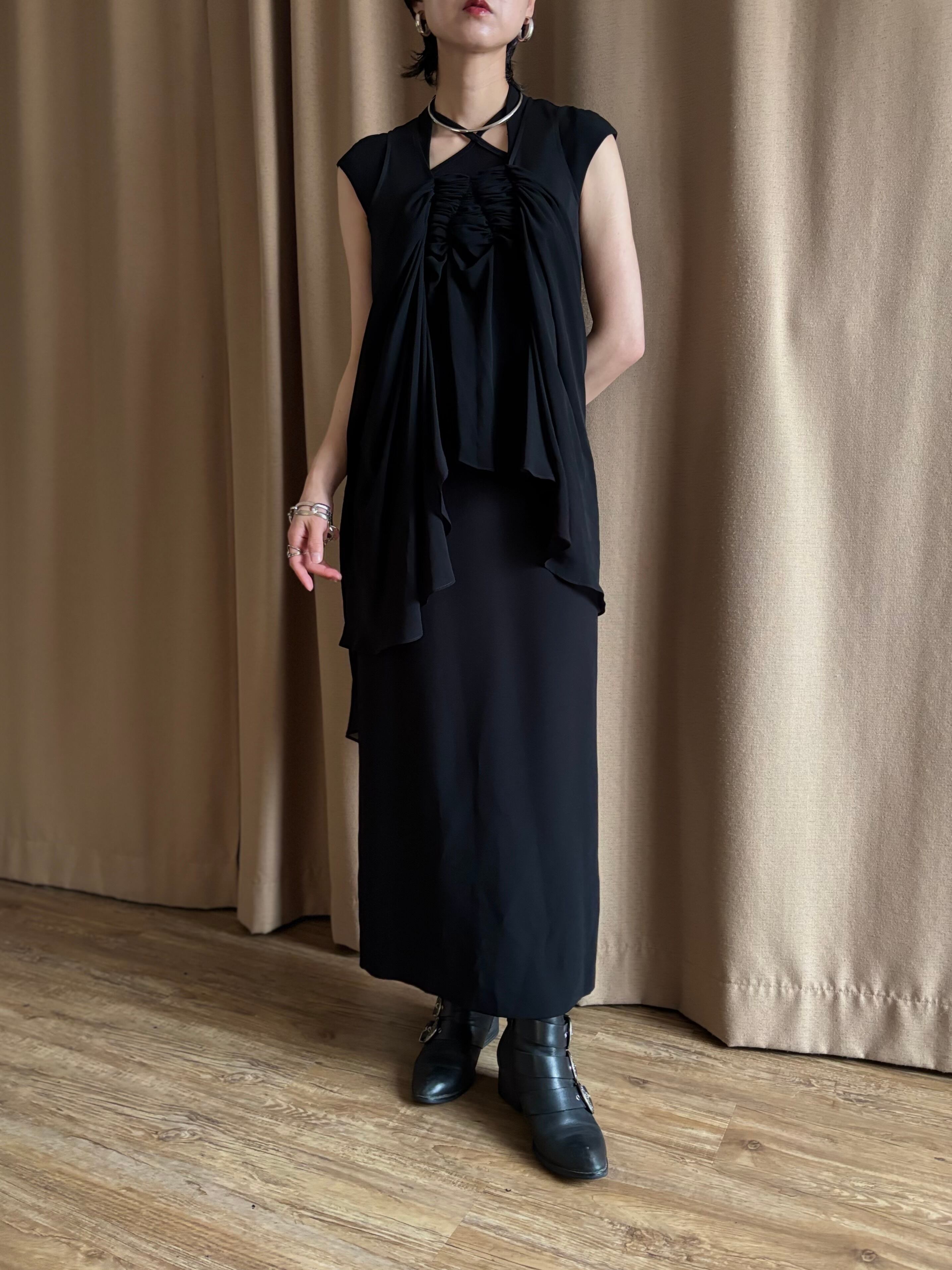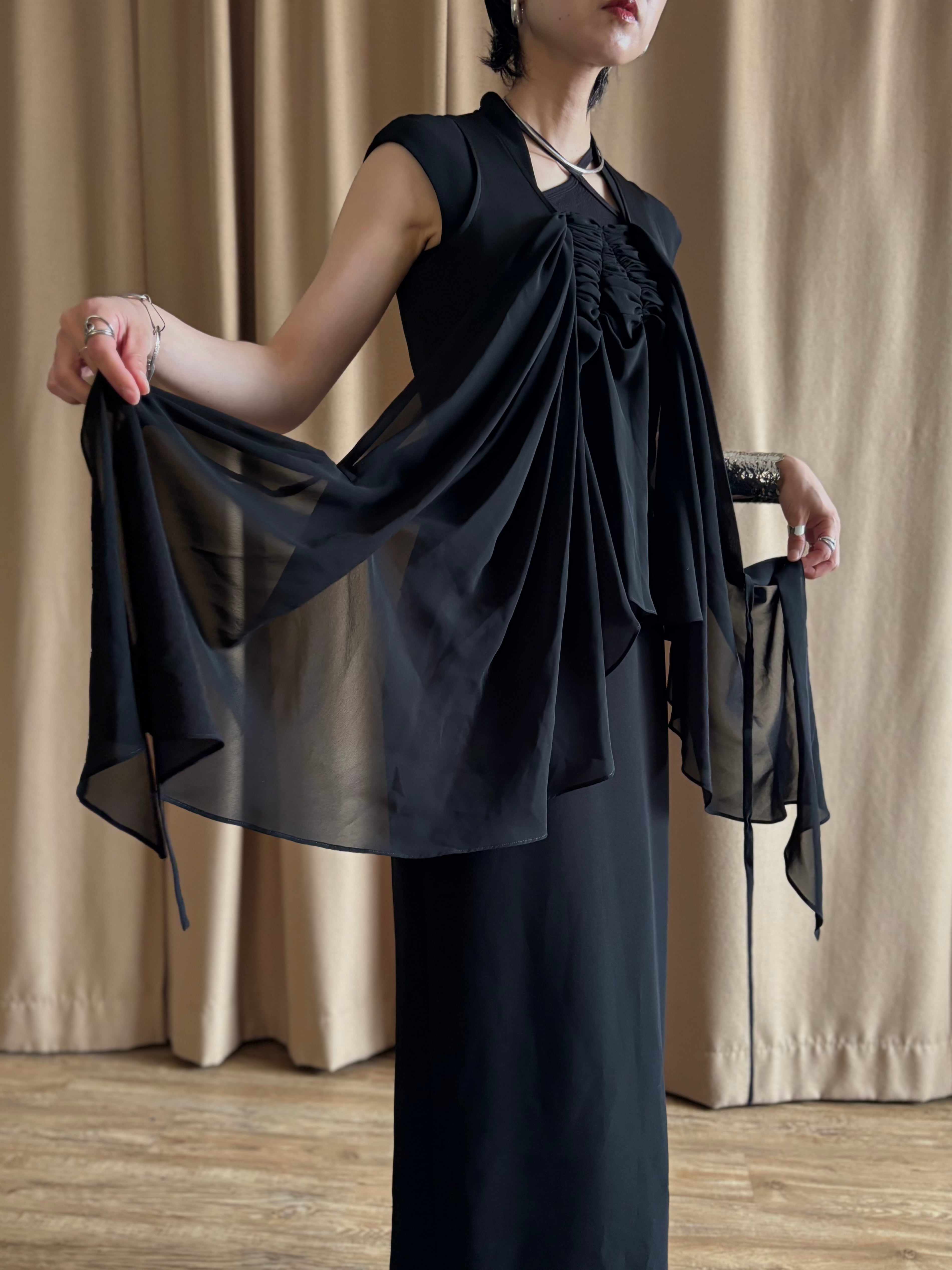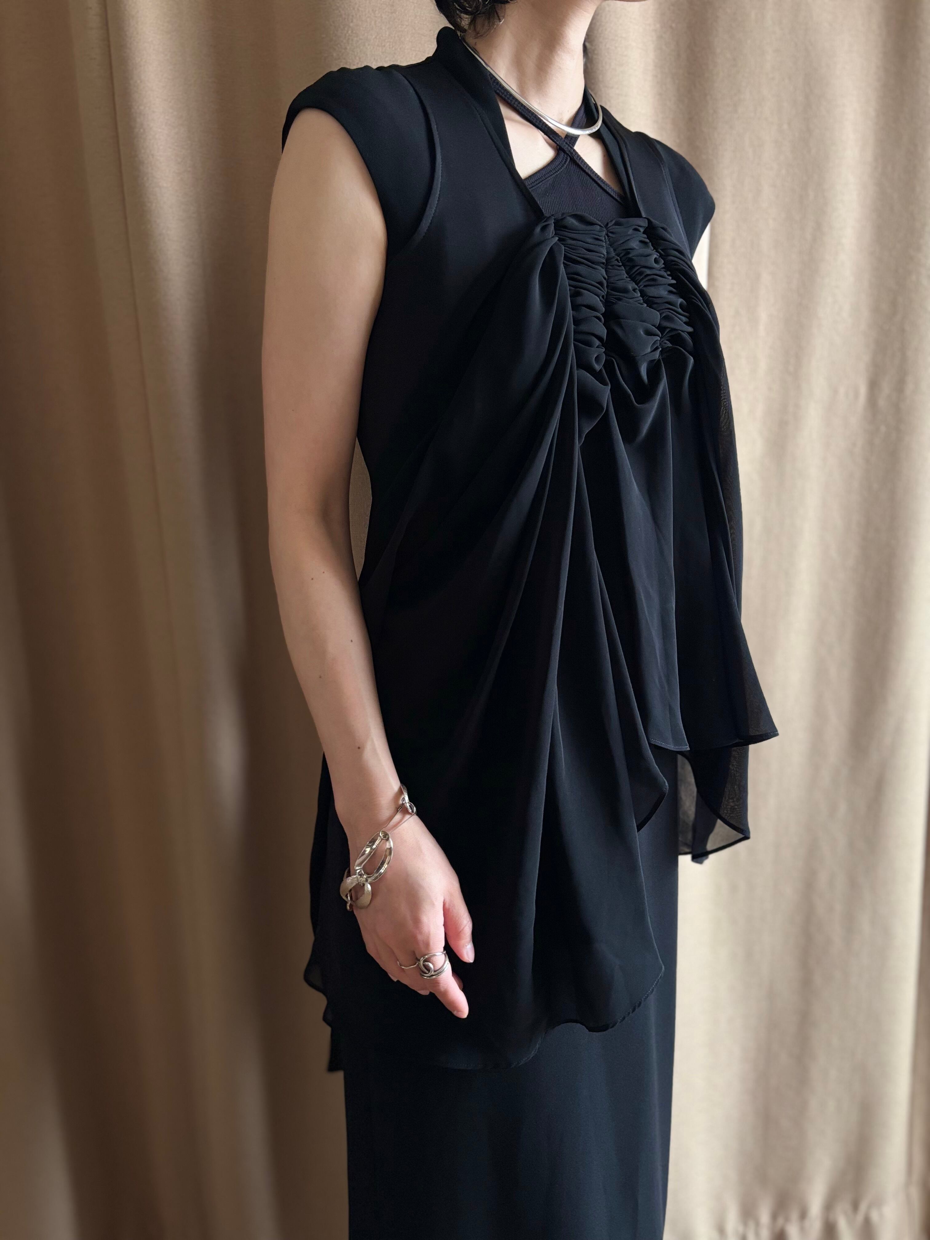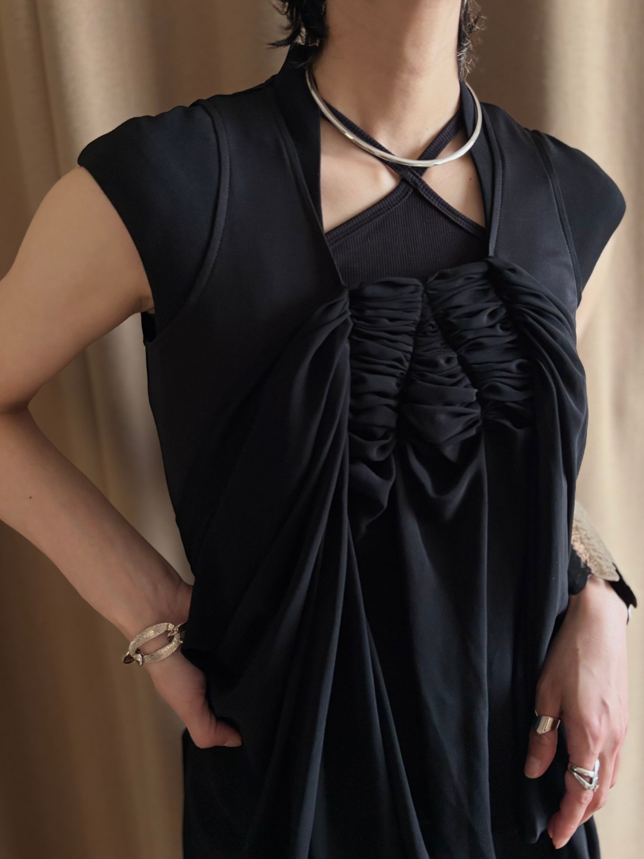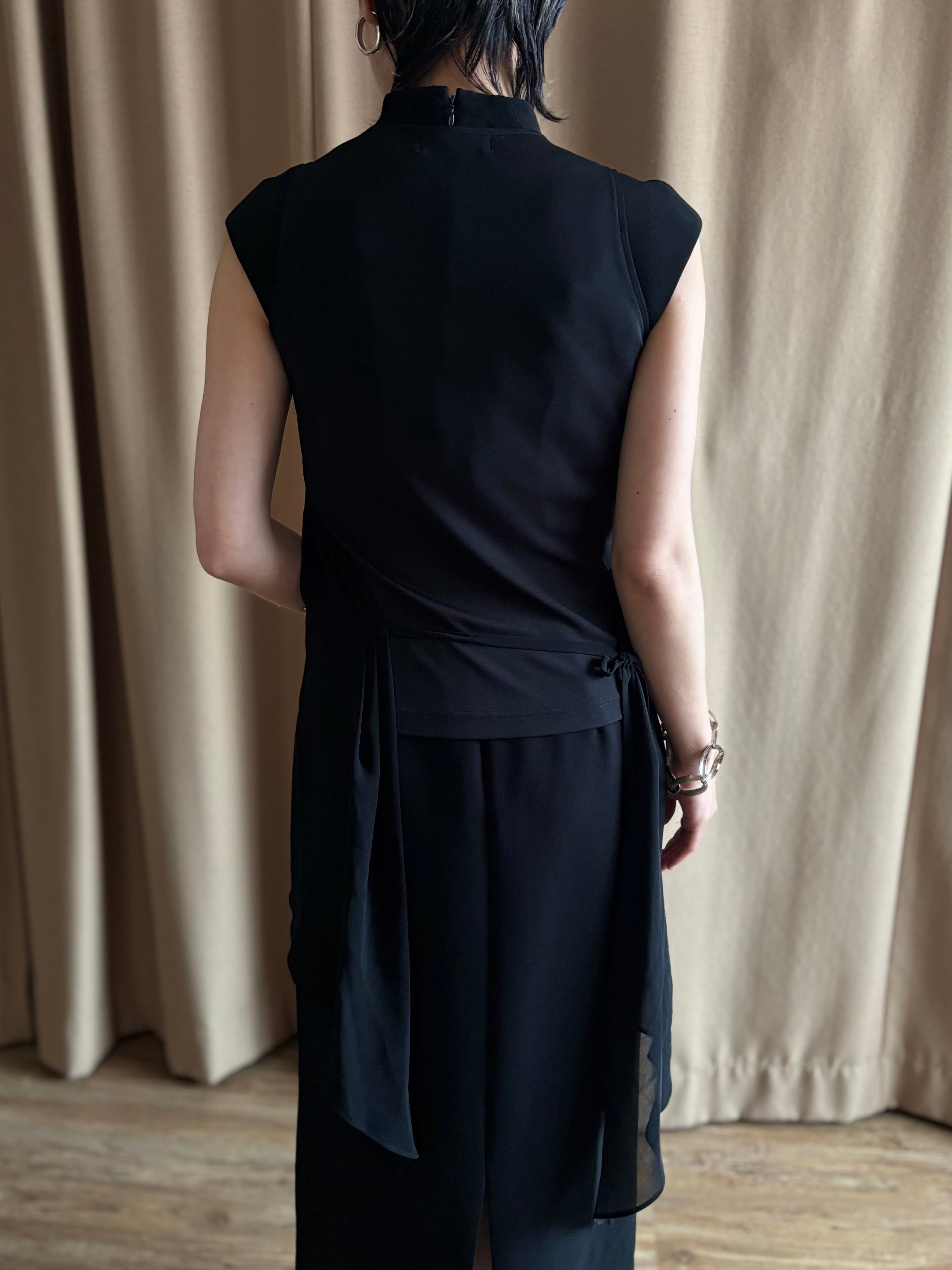 フロントにシアー素材をドッキングしたブラックトップス付き。