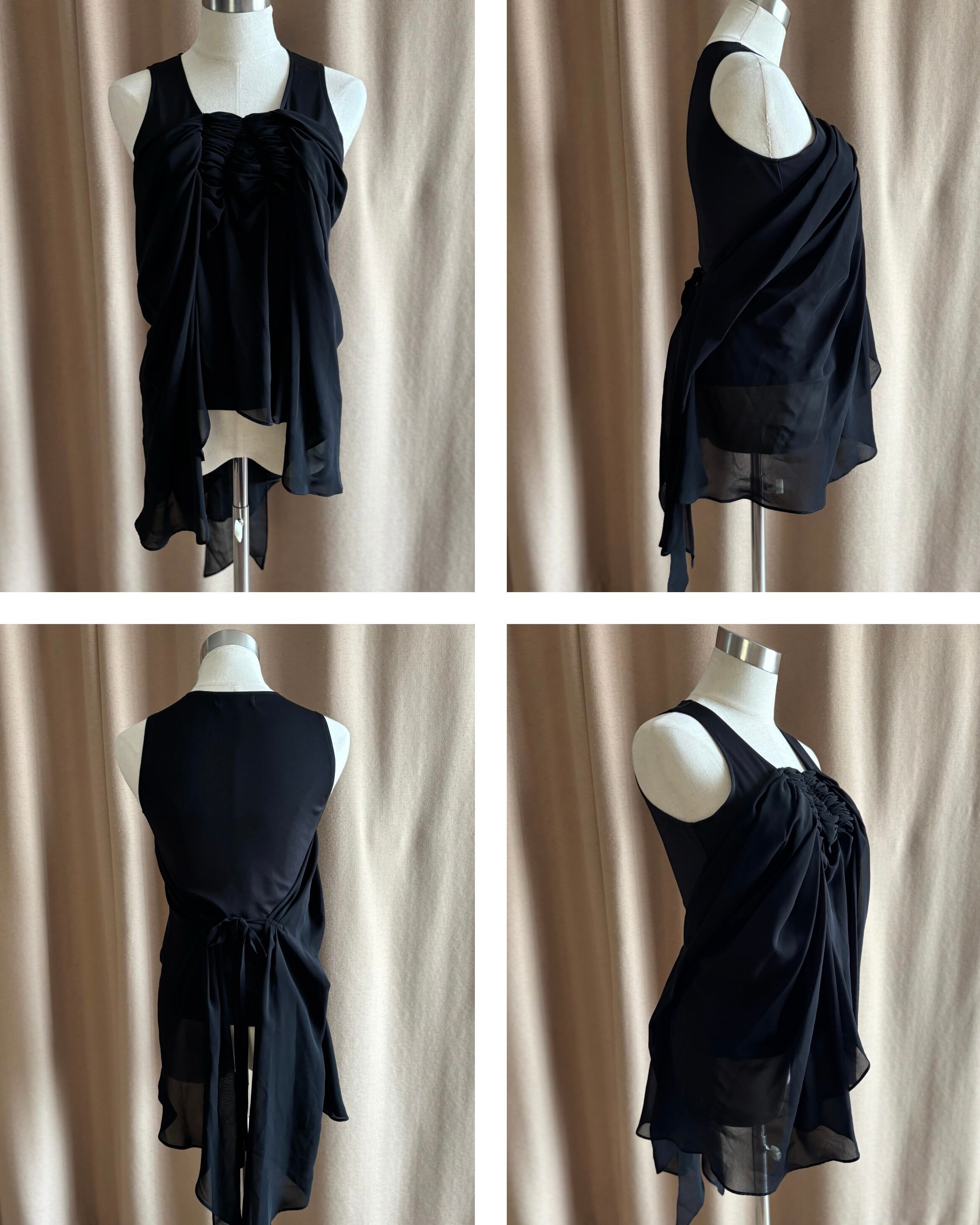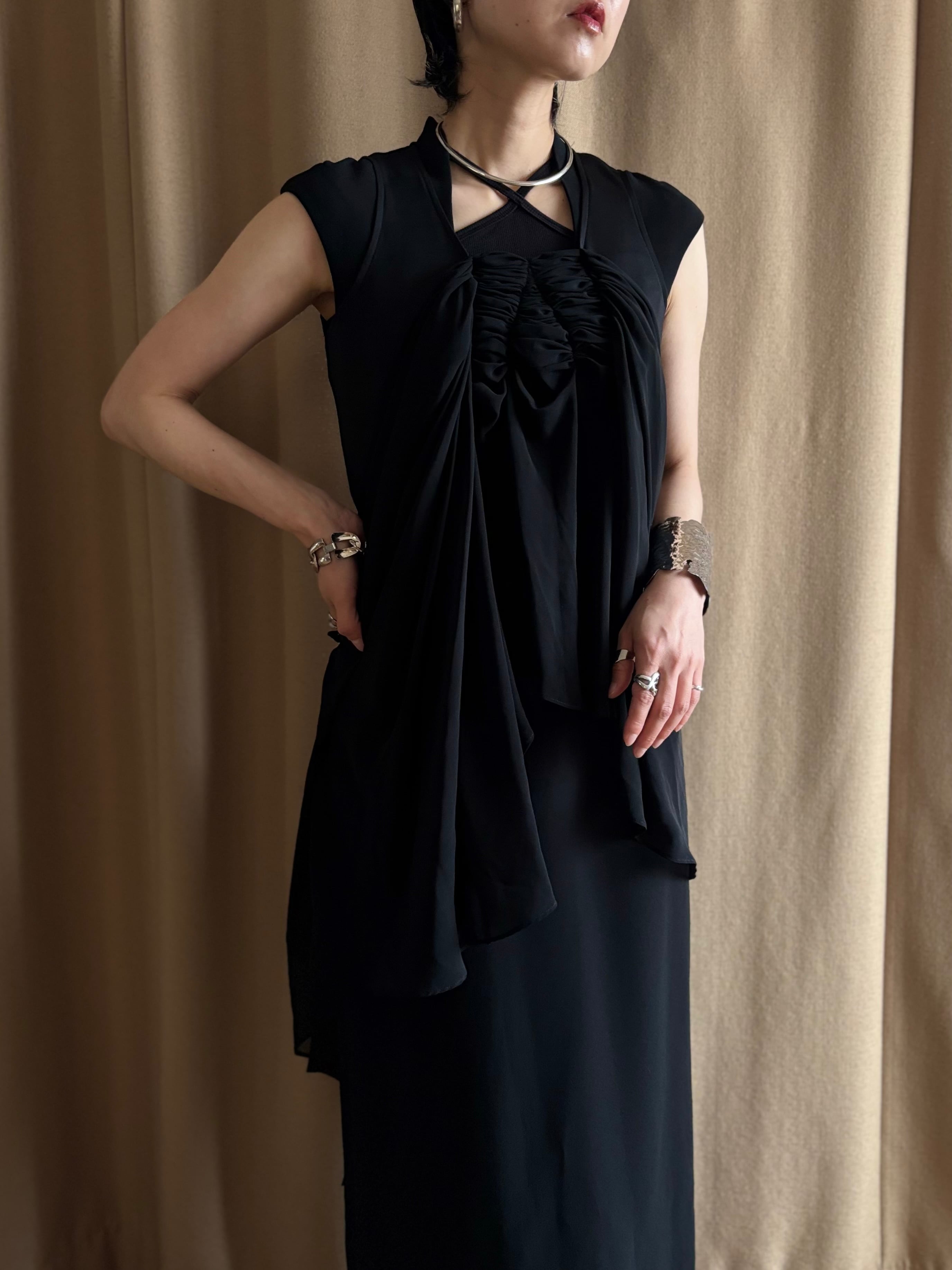 軽やかに透ける生地が動きにニュアンスを加え、シンプルながらも印象的な佇まいに仕上がっています。