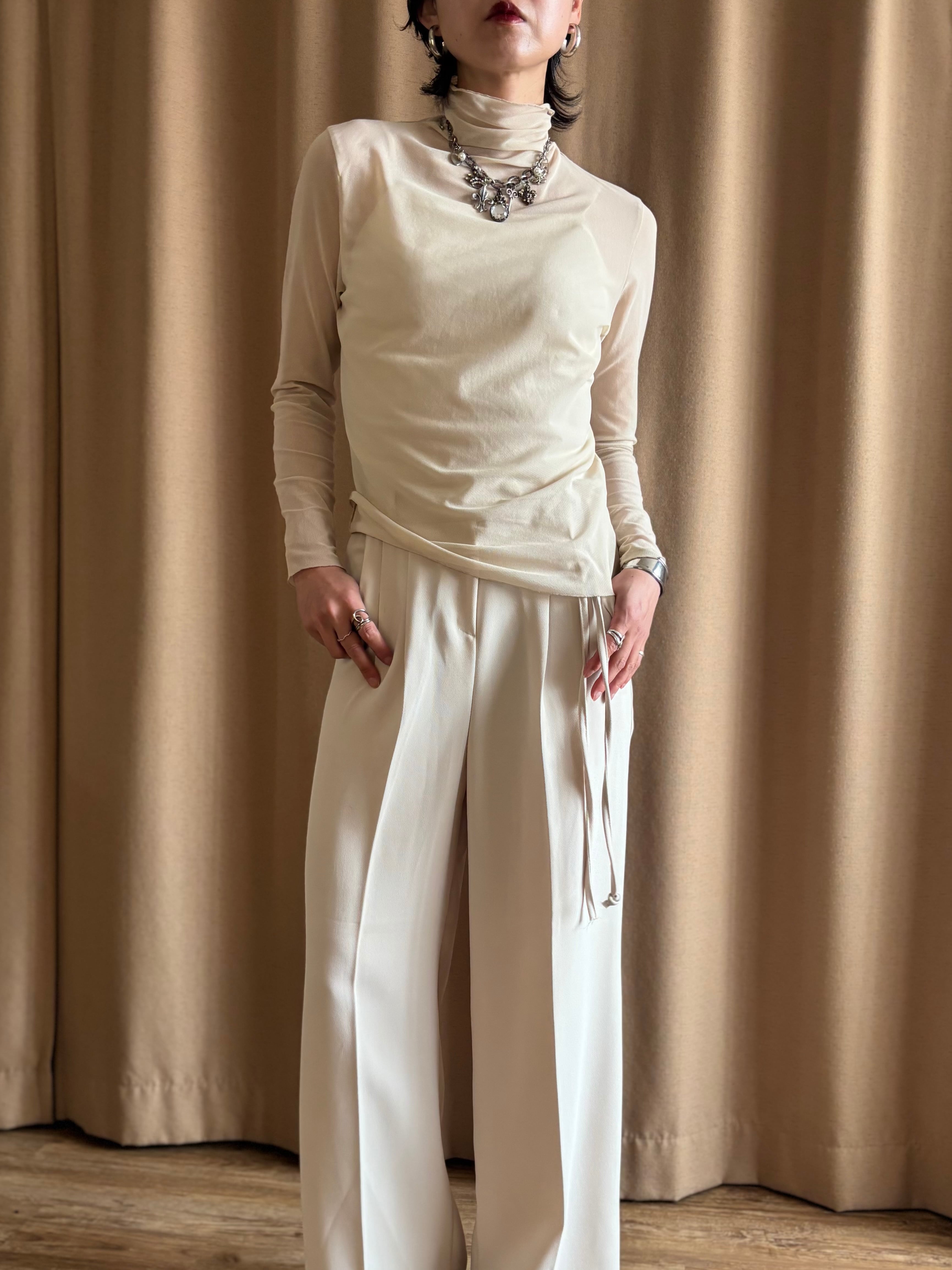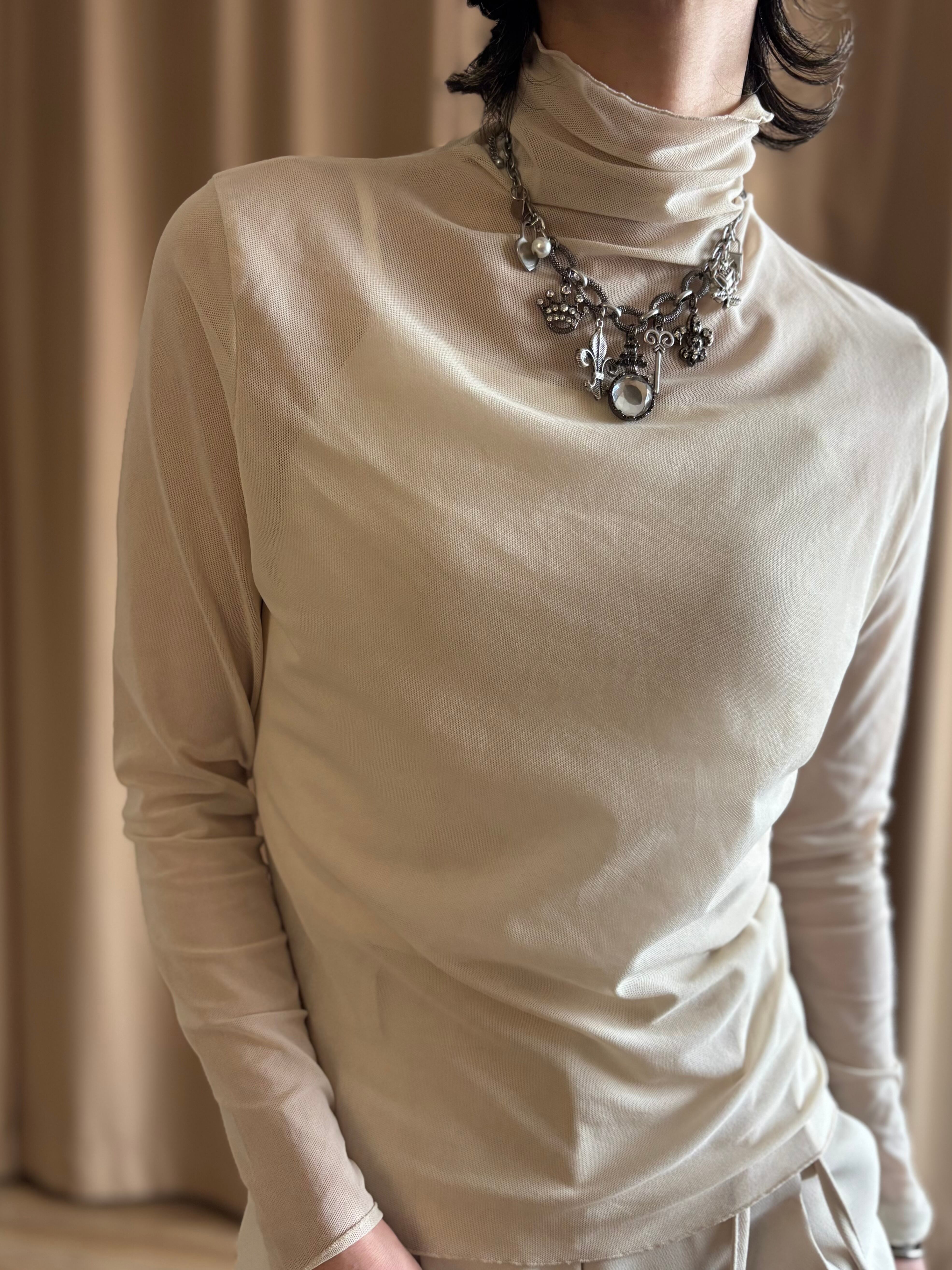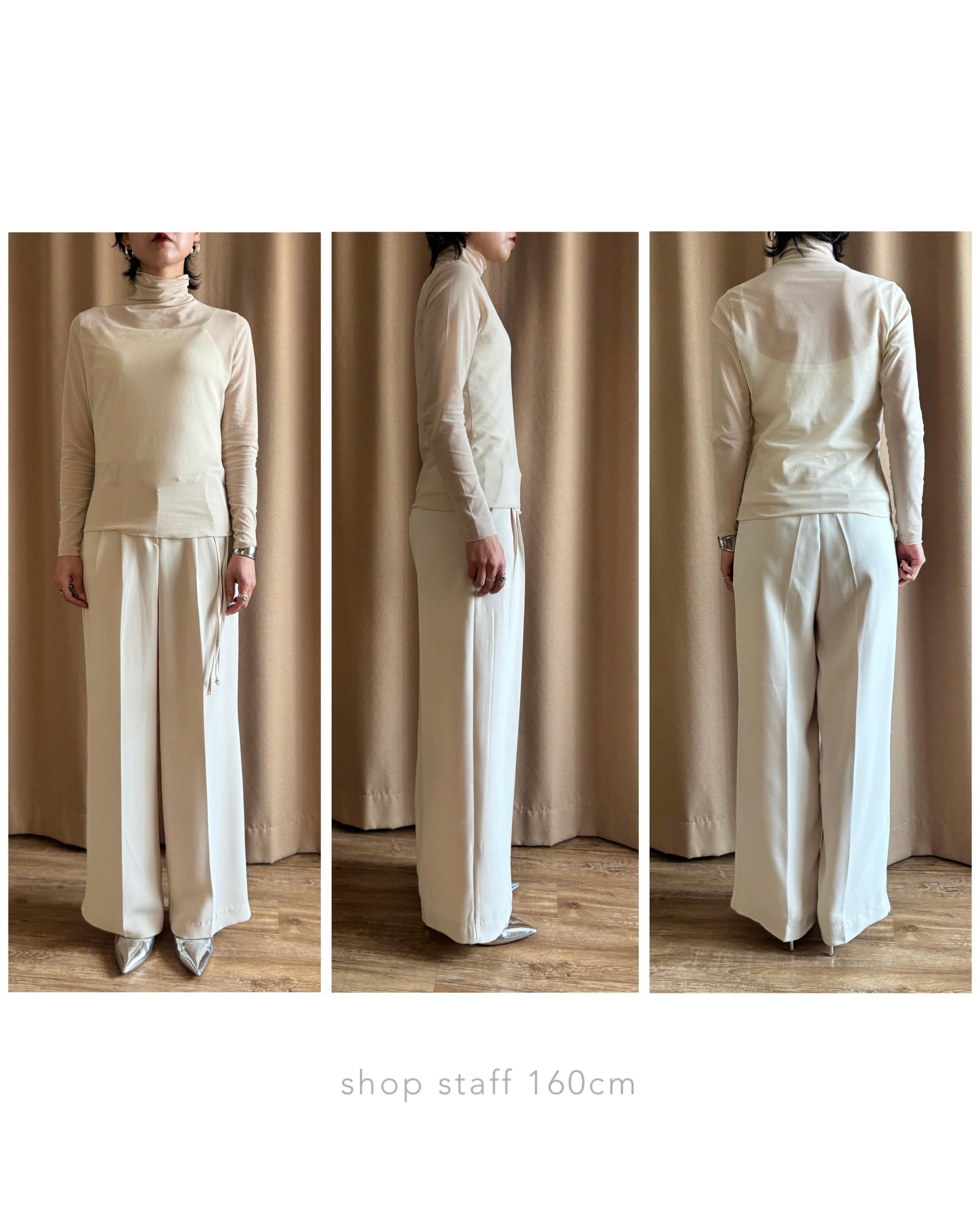 シアーハイネックトップスは、ミニマルな美しさを引き立てる使い勝手抜群な一着。