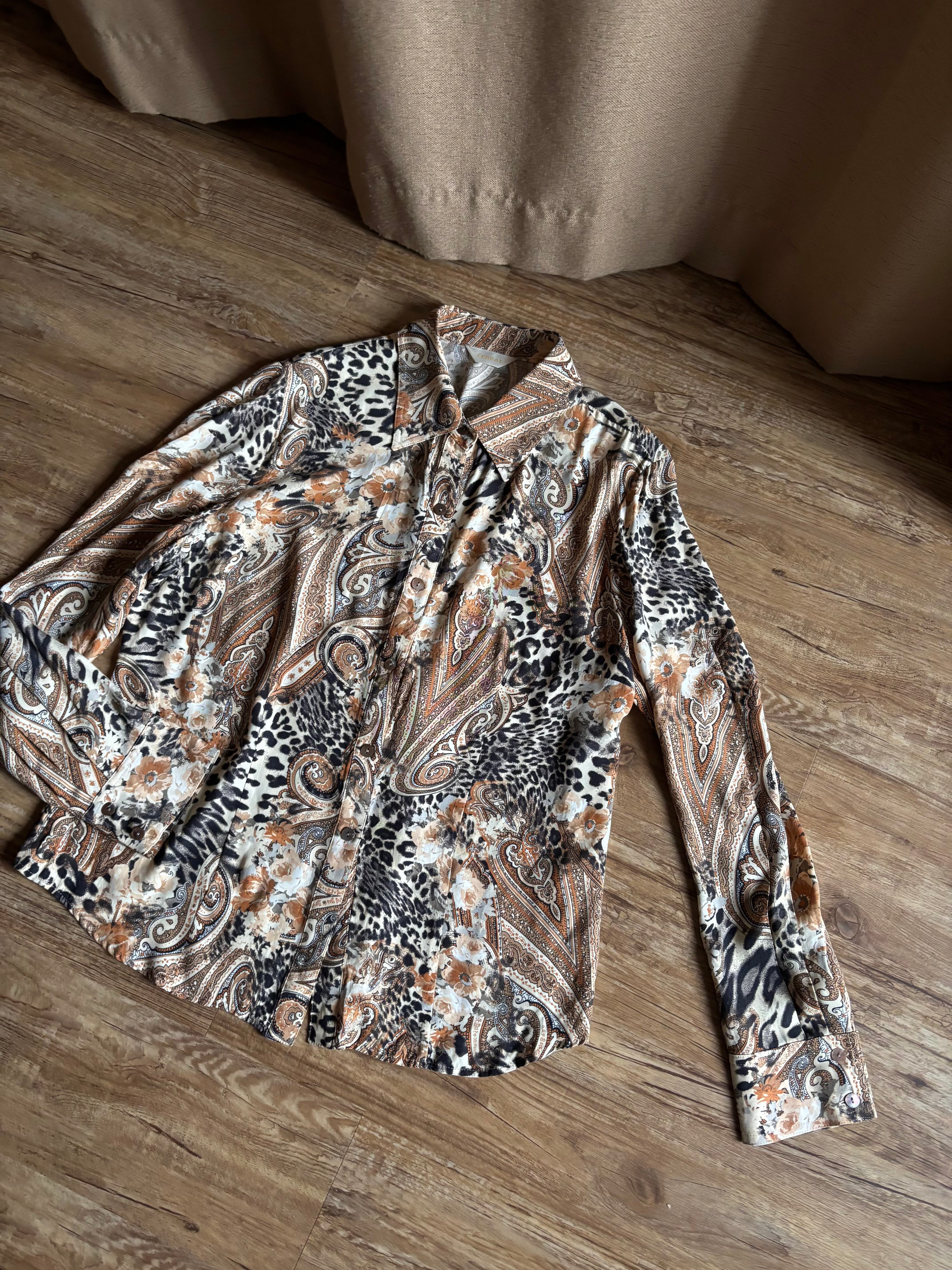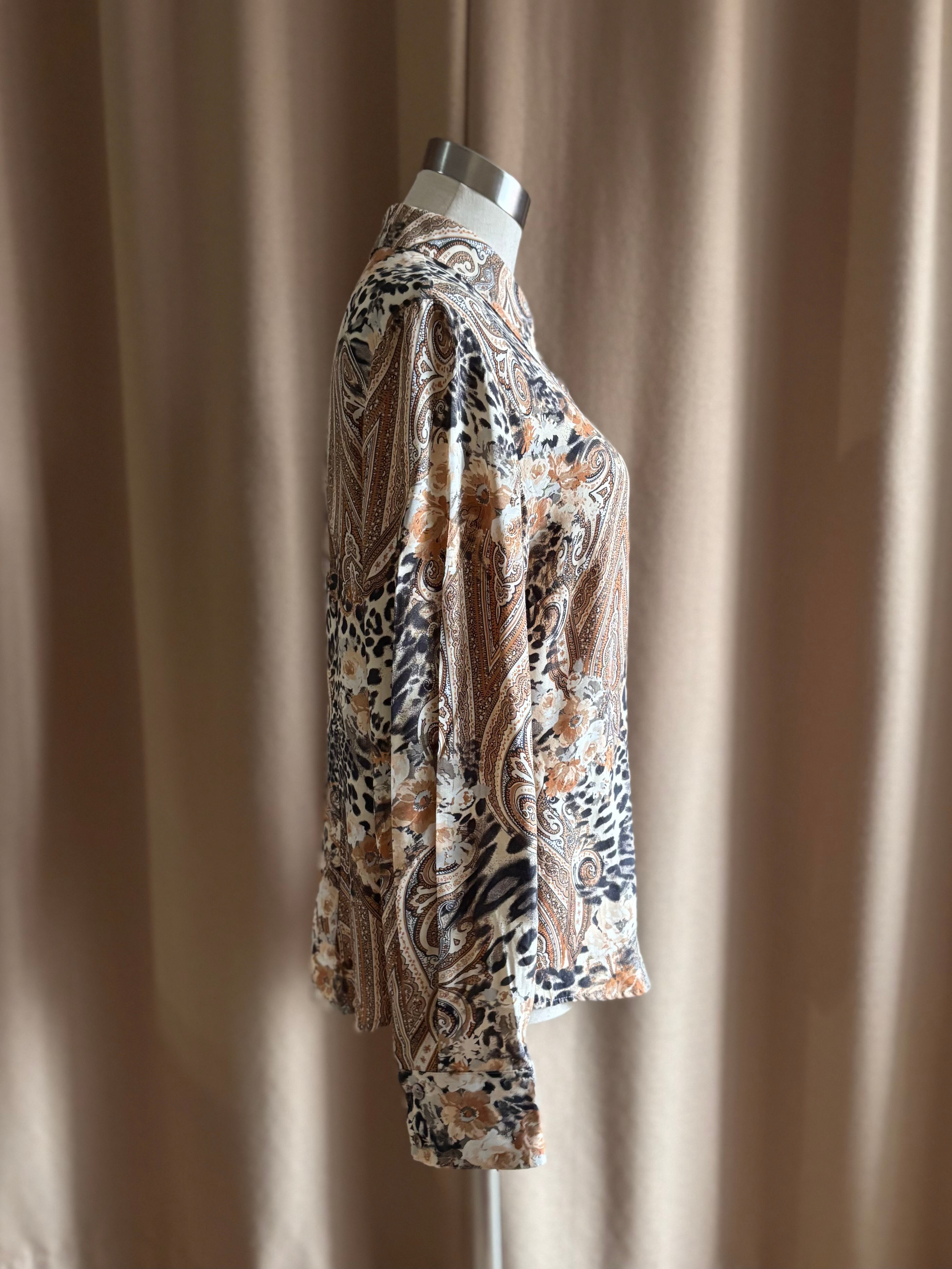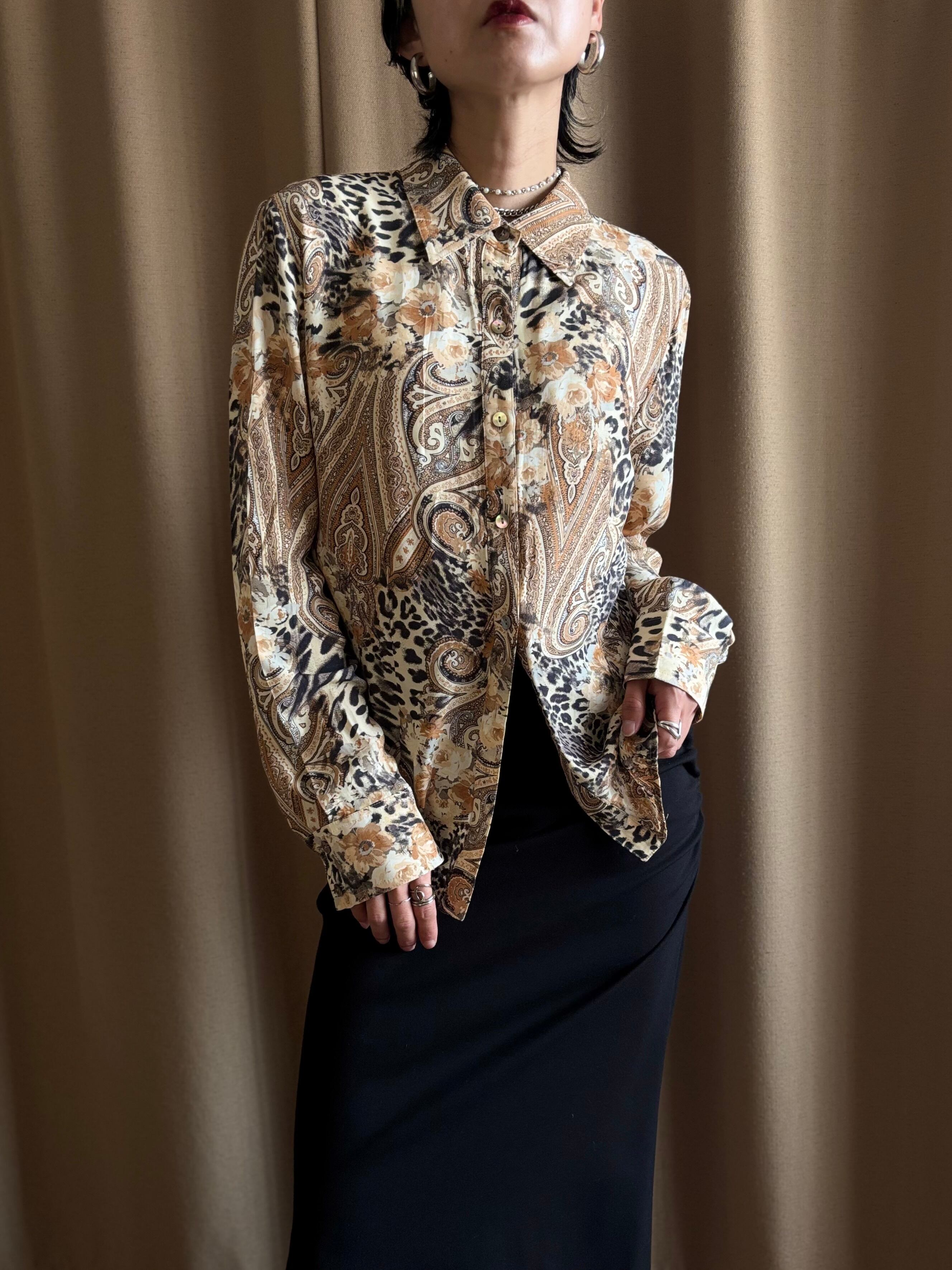 ペイズリーとアニマルが織りなす奥行きあるパターンが、スタイリングにモードな空気をプラス。